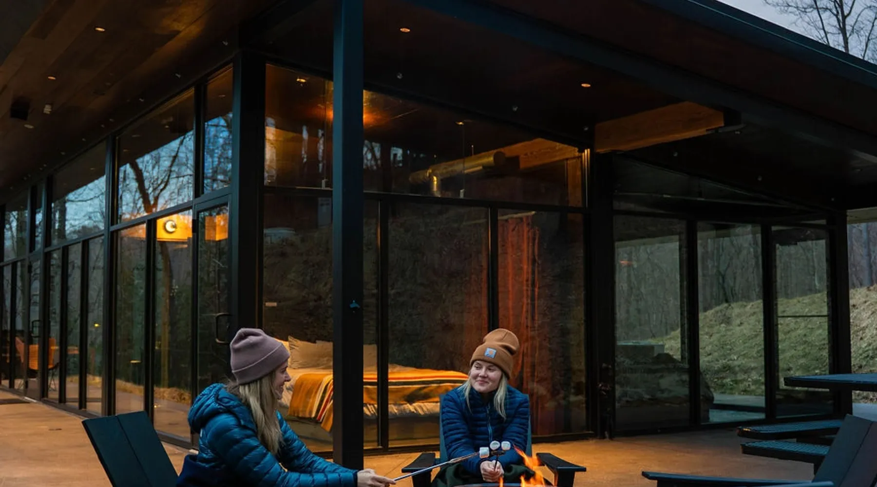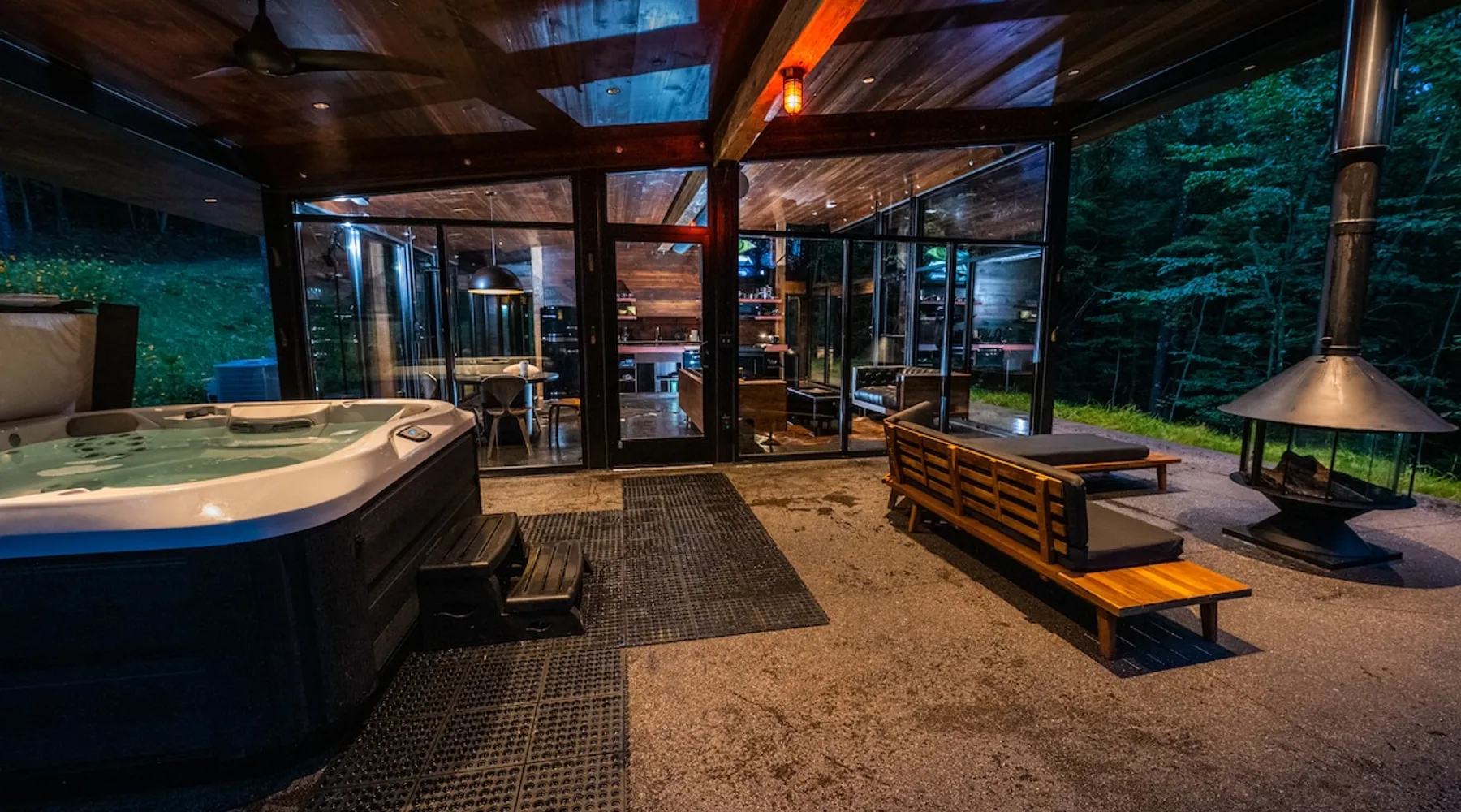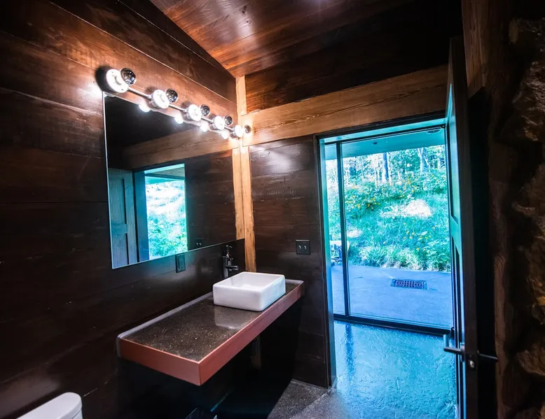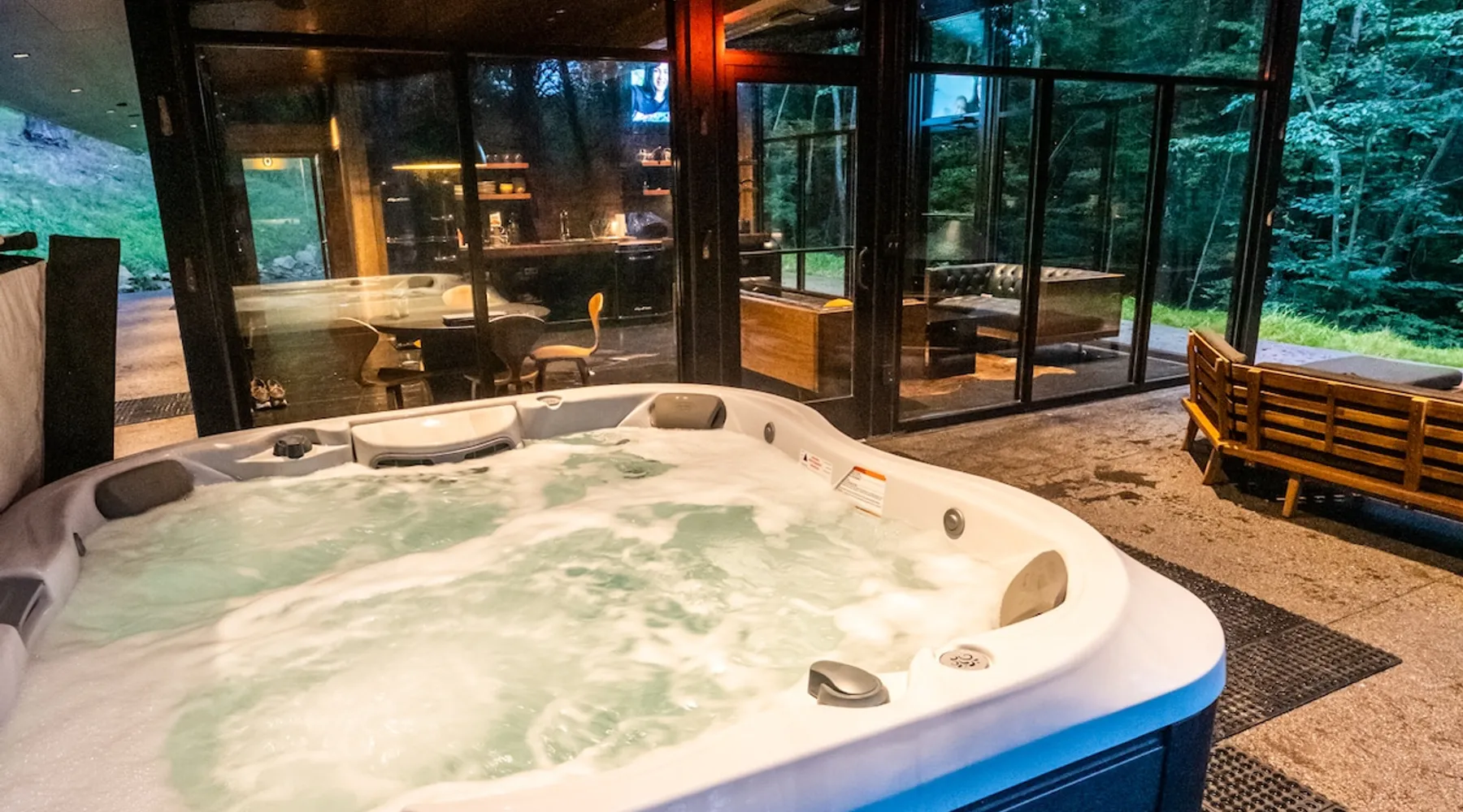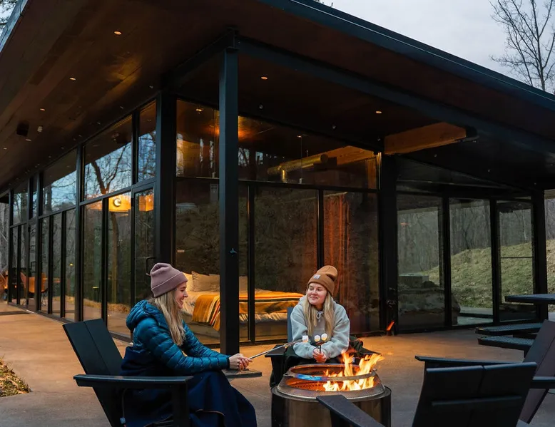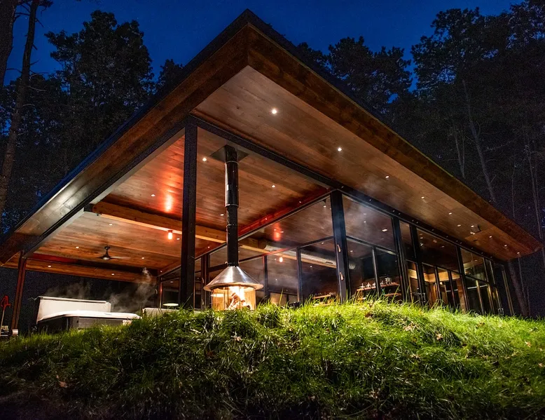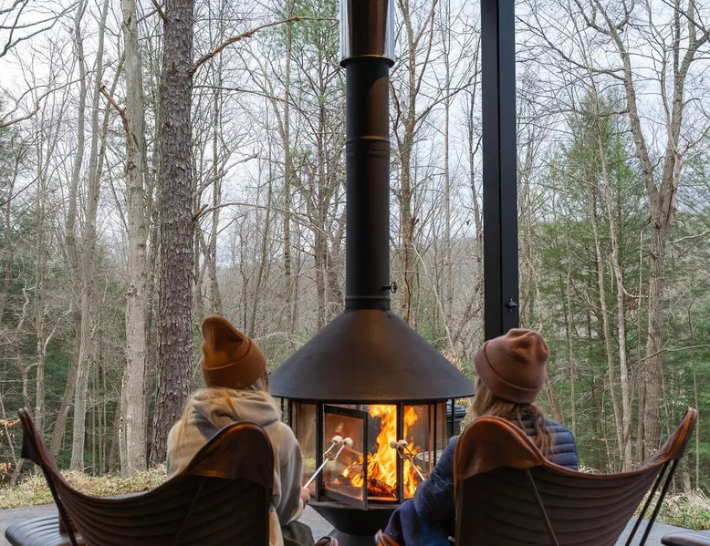 The Study is a minimalist-modern cabin featuring 360-degree glass walls that invite you to gaze out while cozy inside. The indoor space seamlessly extends to spacious patios, complete with a 6-person hot tub, Malm fireplace, grill and dining area. Set on a peaceful, 24-acre forested property, you’ll enjoy tranquility and privacy just 5 miles from the renowned hiking trails of Hocking Hills. Whether you’re unwinding or exploring nearby nature, The Study offers an unforgettable luxe retreat. The space Created with 360 degree floor to ceiling glass, the Study allows total immersion into nature’s surroundings while lounging in comfort. With a strong nod to Philip Johnson’s Glass House, The Study blends mid-century appeal with the beauty of the area - including a hand-built shower with rocks from Lost Cavern, radiant-heated stamped concrete floors resembling the sandstone terrain, Douglas fir beams and a seamless transition from inside to outside patios. Featuring a carousel fireplace, Sonos speakers, 6-person hot tub, Solo stove, gas grill, bespoke furniture, and purple hybrid mattresses, we want everything about your stay to be memorable. Guest access Guests have access to the house and patios.