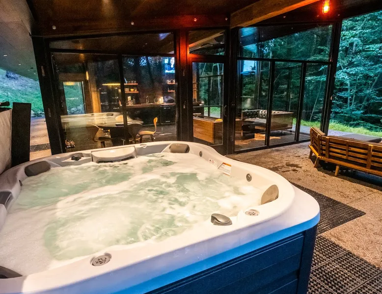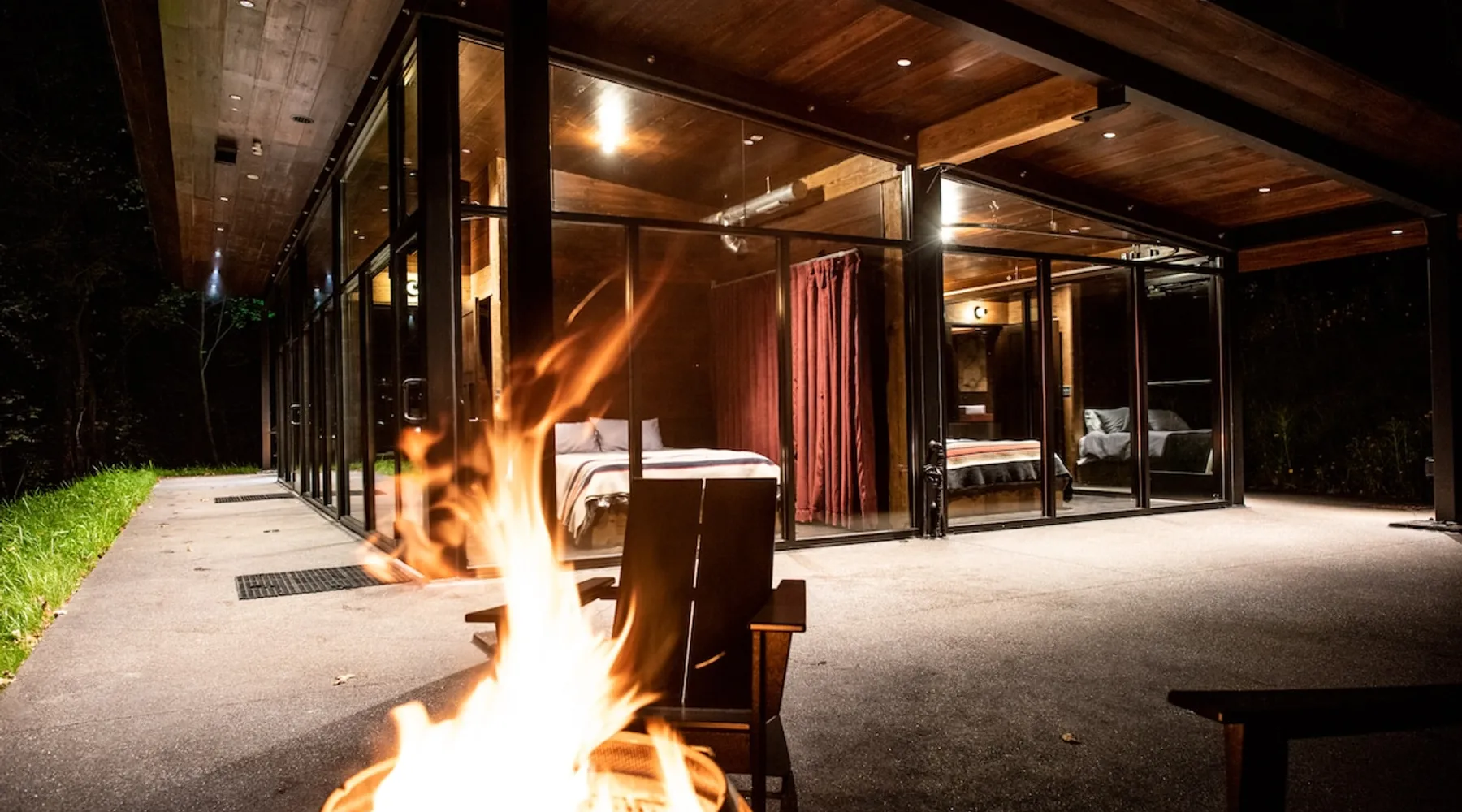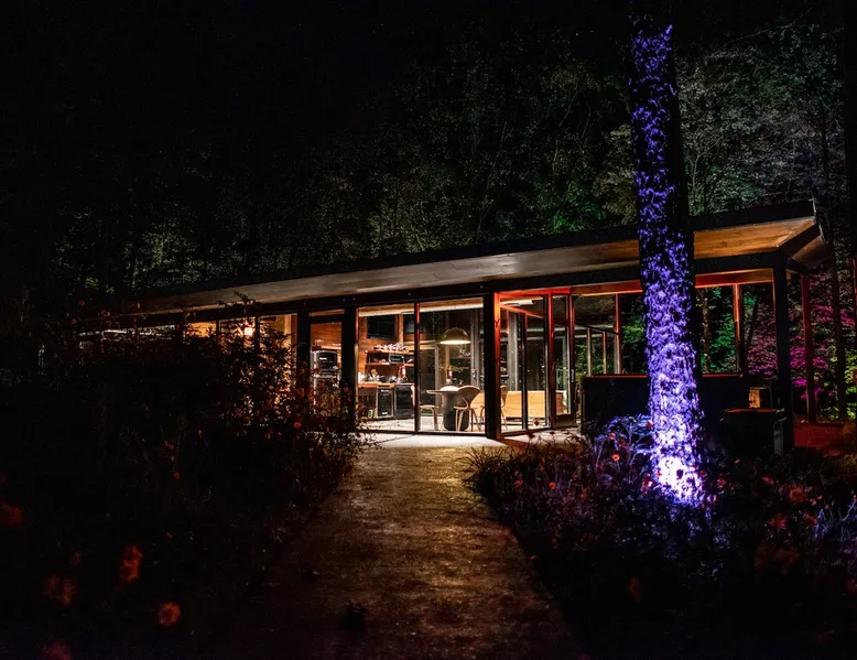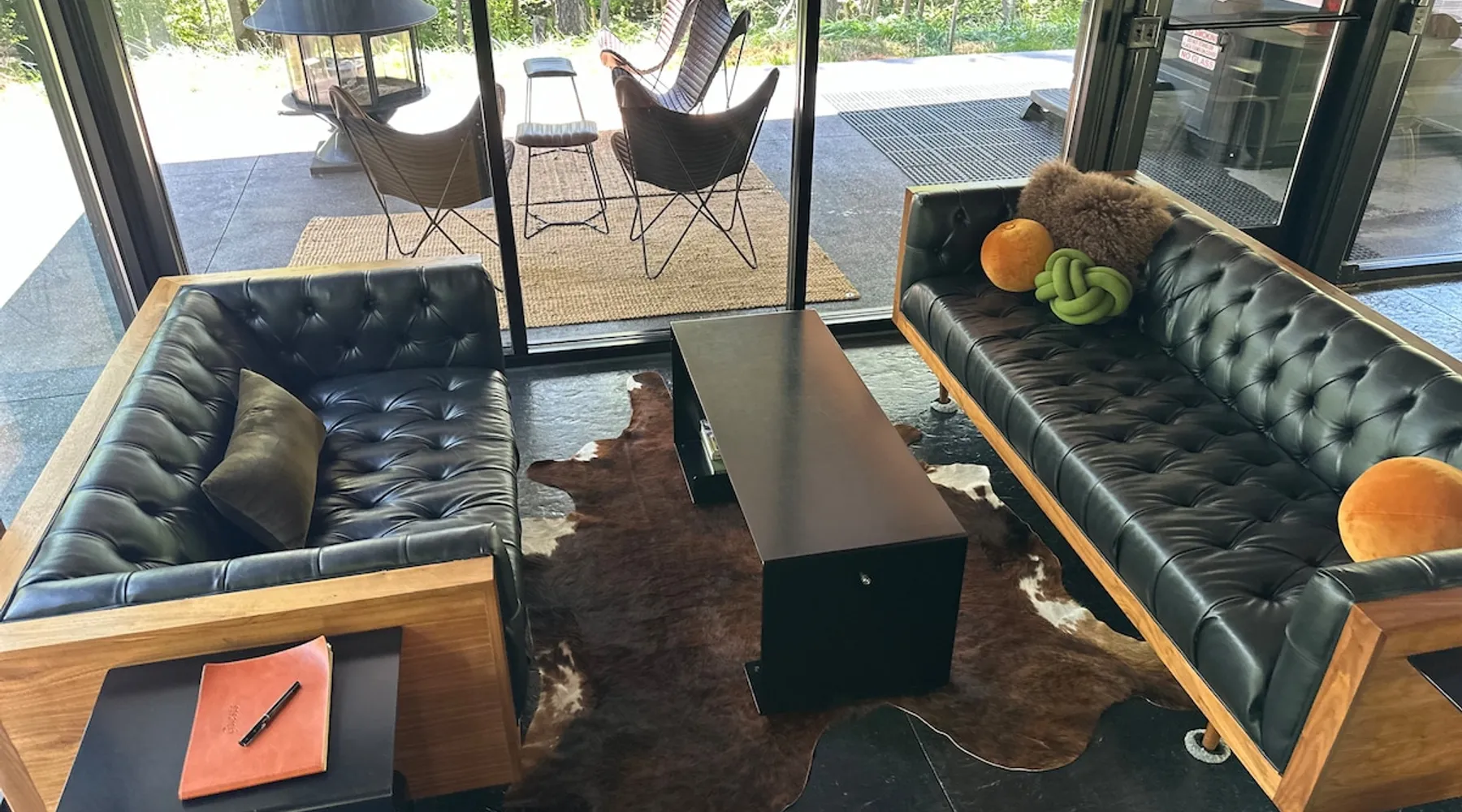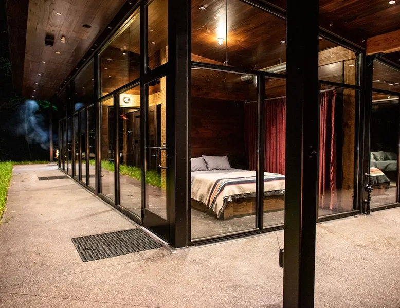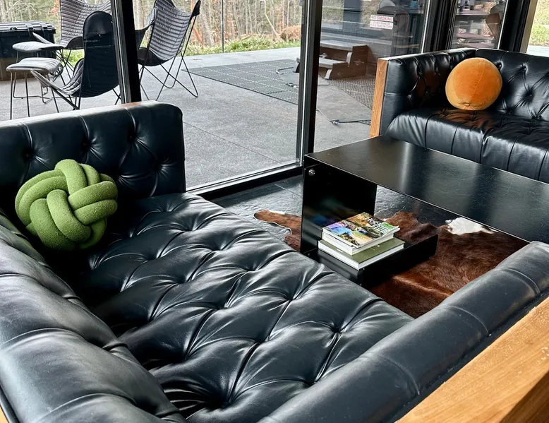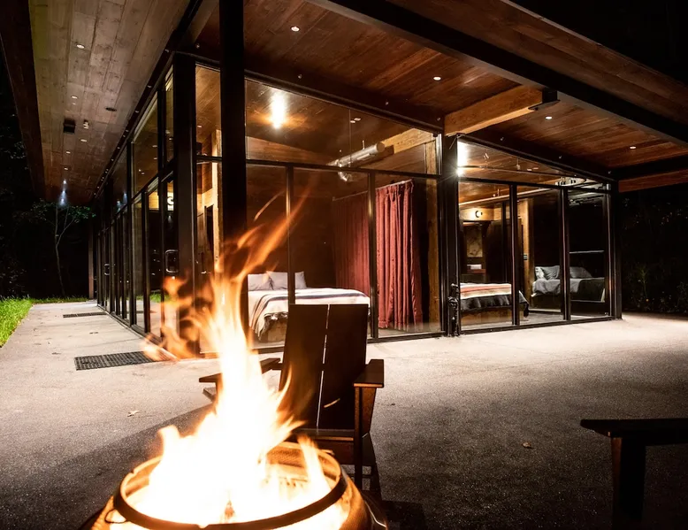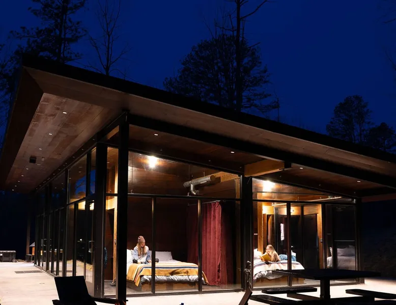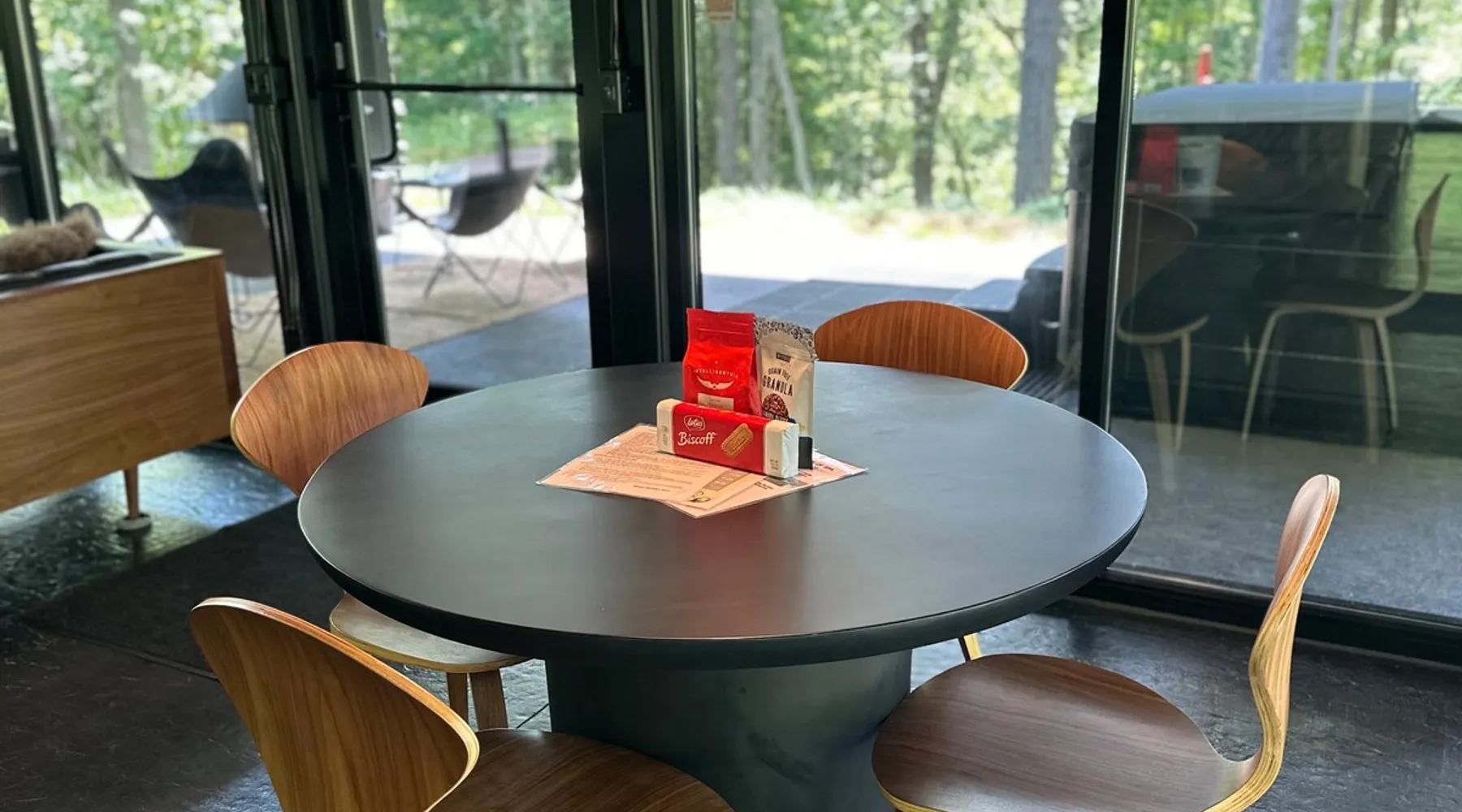 The Study is a minimalist-modern cabin featuring 360-degree glass walls that invite you to gaze out while cozy inside. The indoor space seamlessly extends to spacious patios, complete with a 6-person hot tub, Malm fireplace, grill and dining area. Set on a peaceful, 24-acre forested property, you’ll enjoy tranquility and privacy just 5 miles from the renowned hiking trails of Hocking Hills. Whether you’re unwinding or exploring nearby nature, The Study offers an unforgettable luxe retreat. The space Created with 360 degree floor to ceiling glass, the Study allows total immersion into nature’s surroundings while lounging in comfort. With a strong nod to Philip Johnson’s Glass House, The Study blends mid-century appeal with the beauty of the area - including a hand-built shower with rocks from Lost Cavern, radiant-heated stamped concrete floors resembling the sandstone terrain, Douglas fir beams and a seamless transition from inside to outside patios. Featuring a carousel fireplace, Sonos speakers, 6-person hot tub, Solo stove, gas grill, bespoke furniture, and purple hybrid mattresses, we want everything about your stay to be memorable. Guest access Guests have access to the house and patios.