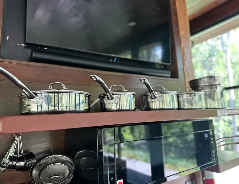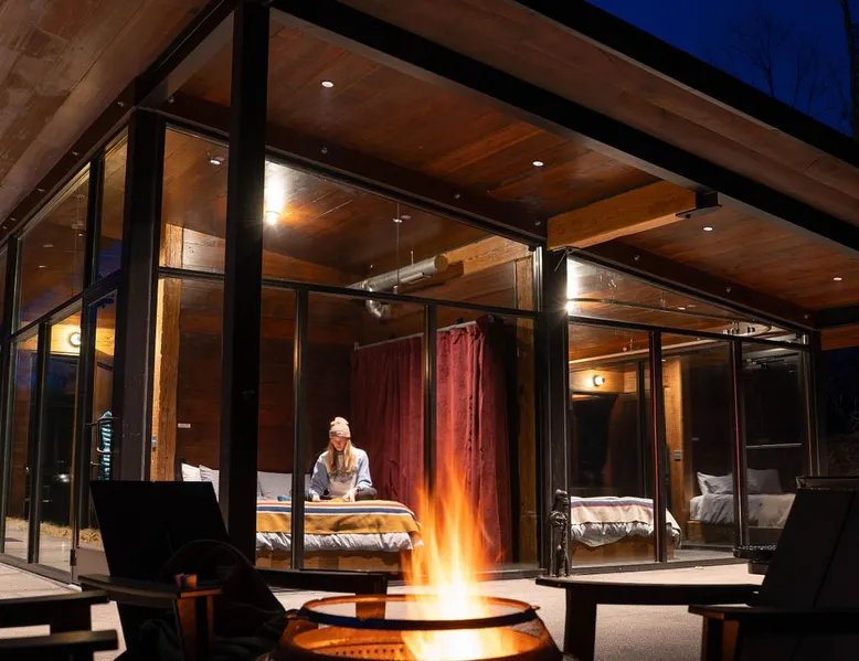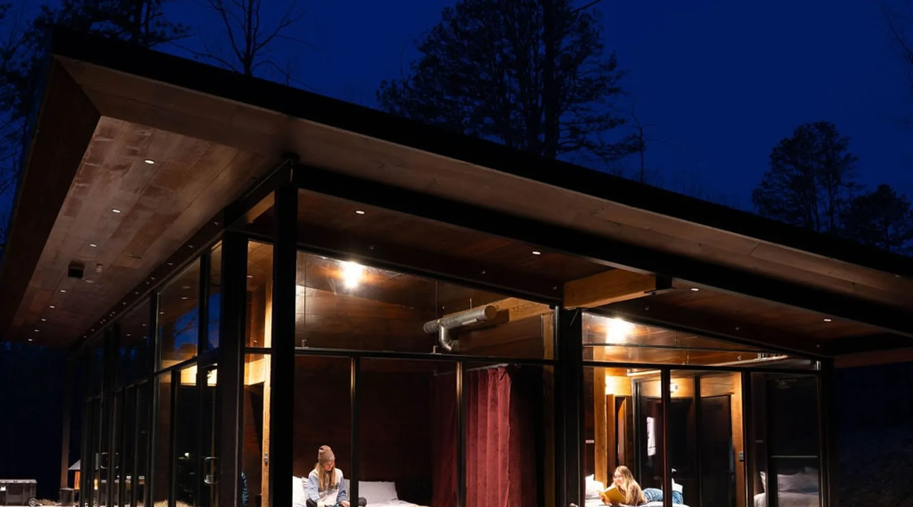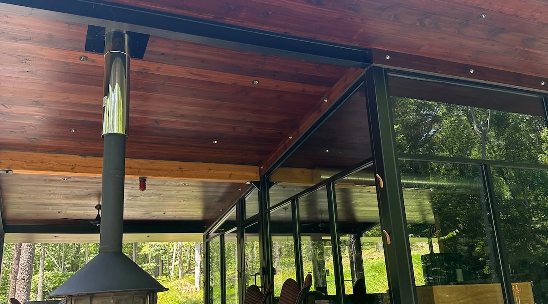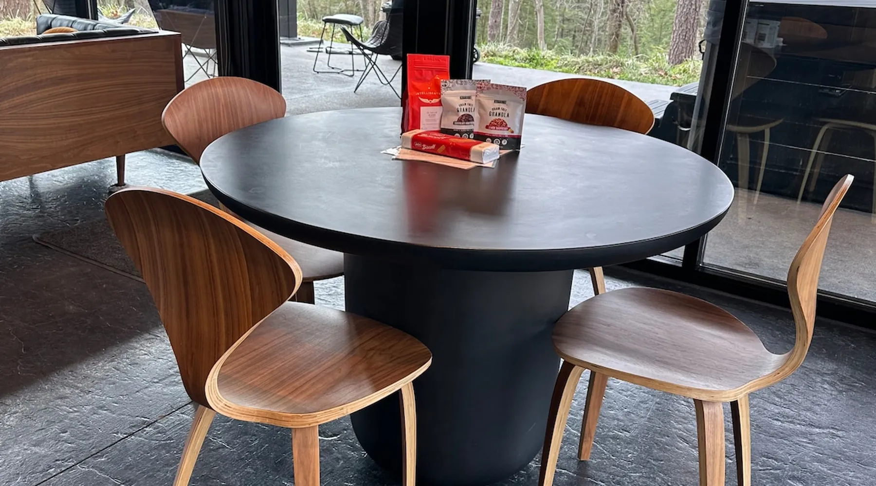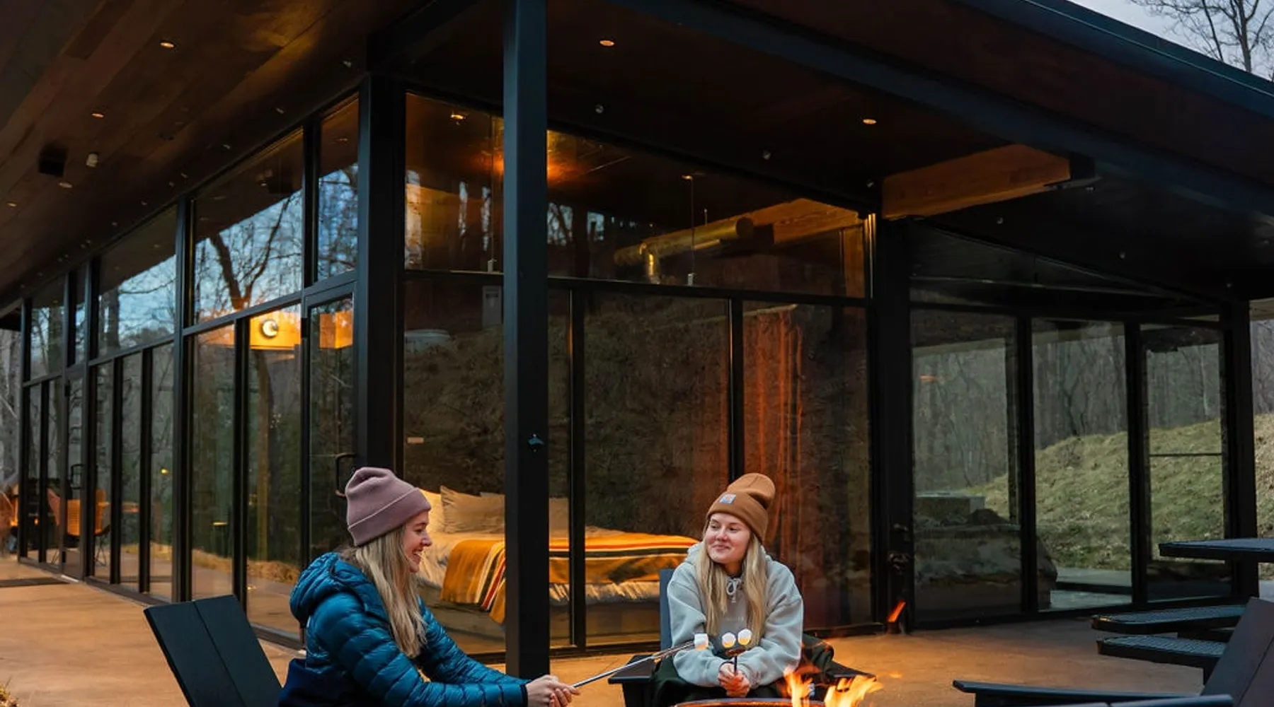 The Study is a minimalist-modern cabin featuring 360-degree glass walls that invite you to gaze out while cozy inside. The indoor space seamlessly extends to spacious patios, complete with a 6-person hot tub, Malm fireplace, grill and dining area. Set on a peaceful, 24-acre forested property, you’ll enjoy tranquility and privacy just 5 miles from the renowned hiking trails of Hocking Hills. Whether you’re unwinding or exploring nearby nature, The Study offers an unforgettable luxe retreat. The space Created with 360 degree floor to ceiling glass, the Study allows total immersion into nature’s surroundings while lounging in comfort. With a strong nod to Philip Johnson’s Glass House, The Study blends mid-century appeal with the beauty of the area - including a hand-built shower with rocks from Lost Cavern, radiant-heated stamped concrete floors resembling the sandstone terrain, Douglas fir beams and a seamless transition from inside to outside patios. Featuring a carousel fireplace, Sonos speakers, 6-person hot tub, Solo stove, gas grill, bespoke furniture, and purple hybrid mattresses, we want everything about your stay to be memorable. Guest access Guests have access to the house and patios.