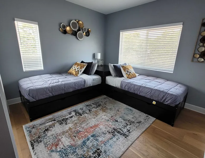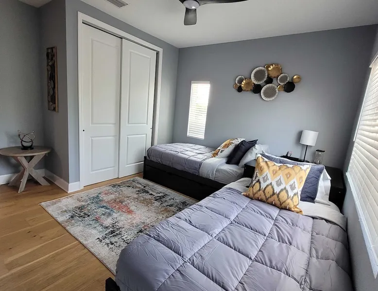 Our beautiful and sophisticated 3BD/3.5BA townhouse is BRAND NEW and ready for your vacation! Nestled between Midtown Tampa district and Westshore Plaza, it is the perfect location to enjoy all the trending retail shops, restaurants and other local attractions, just minutes away. Conveniently located in the Westshore Palms suburbs of Tampa, Enjoy ample living space, modern furnishings, appliances, and everything you need for a relaxing stay. The 3BD/3.5 BA will be yours to enjoy! The home can comfortably accommodate 8 guests (3 bedrooms, 1 living room sofa bed), in a quiet neighborhood just minutes to Tampa's top attractions. LIVING SPACE • Large sectional sofa (queen size sofa bed) • Plenty of natural lighting w/extra large windows • Smart TV • Ceiling fan • HP computer KITCHEN AND DINING • Eat-in kitchen • Full-sized refrigerator • Microwave, oven, and dishwasher • Small kitchen appliances (ie toaster, blender, mixer) • Cooking supplies and dishware BEDROOM 1 • Plush king-sized mattress • Closet space for clothing storage • Ensuite bathroom w/tub and shower, double sinks • Smart television • Ceiling fan BEDROOM 2 • Two twin beds • Dresser/side table w/lamp • Ensuite bathroom w/tub and shower combo • Smart television • Ceiling fan BEDROOM 3/Office • Plush king-sized mattress • Desk w/office chair • Ensuite bathroom w/shower ADDITIONAL AMENITIES • Fast wi-fi • Onsite washer and dryer • Toiletries like soap, shampoo, and body wash provided • Outdoor balcony w/furniture • Garage parking w/television • Garage has a gym w/Bowflex bike, Bowflex bench and dumbbell set Guests will receive detailed self checkin instructions, 3 days prior to arrival. We provide customer support from 8 am - 12 am EST. You can reach us via text, Airbnb messenger, or email. POINTS OF INTEREST: 8 mins. to James Stadium 8 mins. to Straz Center for the Performing Arts 8 mins. to Curtis Hixon Waterfront Park 8 mins. to Ben T Davis Beach 8 mins. to Cypress Point Park 9 mins. to Tampa Theatre 9 mins. to Tampa Museum of Art 9 mins. to Glazer Children's Museum 9 mins. to The Florida Museum of Photographic Arts 9 mins. to Armature Works 11 mins. to University of Tampa 12 mins. to Amalie Arena 12 mins. to Ybor City Museum Society 12 mins. to Tampa Riverwalk 13 mins. to Tampa Bay History Center 14 mins. to Sparkman Wharf 14 mins. to The Florida Aquarium 14 mins. to ZooTampa at Lowry Park 14 mins. to American Victory Ship & Museum 15 mins. to Big Cat Rescue 16 mins. to Bayshore Boulevard 16 mins. to Ballast Point Park 19 mins. to Busch Gardens Tampa Bay 20 mins. to Adventure Island 21 mins. to Museum of Science & Industry 21 mins. to USF Botanical Gardens 21 mins. to Weedon Island Preserve 26 mins. to Lettuce Lake Park - We can provide you with a pack n play if you request one at least a week before your stay begins. - NO PARTIES OR EVENTS. NO SMOKING. - See additional rules for fees associated with any violations of rules/regulations
