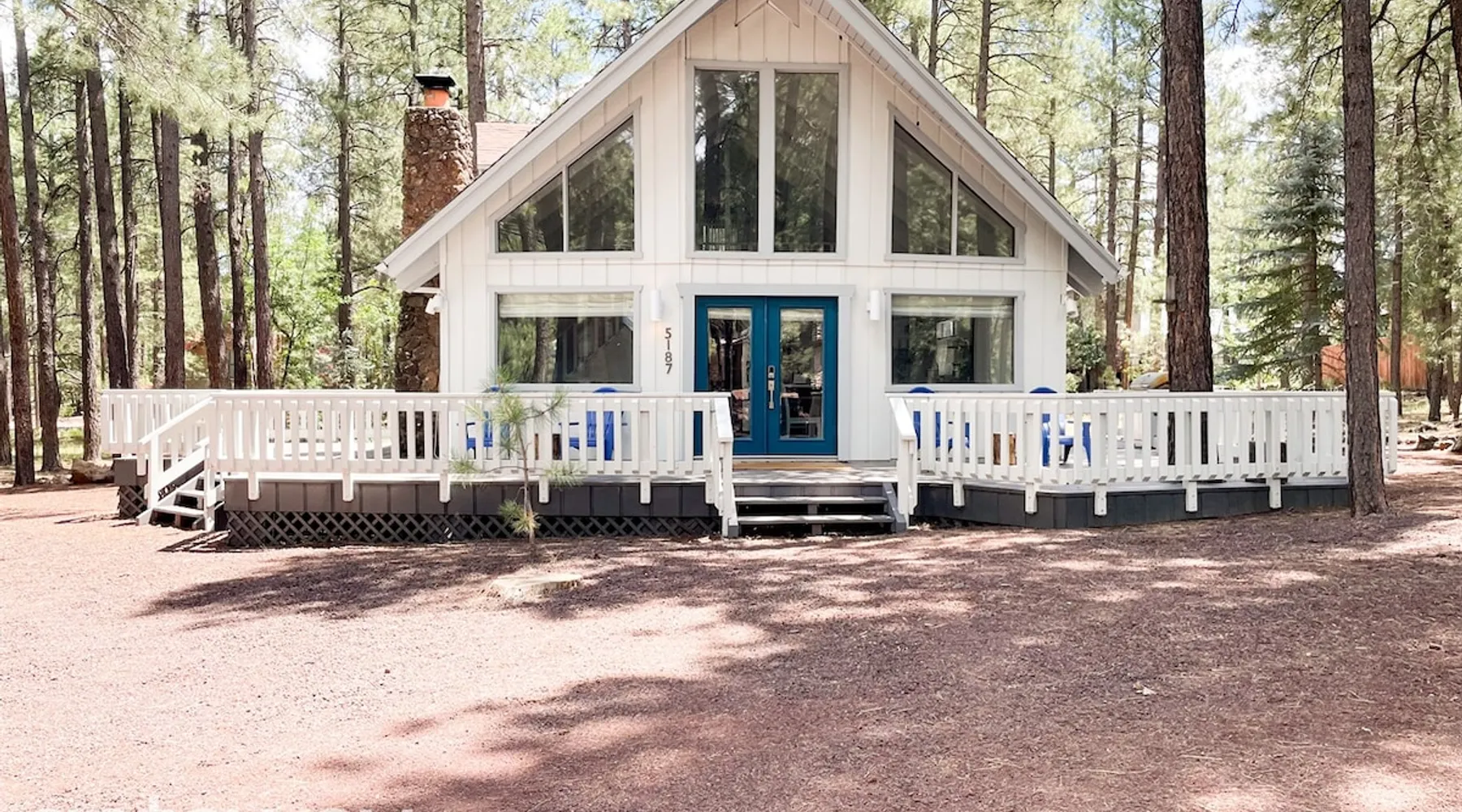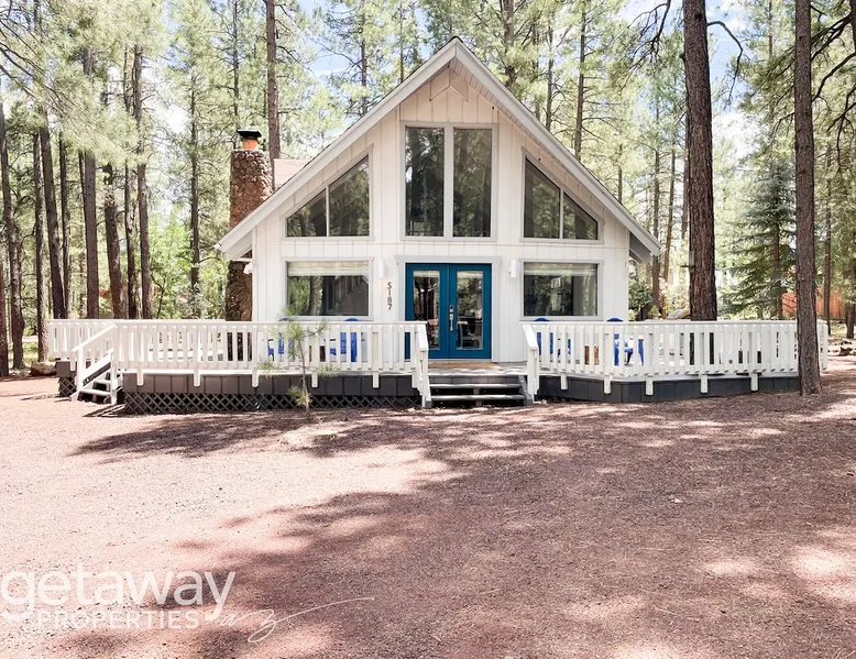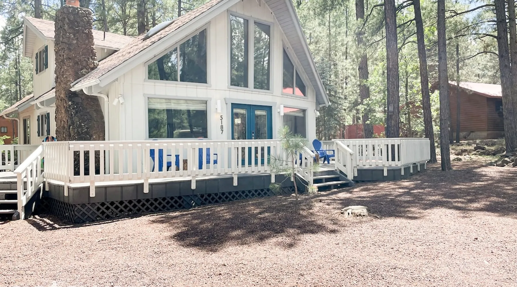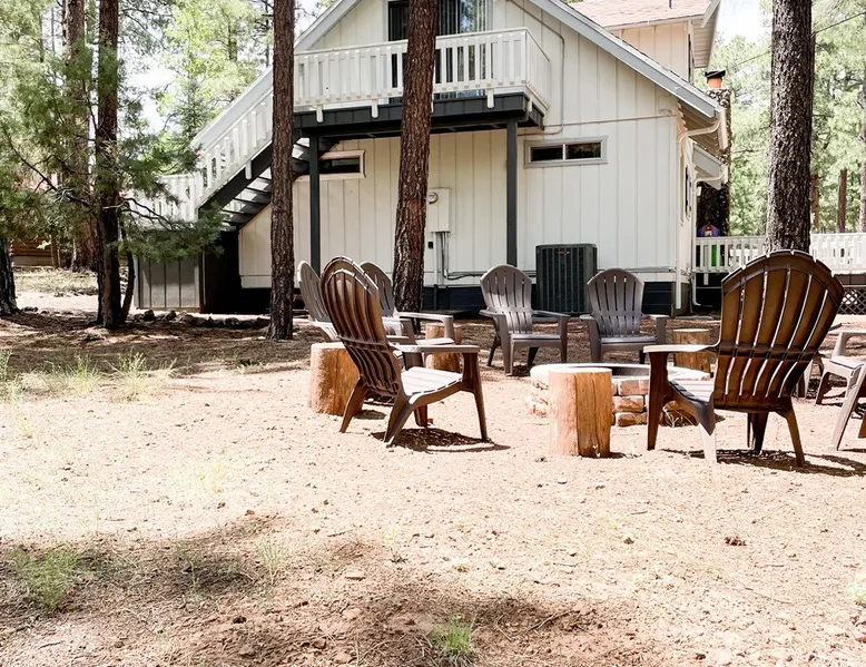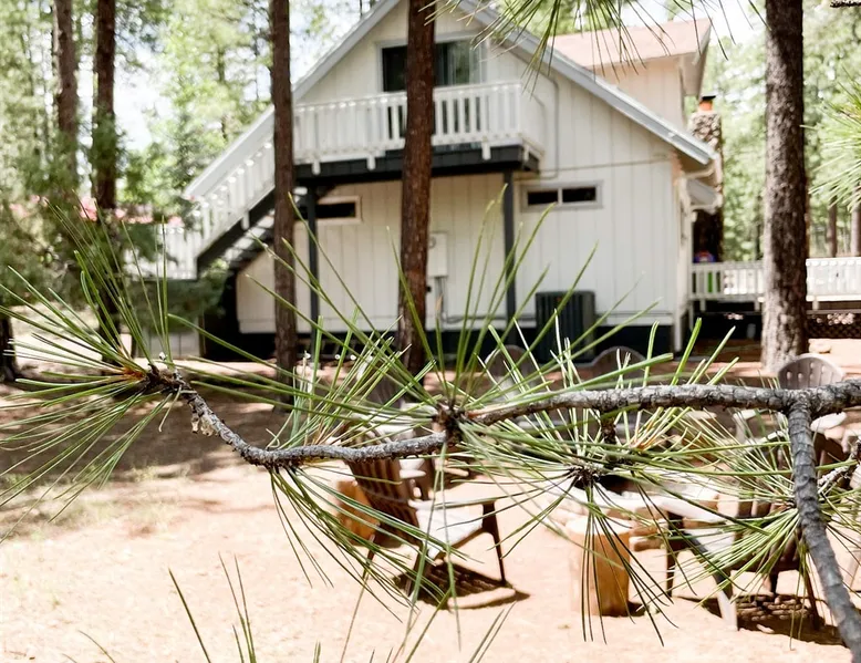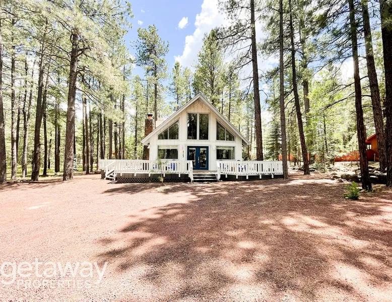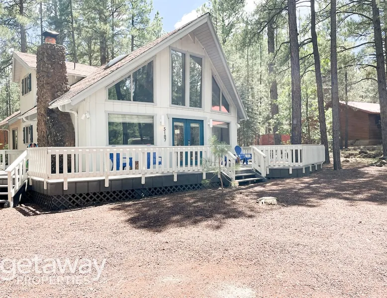 Welcome to your cozy mountain chalet located in Pinetop, AZ. This 3-bedroom, 2-bathroom home is designed to provide you with inviting forest views and charming A-frame architecture, making your stay truly exceptional. THIS RESIDENCE STRICTLY PROHIBITS PETS. Bringing pets into the home may result in the loss of your deposit and additional cleaning charges, including carpet cleaning and other tasks required by the cleaning staff. The space ⭑Master Bedroom:⭑ ✔ Spacious upstairs retreat with private balcony and direct stairs to the wraparound porch ✔ Comfortable bed with fresh linens, extra pillows, and blankets ✔ Ceiling fan, closet storage, and mountain-inspired décor for a peaceful night’s sleep ⭑Second Bedroom:⭑ ✔ Cozy main-floor room with soft lighting and easy access to a full bathroom ✔ Linens provided, ample clothing storage, and extra blankets ⭑Living Room:⭑ ✔ Warm, inviting space perfect for relaxing after hiking, fishing, or skiing ✔ Comfortable seating, smart TV with streaming, and central heating & cooling ✔ Fireplace for cozy winter nights in the mountains ⭑Kitchen and Dining Area:⭑ ✔ Fully equipped kitchen with refrigerator, freezer, stove, oven, microwave, and dishwasher ✔ Coffee maker, toaster, blender, pots & pans, baking sheet, dishes & utensils for homemade meals ✔ Kitchen island and dining table for family dinners and game nights ⭑Bathrooms:⭑ ✔ Two full bathrooms, one on each level for added convenience ✔ Stocked with shampoo, conditioner, body soap, shower gel, hair dryer, towels, and toilet paper ⭑Outdoor Space:⭑ ✔ Spacious wraparound porch with Adirondack chairs, picnic table, and side tables for dining al fresco ✔ Private upstairs balcony with seating for morning coffee or stargazing over the White Mountains ✔ Outdoor fire pit with roasting sticks for s’mores ✔ Barbecue grill for mountain cookouts Other things to note ⭑Additional Amenities:⭑ ✔ EV/RV Level 2 outlet (bring your own cord) — rare in Pinetop Lakes rentals ✔ Washing machine and clothes dryer ✔ Iron & board, hangers, and basic soaps ✔ Private entrance ⭑Safety and Security:⭑ ✔ Private entrance and secure locks ⭑Entertainment and Connectivity:⭑ ✔ Smart TV with streaming ✔ High-speed internet and Wi-Fi ⭑Heating and Cooling:⭑ ✔ Central heating, air conditioning, ceiling fans, and fireplace ⭑Parking and Facilities:⭑ ✔ Onsite parking with EV/RV charging outlet ✔ Close to hiking and biking trails, ski slopes, and fishing lakes ⭑Services:⭑ ✔ Self check-in available ✔ Seasonal discounts on request Your stay at The Chalet '74 promises adventurous days, cozy evenings, and unforgettable memories in the Arizona White Mountains. Book now and start your Pinetop Lakes getaway in style! This property has special local compliance requirements which include a signed rental agreement, ID verification, and a security hold of $1000 (which is not a traditional security deposit, just a pending transaction). As an optional alternative to the security hold, you may opt in to purchase a non-refundable damage waiver provided by a third-party insurance company. The optional damage waiver is $57 for stays up to 10 nights, with an additional $6 per day for stays longer than 10 nights. Damage waiver purchases are optional. To make this process easy for you, we use a secure and very simple, app-free platform called Happy Guest. It is not an app, and you do not have to sign up for an account - it’s a safe and secure website. It also gives you a guest portal with all the info about the home and all of my favorite local spots. Your guest portal includes advertisements with third-party upgrades that you may want to enhance your stay. These upgrades are optional and include: Late checkout - $40 per hour If you have any questions, just message us anytime! Happy to help!