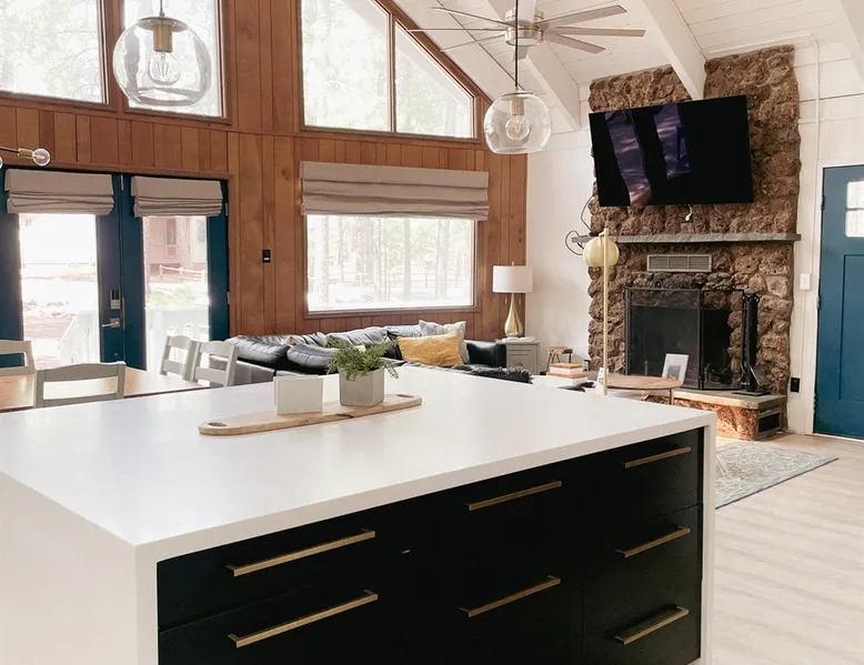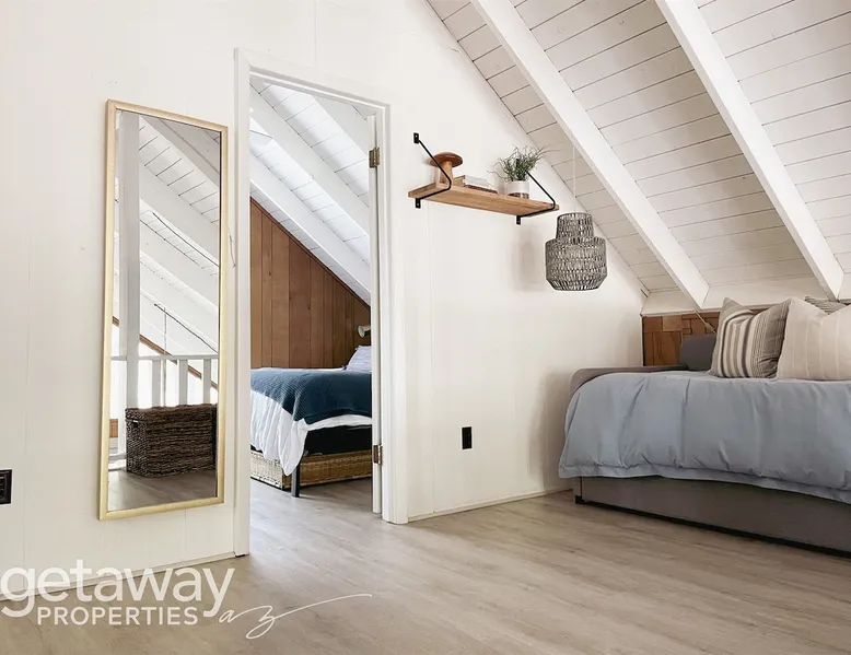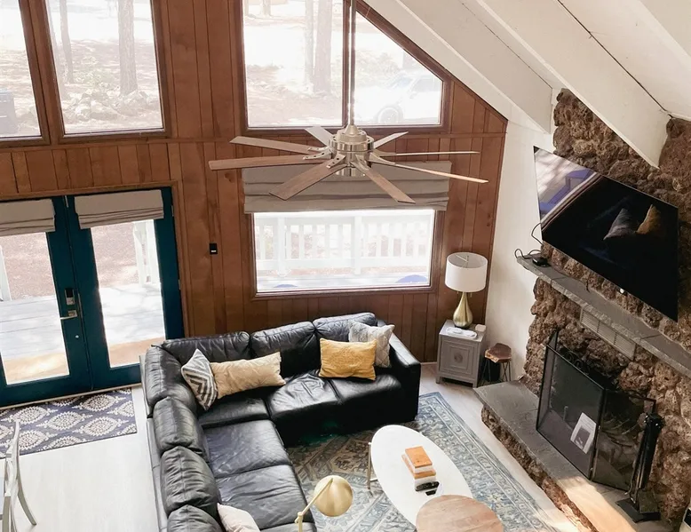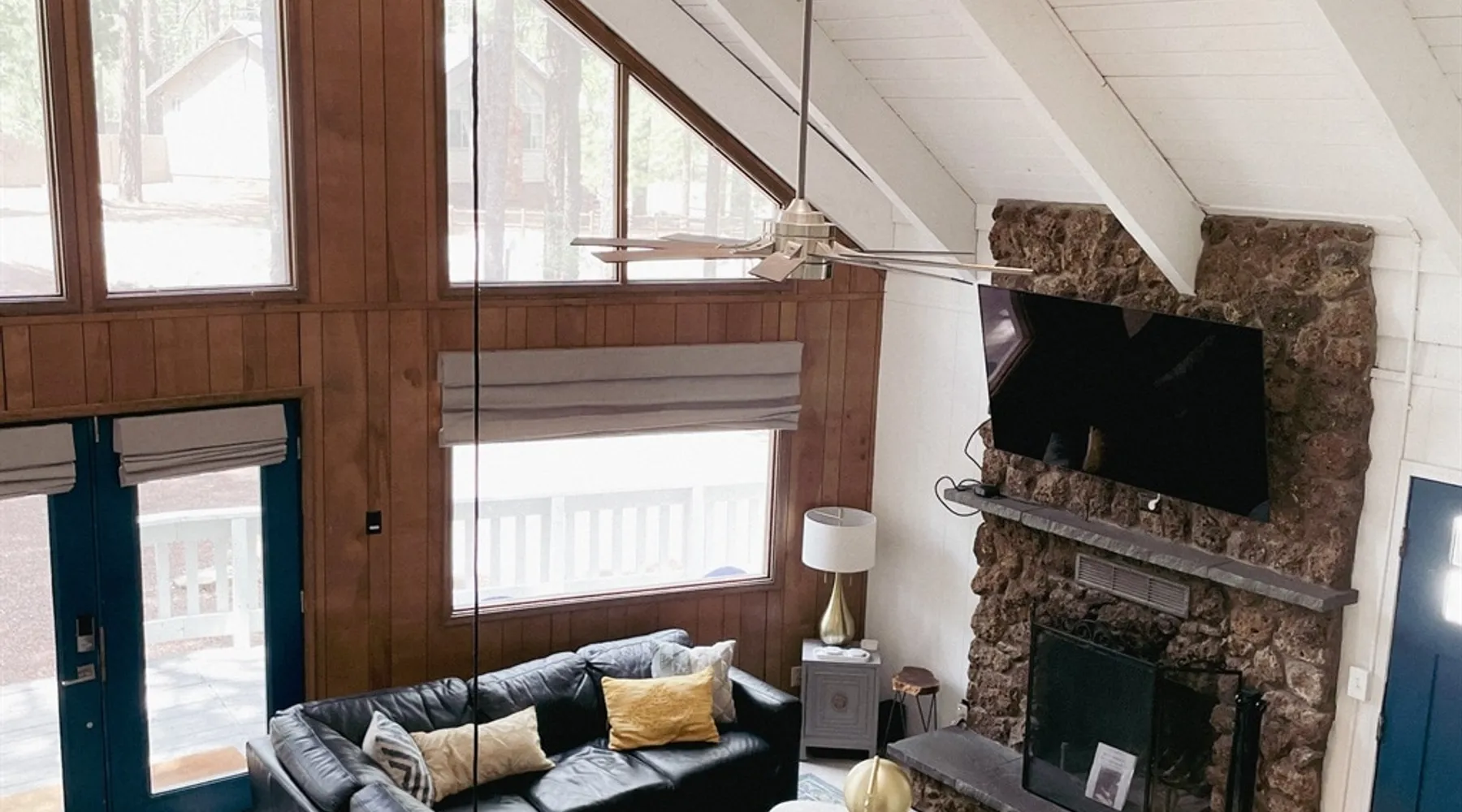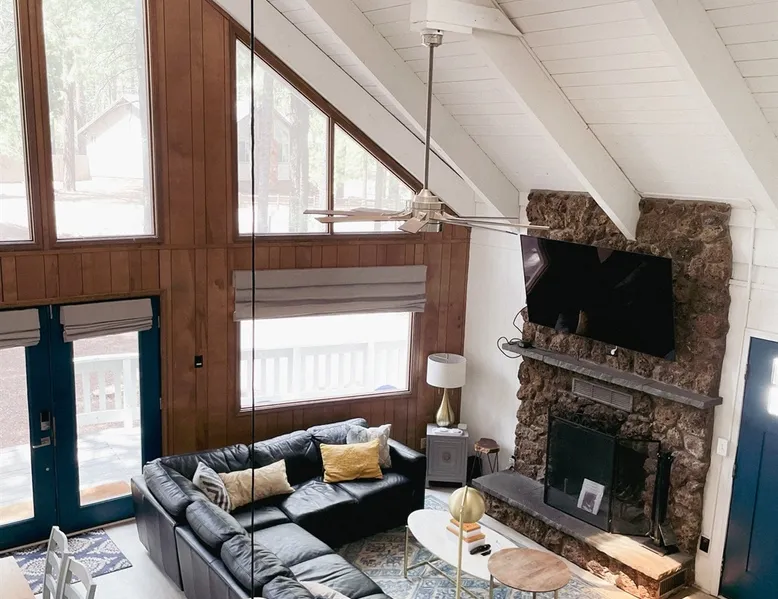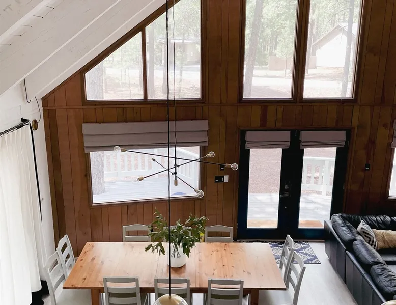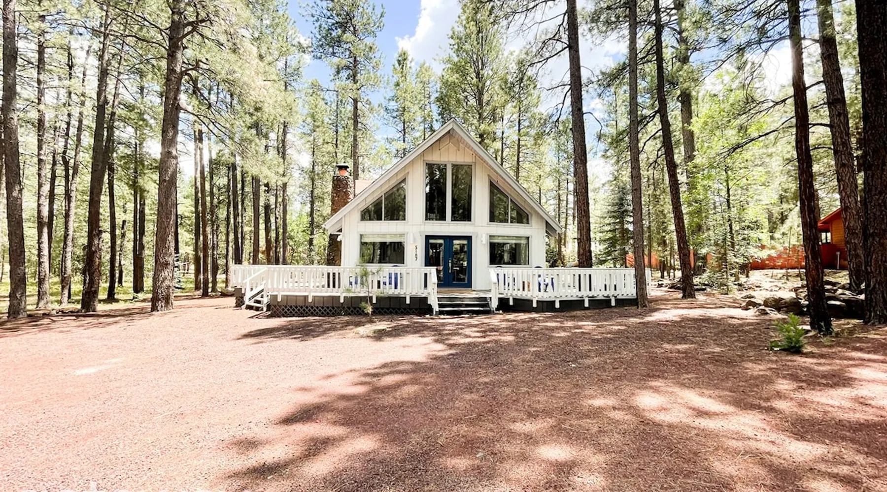 Welcome to your cozy mountain chalet located in Pinetop, AZ. This 3-bedroom, 2-bathroom home is designed to provide you with inviting forest views and charming A-frame architecture, making your stay truly exceptional. THIS RESIDENCE STRICTLY PROHIBITS PETS. Bringing pets into the home may result in the loss of your deposit and additional cleaning charges, including carpet cleaning and other tasks required by the cleaning staff. The space ⭑Master Bedroom:⭑ ✔ Spacious upstairs retreat with private balcony and direct stairs to the wraparound porch ✔ Comfortable bed with fresh linens, extra pillows, and blankets ✔ Ceiling fan, closet storage, and mountain-inspired décor for a peaceful night’s sleep ⭑Second Bedroom:⭑ ✔ Cozy main-floor room with soft lighting and easy access to a full bathroom ✔ Linens provided, ample clothing storage, and extra blankets ⭑Living Room:⭑ ✔ Warm, inviting space perfect for relaxing after hiking, fishing, or skiing ✔ Comfortable seating, smart TV with streaming, and central heating & cooling ✔ Fireplace for cozy winter nights in the mountains ⭑Kitchen and Dining Area:⭑ ✔ Fully equipped kitchen with refrigerator, freezer, stove, oven, microwave, and dishwasher ✔ Coffee maker, toaster, blender, pots & pans, baking sheet, dishes & utensils for homemade meals ✔ Kitchen island and dining table for family dinners and game nights ⭑Bathrooms:⭑ ✔ Two full bathrooms, one on each level for added convenience ✔ Stocked with shampoo, conditioner, body soap, shower gel, hair dryer, towels, and toilet paper ⭑Outdoor Space:⭑ ✔ Spacious wraparound porch with Adirondack chairs, picnic table, and side tables for dining al fresco ✔ Private upstairs balcony with seating for morning coffee or stargazing over the White Mountains ✔ Outdoor fire pit with roasting sticks for s’mores ✔ Barbecue grill for mountain cookouts Other things to note ⭑Additional Amenities:⭑ ✔ EV/RV Level 2 outlet (bring your own cord) — rare in Pinetop Lakes rentals ✔ Washing machine and clothes dryer ✔ Iron & board, hangers, and basic soaps ✔ Private entrance ⭑Safety and Security:⭑ ✔ Private entrance and secure locks ⭑Entertainment and Connectivity:⭑ ✔ Smart TV with streaming ✔ High-speed internet and Wi-Fi ⭑Heating and Cooling:⭑ ✔ Central heating, air conditioning, ceiling fans, and fireplace ⭑Parking and Facilities:⭑ ✔ Onsite parking with EV/RV charging outlet ✔ Close to hiking and biking trails, ski slopes, and fishing lakes ⭑Services:⭑ ✔ Self check-in available ✔ Seasonal discounts on request Your stay at The Chalet '74 promises adventurous days, cozy evenings, and unforgettable memories in the Arizona White Mountains. Book now and start your Pinetop Lakes getaway in style! This property has special local compliance requirements which include a signed rental agreement, ID verification, and a security hold of $1000 (which is not a traditional security deposit, just a pending transaction). As an optional alternative to the security hold, you may opt in to purchase a non-refundable damage waiver provided by a third-party insurance company. The optional damage waiver is $57 for stays up to 10 nights, with an additional $6 per day for stays longer than 10 nights. Damage waiver purchases are optional. To make this process easy for you, we use a secure and very simple, app-free platform called Happy Guest. It is not an app, and you do not have to sign up for an account - it’s a safe and secure website. It also gives you a guest portal with all the info about the home and all of my favorite local spots. Your guest portal includes advertisements with third-party upgrades that you may want to enhance your stay. These upgrades are optional and include: Late checkout - $40 per hour If you have any questions, just message us anytime! Happy to help!