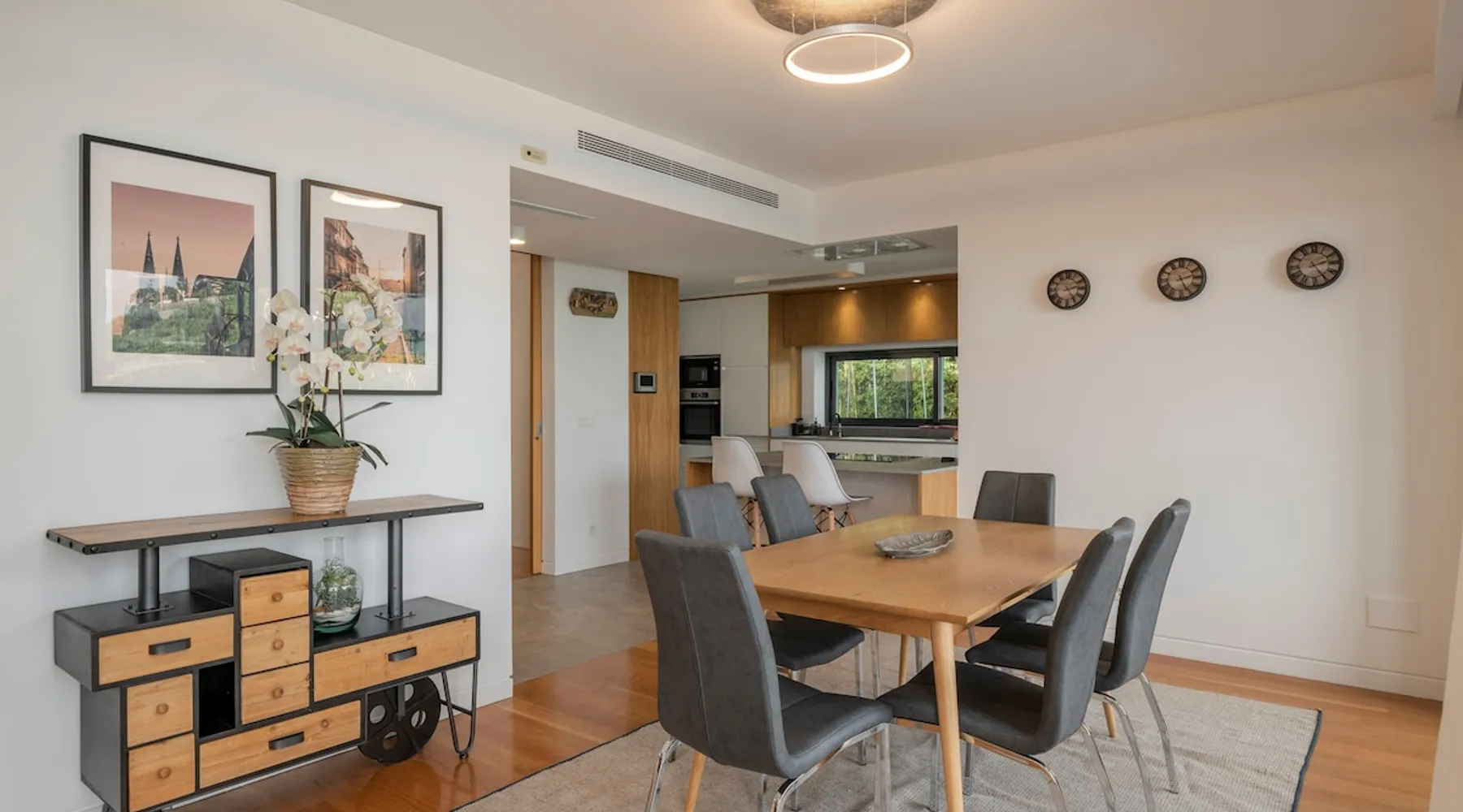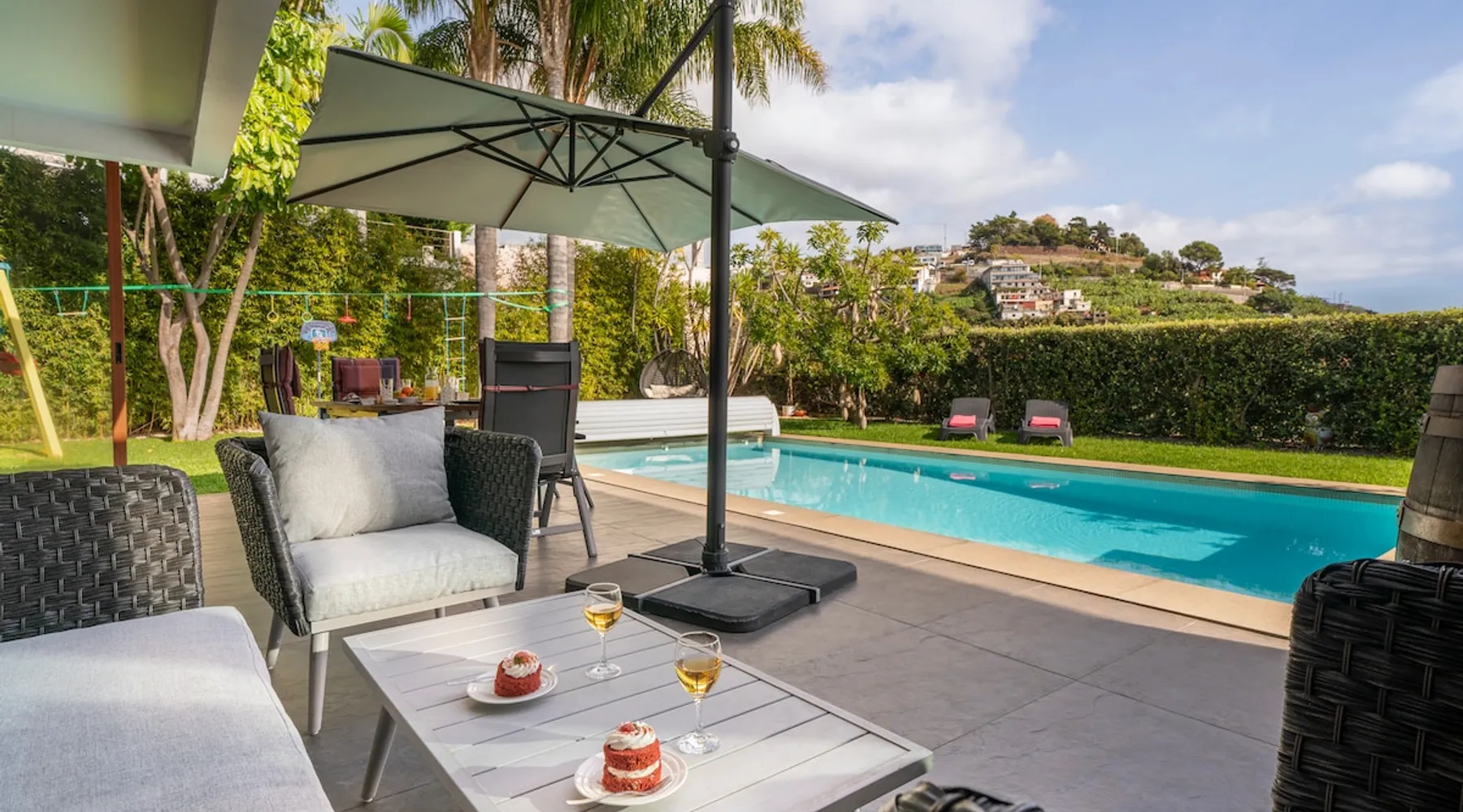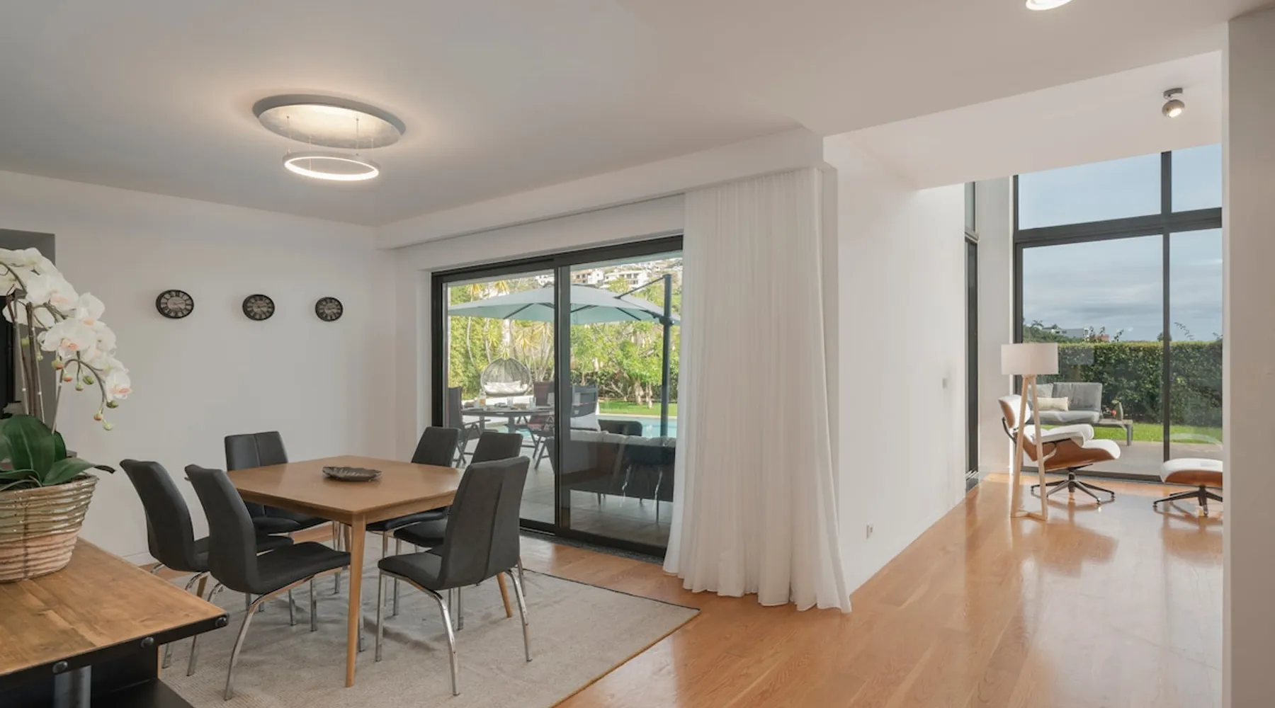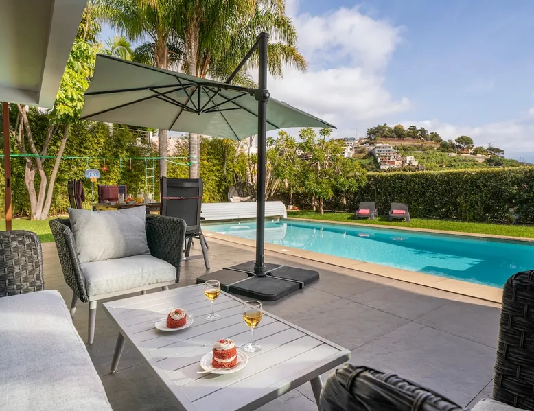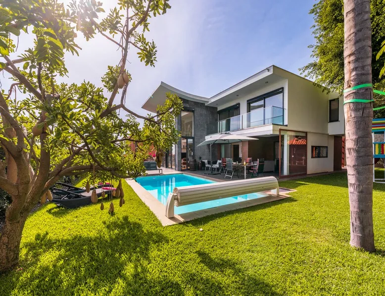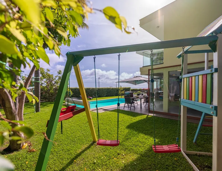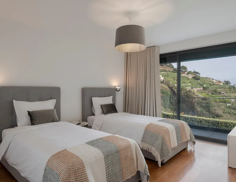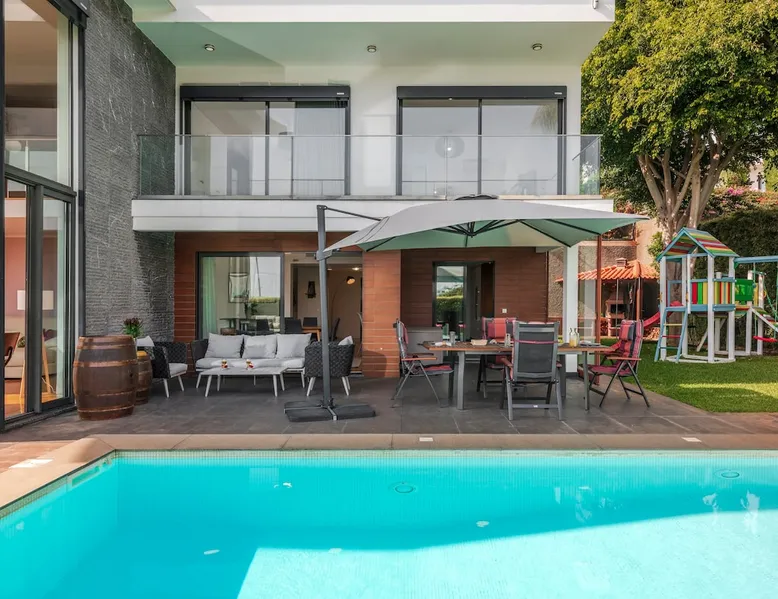 Luxury 3 bedroom villa, with an excellent outdoor space, heated pool included, garden, barbecue and small children's space. Contemporary decor and relaxing atmosphere in earthy tones. It is located in a quiet and sunny area, near the center of Funchal and meets all the conditions and facilities essential for a fantastic vacation. The space Modern and charming 3 bedroom villa, with decoration in elegant earth tones, located in a sunny and very quiet area. House with three bedrooms (2 double beds and two single beds), with air conditioning and private bathrooms, two of them with shower and another with shower and bath. Property with plenty of natural light, fully equipped kitchen, access to the outside and in a shared space with the living room and dining area. Social bathroom available in this area. It provides a small nook with children's furniture for children, as well as a work area with access to the outside. The garden is the ex-libris, which offers different seating areas for different moments throughout the stay. A swimming pool, solarium space, children's area with a little house, swings and slide, barbecue, a dining table and a pleasant and inviting seating area. The sea view is the extra and deserves to be enjoyed from the balcony of the bedrooms. This property is prepared to host a maximum of 6 people. Parking available outside and inside the property. Wi-Fi available in all areas. AREA Property located in a distinguished area of Funchal, very quiet, sunny, close to the Piornais and Praia Formosa, which are a 4-minute drive away. The Forum Madeira shopping centre, which has several international brands and restaurants, is a 7-minute drive away. In addition to the nearby options, you can also go to Funchal city centre (10 minutes drive) where you will find a wider variety of restaurants. Also be aware that in the centre of Funchal there are several tourist attractions and information on cultural activities, radical activities, activities linked to nature, whatever the purpose of your visit to Madeira Island. GETTING AROUND The best option to get to the property is by transfer. Ask us to arrange one with our local partners. It's cheaper than the cabs you'll find at the airport. If you rent a car, any navigation app will easily find the address. ACCESS TO PROPERTY You have access to all areas of the property. INTERACTION We are always available to help or answer questions. We do our best to reply all requests. We also have an app for guests with all the important information about the property and other useful information for your stay. OTHER OBSERVATIONS - According to Portuguese law, all guests are required to present a valid ID. (passport or identity card). - Check-in hour must be scheduled in advance. If it is not scheduled within a maximum of 48 hours before, guests will be subject to the availability of our team. - All bed linen and towels are provided. We can also put a baby cot, a high chair and a baby bath if needed, but you should request. There are a first aid kit, extinguishers and fire blanket in the property. ATTENTION Please be advised that a Tourist Fee will be charged to all persons staying overnight in the municipality of Funchal. Thus, all customers staying in tourist resorts and/or accommodation establishments, aged 13 or over, will be charged €2.00 per person/night, up to a maximum of 7 nights and a maximum of €14.00 per person/stay. When you arrive, you will receive a link to pay this municipal tax. RULES We want you to feel at home. We do not ask for more than respect for neighbours and care for the property, in addition to not smoking inside the house. Registration Details 134385/AL