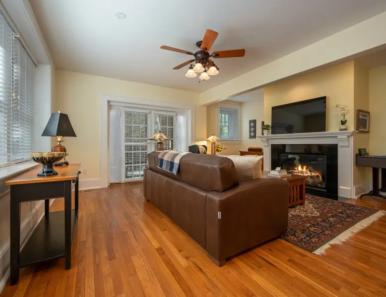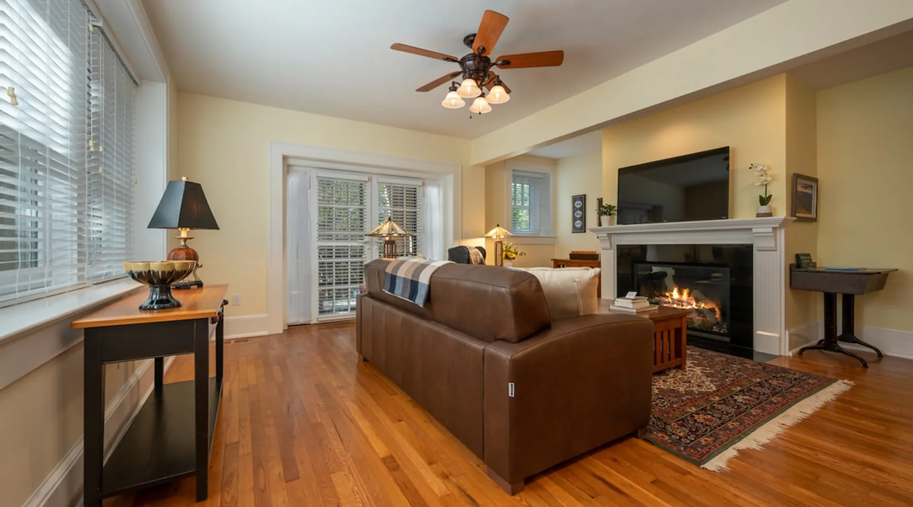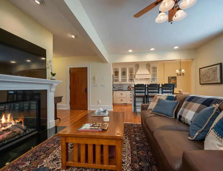 Welcome to Minette’s Downtown Condo! This historic home is the perfect location for those who want to explore the area. You are just steps away from the dining and shopping of charming downtown Hendersonville and a short drive to area attractions like Carl Sandberg’s home, hiking trails, and apple orchards and 30 minutes to lively downtown Asheville. The space This warm and welcoming home is full of architectural details including original hardwood floors, doors and transom windows. The living room with porch access and gas fireplace is the perfect place to spend time with friends and family. Enjoy cooking in the open and bright kitchen with brand new appliances and dining in the breakfast nook. You will be able to rest and relax in the beautifully decorated bedrooms. The primary bedroom has direct access to the deck and a private ensuite bathroom with large walk-in shower and the second guest room has direct bathroom access also with large walk in shower. Minette’s Downtown Condo is the perfect place to relax and recharge while also enjoying all the sights and activities that Hendersonville has to offer! Home Truths: - Sleeps in beds: 4 - Max Occupancy: 6 - There is a queen size sofa bed in the living room - We provide linens for all beds; pillows and sheets for sofa bed are in second guest room closet. - Internet Speed: Download - 500Mbps We openly share post our Cleaning Fees in a manner of full disclosure, as we think this is the most honest and forthright approach with respect to our guests. Our Cleaning Fees are backed by our Clean Guarantee, which reflects the highest level of standards, pristine environments for our guests, and a level of clean that surpasses any other vacation homes; we literally guarantee it! Quiet Policy: Please note that the property is located in a very private and quiet building. Parties, loud noise and unruly behavior are absolutely prohibited, and guests are expected to respect the neighbors and the peace this mountain retreat area affords. Early Check In and/or Late Check Out may be possible, depending on cleaning schedules and other reservations. If it is possible, there may be an additional fee that would be determined based on the time that you wish to check in or out and the seasonal rates. Pets: Many of our guests have allergies so we have maintained a pet-free environment so they can enjoy their vacation without the potential of an allergic reaction. If you have a pet we can recommend some alternatives nearby. Please inquire for details regarding payment, the cancellation policy, military discounts, and trip insurance. Exclusive Special: When you book Minette's Downtown Condo you will receive a special code for discounted tickets to the Biltmore Estate! Contact us for more info. Note: Reservations over 30 days are subject for review prior to acceptance. A separate rental agreement will be required for 90+ day stays. Last Minute Bookings: Reservations made within 7 days of check-in require additional documentation before confirmation.