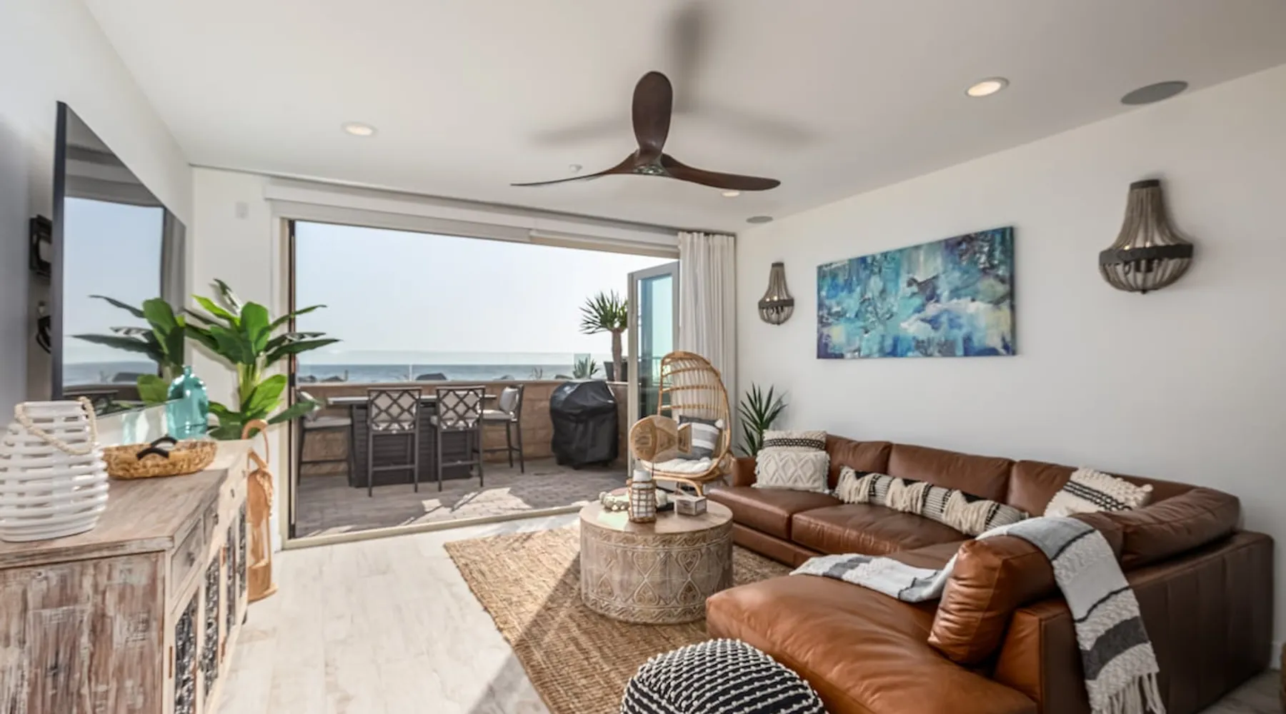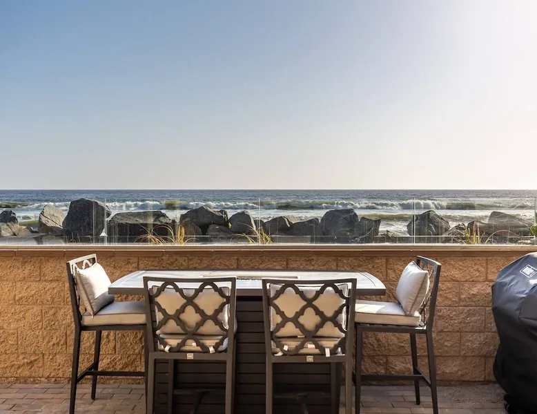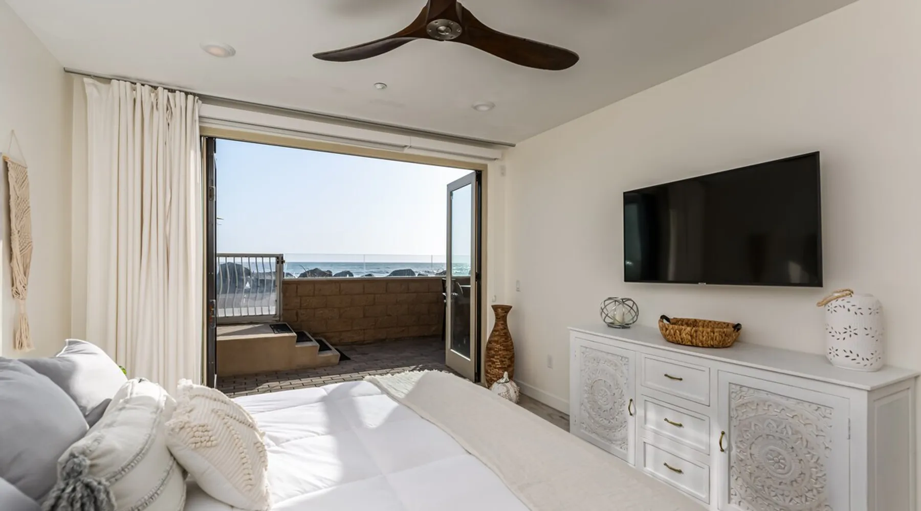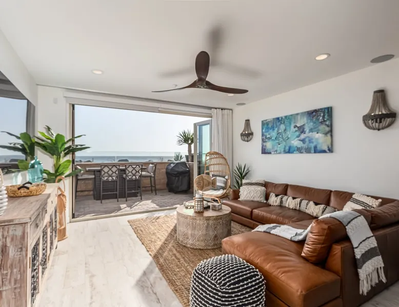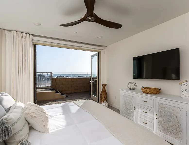 This lower level, Ocean front condo on The Strand is spacious light and bright. Designed for comfort by the shore and stocked with everything you need to enjoy the beach life, just steps away from the sand. Family and dog friendly, this unit is centrally located and walkability to the Pier, Harbor, and Restaurants. Folding glass walls which allow that indoor - outdoor feel to take in the breathtaking views of the beautiful Beaches Oceanside has to offer. The space 2 Bedroom, 2.5 bathrooms, Large open floor plan to give views from the Master bedroom to hallways, Kitchen, dining, and living room. Private laundry room with washer and dryer. Wagon provided with 2 Beach chairs, boogie boards, and 1 umbrella. Other things to note Extra guests staying the night above the 4max allowed, must be pre-approved by host. Failure to request approval for extra guests will result in a $50 charge per guest, per night. 2 extra fold away twin beds are provided for approved extra guest. Early check-in can be requested and MUST BE APPROVED. Fee for early check-in is $100. We do not guarantee early check-in. Approval is based on our booking calendar and cleaning crew schedule. Late check-out can be requested and MUST BE APPROVED. Fee for late check out is $100. We do not guarantee late check out. Approval is based on booking calendar and cleaning crew schedule. A $50 fee will be applied for every hour you have stayed longer than the 10am check out time if not previously approved. Per association rules max10 visitors allowed inside the unit at once. All visitors should be reported to host prior to stay. Also max 2 dogs under 30 lbs allowed to stay upon approval and subject to a non-refundable pet fee of $100 per pet.
