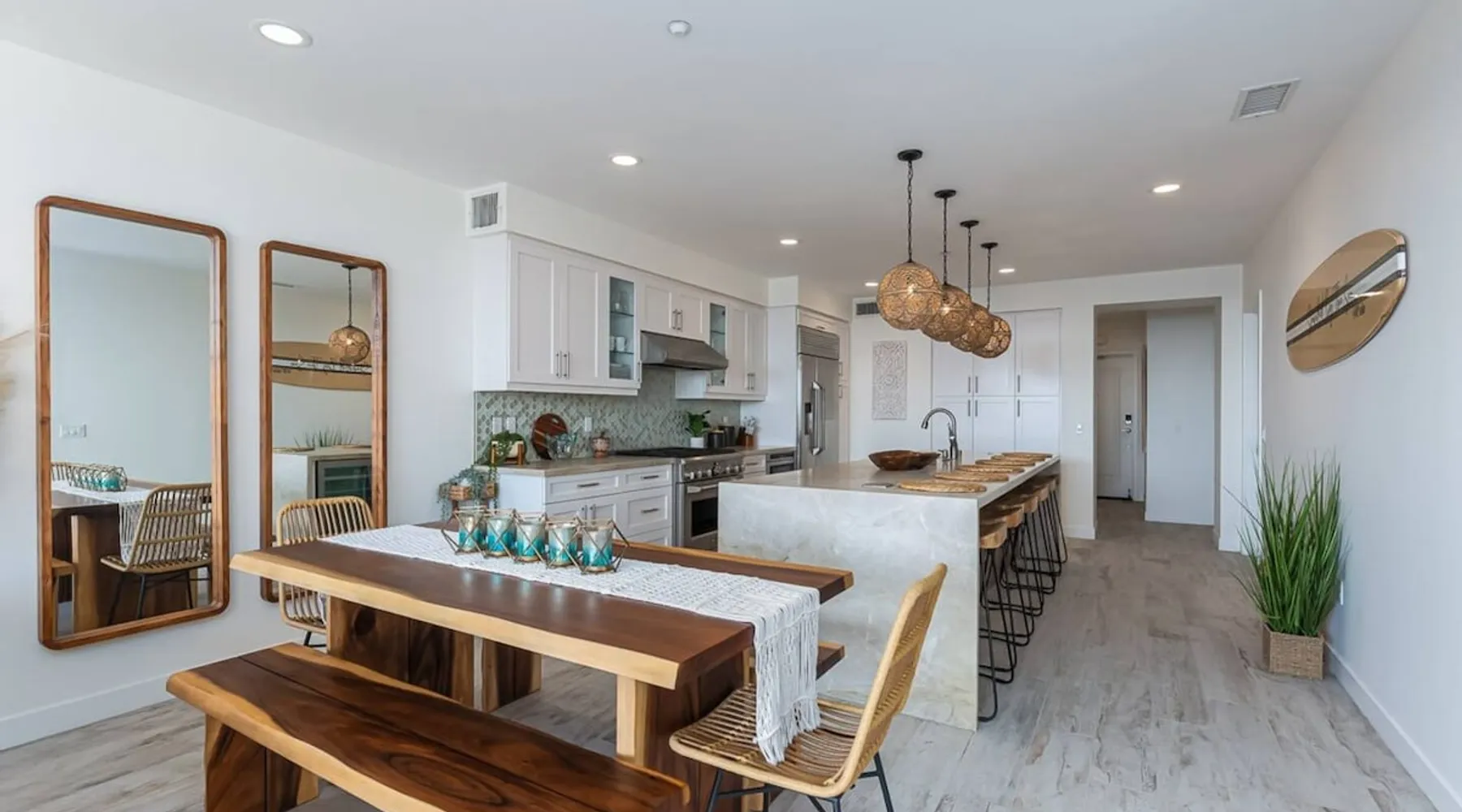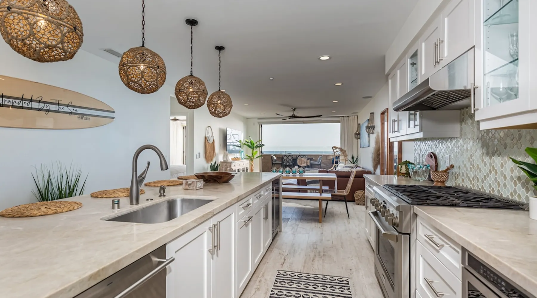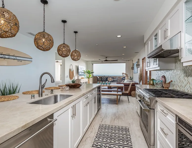 This lower level, Ocean front condo on The Strand is spacious light and bright. Designed for comfort by the shore and stocked with everything you need to enjoy the beach life, just steps away from the sand. Family and dog friendly, this unit is centrally located and walkability to the Pier, Harbor, and Restaurants. Folding glass walls which allow that indoor - outdoor feel to take in the breathtaking views of the beautiful Beaches Oceanside has to offer. The space 2 Bedroom, 2.5 bathrooms, Large open floor plan to give views from the Master bedroom to hallways, Kitchen, dining, and living room. Private laundry room with washer and dryer. Wagon provided with 2 Beach chairs, boogie boards, and 1 umbrella. Other things to note Extra guests staying the night above the 4max allowed, must be pre-approved by host. Failure to request approval for extra guests will result in a $50 charge per guest, per night. 2 extra fold away twin beds are provided for approved extra guest. Early check-in can be requested and MUST BE APPROVED. Fee for early check-in is $100. We do not guarantee early check-in. Approval is based on our booking calendar and cleaning crew schedule. Late check-out can be requested and MUST BE APPROVED. Fee for late check out is $100. We do not guarantee late check out. Approval is based on booking calendar and cleaning crew schedule. A $50 fee will be applied for every hour you have stayed longer than the 10am check out time if not previously approved. Per association rules max10 visitors allowed inside the unit at once. All visitors should be reported to host prior to stay. Also max 2 dogs under 30 lbs allowed to stay upon approval and subject to a non-refundable pet fee of $100 per pet.