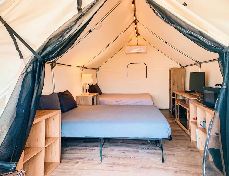#Q Son's Blue River Camp - Glamping Cabin w/ 2 Queen Beds