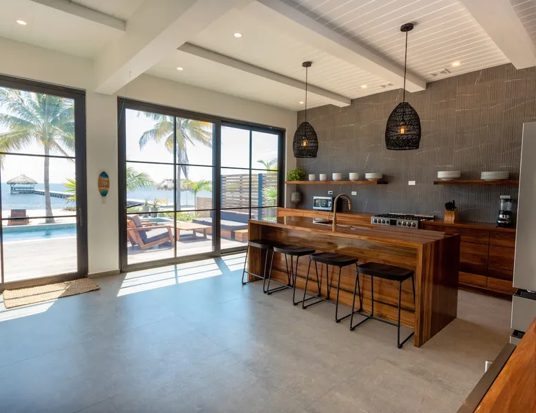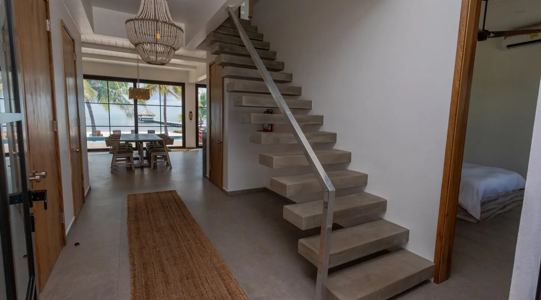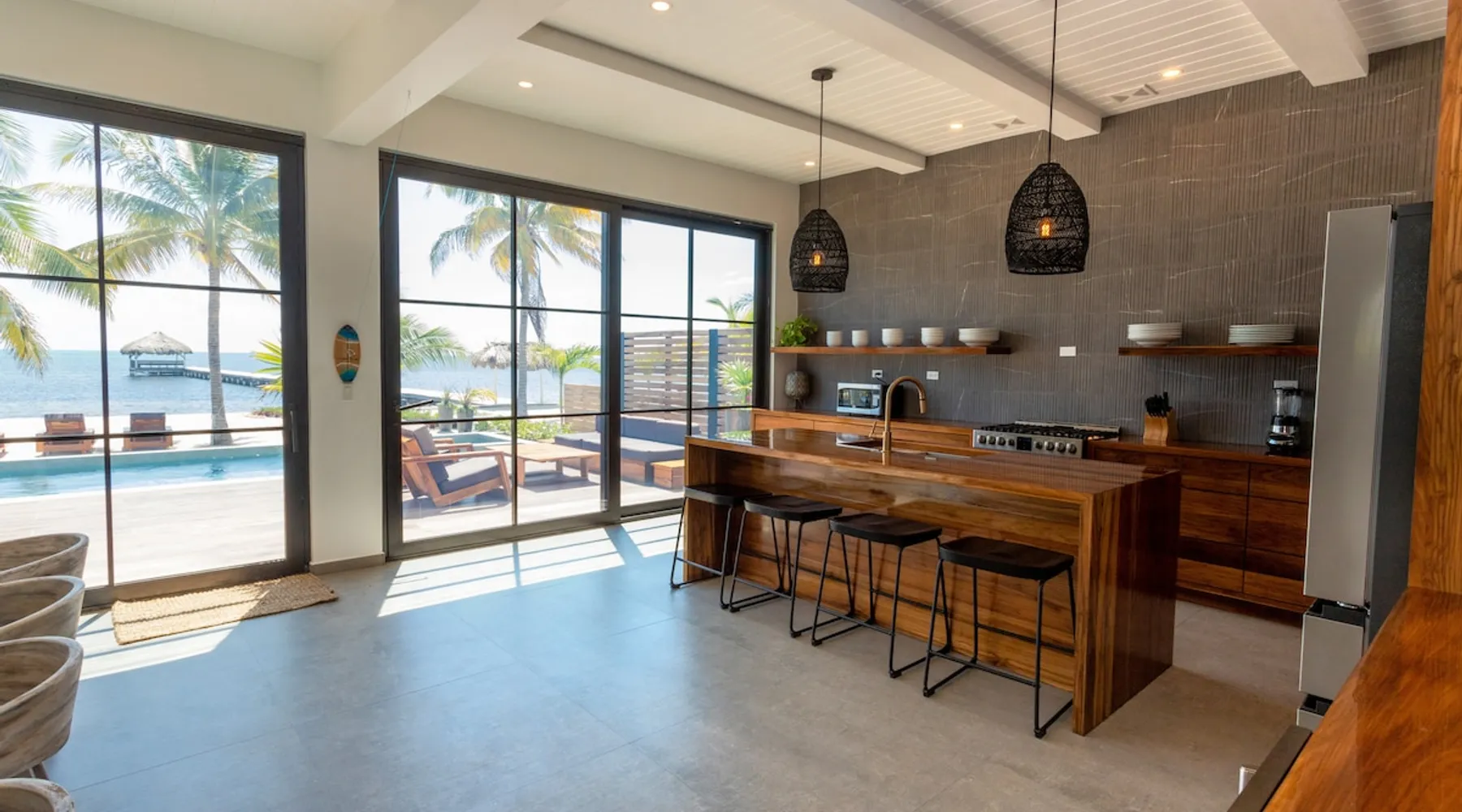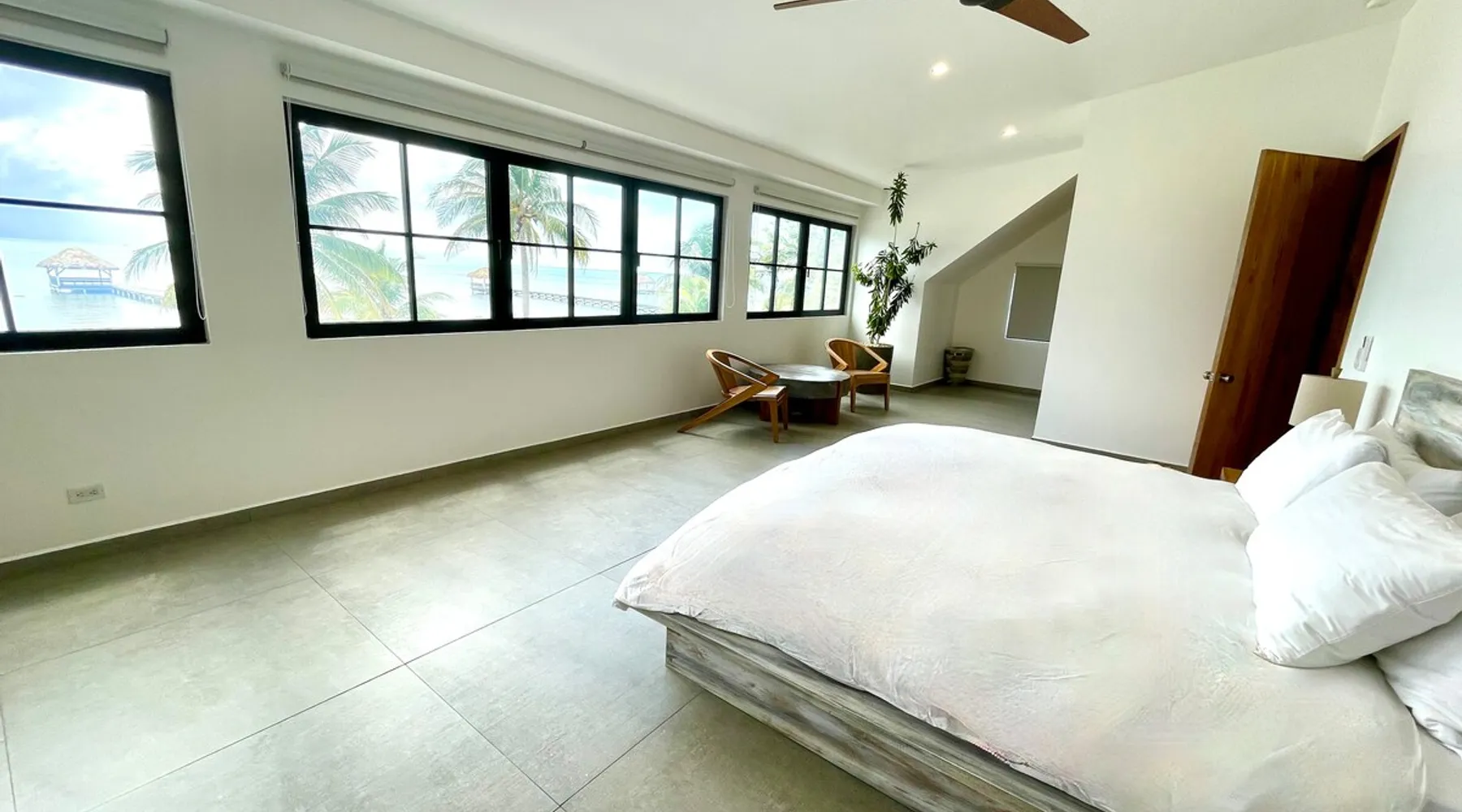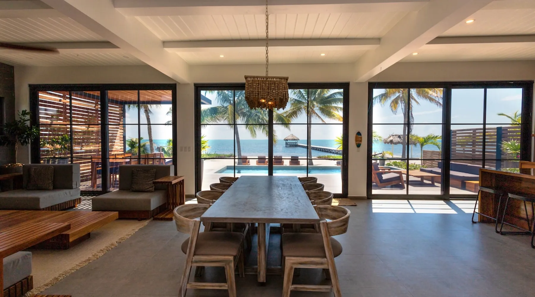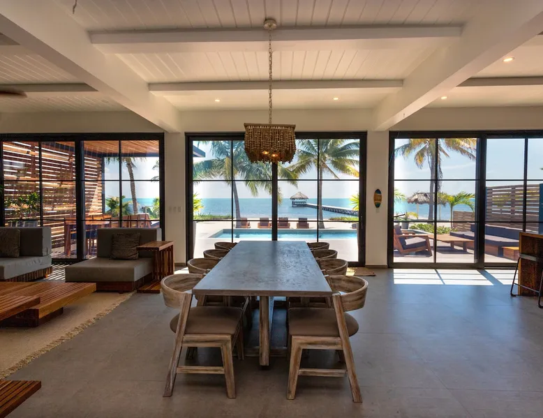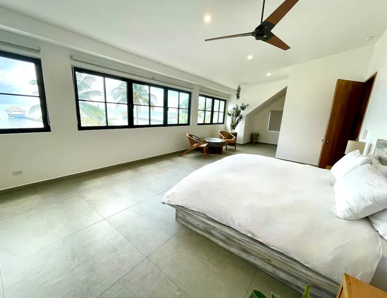 Wilson Point is a gorgeous beachfront home with everything to ensure you have a great island vacation: private pool, gym, beautiful well-stocked kitchen, huge ‘great room’, four bedrooms each with en suite bath, housekeeping, kayaks, ping pong, fire pit, and more! Located in a residential area 3.5 miles south of San Pedro, you're close enough to town yet can have quiet, peaceful evenings at home too. This is a great spot for families & low key vacations with friends! The space Home highlights: * Mini-split air conditioning * Ceiling fans * Wifi * TV * Washer/dryer * Fully equipped kitchen (stainless steel appliances including dishwasher) * Bed linens * Towels: dish, hand, bath & beach * Paper goods (toilet paper, paper towels) * Personal soap, shampoo, conditioner * Iron/board * Hair dryer * Safe *Four bedrooms with en suite baths: Upstairs: 1. Overlooking Caribbean with king bed 2. Sunset views & king bed Ground floor: 3. Queen with TV 4. Queen + upper bunk (bunk for a child only) * Private gym (separate building on property!) *Two 4 person luxury golf carts (extra fee); from an insurance & parking perspective Wilson Point does not permit other carts on the property. Outdoors: * Private pool * Deck with outdoor seating & shaded dining * Hardwood cushioned chairs & loungers * Charcoal grill * Fire pit * Shower * Two double kayaks * Ping pong * Shared pier with palapa, seating, swim ladder (any tour operator will pick you up/drop you off here) Included services: * Daily housekeeping (except Sundays/holidays) * Answer any & all questions both pre-arrival and on-site * Booking of island flights * Recommended private excursions/tours * Coconuts opened with machete on request! At additional expense: * Home cooked Belizean dinner * Massage *Two 4 person golf carts; from an insurance & parking perspective Wilson Point does not permit other carts on the property. Other things to note This house is privately owned & is for low key family & friend vacations; absolutely no partying. The on site staff lives in a small house on the property.