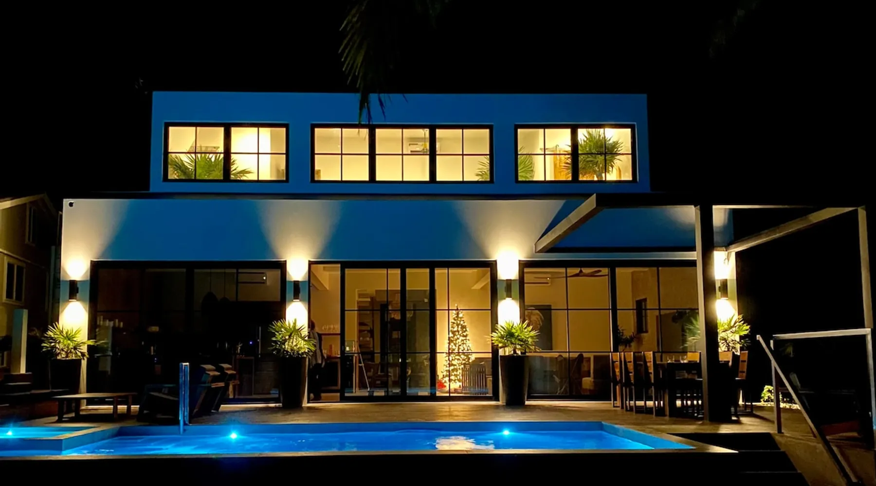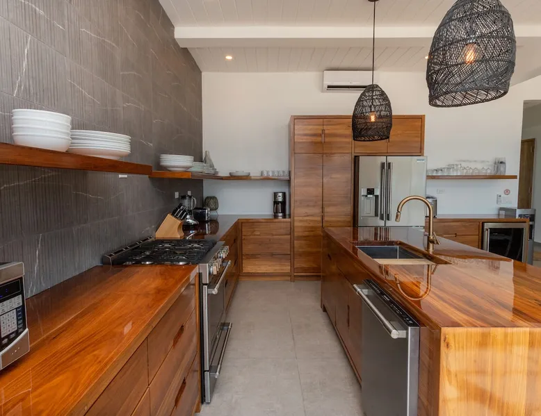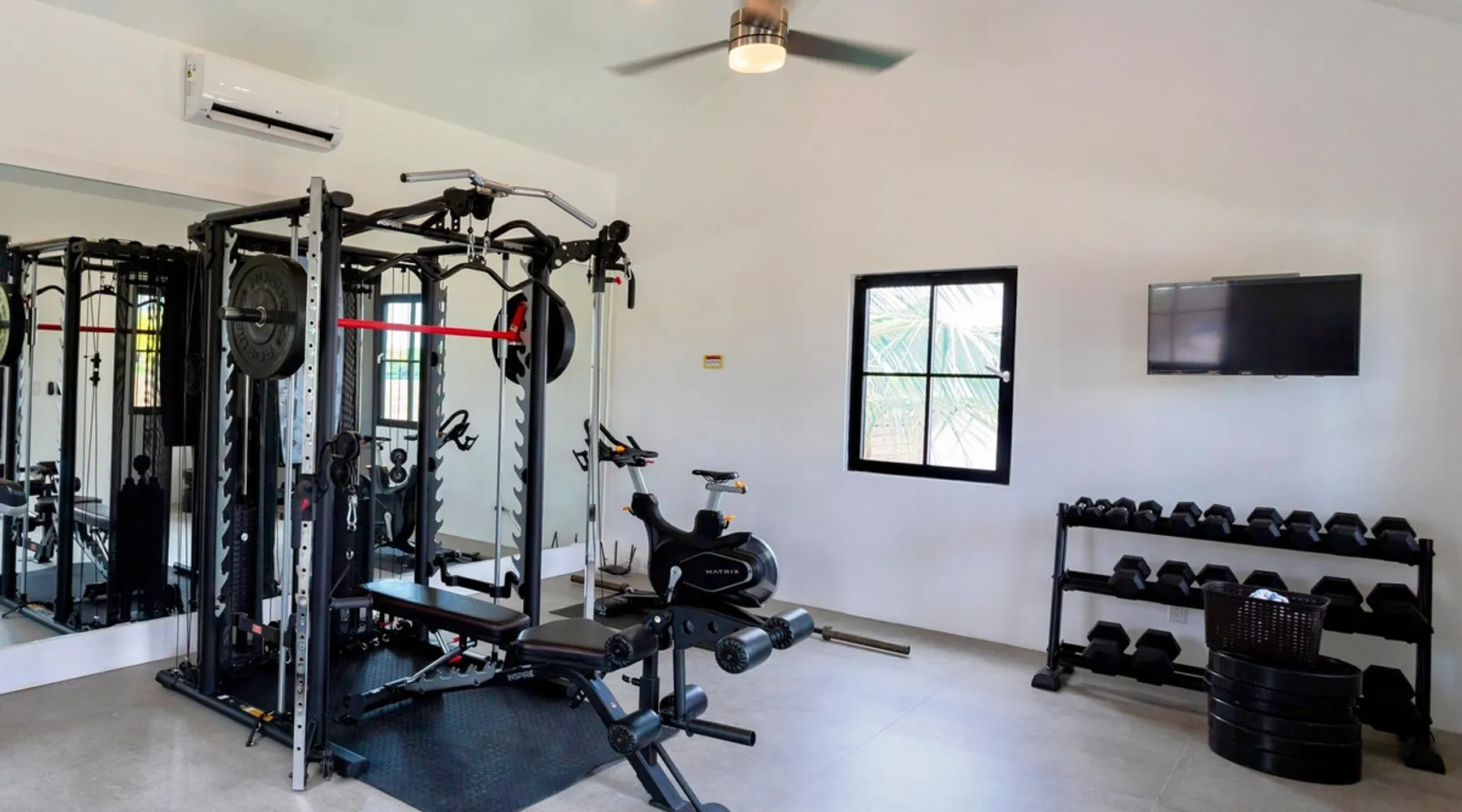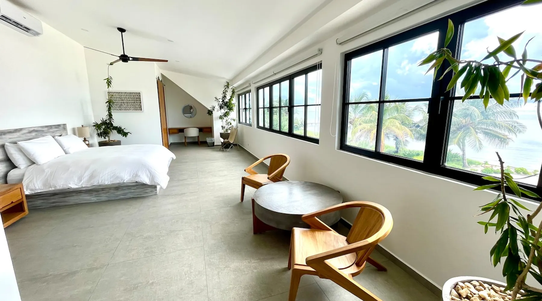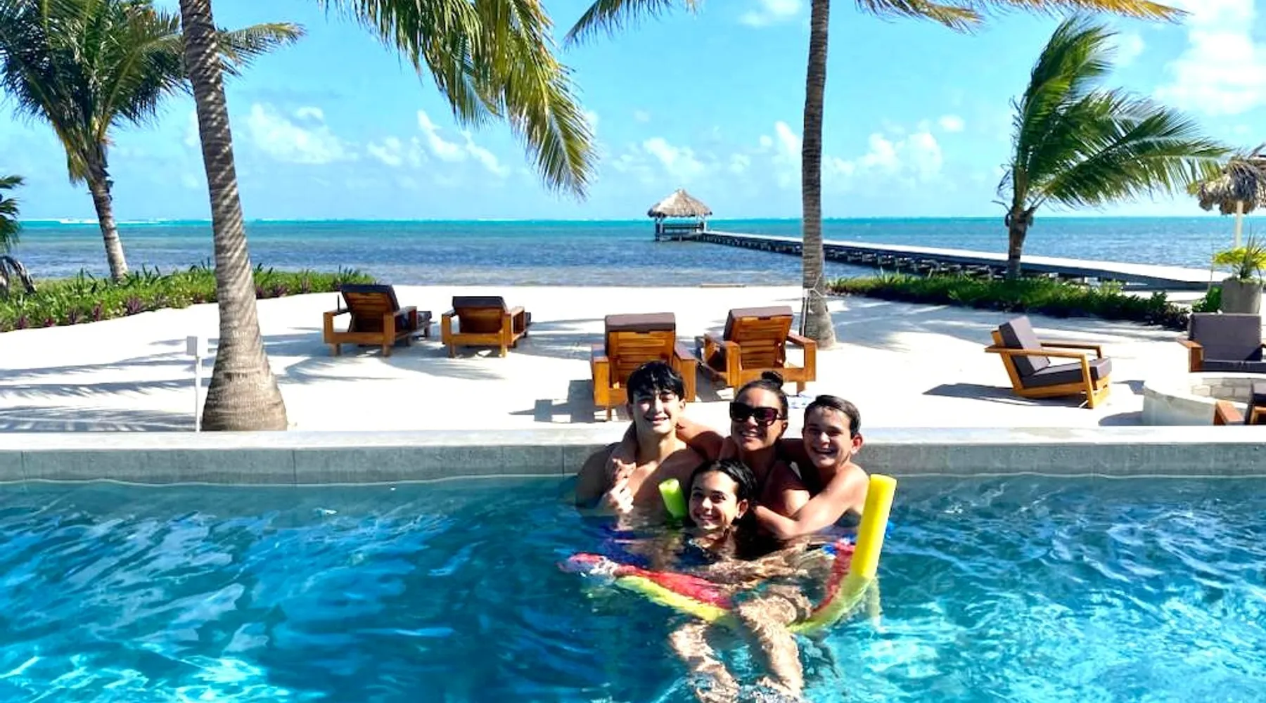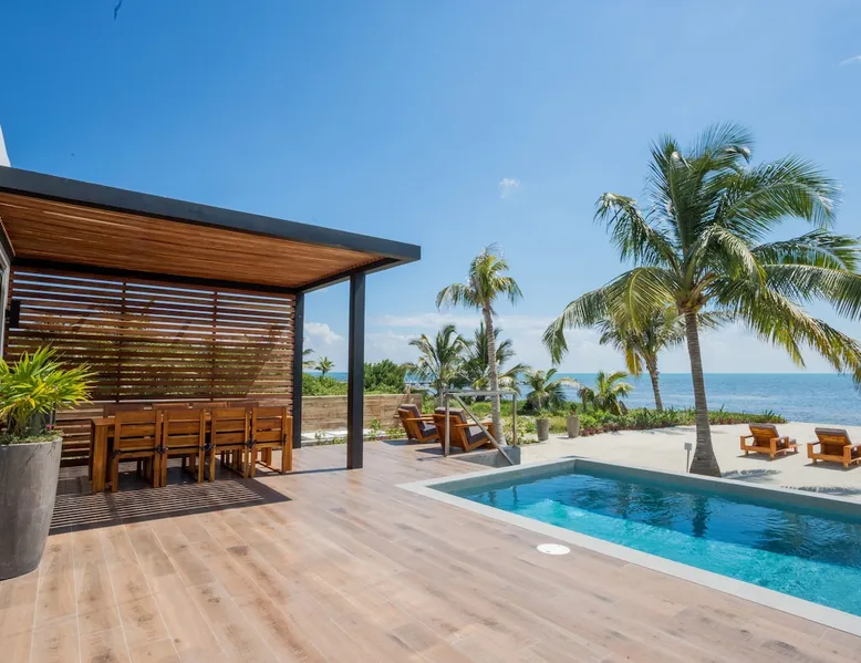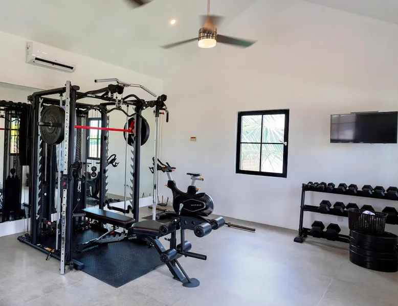 Wilson Point is a gorgeous beachfront home with everything to ensure you have a great island vacation: private pool, gym, beautiful well-stocked kitchen, huge ‘great room’, four bedrooms each with en suite bath, housekeeping, kayaks, ping pong, fire pit, and more! Located in a residential area 3.5 miles south of San Pedro, you're close enough to town yet can have quiet, peaceful evenings at home too. This is a great spot for families & low key vacations with friends! The space Home highlights: * Mini-split air conditioning * Ceiling fans * Wifi * TV * Washer/dryer * Fully equipped kitchen (stainless steel appliances including dishwasher) * Bed linens * Towels: dish, hand, bath & beach * Paper goods (toilet paper, paper towels) * Personal soap, shampoo, conditioner * Iron/board * Hair dryer * Safe *Four bedrooms with en suite baths: Upstairs: 1. Overlooking Caribbean with king bed 2. Sunset views & king bed Ground floor: 3. Queen with TV 4. Queen + upper bunk (bunk for a child only) * Private gym (separate building on property!) *Two 4 person luxury golf carts (extra fee); from an insurance & parking perspective Wilson Point does not permit other carts on the property. Outdoors: * Private pool * Deck with outdoor seating & shaded dining * Hardwood cushioned chairs & loungers * Charcoal grill * Fire pit * Shower * Two double kayaks * Ping pong * Shared pier with palapa, seating, swim ladder (any tour operator will pick you up/drop you off here) Included services: * Daily housekeeping (except Sundays/holidays) * Answer any & all questions both pre-arrival and on-site * Booking of island flights * Recommended private excursions/tours * Coconuts opened with machete on request! At additional expense: * Home cooked Belizean dinner * Massage *Two 4 person golf carts; from an insurance & parking perspective Wilson Point does not permit other carts on the property. Other things to note This house is privately owned & is for low key family & friend vacations; absolutely no partying. The on site staff lives in a small house on the property.