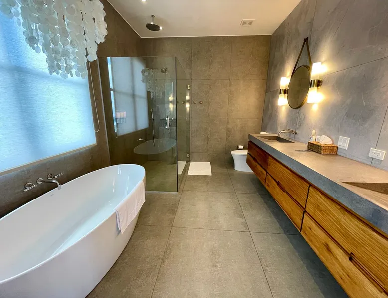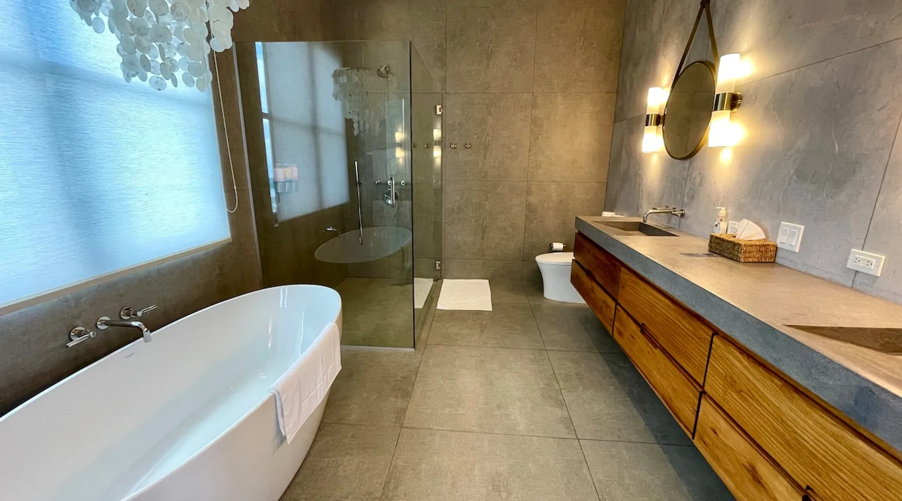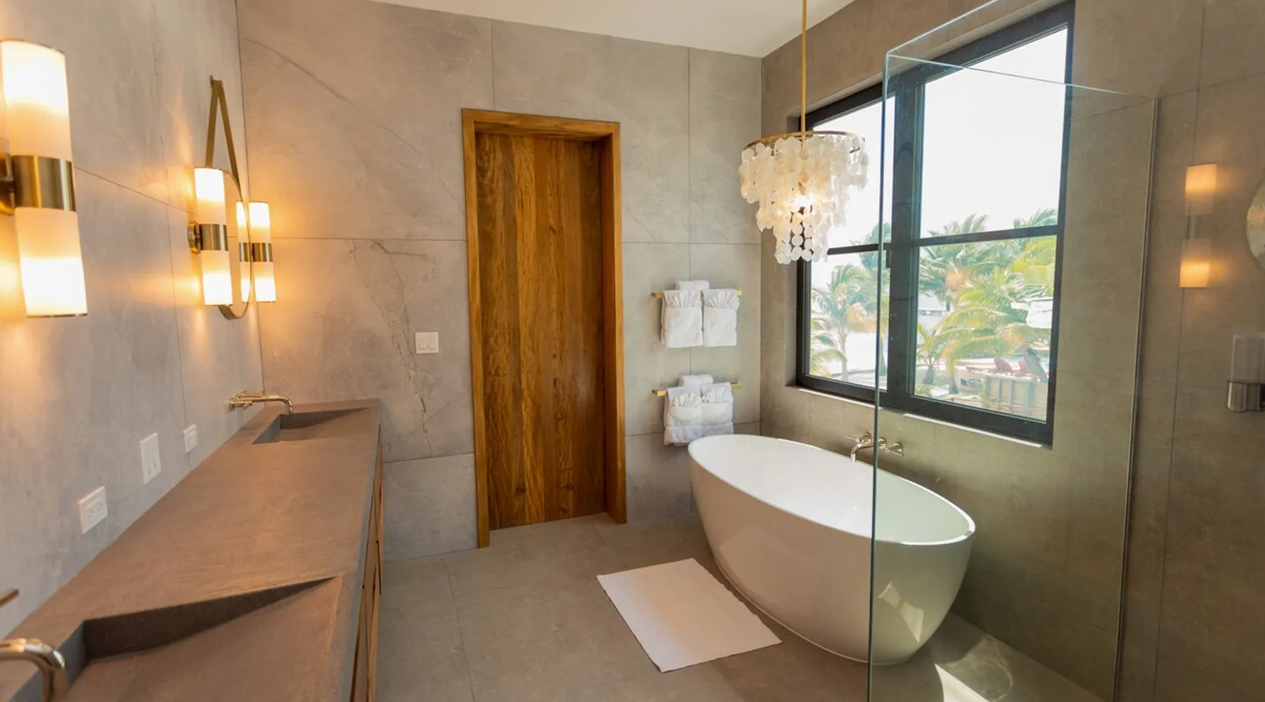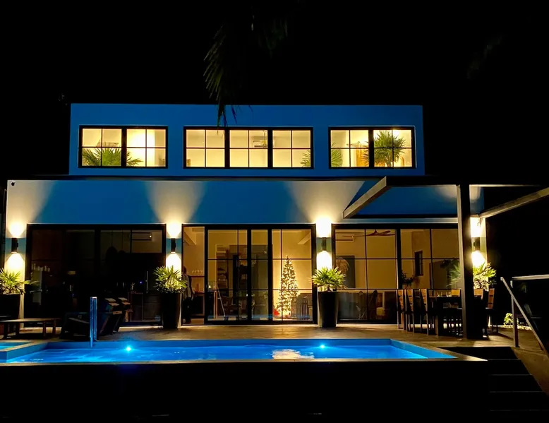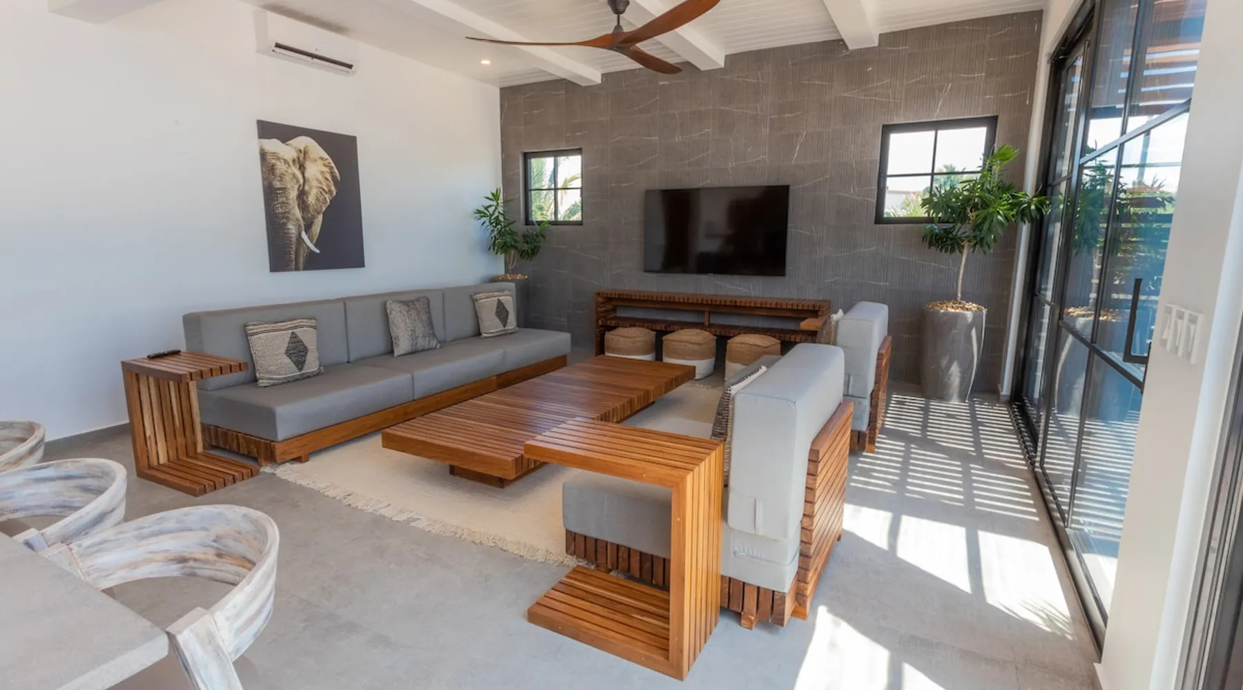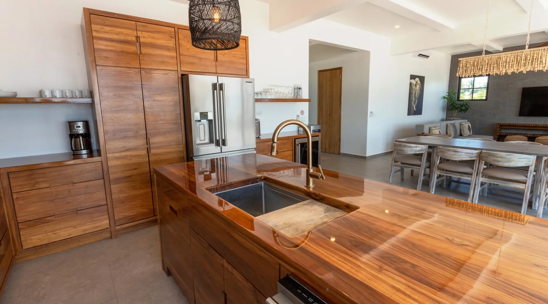 Wilson Point is a gorgeous beachfront home with everything to ensure you have a great island vacation: private pool, gym, beautiful well-stocked kitchen, huge ‘great room’, four bedrooms each with en suite bath, housekeeping, kayaks, ping pong, fire pit, and more! Located in a residential area 3.5 miles south of San Pedro, you're close enough to town yet can have quiet, peaceful evenings at home too. This is a great spot for families & low key vacations with friends! The space Home highlights: * Mini-split air conditioning * Ceiling fans * Wifi * TV * Washer/dryer * Fully equipped kitchen (stainless steel appliances including dishwasher) * Bed linens * Towels: dish, hand, bath & beach * Paper goods (toilet paper, paper towels) * Personal soap, shampoo, conditioner * Iron/board * Hair dryer * Safe *Four bedrooms with en suite baths: Upstairs: 1. Overlooking Caribbean with king bed 2. Sunset views & king bed Ground floor: 3. Queen with TV 4. Queen + upper bunk (bunk for a child only) * Private gym (separate building on property!) *Two 4 person luxury golf carts (extra fee); from an insurance & parking perspective Wilson Point does not permit other carts on the property. Outdoors: * Private pool * Deck with outdoor seating & shaded dining * Hardwood cushioned chairs & loungers * Charcoal grill * Fire pit * Shower * Two double kayaks * Ping pong * Shared pier with palapa, seating, swim ladder (any tour operator will pick you up/drop you off here) Included services: * Daily housekeeping (except Sundays/holidays) * Answer any & all questions both pre-arrival and on-site * Booking of island flights * Recommended private excursions/tours * Coconuts opened with machete on request! At additional expense: * Home cooked Belizean dinner * Massage *Two 4 person golf carts; from an insurance & parking perspective Wilson Point does not permit other carts on the property. Other things to note This house is privately owned & is for low key family & friend vacations; absolutely no partying. The on site staff lives in a small house on the property.
