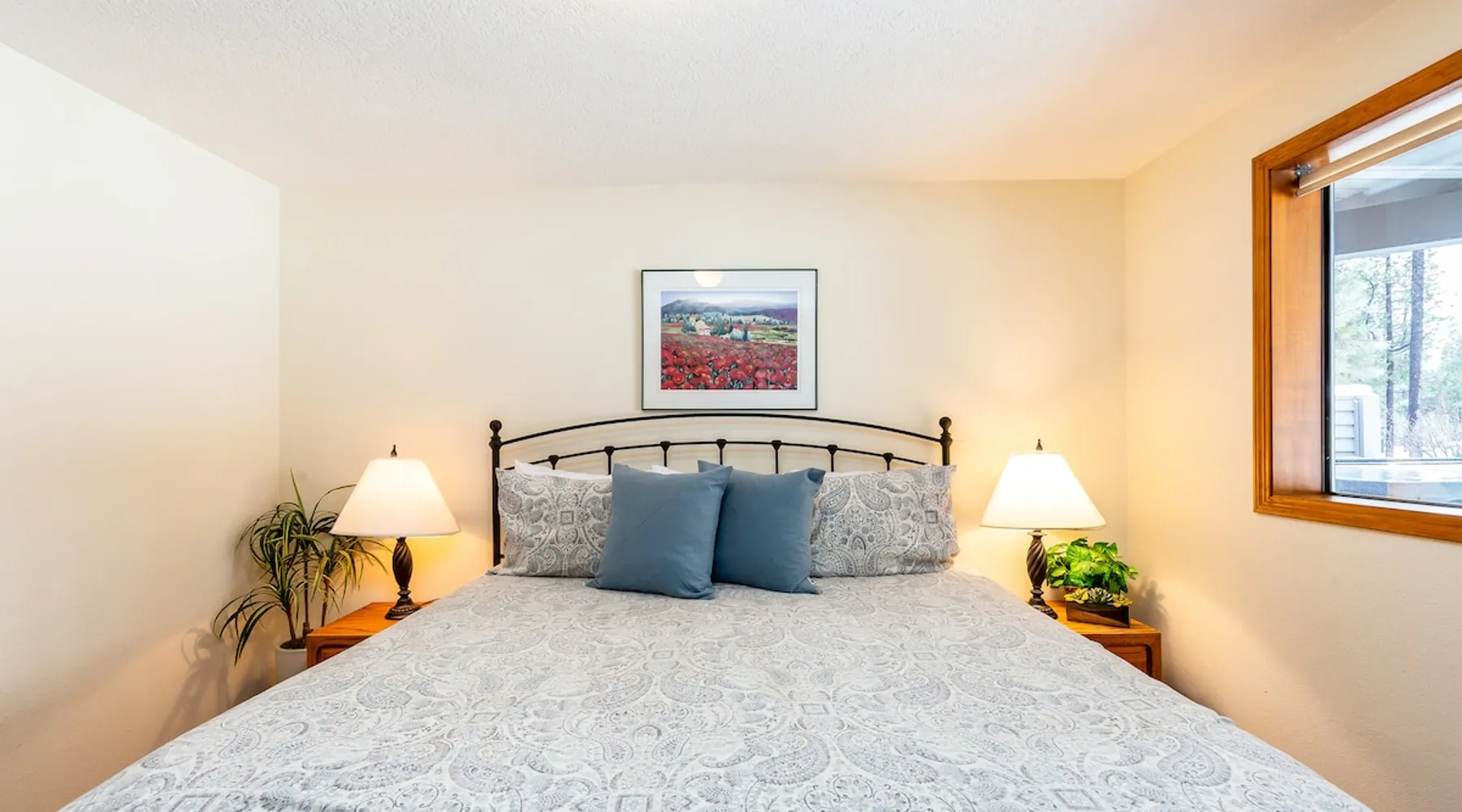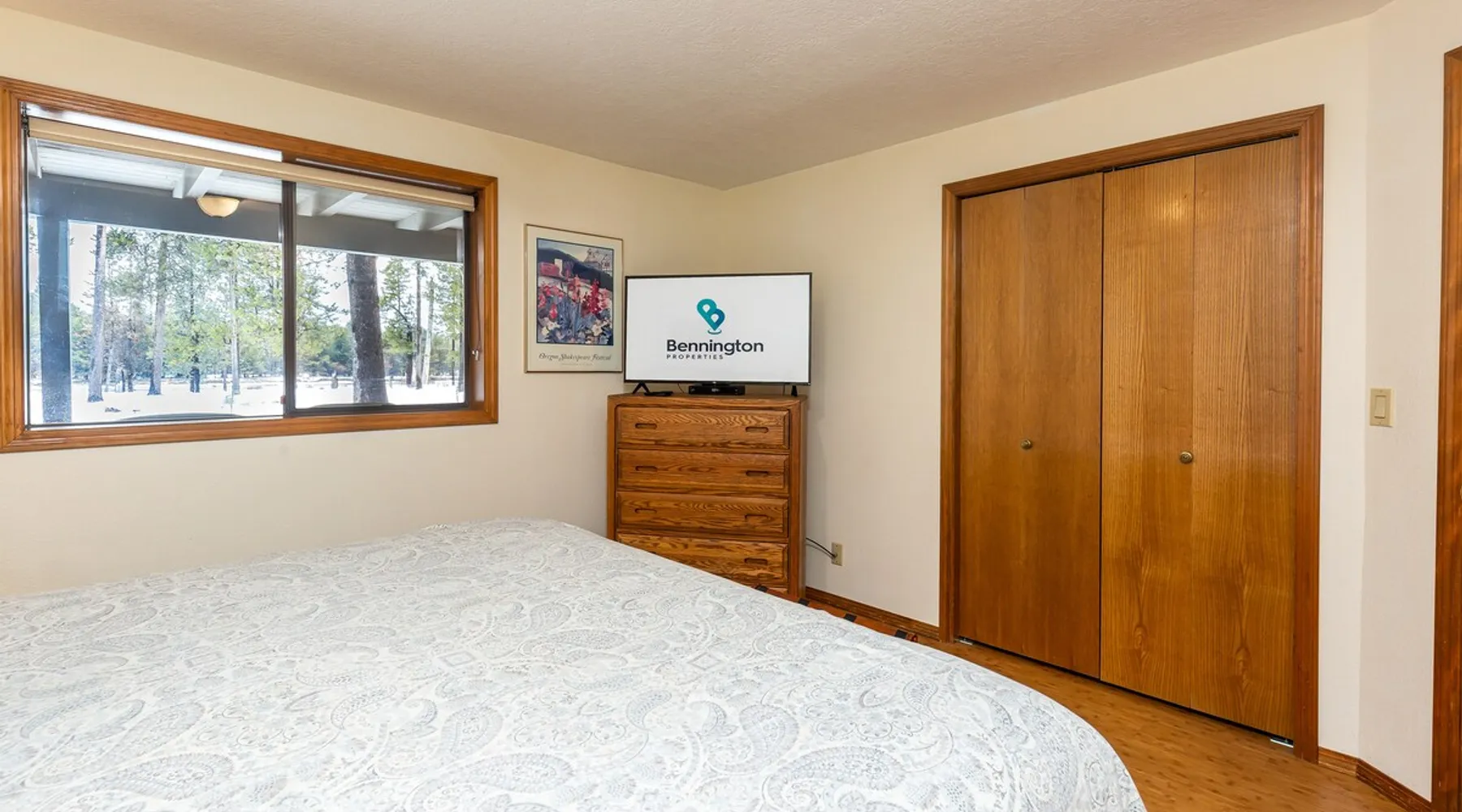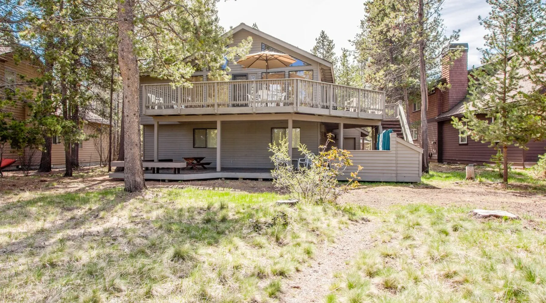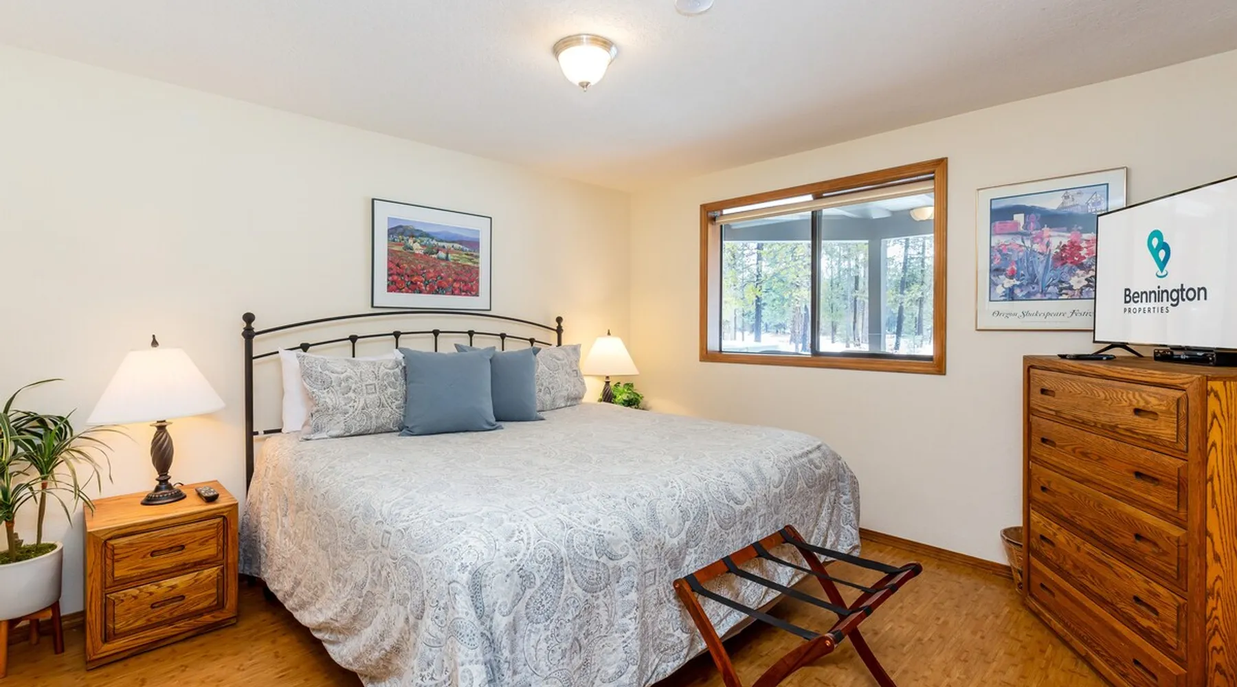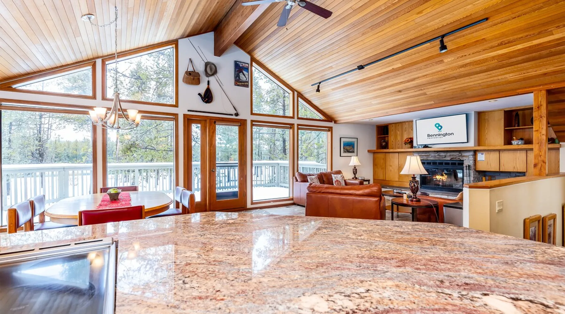 Escape to this spacious Sunriver retreat, perfect for families & groups! This stunning home features three bedrooms, an open-concept living area, a fully equipped kitchen, and smart TVs throughout. Enjoy the private hot tub, ping pong table, and scenic outdoor deck. Nestled in a tranquil setting, you're minutes from trails, golf, and Sunriver Resort. Relax, explore, and make unforgettable memories—book your Sunriver getaway today! The space This lovely home by the Deschutes River is sure to impress all who visit. Extensive tile, travertine, and bamboo laminate floors throughout give this home a beautiful upgraded finish. Guests will feel pampered with a beautifully upgraded kitchen with granite countertops, new stove and sink, lovely duvets on each bed, and a high-efficiency washer and dryer for running that occasional load of needed laundry. Upstairs you will find the primary bedroom with King-sized bed, work area and en suite bathroom. Head downstairs for two more bedrooms. The first has a Queen and a Twin Bed and TV and the second bedroom has a King bed and TV. Four flat screen TVs, blue ray, and free WiFi add to the entertainment and connectivity of the active family. Air conditioning has been recently added to this lovely home, along with a 2 stage high-efficiency furnace to ensure that your winter nights are toasty warm and your summer days are as cool as our guests. Invite friends over to BBQ on either the upper deck (toddler safe), or entertain by the hot tub on the lower deck with vistas of the river. Take one of the available bikes to the Nature Center with the kids or anywhere in Sunriver on one of the 4 adult bikes provided with this vacation rental home. Challenge a family member or friend to a game of ping pong. In the cooler months put a log on the wood fire and relax with a good book while the rest of the family skis at Mount Bachelor, a half hour away. The owners of this lovely home are committed to making your stay as pleasurable as possible and have pledged to continue making improvements that will make guests yearn to come back to participate in this active, yet peaceful, location. They want this home to become your Sunriver destination. Guest access Home access information will be sent 7 - 10 days prior to arrival. All homes are set up for self check-in, no need to stop by the office, just go straight to the home. Other things to note AGE RESTRICTIONS: Guests must be 23 years or older to rent Bennington homes and the person reserving must occupy the home the whole reservation.