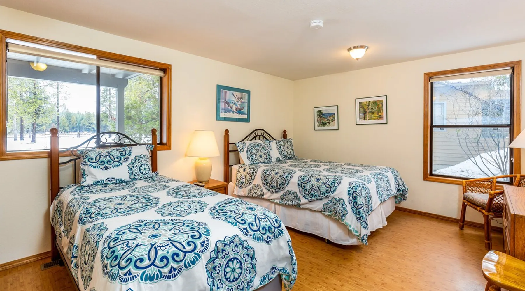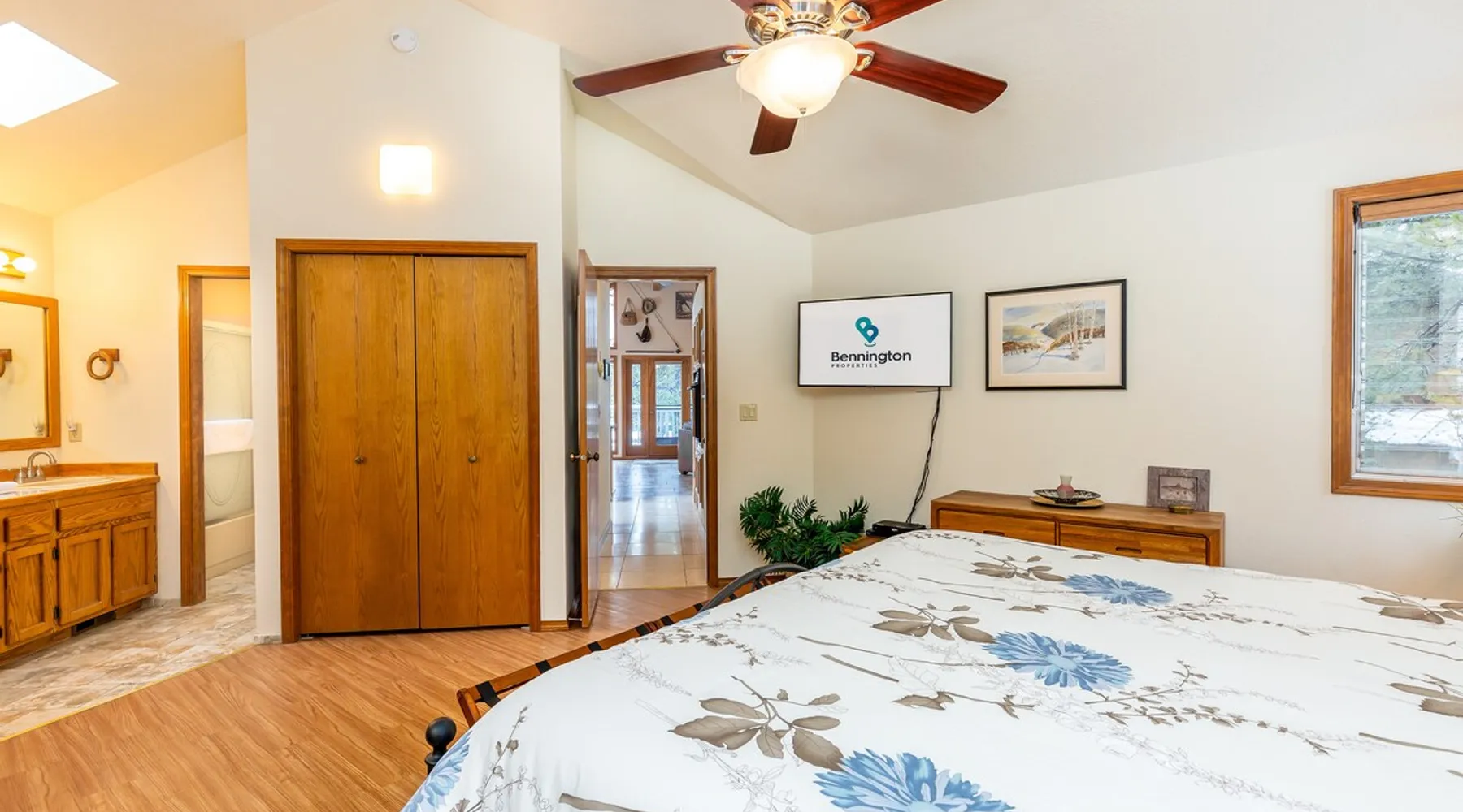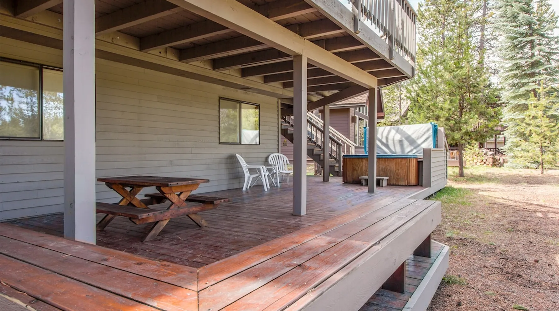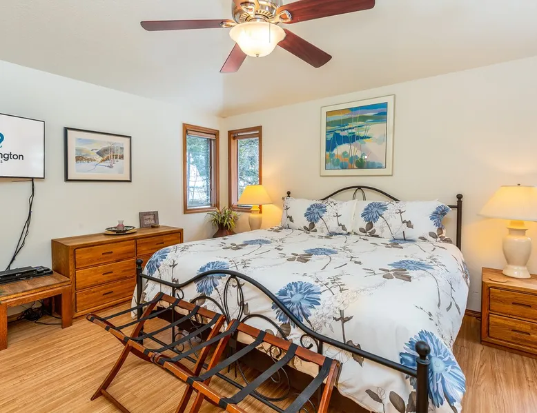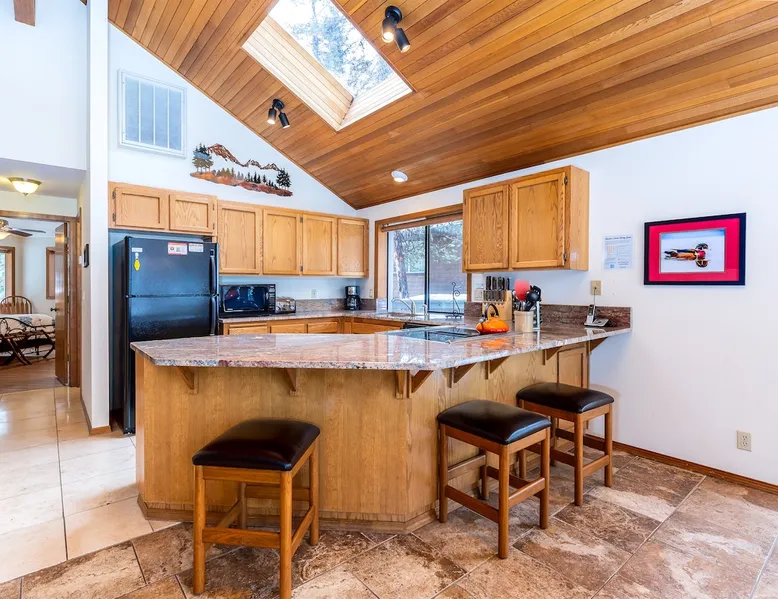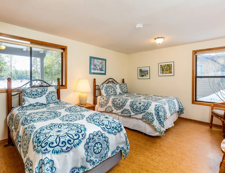 Escape to this spacious Sunriver retreat, perfect for families & groups! This stunning home features three bedrooms, an open-concept living area, a fully equipped kitchen, and smart TVs throughout. Enjoy the private hot tub, ping pong table, and scenic outdoor deck. Nestled in a tranquil setting, you're minutes from trails, golf, and Sunriver Resort. Relax, explore, and make unforgettable memories—book your Sunriver getaway today! The space This lovely home by the Deschutes River is sure to impress all who visit. Extensive tile, travertine, and bamboo laminate floors throughout give this home a beautiful upgraded finish. Guests will feel pampered with a beautifully upgraded kitchen with granite countertops, new stove and sink, lovely duvets on each bed, and a high-efficiency washer and dryer for running that occasional load of needed laundry. Upstairs you will find the primary bedroom with King-sized bed, work area and en suite bathroom. Head downstairs for two more bedrooms. The first has a Queen and a Twin Bed and TV and the second bedroom has a King bed and TV. Four flat screen TVs, blue ray, and free WiFi add to the entertainment and connectivity of the active family. Air conditioning has been recently added to this lovely home, along with a 2 stage high-efficiency furnace to ensure that your winter nights are toasty warm and your summer days are as cool as our guests. Invite friends over to BBQ on either the upper deck (toddler safe), or entertain by the hot tub on the lower deck with vistas of the river. Take one of the available bikes to the Nature Center with the kids or anywhere in Sunriver on one of the 4 adult bikes provided with this vacation rental home. Challenge a family member or friend to a game of ping pong. In the cooler months put a log on the wood fire and relax with a good book while the rest of the family skis at Mount Bachelor, a half hour away. The owners of this lovely home are committed to making your stay as pleasurable as possible and have pledged to continue making improvements that will make guests yearn to come back to participate in this active, yet peaceful, location. They want this home to become your Sunriver destination. Guest access Home access information will be sent 7 - 10 days prior to arrival. All homes are set up for self check-in, no need to stop by the office, just go straight to the home. Other things to note AGE RESTRICTIONS: Guests must be 23 years or older to rent Bennington homes and the person reserving must occupy the home the whole reservation.