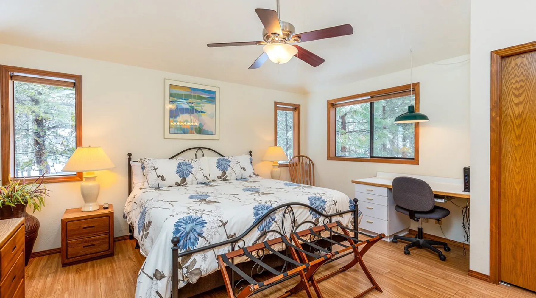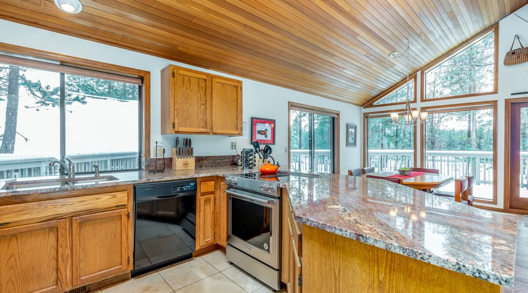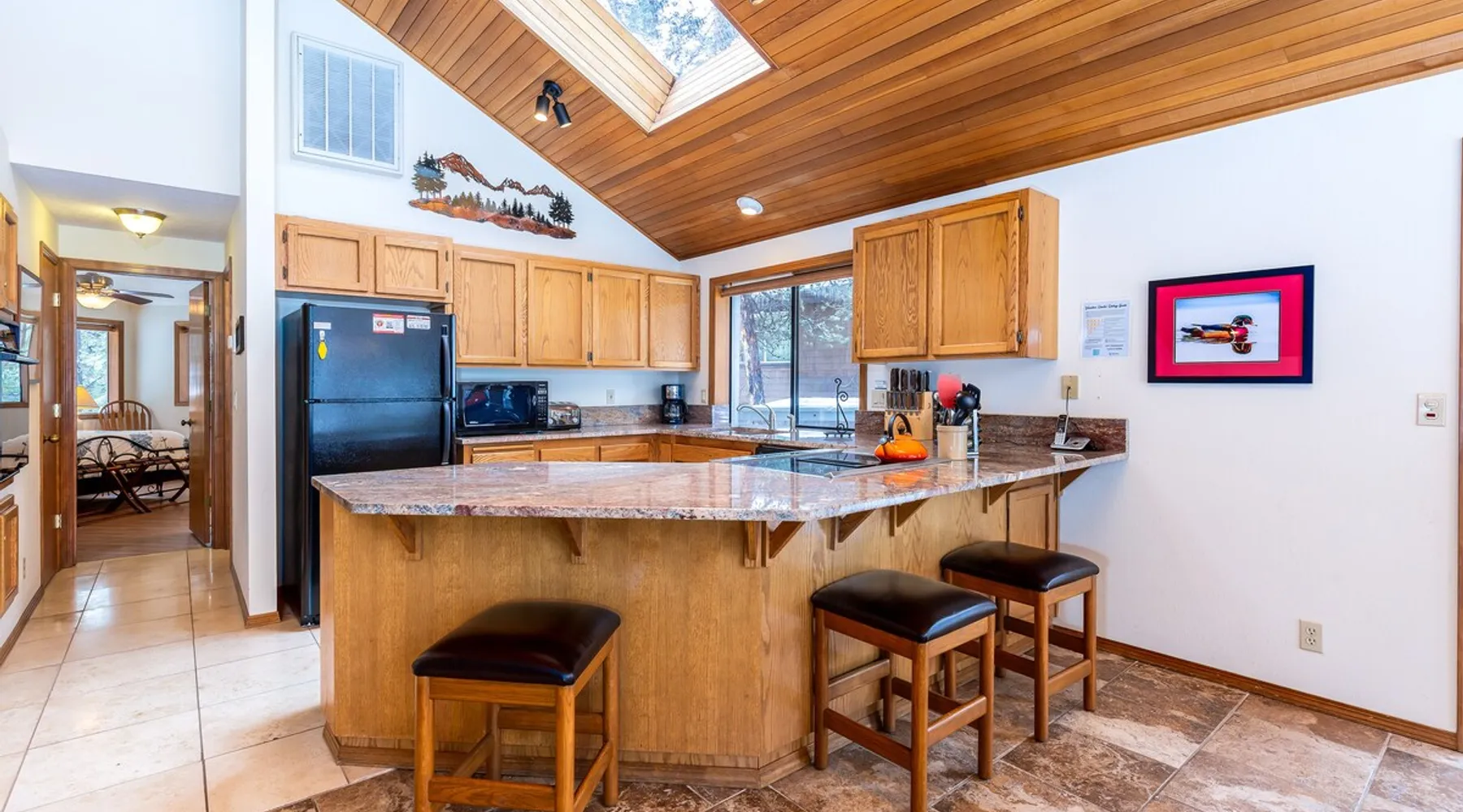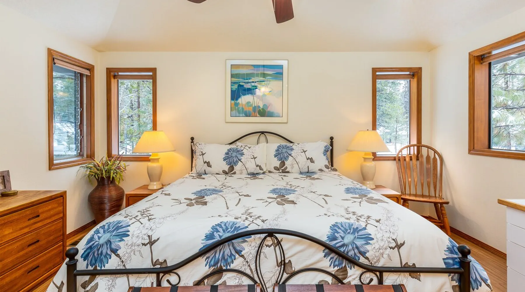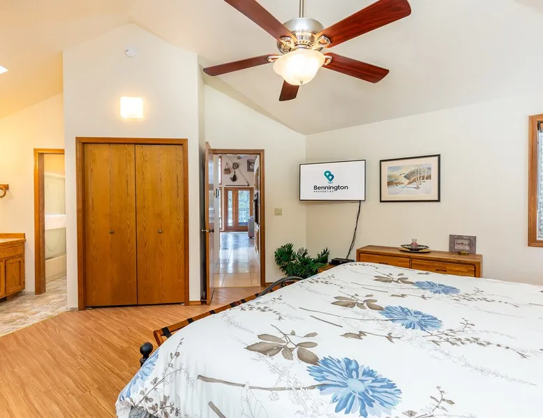Escape to this spacious Sunriver retreat, perfect for families & groups! This stunning home features three bedrooms, an open-concept living area, a fully equipped kitchen, and smart TVs throughout. Enjoy the private hot tub, ping pong table, and scenic outdoor deck. Nestled in a tranquil setting, you're minutes from trails, golf, and Sunriver Resort. Relax, explore, and make unforgettable memories—book your Sunriver getaway today! The space This lovely home by the Deschutes River is sure to impress all who visit. Extensive tile, travertine, and bamboo laminate floors throughout give this home a beautiful upgraded finish. Guests will feel pampered with a beautifully upgraded kitchen with granite countertops, new stove and sink, lovely duvets on each bed, and a high-efficiency washer and dryer for running that occasional load of needed laundry. Upstairs you will find the primary bedroom with King-sized bed, work area and en suite bathroom. Head downstairs for two more bedrooms. The first has a Queen and a Twin Bed and TV and the second bedroom has a King bed and TV. Four flat screen TVs, blue ray, and free WiFi add to the entertainment and connectivity of the active family. Air conditioning has been recently added to this lovely home, along with a 2 stage high-efficiency furnace to ensure that your winter nights are toasty warm and your summer days are as cool as our guests. Invite friends over to BBQ on either the upper deck (toddler safe), or entertain by the hot tub on the lower deck with vistas of the river. Take one of the available bikes to the Nature Center with the kids or anywhere in Sunriver on one of the 4 adult bikes provided with this vacation rental home. Challenge a family member or friend to a game of ping pong. In the cooler months put a log on the wood fire and relax with a good book while the rest of the family skis at Mount Bachelor, a half hour away. The owners of this lovely home are committed to making your stay as pleasurable as possible and have pledged to continue making improvements that will make guests yearn to come back to participate in this active, yet peaceful, location. They want this home to become your Sunriver destination. Guest access Home access information will be sent 7 - 10 days prior to arrival. All homes are set up for self check-in, no need to stop by the office, just go straight to the home. Other things to note AGE RESTRICTIONS: Guests must be 23 years or older to rent Bennington homes and the person reserving must occupy the home the whole reservation.