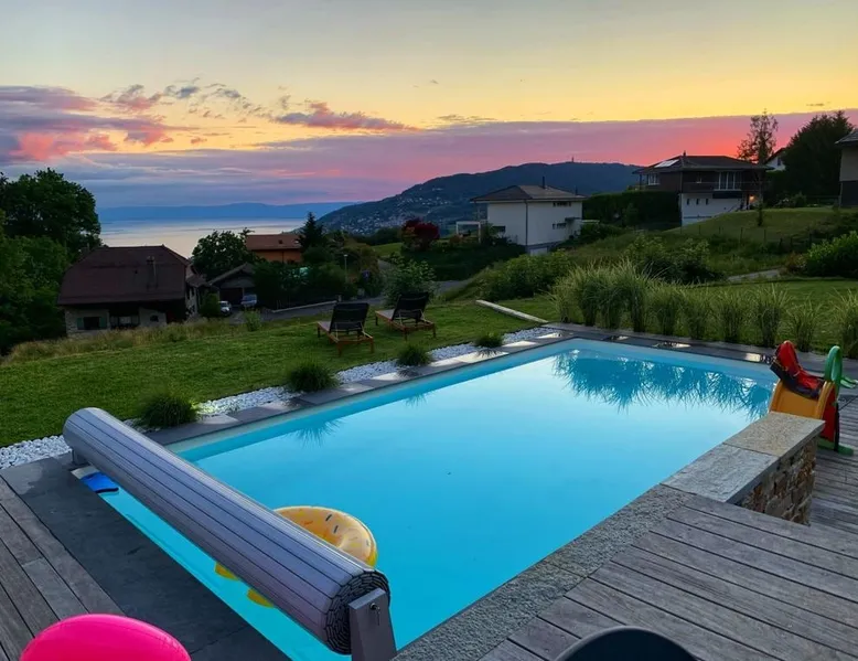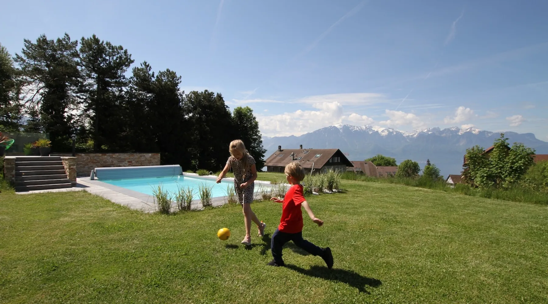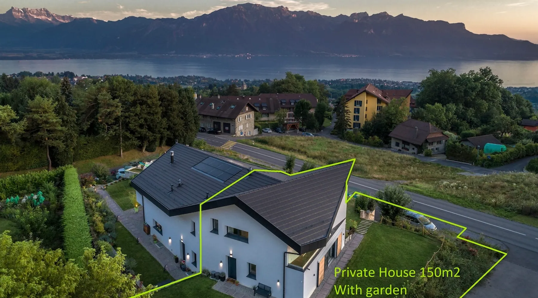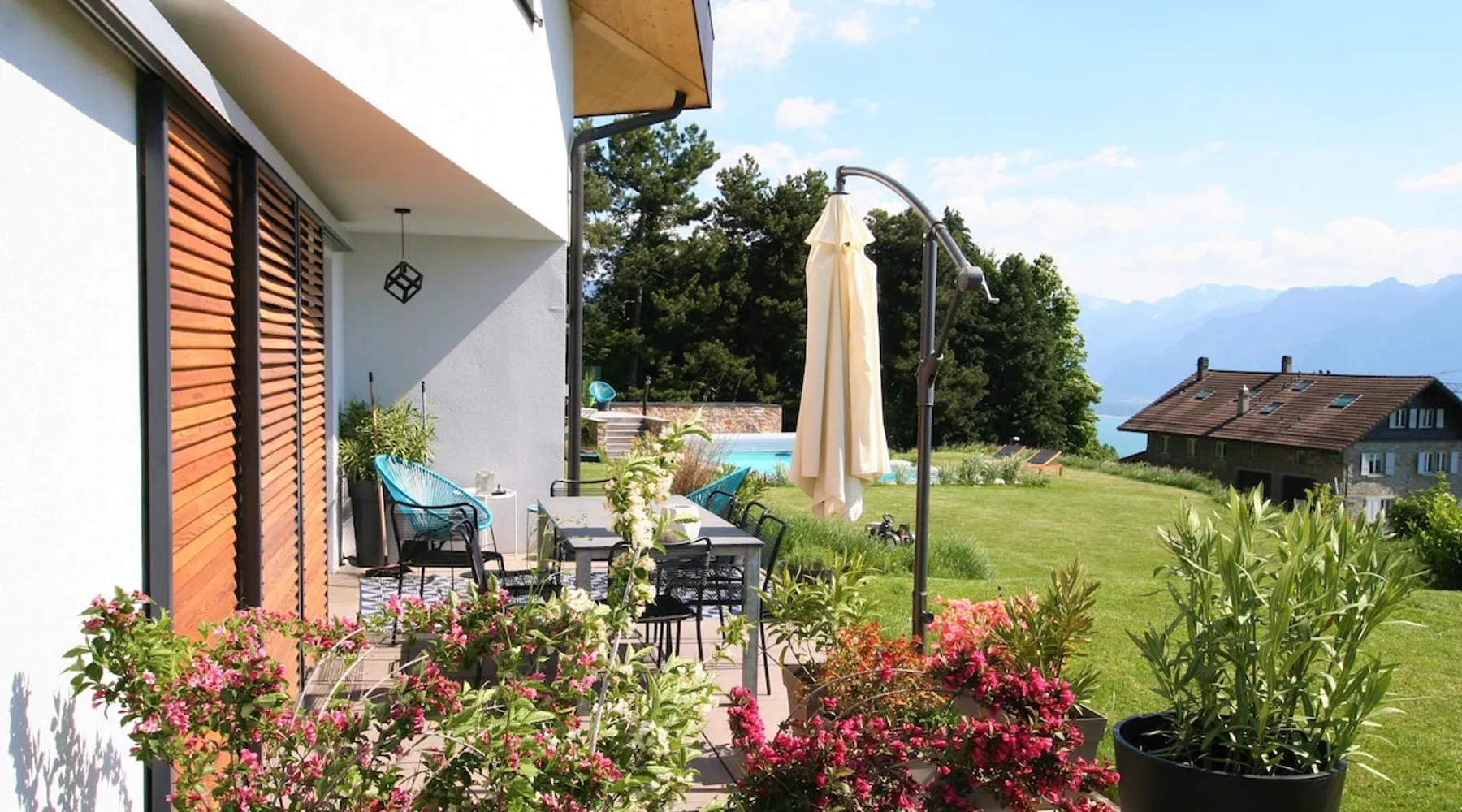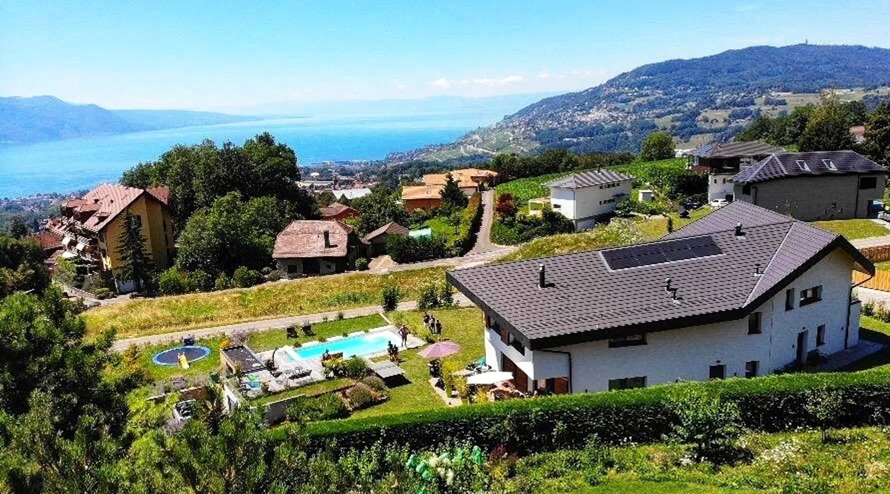 Located in Blonay just 10 minutes from Vevey / Montreux, in a quiet residential area, our modern holiday home offers panoramic views of Lake Geneva and the Alps from; the terrace, all rooms and outdoor heated swimming pool. The eco-friendly property was built in 2015. It accommodates 2 houses and provides; parking, its own private terrace and access to a large open garden. The house has been decorated and equipped to a high standard and is an ideal property to explore the Swiss Riviera. mnd95 The space Your Lakeview Family Retreat in Montreux Located in peaceful Blonay, just 10 minutes from Vevey and Montreux, Montreux Holiday Home is a contemporary villa designed with families in mind. Perched above Lake Geneva, the home offers panoramic lake and mountain views from nearly every room — including the sun terrace, bedrooms, and outdoor heated pool (summer only). Whether you're traveling with young children, teens, or grandparents, this villa offers the space, safety, and tranquility needed for a memorable family holiday. --- 🏡 About the Villa Modern villa built in 2015 on a 1,880m² plot Certified eco-friendly (Minergie P / Passive House) for year-round comfort Ideal for family stays (6–8 guests total) Shared property (2 homes), but private entrance, terrace, and garden use Large on-site parking for multiple vehicles EV charger available at a fixed daily rate (on request) Located in a quiet and residential neighborhood, perfect for rest and safety --- 🛋️ Inside the Home Bright, open-plan living and dining area with floor-to-ceiling lake views Fully equipped modern kitchen (dishwasher, oven, Nespresso) 3 spacious bedrooms Sleeps 6 in beds, with an optional sofa bed and single bed for larger families 2 full bathrooms with bathtub and walk-in showers Ample storage and a dedicated laundry room Underfloor heating on both levels for cozy winters --- ☀️ In Summer Large private terrace and garden for outdoor meals and family playtime Access to a shared heated pool and in-ground trampoline in the lower garden Walks, hikes, and picnic spots nearby Local train stop to Les Pléiades (a child-friendly mountain excursion) --- ❄️ In Winter Scenic snow in the garden (season-dependent), road access always cleared Walk to the local train for a ride up to Les Pléiades – a gentle, family ski resort Reach Les Paccots (15 min) or major resorts like Villars, Diablerets, Portes du Soleil in under 45 minutes Warm and energy-efficient home with constant indoor temperatures --- Perfect for Families Safe outdoor space for children Kid-friendly amenities: trampoline, highchair, toys, cot available Peaceful, quiet setting No parties or pets allowed – to maintain a calm and family-oriented atmosphere --- 🌟 Looking for a relaxing, scenic Swiss escape? Montreux Holiday Home is where comfort meets nature, and where families can create meaningful memories above Lake Geneva — in every season. We look forward to welcoming you! Guest access Guests will have full access to a self contained three bedroomed villa and terrace overlooking Lac Leman. The property also benefits from a large parking and private access. Other things to note We live in the attached house, and maintain the garden and swimming pool. The swimming pool and trampoline are both in the shared area and will be used mainly by our AirBNB guests and our children. The villa has been designed to give the maximum privacy. We will be here to host you on arrival, and happy to help with any enquiry you may have. Please be informed as per AirBNB rules the house is not suitable to host parties. We can not make exception to this rule.