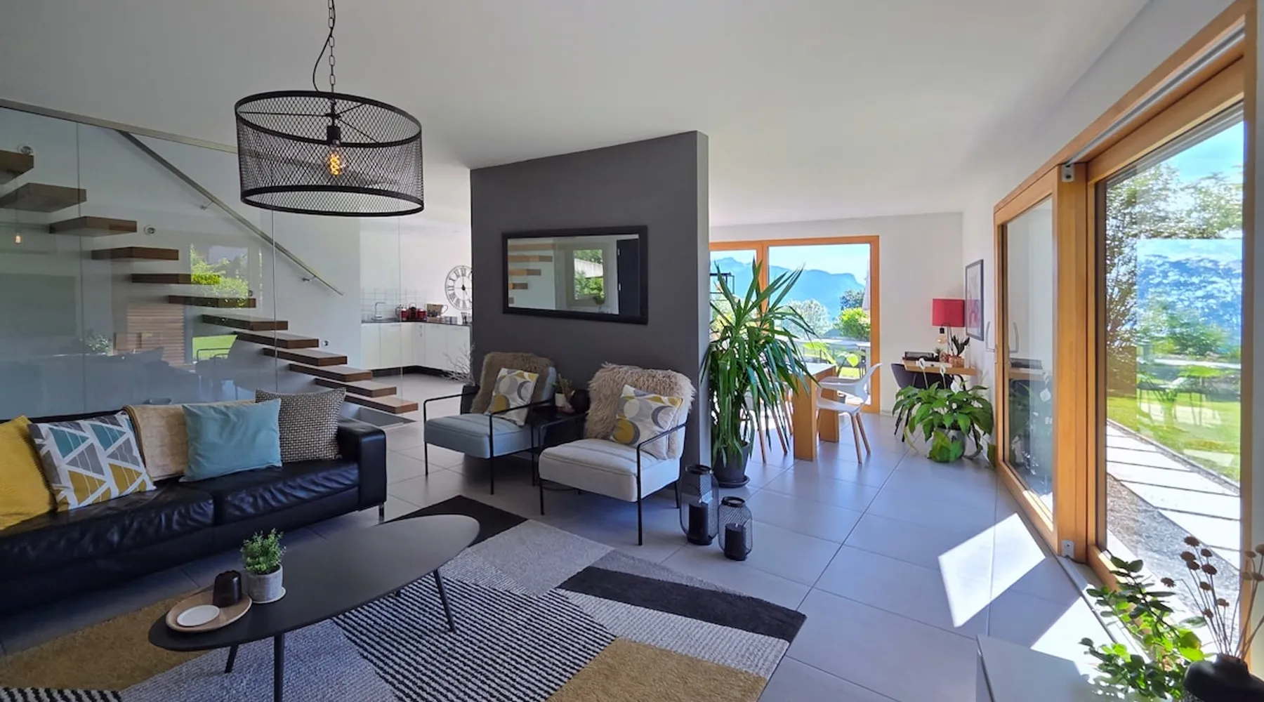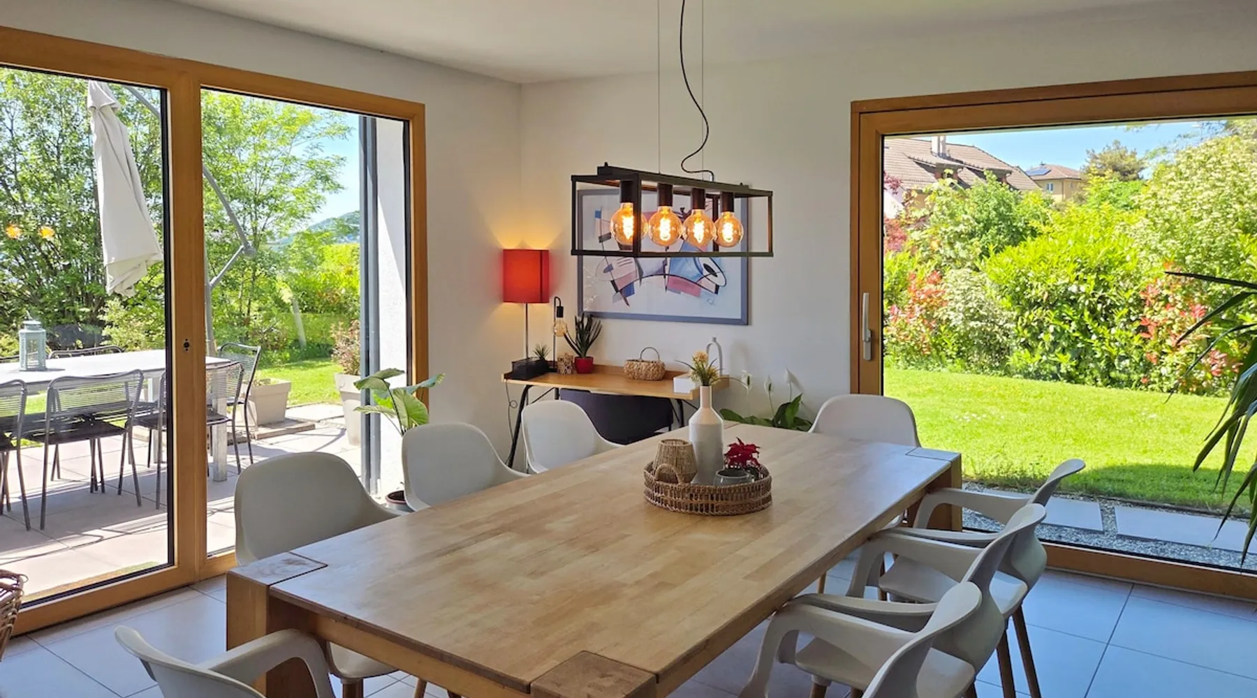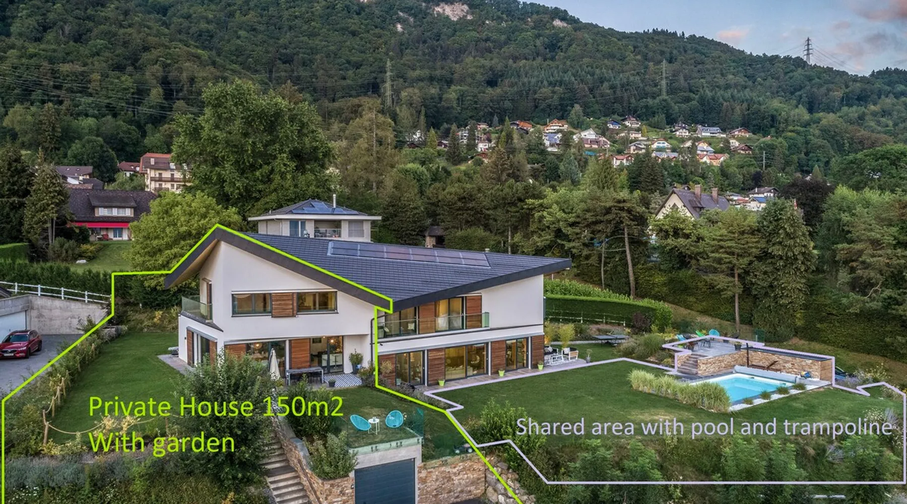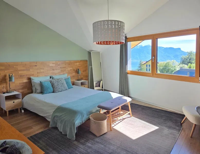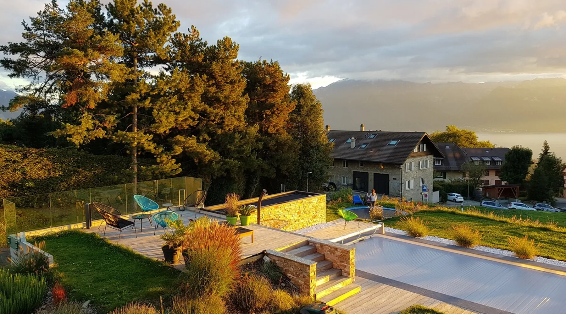Located in Blonay just 10 minutes from Vevey / Montreux, in a quiet residential area, our modern holiday home offers panoramic views of Lake Geneva and the Alps from; the terrace, all rooms and outdoor heated swimming pool. The eco-friendly property was built in 2015. It accommodates 2 houses and provides; parking, its own private terrace and access to a large open garden. The house has been decorated and equipped to a high standard and is an ideal property to explore the Swiss Riviera. mnd95 The space Your Lakeview Family Retreat in Montreux Located in peaceful Blonay, just 10 minutes from Vevey and Montreux, Montreux Holiday Home is a contemporary villa designed with families in mind. Perched above Lake Geneva, the home offers panoramic lake and mountain views from nearly every room — including the sun terrace, bedrooms, and outdoor heated pool (summer only). Whether you're traveling with young children, teens, or grandparents, this villa offers the space, safety, and tranquility needed for a memorable family holiday. --- 🏡 About the Villa Modern villa built in 2015 on a 1,880m² plot Certified eco-friendly (Minergie P / Passive House) for year-round comfort Ideal for family stays (6–8 guests total) Shared property (2 homes), but private entrance, terrace, and garden use Large on-site parking for multiple vehicles EV charger available at a fixed daily rate (on request) Located in a quiet and residential neighborhood, perfect for rest and safety --- 🛋️ Inside the Home Bright, open-plan living and dining area with floor-to-ceiling lake views Fully equipped modern kitchen (dishwasher, oven, Nespresso) 3 spacious bedrooms Sleeps 6 in beds, with an optional sofa bed and single bed for larger families 2 full bathrooms with bathtub and walk-in showers Ample storage and a dedicated laundry room Underfloor heating on both levels for cozy winters --- ☀️ In Summer Large private terrace and garden for outdoor meals and family playtime Access to a shared heated pool and in-ground trampoline in the lower garden Walks, hikes, and picnic spots nearby Local train stop to Les Pléiades (a child-friendly mountain excursion) --- ❄️ In Winter Scenic snow in the garden (season-dependent), road access always cleared Walk to the local train for a ride up to Les Pléiades – a gentle, family ski resort Reach Les Paccots (15 min) or major resorts like Villars, Diablerets, Portes du Soleil in under 45 minutes Warm and energy-efficient home with constant indoor temperatures --- Perfect for Families Safe outdoor space for children Kid-friendly amenities: trampoline, highchair, toys, cot available Peaceful, quiet setting No parties or pets allowed – to maintain a calm and family-oriented atmosphere --- 🌟 Looking for a relaxing, scenic Swiss escape? Montreux Holiday Home is where comfort meets nature, and where families can create meaningful memories above Lake Geneva — in every season. We look forward to welcoming you! Guest access Guests will have full access to a self contained three bedroomed villa and terrace overlooking Lac Leman. The property also benefits from a large parking and private access. Other things to note We live in the attached house, and maintain the garden and swimming pool. The swimming pool and trampoline are both in the shared area and will be used mainly by our AirBNB guests and our children. The villa has been designed to give the maximum privacy. We will be here to host you on arrival, and happy to help with any enquiry you may have. Please be informed as per AirBNB rules the house is not suitable to host parties. We can not make exception to this rule.