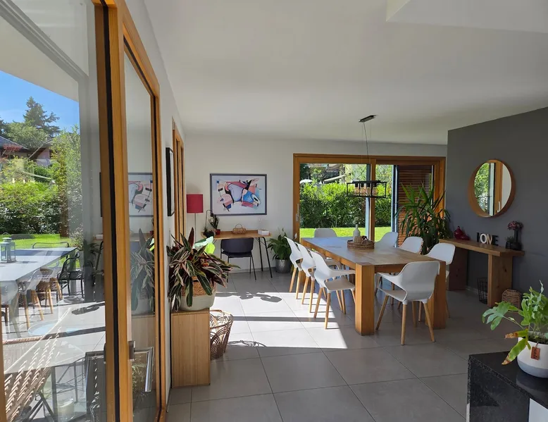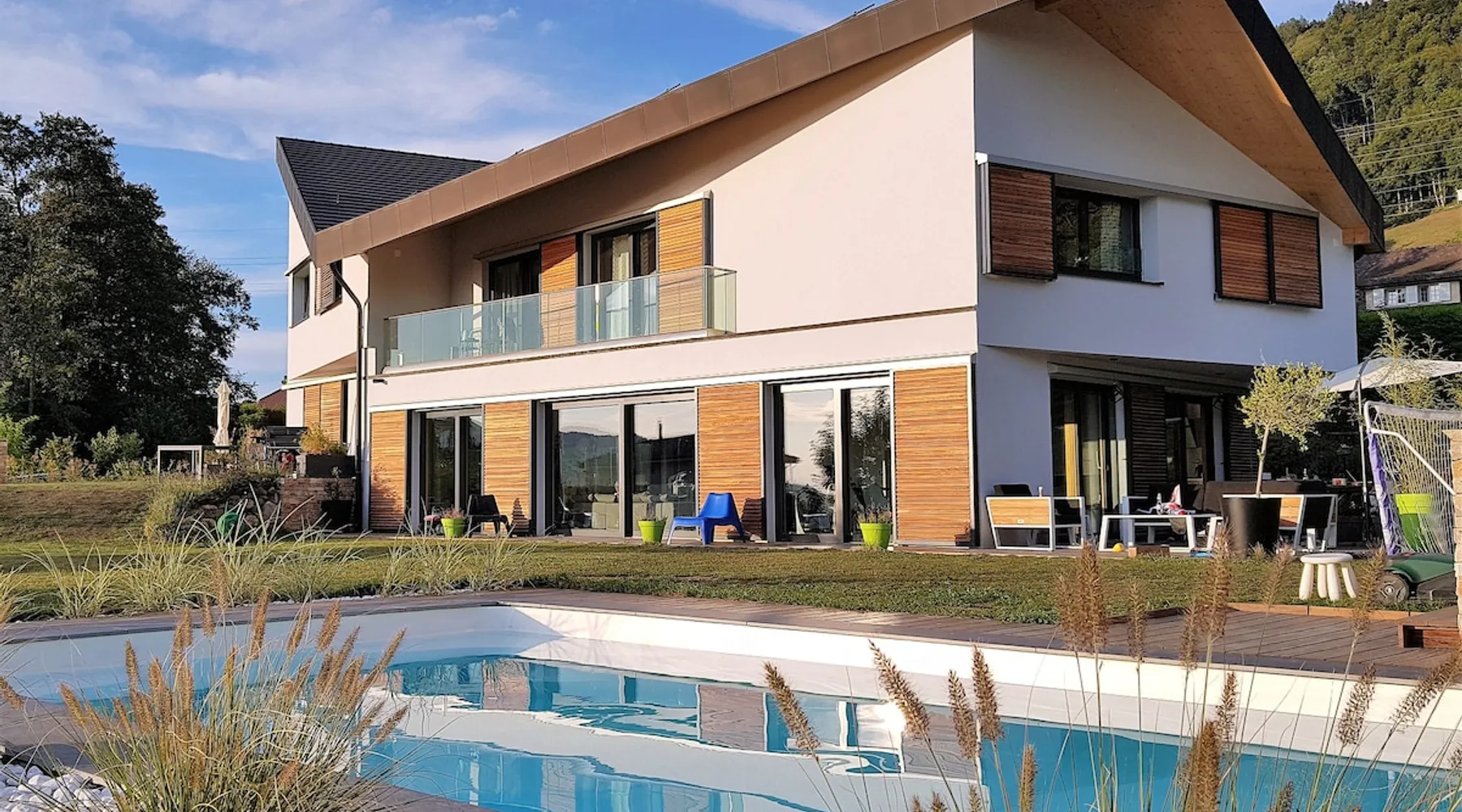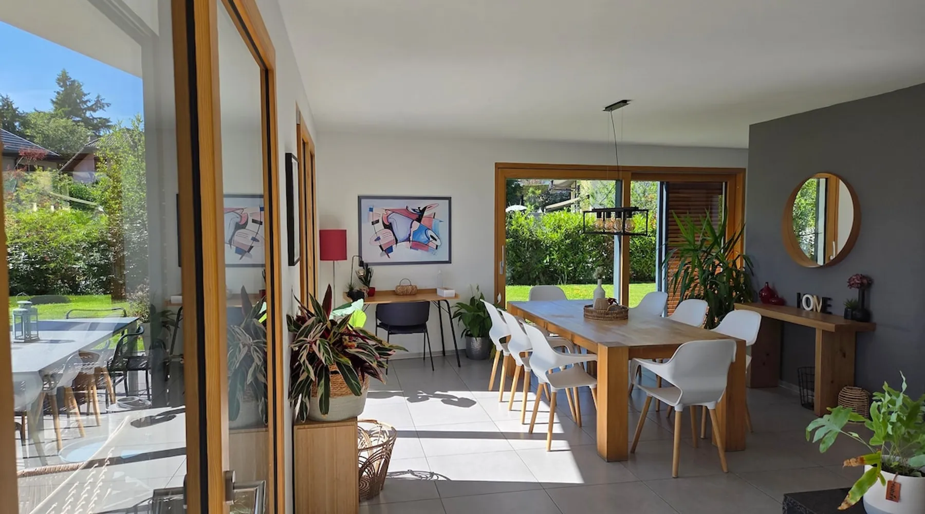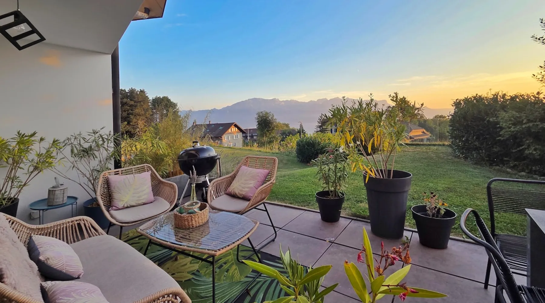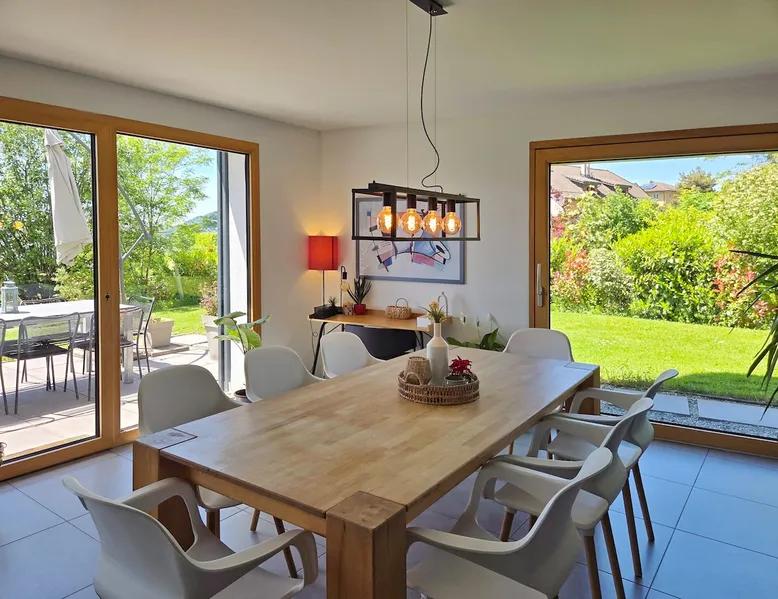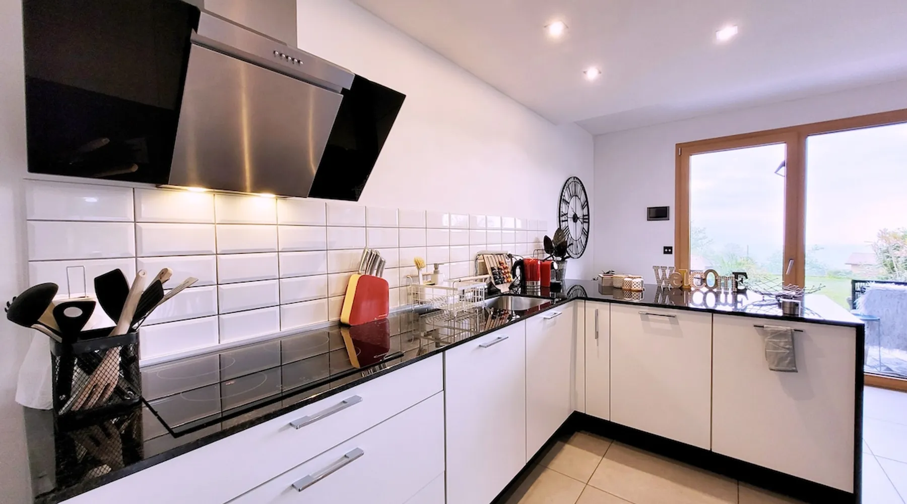 Located in Blonay just 10 minutes from Vevey / Montreux, in a quiet residential area, our modern holiday home offers panoramic views of Lake Geneva and the Alps from; the terrace, all rooms and outdoor heated swimming pool. The eco-friendly property was built in 2015. It accommodates 2 houses and provides; parking, its own private terrace and access to a large open garden. The house has been decorated and equipped to a high standard and is an ideal property to explore the Swiss Riviera. mnd95 The space Your Lakeview Family Retreat in Montreux Located in peaceful Blonay, just 10 minutes from Vevey and Montreux, Montreux Holiday Home is a contemporary villa designed with families in mind. Perched above Lake Geneva, the home offers panoramic lake and mountain views from nearly every room — including the sun terrace, bedrooms, and outdoor heated pool (summer only). Whether you're traveling with young children, teens, or grandparents, this villa offers the space, safety, and tranquility needed for a memorable family holiday. --- 🏡 About the Villa Modern villa built in 2015 on a 1,880m² plot Certified eco-friendly (Minergie P / Passive House) for year-round comfort Ideal for family stays (6–8 guests total) Shared property (2 homes), but private entrance, terrace, and garden use Large on-site parking for multiple vehicles EV charger available at a fixed daily rate (on request) Located in a quiet and residential neighborhood, perfect for rest and safety --- 🛋️ Inside the Home Bright, open-plan living and dining area with floor-to-ceiling lake views Fully equipped modern kitchen (dishwasher, oven, Nespresso) 3 spacious bedrooms Sleeps 6 in beds, with an optional sofa bed and single bed for larger families 2 full bathrooms with bathtub and walk-in showers Ample storage and a dedicated laundry room Underfloor heating on both levels for cozy winters --- ☀️ In Summer Large private terrace and garden for outdoor meals and family playtime Access to a shared heated pool and in-ground trampoline in the lower garden Walks, hikes, and picnic spots nearby Local train stop to Les Pléiades (a child-friendly mountain excursion) --- ❄️ In Winter Scenic snow in the garden (season-dependent), road access always cleared Walk to the local train for a ride up to Les Pléiades – a gentle, family ski resort Reach Les Paccots (15 min) or major resorts like Villars, Diablerets, Portes du Soleil in under 45 minutes Warm and energy-efficient home with constant indoor temperatures --- Perfect for Families Safe outdoor space for children Kid-friendly amenities: trampoline, highchair, toys, cot available Peaceful, quiet setting No parties or pets allowed – to maintain a calm and family-oriented atmosphere --- 🌟 Looking for a relaxing, scenic Swiss escape? Montreux Holiday Home is where comfort meets nature, and where families can create meaningful memories above Lake Geneva — in every season. We look forward to welcoming you! Guest access Guests will have full access to a self contained three bedroomed villa and terrace overlooking Lac Leman. The property also benefits from a large parking and private access. Other things to note We live in the attached house, and maintain the garden and swimming pool. The swimming pool and trampoline are both in the shared area and will be used mainly by our AirBNB guests and our children. The villa has been designed to give the maximum privacy. We will be here to host you on arrival, and happy to help with any enquiry you may have. Please be informed as per AirBNB rules the house is not suitable to host parties. We can not make exception to this rule.