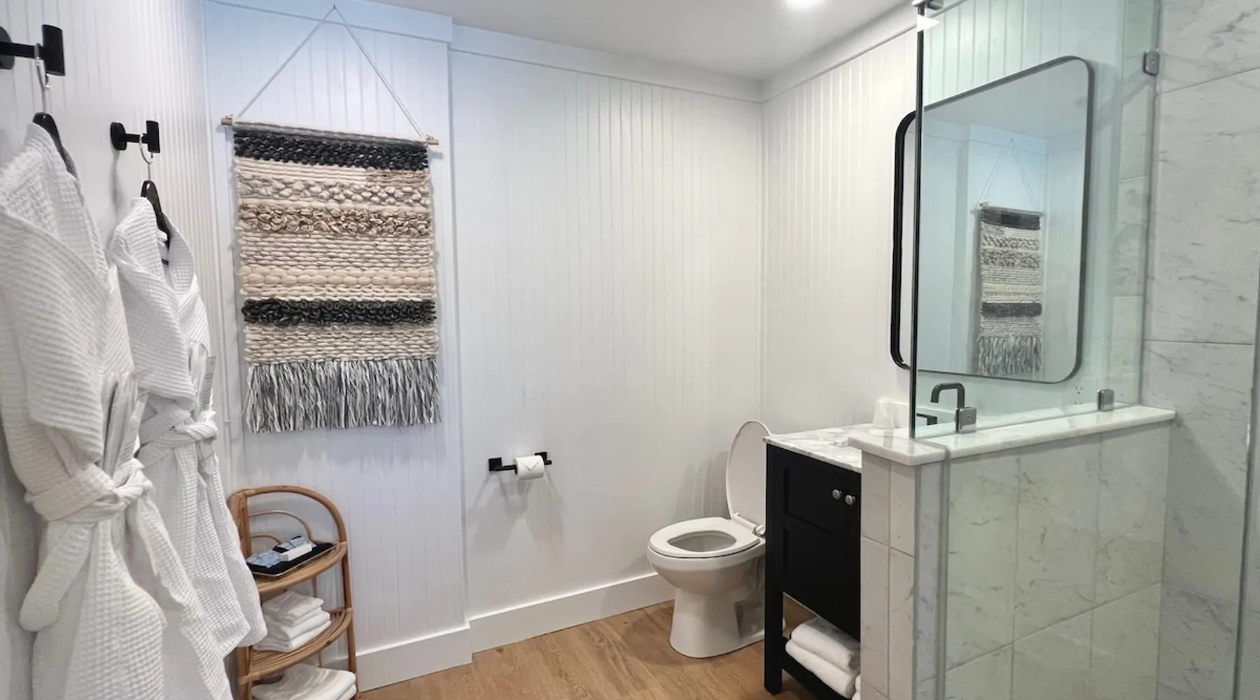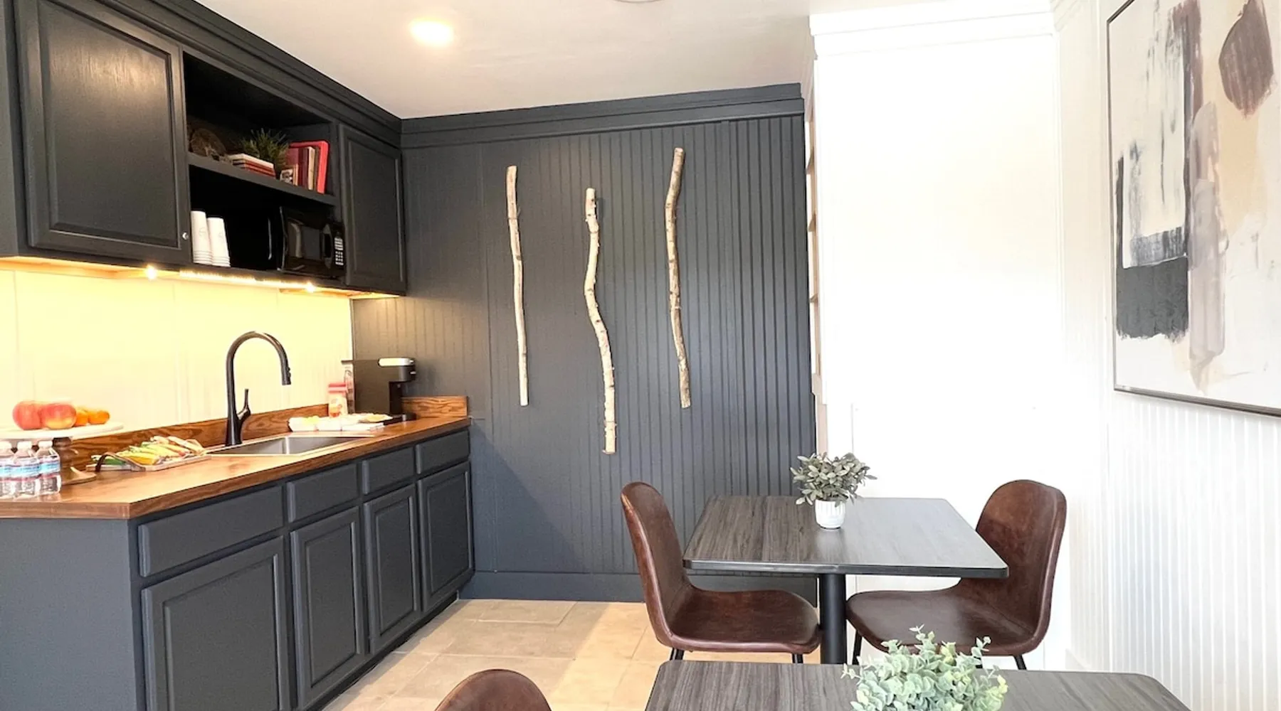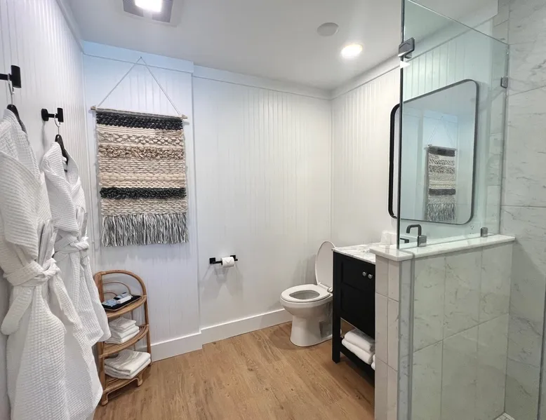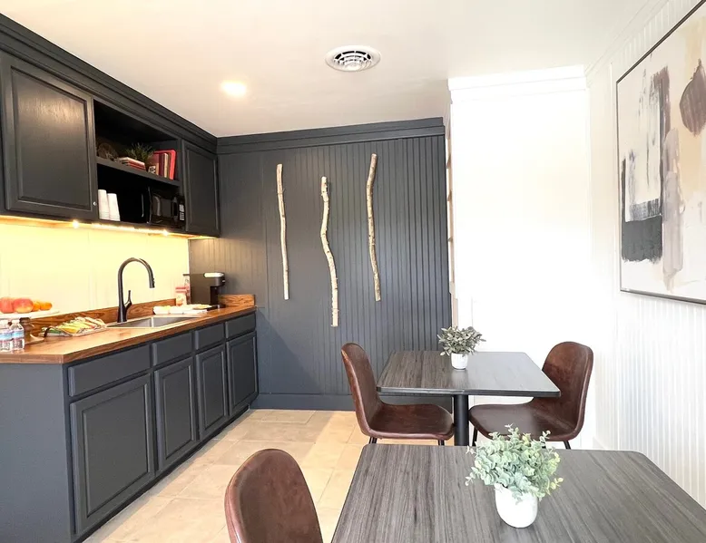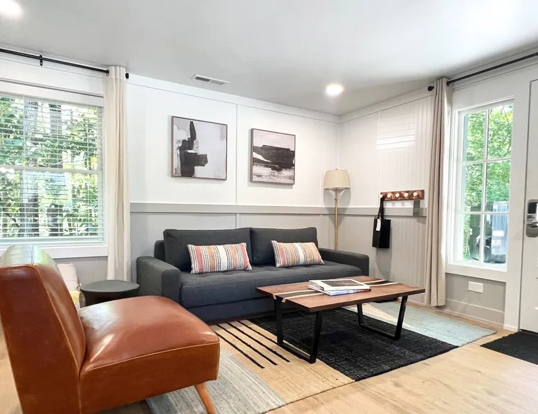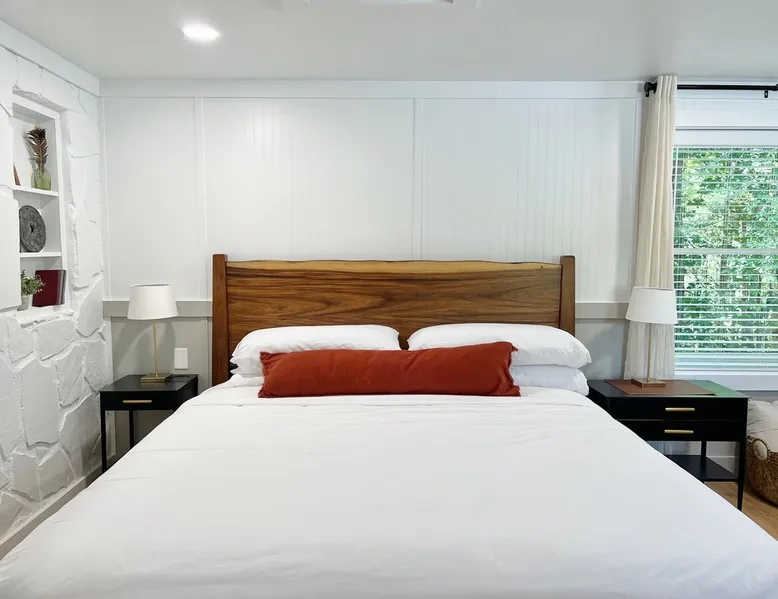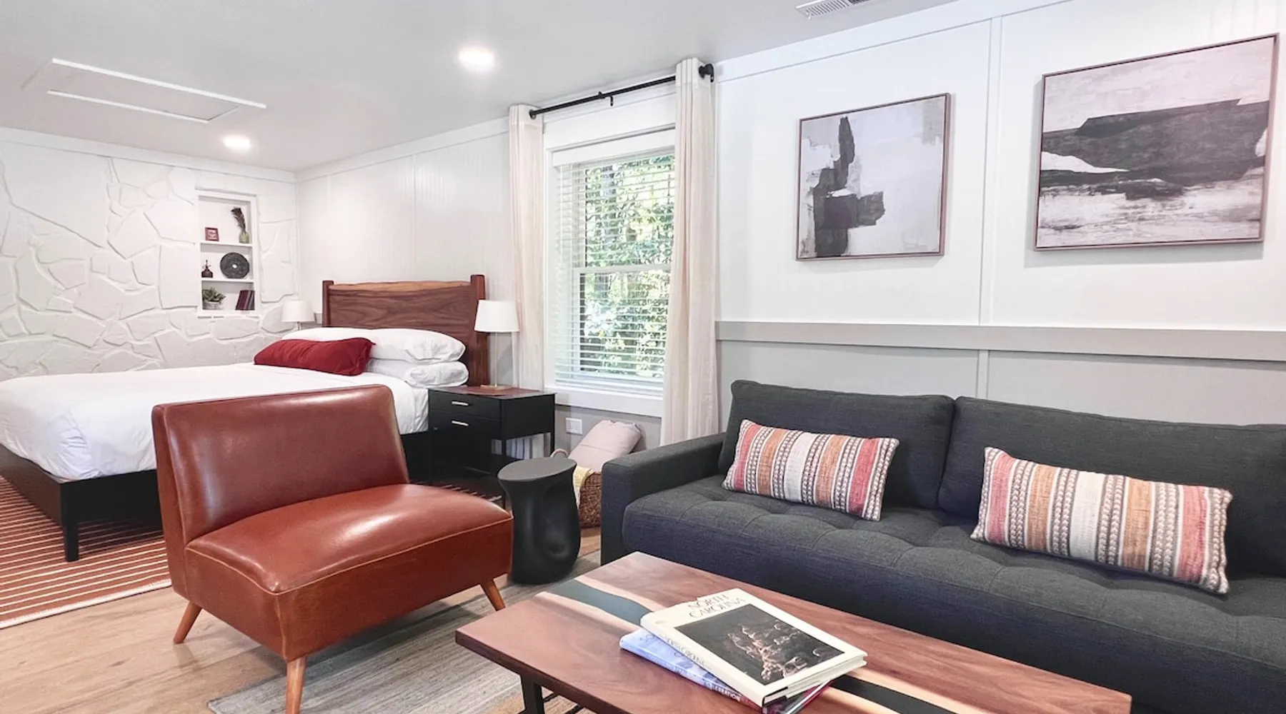 Hotel Cashiers is an upscale and conveniently located inn just a brief walk from the center of Cashiers, and a short drive from Lake Glenville, Highlands and Sapphire and nearby attractions in the Blue Ridge and Smoky Mountains. Our newly renovated Studio King Suite is a perfect blend of modern and rustic design. Our Studio King Suite feature light oak floors, custom furniture, heavenly bedding and luxurious toiletries. Located in the heart of Cashiers, North Carolina. The space Our hotel offers among the largest rooms in town including rooms with one King bed and rooms with two double beds. All rooms have an en-suite bathrooms and include complimentary parking, free high-speed Internet access, cable TV, mini-fridges, coffeemakers, hairdryers, irons & ironing boards. Guests can also enjoy scenic outdoor seating under charming patio lights. We are a pet friendly hotel and allow pets with prior notice. Guest access There are multiple outdoor areas for guests to enjoy! Both an open air picnic area, and a shared pantry. Our gardens feature lounge chairs, a firepit, and several spots to enjoy a relaxing mountain time! Other things to note The Studio King Suite is not a pet friendly room.