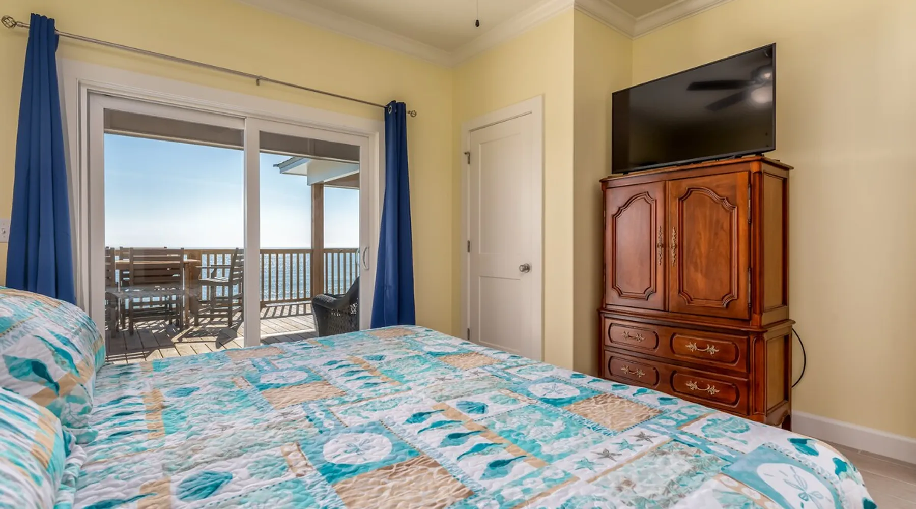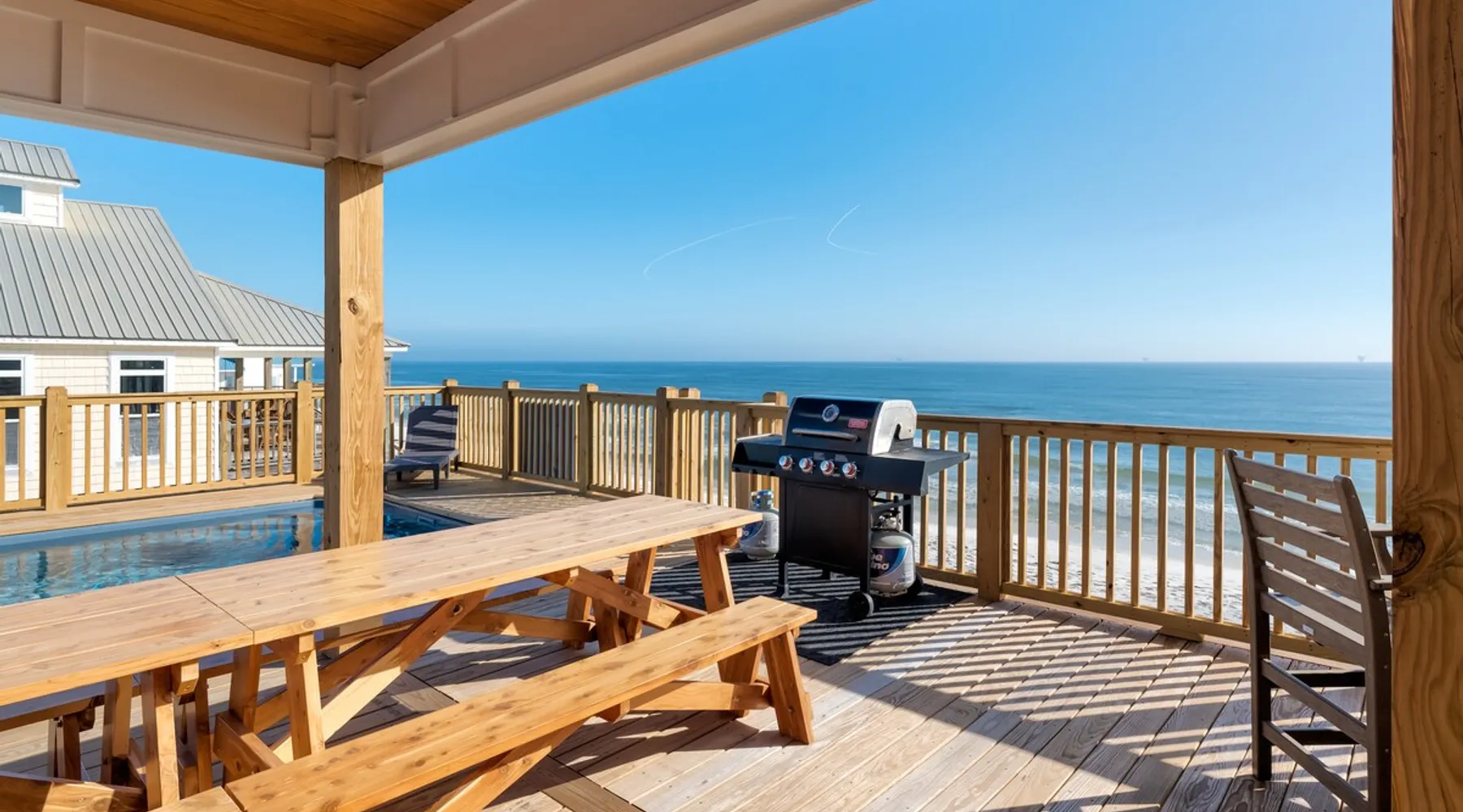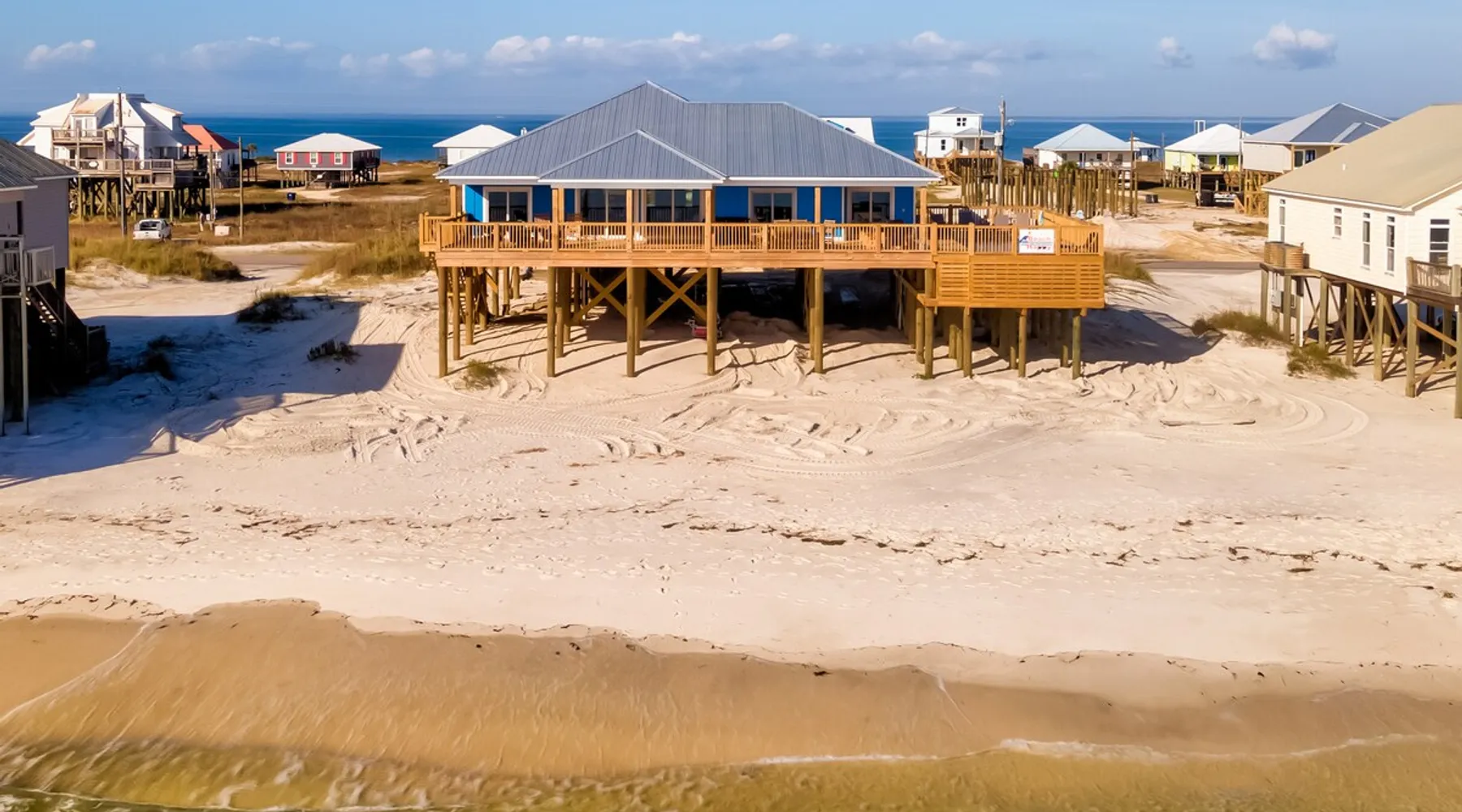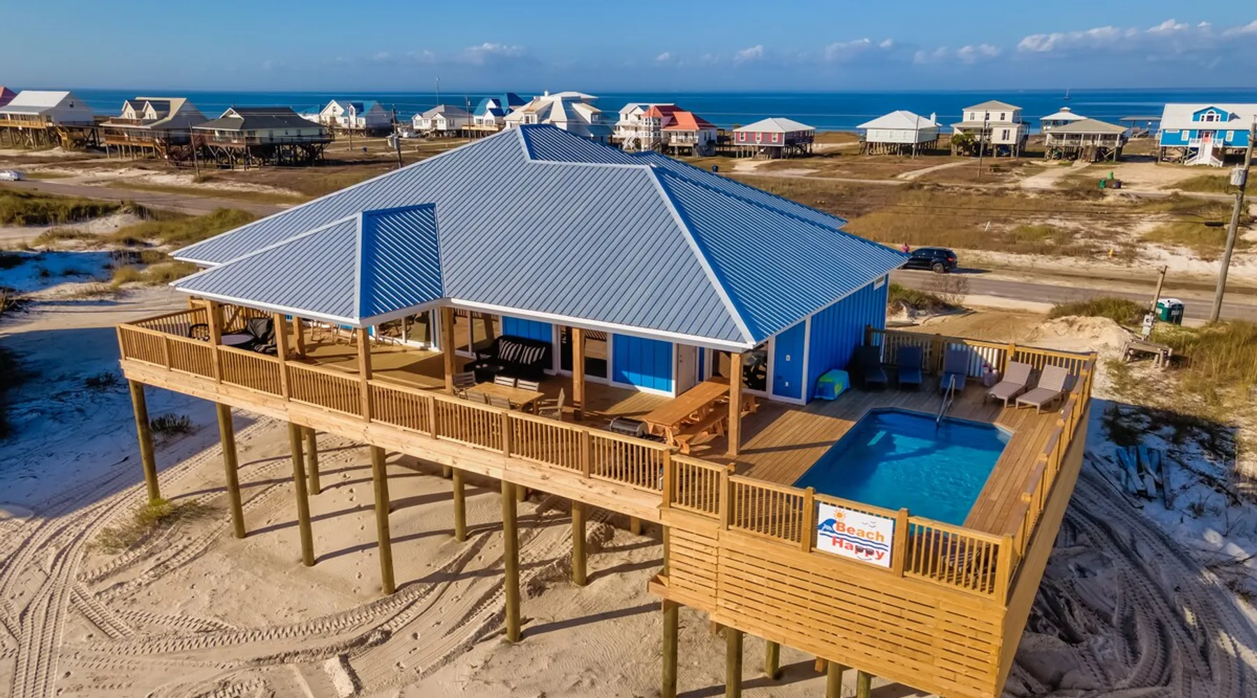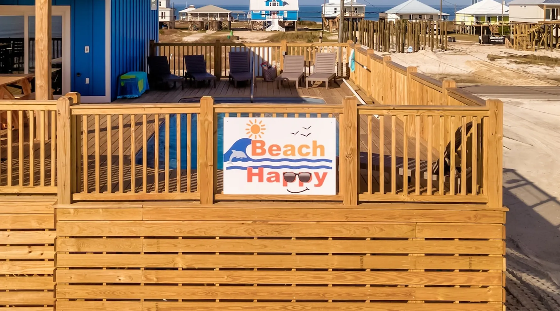 Welcome to Beach Happy, your Gulf front sanctuary on Dauphin Island! This magnificent 5-bedroom , 5-bathroom beach house boasts 3 bedrooms with luxurious gulf views. The private pool and extended beach ensure an unforgettable vacation experience. The space As you step inside, you’ll be greeted by an open living space featuring a fully equipped modern kitchen with two full sized refrigerators with ice makers in each. There is a large island for seating, a dining room conveniently situated next to the kitchen and a wine bar with a drink refrigerator and a stand alone ice maker. The spacious living room offers a large flat screen TV and direct access to the elevated back porch, where you can bask in the breathtaking Gulf views. Beach Happy offers five bedrooms to choose from, including three gulf-view bedrooms at the South end of the home. The two East king bedroom suites provide stunning gulf views, closets, bathrooms with walk-in showers and a direct porch access. The West king bedroom suite provides a stunning gulf view, closet, bathroom with a double vanity and tile walk-in shower and direct porch access. The NW king bedroom suite also has dedicated tv, closet and bathroom with walk-in shower. The NE bunk room features two stacked bunk beds, a dedicated workspace with a desk and office chair and a common bathroom with a tub/shower coveniently located next to it. Outside, the covered back porch provides the perfect spot for outdoor dining and relaxation with several seating options and panoramic Gulf views. The attached side porch boasts a private, heated pool, offering a tranquil retreat with views of the beach and Gulf. Plus a staircase that leads directly down to the beach for easy access to the sandy shores. Other things to note The owners of Beach Happy generously provide additional supplies to ensure a hassle-free stay, allowing you to focus on enjoying your time at Beach Happy. Situated on a highly desirable through lot with only one row of houses on the Gulf side, this property offers enhanced privacy and a more personal beach experience. Don’t miss out on this rare opportunity- book your stay at Beach Happy today. As with all of our Dauphin Island Beach Rentals, all linens and towels are provided, WIFI, along with a fully-outfitted kitchen. There will be a starter pack of toilet paper, paper towels, and trash bags; please plan on bringing more for day 2 ;). A great beach vacation is waiting on you! Please note the following: 1. Minimum Age for the Primary Renter is 25, and Primary Renter must be present for the entire stay. 2. Maximum Occupancy numbers include Children 3 and over and cannot be exceeded at any time. 3. All of our Homes are Non-Smoking. 4. A signed Rental Agreement is Required, which contains additional Rules and Guidance. 5. This property does not allow weddings or parties. 6. Check-in time is 3 pm, and check-out time is 10 am. 7. Start dishes and linens before departure. 8. Take the trash can to the street on Tuesday night and Friday night. 9. This home is NOT pet-friendly. 10. Cargo lifts are not available to guests and can not be used. They are not permitted by Home Owner Insurance Policies.