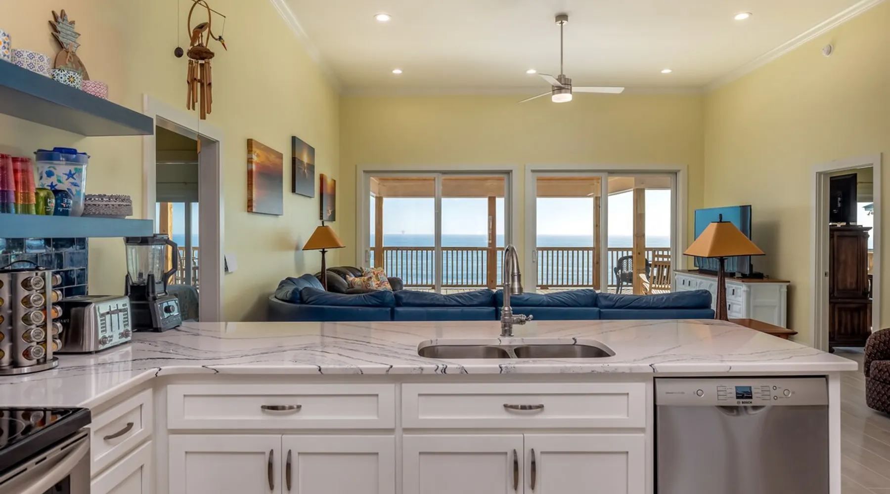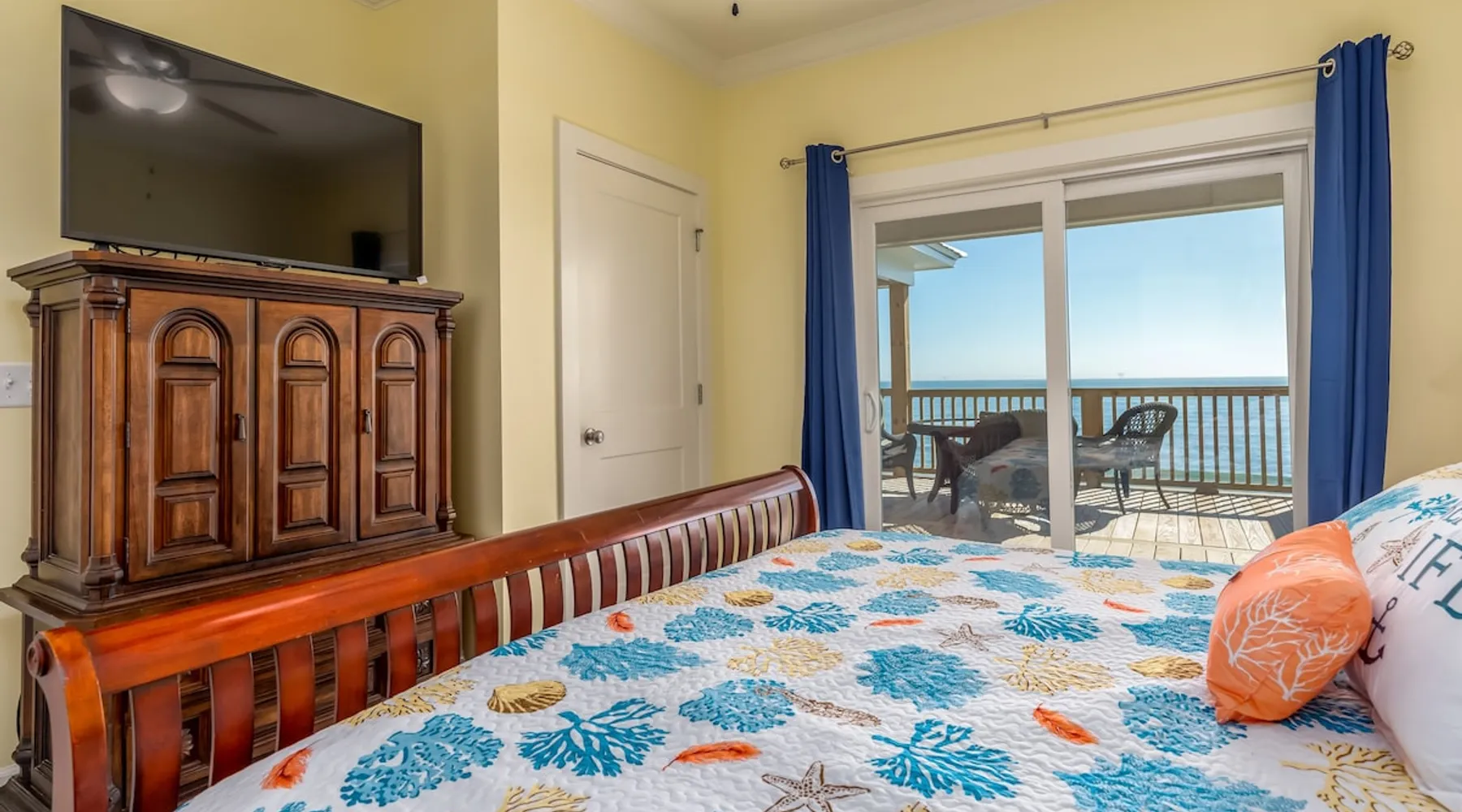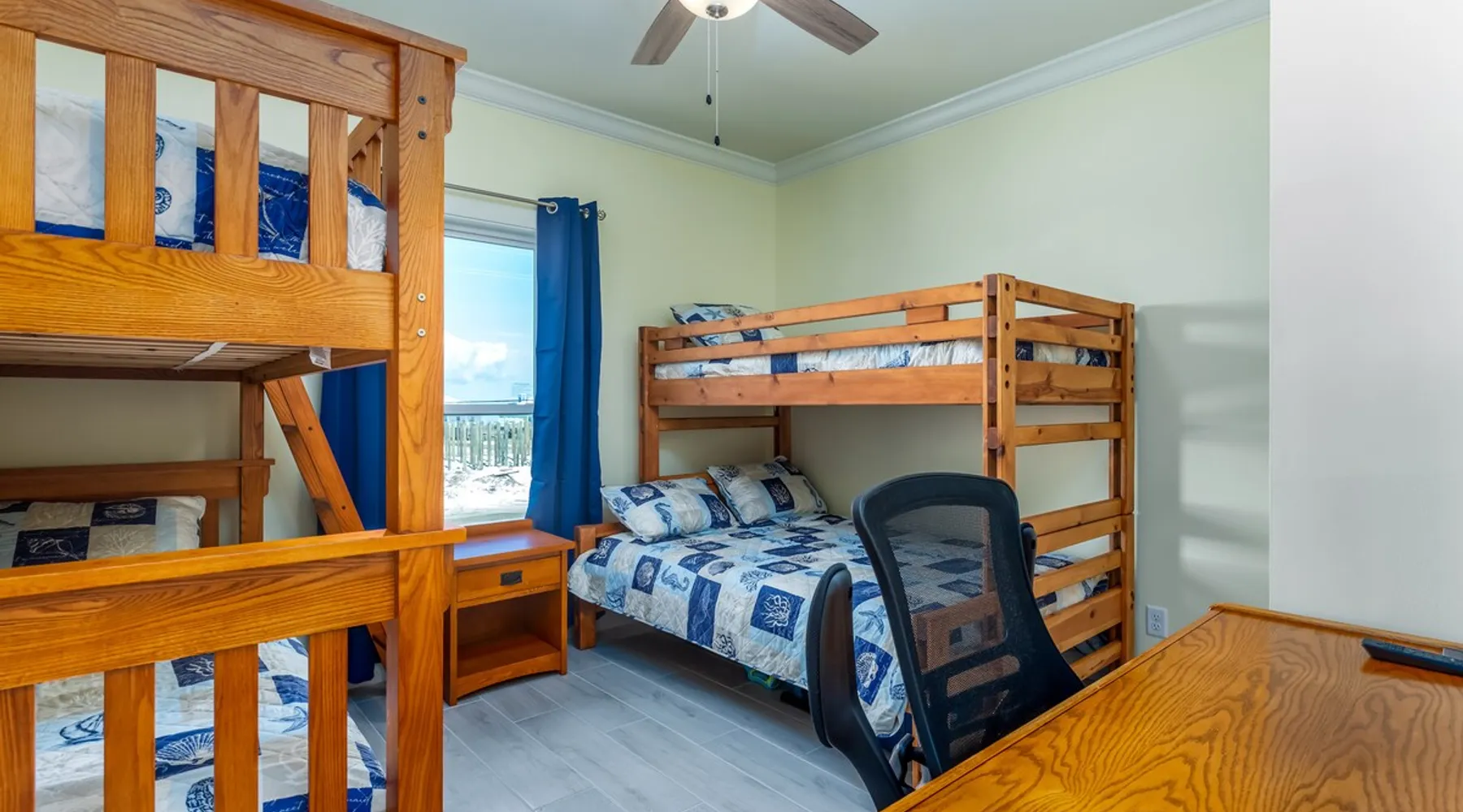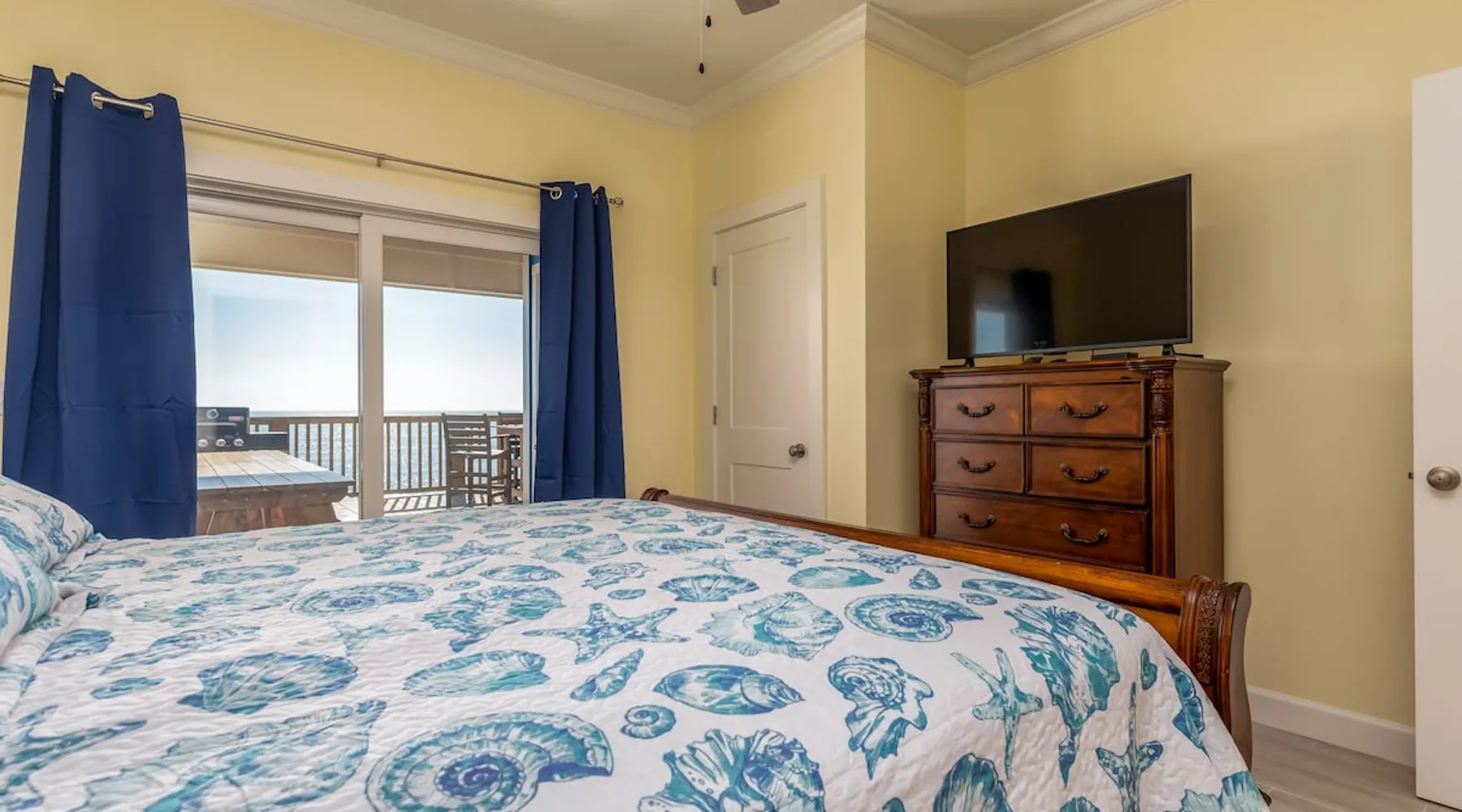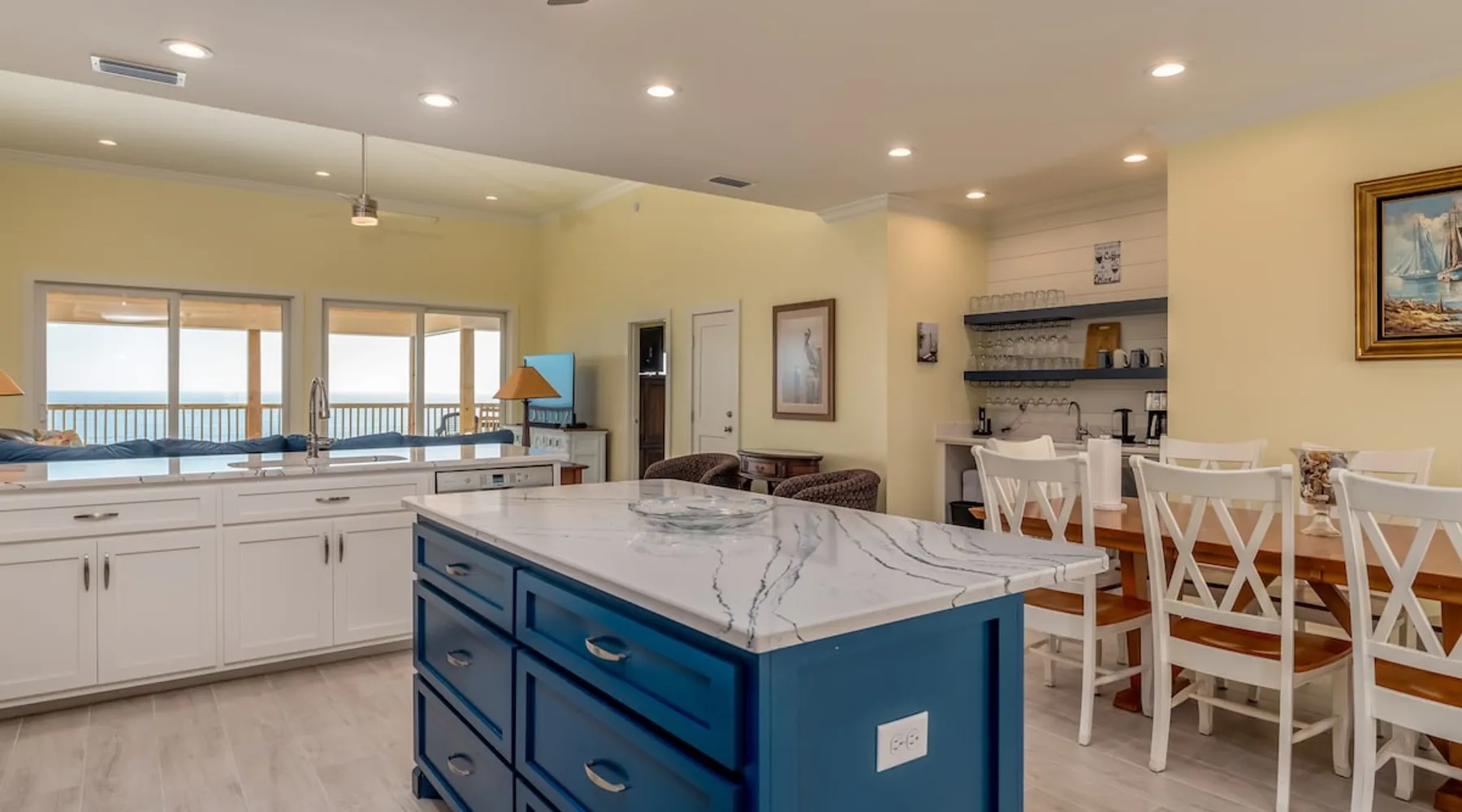 Welcome to Beach Happy, your Gulf front sanctuary on Dauphin Island! This magnificent 5-bedroom , 5-bathroom beach house boasts 3 bedrooms with luxurious gulf views. The private pool and extended beach ensure an unforgettable vacation experience. The space As you step inside, you’ll be greeted by an open living space featuring a fully equipped modern kitchen with two full sized refrigerators with ice makers in each. There is a large island for seating, a dining room conveniently situated next to the kitchen and a wine bar with a drink refrigerator and a stand alone ice maker. The spacious living room offers a large flat screen TV and direct access to the elevated back porch, where you can bask in the breathtaking Gulf views. Beach Happy offers five bedrooms to choose from, including three gulf-view bedrooms at the South end of the home. The two East king bedroom suites provide stunning gulf views, closets, bathrooms with walk-in showers and a direct porch access. The West king bedroom suite provides a stunning gulf view, closet, bathroom with a double vanity and tile walk-in shower and direct porch access. The NW king bedroom suite also has dedicated tv, closet and bathroom with walk-in shower. The NE bunk room features two stacked bunk beds, a dedicated workspace with a desk and office chair and a common bathroom with a tub/shower coveniently located next to it. Outside, the covered back porch provides the perfect spot for outdoor dining and relaxation with several seating options and panoramic Gulf views. The attached side porch boasts a private, heated pool, offering a tranquil retreat with views of the beach and Gulf. Plus a staircase that leads directly down to the beach for easy access to the sandy shores. Other things to note The owners of Beach Happy generously provide additional supplies to ensure a hassle-free stay, allowing you to focus on enjoying your time at Beach Happy. Situated on a highly desirable through lot with only one row of houses on the Gulf side, this property offers enhanced privacy and a more personal beach experience. Don’t miss out on this rare opportunity- book your stay at Beach Happy today. As with all of our Dauphin Island Beach Rentals, all linens and towels are provided, WIFI, along with a fully-outfitted kitchen. There will be a starter pack of toilet paper, paper towels, and trash bags; please plan on bringing more for day 2 ;). A great beach vacation is waiting on you! Please note the following: 1. Minimum Age for the Primary Renter is 25, and Primary Renter must be present for the entire stay. 2. Maximum Occupancy numbers include Children 3 and over and cannot be exceeded at any time. 3. All of our Homes are Non-Smoking. 4. A signed Rental Agreement is Required, which contains additional Rules and Guidance. 5. This property does not allow weddings or parties. 6. Check-in time is 3 pm, and check-out time is 10 am. 7. Start dishes and linens before departure. 8. Take the trash can to the street on Tuesday night and Friday night. 9. This home is NOT pet-friendly. 10. Cargo lifts are not available to guests and can not be used. They are not permitted by Home Owner Insurance Policies.