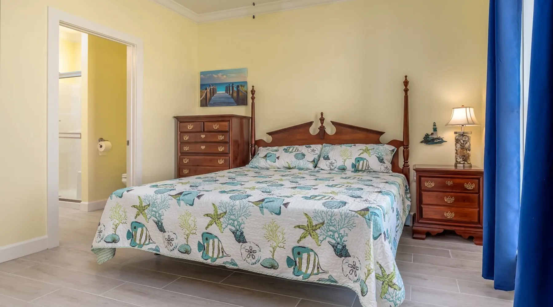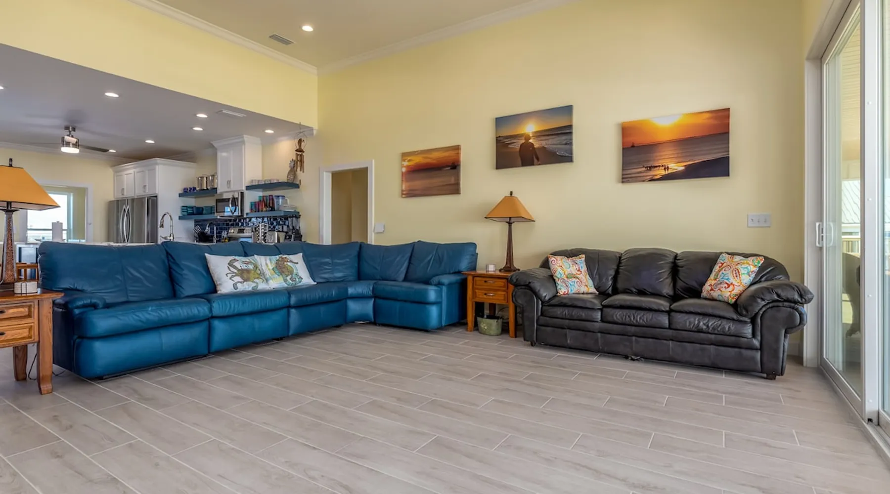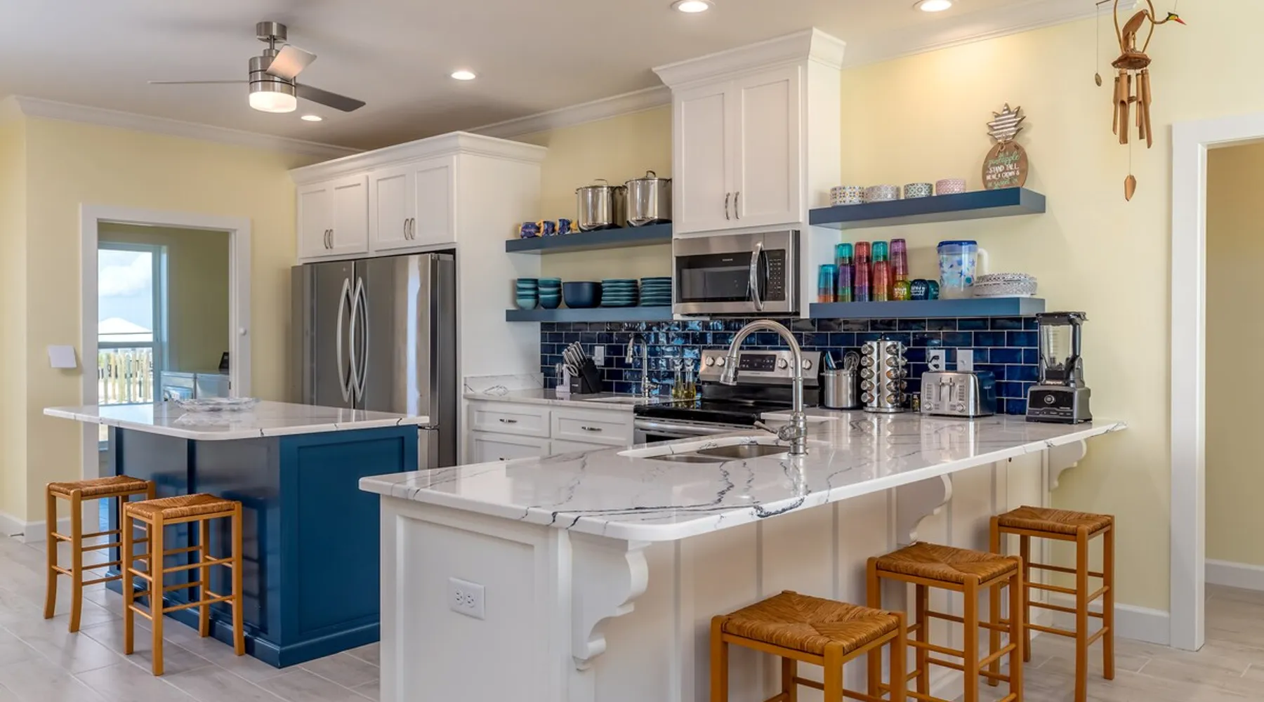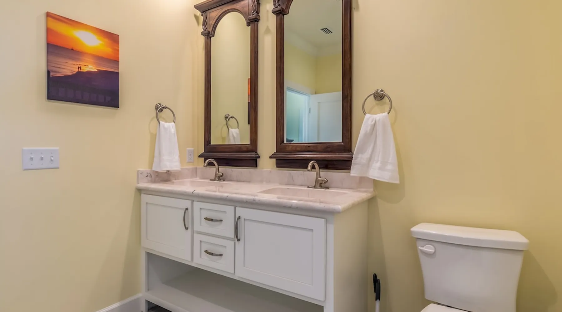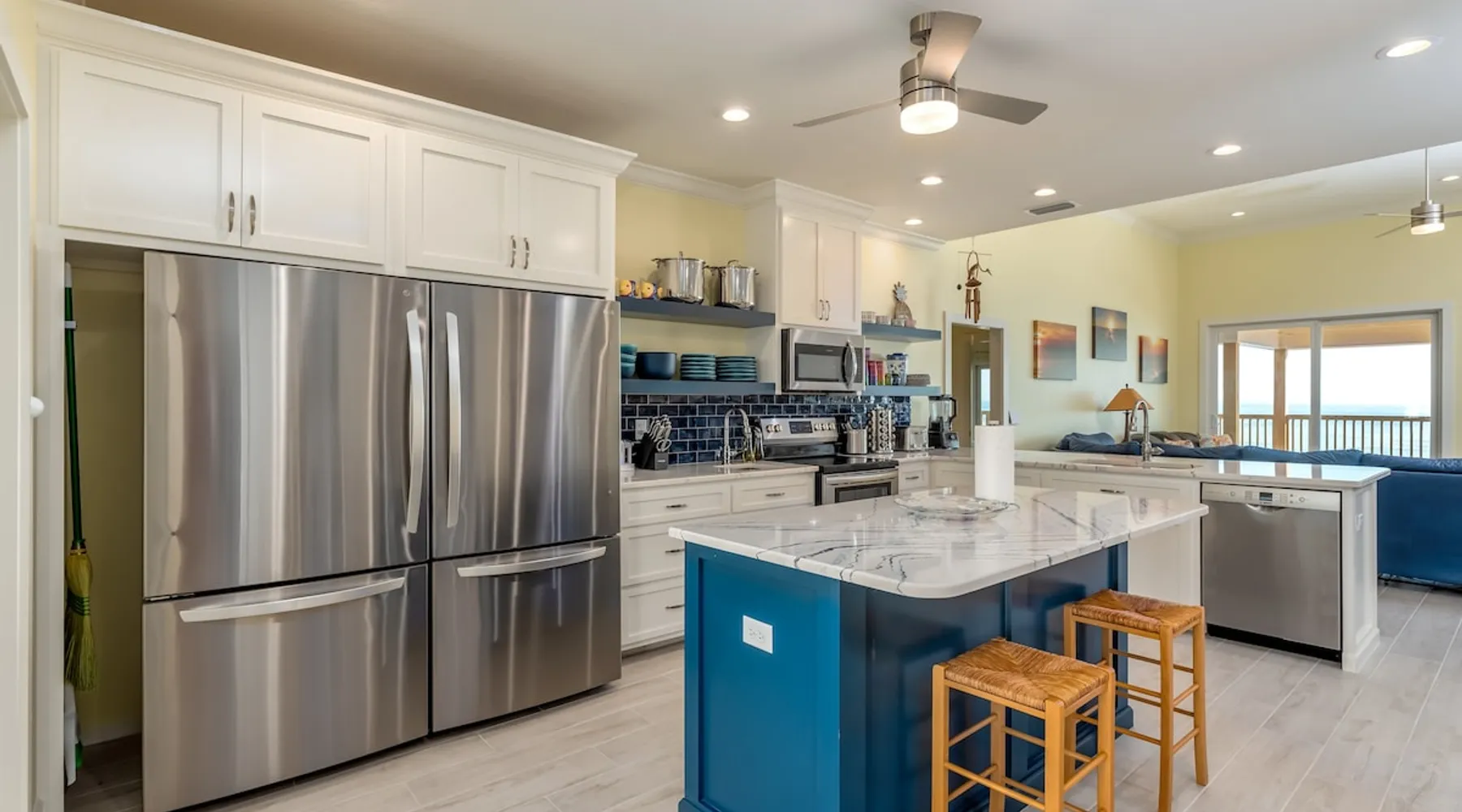 Welcome to Beach Happy, your Gulf front sanctuary on Dauphin Island! This magnificent 5-bedroom , 5-bathroom beach house boasts 3 bedrooms with luxurious gulf views. The private pool and extended beach ensure an unforgettable vacation experience. The space As you step inside, you’ll be greeted by an open living space featuring a fully equipped modern kitchen with two full sized refrigerators with ice makers in each. There is a large island for seating, a dining room conveniently situated next to the kitchen and a wine bar with a drink refrigerator and a stand alone ice maker. The spacious living room offers a large flat screen TV and direct access to the elevated back porch, where you can bask in the breathtaking Gulf views. Beach Happy offers five bedrooms to choose from, including three gulf-view bedrooms at the South end of the home. The two East king bedroom suites provide stunning gulf views, closets, bathrooms with walk-in showers and a direct porch access. The West king bedroom suite provides a stunning gulf view, closet, bathroom with a double vanity and tile walk-in shower and direct porch access. The NW king bedroom suite also has dedicated tv, closet and bathroom with walk-in shower. The NE bunk room features two stacked bunk beds, a dedicated workspace with a desk and office chair and a common bathroom with a tub/shower coveniently located next to it. Outside, the covered back porch provides the perfect spot for outdoor dining and relaxation with several seating options and panoramic Gulf views. The attached side porch boasts a private, heated pool, offering a tranquil retreat with views of the beach and Gulf. Plus a staircase that leads directly down to the beach for easy access to the sandy shores. Other things to note The owners of Beach Happy generously provide additional supplies to ensure a hassle-free stay, allowing you to focus on enjoying your time at Beach Happy. Situated on a highly desirable through lot with only one row of houses on the Gulf side, this property offers enhanced privacy and a more personal beach experience. Don’t miss out on this rare opportunity- book your stay at Beach Happy today. As with all of our Dauphin Island Beach Rentals, all linens and towels are provided, WIFI, along with a fully-outfitted kitchen. There will be a starter pack of toilet paper, paper towels, and trash bags; please plan on bringing more for day 2 ;). A great beach vacation is waiting on you! Please note the following: 1. Minimum Age for the Primary Renter is 25, and Primary Renter must be present for the entire stay. 2. Maximum Occupancy numbers include Children 3 and over and cannot be exceeded at any time. 3. All of our Homes are Non-Smoking. 4. A signed Rental Agreement is Required, which contains additional Rules and Guidance. 5. This property does not allow weddings or parties. 6. Check-in time is 3 pm, and check-out time is 10 am. 7. Start dishes and linens before departure. 8. Take the trash can to the street on Tuesday night and Friday night. 9. This home is NOT pet-friendly. 10. Cargo lifts are not available to guests and can not be used. They are not permitted by Home Owner Insurance Policies.
