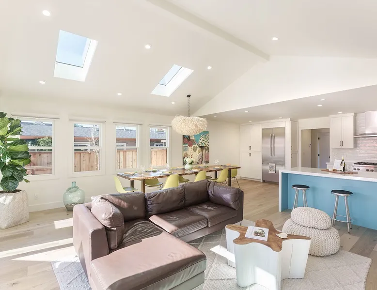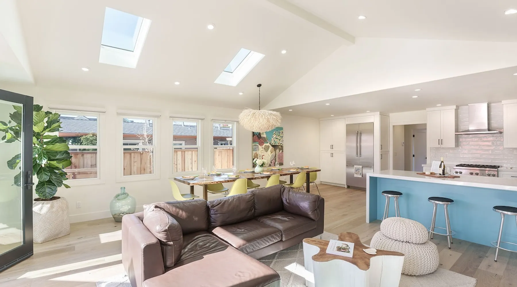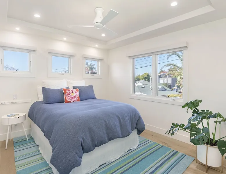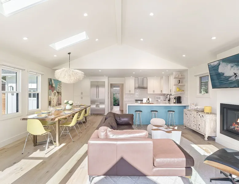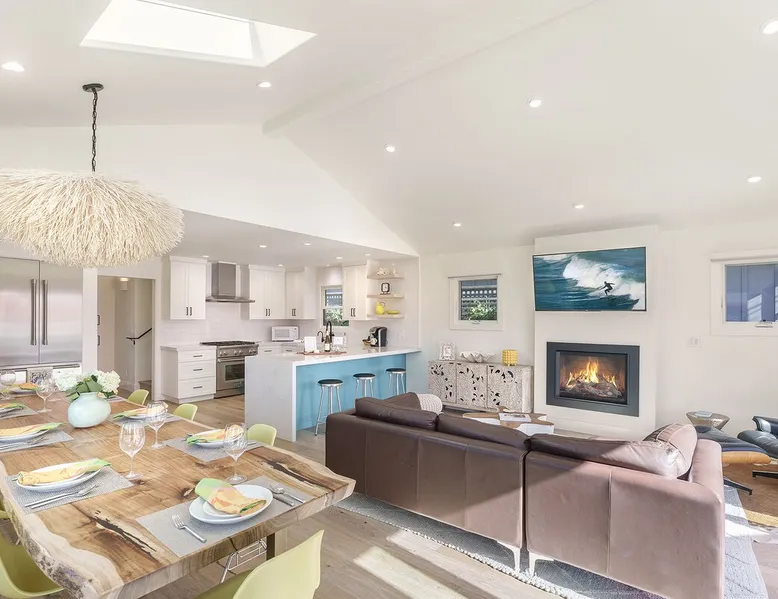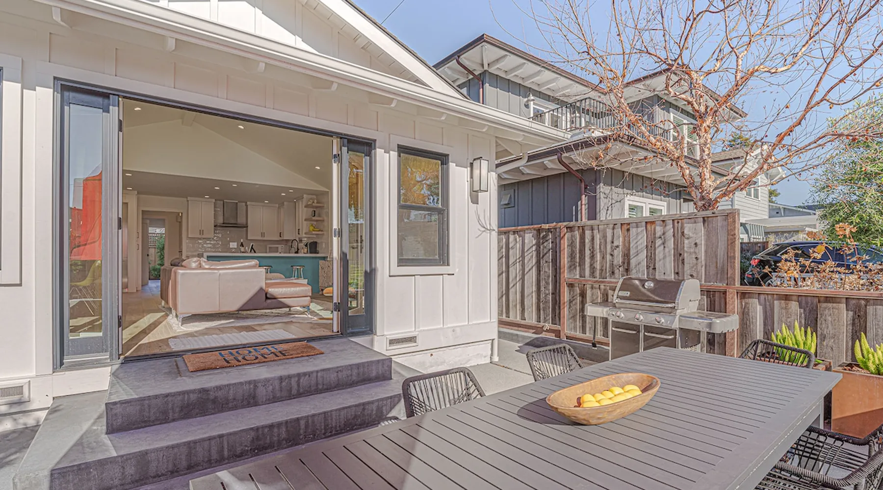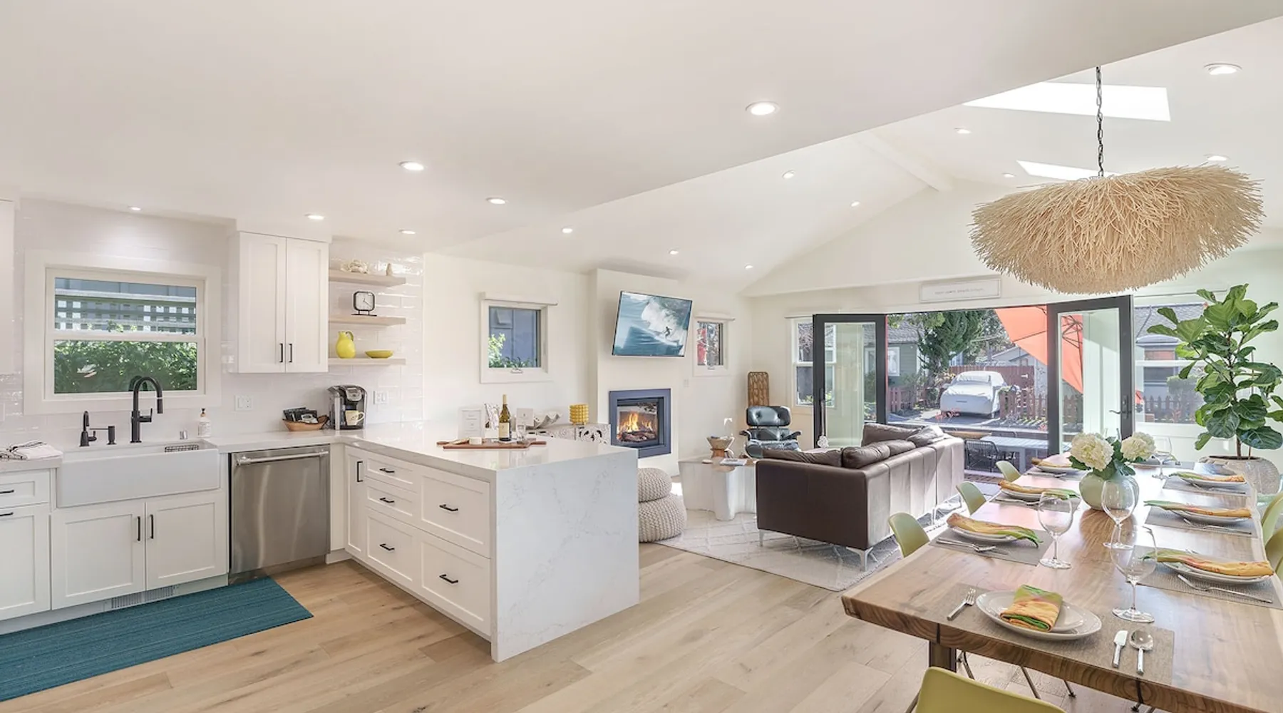 This unit is a monthly rental. We request that all nights of your stay are within the same month. Some exceptions may be made, with the approval of our team and the homeowner. Please refer to our House Rules for further information. 1,475 sf, 3 bedroom, 2.5 bathroom vacation home sleeps up to 6 guests. King, Queen, Queen. Bonus room. Dog OK. No garage. Sanctuary Vacation Rentals is proud to present "Emerald House"! This home sleeps up to 6 guests. The space This completely updated gem sits on a quiet street a short walk from Hooper Beach and Capitola State Beach, Capitola Wharf and countless other attractions and conveniences. This home-away-from-home has everything the family needs to enjoy their vacation time from beach gear, BBQ grill and fire pit to a backyard hot tub and outdoor shower. Get out the ping pong table and games and create some good-time memories together. Living Space Open concept style living/dining/kitchen flow seamlessly onto the front deck with a grill and seating where meals can be enjoyed al fresco. Lofty living areas are gracious and the family can gather around a large live-edge acacia table. The living area has a large flat screen Smart TV mounted over a gas fireplace, where you can cozy up in front of your Netflix queue and binge watch your favorite programs. There is even a super comfortable, very high-end, Restoration Hardware "Cloud Sectional" providing the ultimate in relaxed lounging. This home is very well equipped for extended stays! Kitchen and Dining The fully-equipped gourmet kitchen with stainless steel Thermador appliances will surely please even the most discriminating of chefs. Kitchen includes peninsula seating, luxury finishes and extras like both Keurig and drip coffee makers. A large table is at the center of the home and will be a favorite gathering spot for the family. Bedrooms and Bathrooms Main/lower level primary bedroom with king bed and en suite bathroom featuring a large shower with handheld wand and custom tile work. Also on the lower level near the living areas is a half-bath. Two upper level bedrooms each have a queen bed and are adjacent to the hall bath with standing shower and custom tile. Bonus Room The garage space has been converted to a bonus room with a comfortable sofa, large flat screen Smart TV with streaming services, games, beach gear and the washer and dryer. The folding ping pong table can be rolled out into the driveway for more fun and games. Outdoor Spaces When you aren't frolicking on the beach or exploring the Capitola area, you'll want to hang out on the front deck with a BBQ grill, dining table with umbrella or on the rear patio with comfortable seating, large umbrella, a hot tub and an outdoor shower. 1,475 square feet, but the open floor plan makes the home feel larger, modern, light and airy. Well-behaved dogs are welcome with pre-approval, an additional pet fee and a signed pet addendum. Dogs should not be left alone anywhere on the property during your stay. Quiet Street with a Driveway for 1-2 cars and street parking available. This home is a monthly rental because the City of Capitola does not allow rental terms of less than 30 days. We request that all nights of your stay are within the same calendar month. Some exceptions may be possible, with the approval of our team and the homeowner. Extended stays are often possible. This vacation home is professionally managed by Sanctuary Vacation Rentals. With over 15 years of property management experience, Sanctuary strives to provide environments that nurture and inspire with all the comforts of home. Each home has beach towels, shower and bath amenities and spa-style robes. Our team is available 7 days a week to assist you. We look forward to hosting you! Other things to note This unit is a monthly rental. We request that all nights of your stay are within the same month. Some exceptions may be made, with the approval of our team and the homeowner. Please refer to our House Rules for further information.
