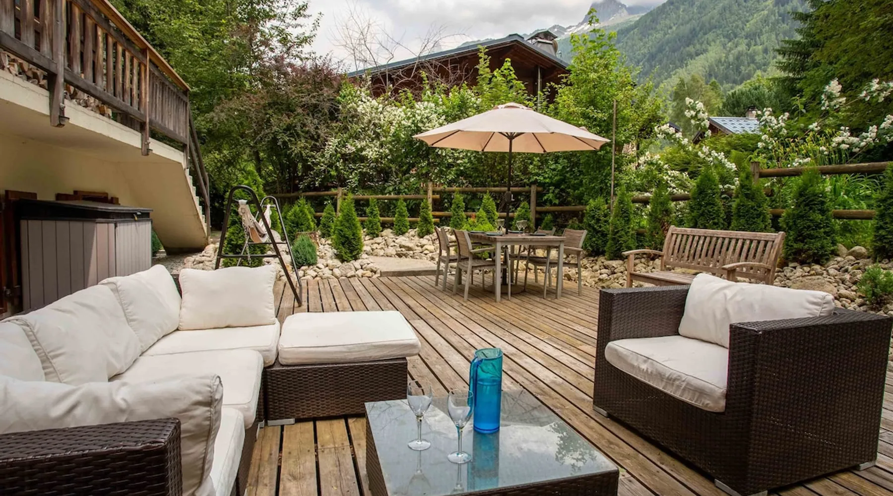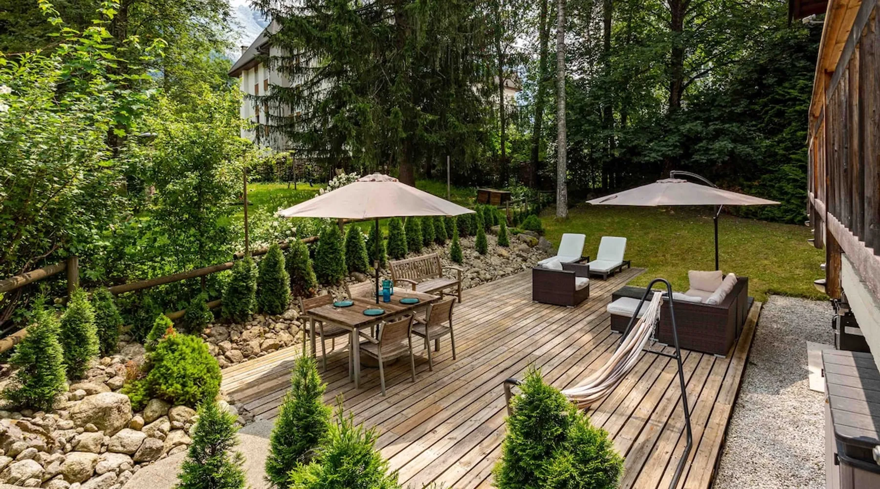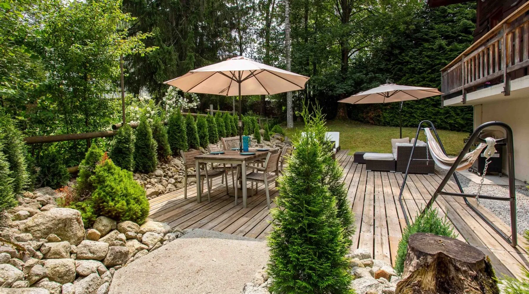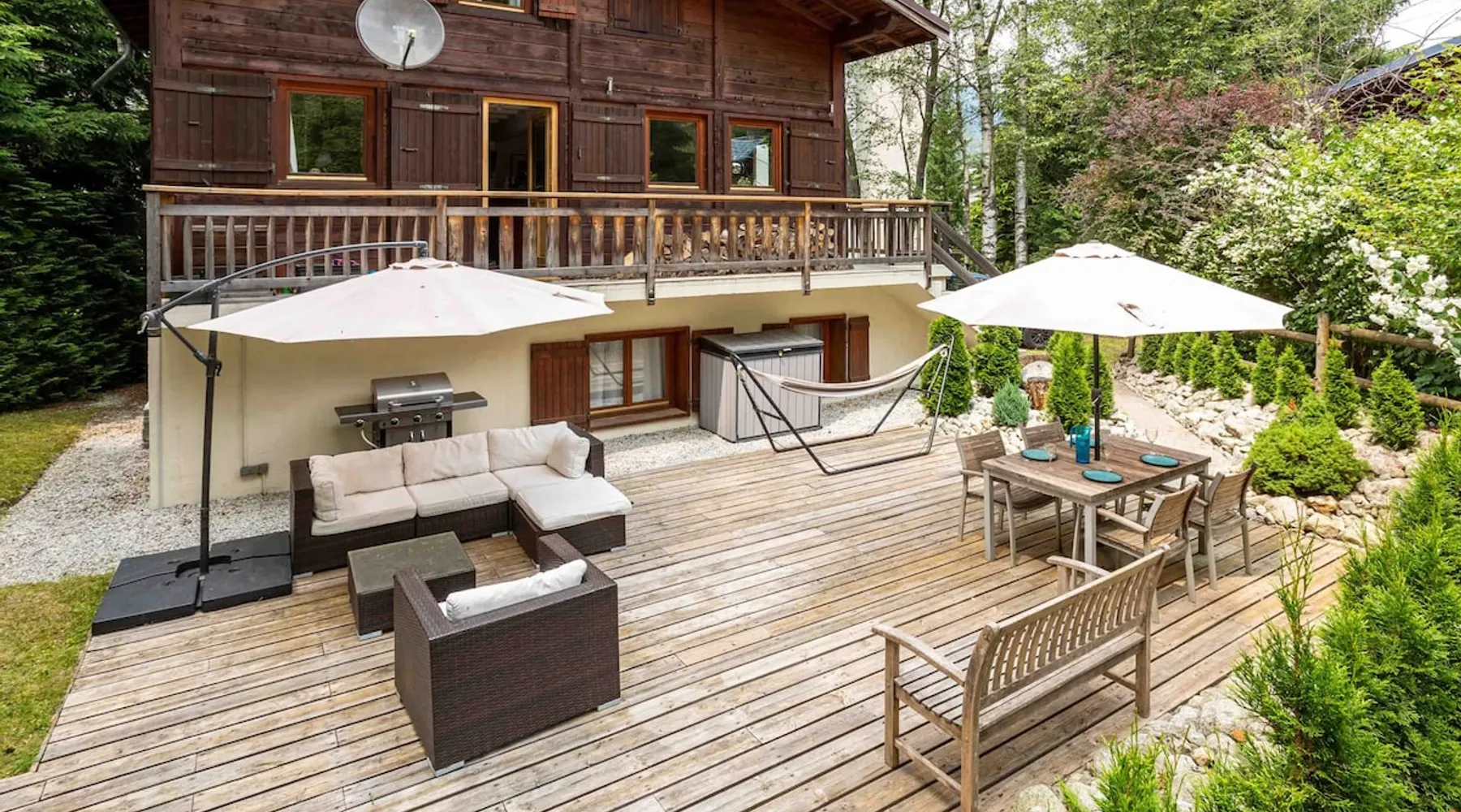 Chalet des Favrands is a 3 bedroom, 2 bathroom chalet sleeping 6 people, with log fire, beautiful terrace, sauna, BBQ, washing machine, located close to Chamonix town centre. Chalet des Favrands is a 3 bedroom chalet that can accommodate 6 people, with 2 bathrooms, pathée, pretty terrace, sauna, BBQ, washing machine, locationé près of the city center for more info or click on 'Book online' for réserver. The space Chalet des Favrands is a beautiful Chamonix ski chalet sleeping up to 6 people in three bedrooms only 15 minutes to Chamonix centre. The chalet has three double bedrooms, 2 bathrooms, a spacious lounge and a sauna that are perfect for relaxing after a long day in the mountains. There is a smart TV with free Sky to also access some UK channels. There is a separate dining area with a dining table that seats 6 comfortably and a log fire. The well-equipped kitchen includes dishwasher, fridge freezer, Nespresso coffee machine and a breakfast bar with stools making it a very sociable space in this Chamonix chalet. The outside space at Chalet des Favrands is a great addition, a large sunny garden, great for families and friends relaxing in the summer sun. The large terrace comes complete with a lounging and dining area and an ideal spot for an evening BBQ and or just to take in the sunshine and the view. Key Features Sleeps 6 people 110SQM Three double bedrooms Two bathrooms Open plan living area with TV Dining table seats 6 Log fire Well-equipped modern kitchen with oven, dishwasher and Nespresso coffee machine Sauna Washing machine South facing terrace with BBQ Outdoor parking for 2 cars Please note the stairs are steep within this chalet and not suitable for people with mobility problems and the upstairs bedrooms have reduced head height as seen in the pictures. Book alongside Chalet des Souchettes for larger groups. Other things to note myCAY loyalty programme All Chamonix All Year guests are invited to join myCAY, our loyalty programme which gets more rewarding the longer you’re with us. Once you have booked to stay with us, as a valued guest you can join to unlock a host of benefits and rewards, including money can’t buy services, discount exclusives and the best of Chamonix All Year for all the family and friends to enjoy too. The more you stay, the more rewards you get, and as you move up the tiers, some of the benefits include free upgrades such as free early or late check-ins and check-outs. Check-in times Normal check-in time is from 5pm, if you are arriving after 10pm please let us know in advance. Check-out times Normal check-out time is by 10am. Flexible check-in / check-out times If these times don’t suit your holiday arrangements, you can book our flexible early check-in / late check-out service (subject to availability). This must be booked with us in advance, and may be subject to a fee of 40€ for apartments and 80€ for chalets so that we can prepare the property in time. Children Travel cots & high chairs / booster seats can be hired through us for 35€ to include cot mattress, bed linen and a towel. You can add this to your booking at the time of booking. What's included One set of bed linen and towels is provided at your accommodation for your stay. If you are staying for 2 weeks or more you will have a mid-stay linen change. Tourist guest cards will be left in the property for you on arrival to give you free travel on the local train and buses and more. End of stay cleaning is included at your accommodation, but we do expect you to follow our check out instructions on departure. If you prefer you can book an additional cleaning service. Cards accepted Chamonix All Year Resort Shop Order everything you need for your Chamonix holiday now via our Chamonix Resort Shop: Geneva Airport transfers Chamonix lift passes Discounted ski hire Additional Accommodation Details Pets Pets are welcome at this property but permission must be obtained in advance and a charge will be applied at time of booking. The additional fee is 40€. Firewood These are provided for your use, stacked outside the chalet, although if they run out you may need to buy your own from the nearest supermarket. Please note the street to access the chalet can be snowy and icy in the winter, so it is strongly advised that you have a good 4x4 car with winter tyres and you may also need to use snow chains too. Registration details 74056002156FF
