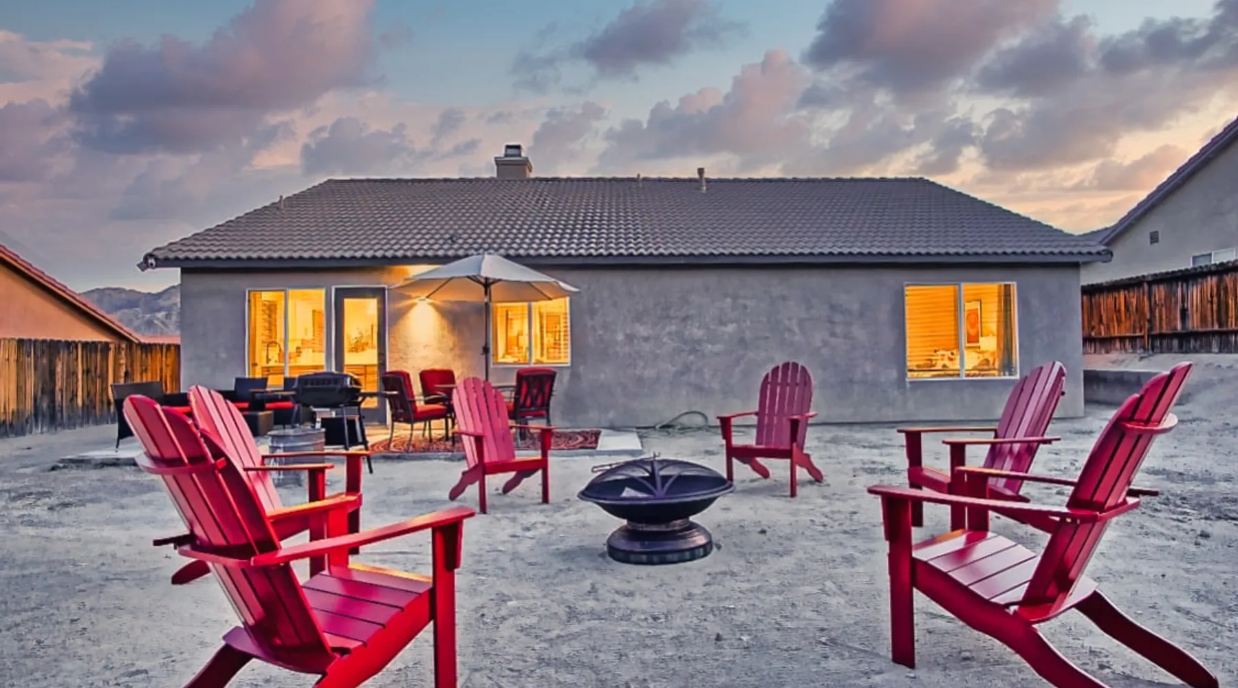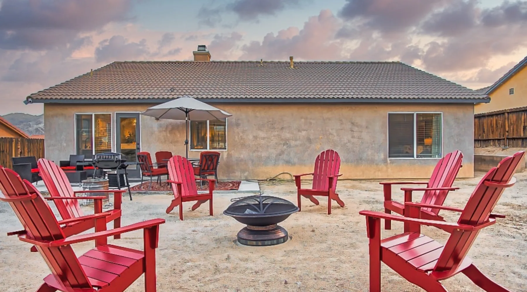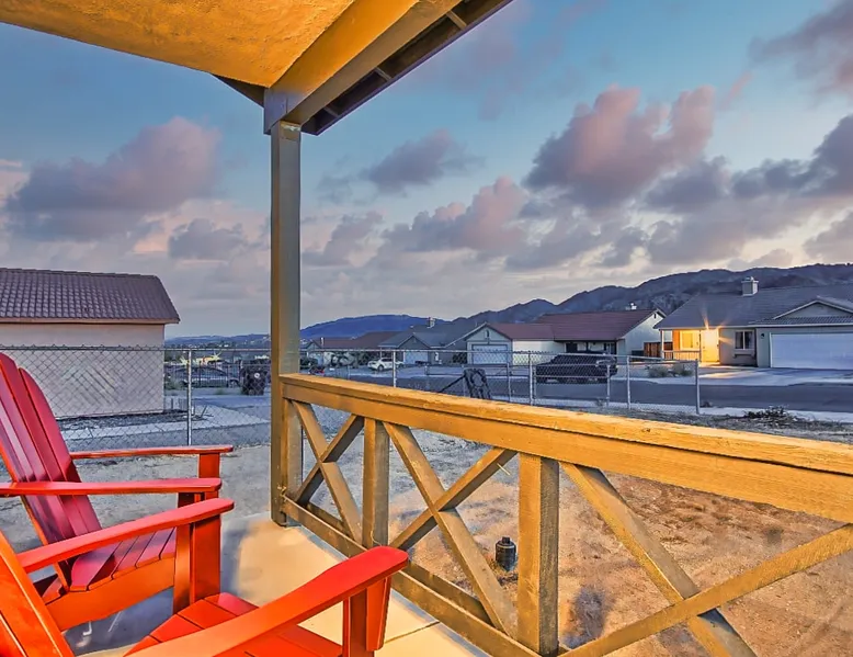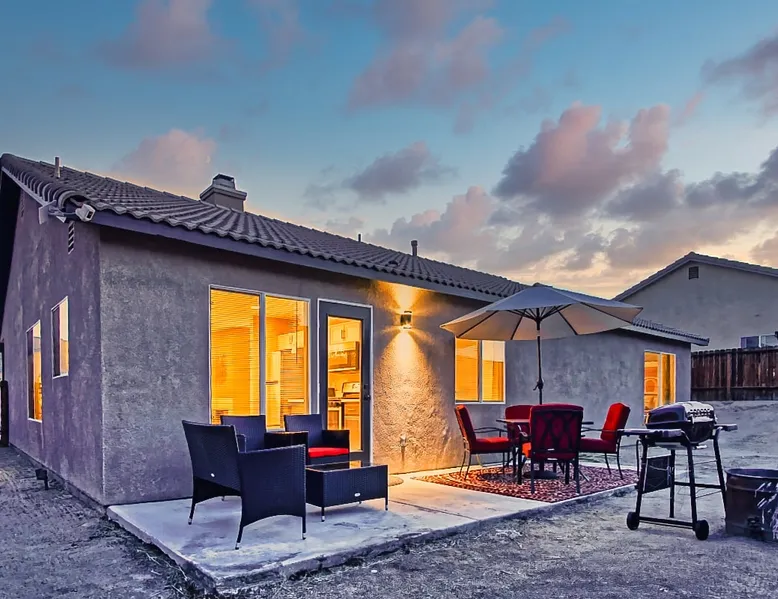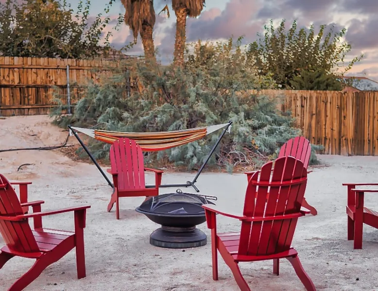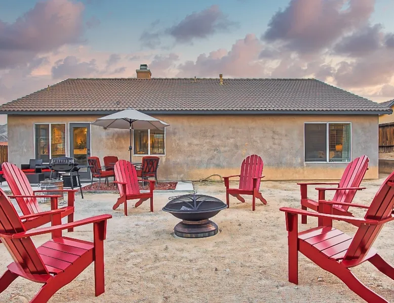 Nightsky Nest offers both tranquility and convenience making it the perfect place to call home as you embark on your exciting California High Desert adventure and memorable time at the world-famous Joshua Tree National Park! Situated in a quiet pedestrian friendly neighborhood and ideally located equidistant from two Park entrances, this 3 bedroom, 2 bathroom, single level property, can accommodate you and yours with ease whether indoors or out The space DESERT & MOUNTAIN VISTAS | STYLISH & SERENE | 1,314 SQ FT Desert adventurers and stargazers, welcome to Nightsky Nest! This updated home is perfectly situated to access all the best that the California High Desert has to offer. Equally located between both the West and North entrances of Joshua Tree National Park, visitors are only 15 minutes from the other worldly location. Convenient to shopping, dining and attractions, Nightsky Nest is an idyllic escape. Impeccably decorated, offering a fully fenced backyard for evenings to privately enjoy the starlit skies, and unparalleled location conveniences to all needed amenities make this the getaway you have been waiting for. Guests will wake up to views of the mountain ranges bordering Joshua Tree National Park and can enjoy their morning cup of coffee on the quaint front porch. Get prepared for the day by fueling up with a meal you can prepare in the fully equipped kitchen that opens up to both the dining and living areas. After exploring the great outdoors or browsing the eclectic local boutiques and shops, settle in for the evening for that chance to unwind. Whether you are having take-out from one of the local restaurants or preparing a special dish prepared with ingredients from stores just around the corner, there are endless options to close out your day at Nightsky Nest. Catch up on your favorite shows or have a movie on a large flat-screen Roku smart television in the living room or the large guest bedroom. For those needing a digital free evening, a suite of board games and a thoughtful collection of books are available to read. Should the fresh, open air beckon you once more, the home extends the living experience outside. Easily dine al fresco with direct access from the kitchen to the grill. Enjoy an outdoor meal while watching the colors of the sunset light the sky at the adjoining patio dining and seating areas. A firepit circled by comfortable chairs, coupled with two large hammocks just steps away, make a picturesque scene for quiet hours of stargazing deep into the night. Turn in for that restful night of sleep in any one of the three bedrooms, including one with its own ensuite bathroom and furnished with two queen size beds and television. The home also offers high-speed internet, two workstations, guest access to laundry, and a standard 110v outlet for Level 1 EV charging. Placed between all the best of the High Desert, Twentynine Palms is a city that carries the honor as the official Gateway to the new Mojave Trails National Monument. From the breathtaking trails of Joshua Tree National Park to the vibrant arts culture that epitomizes the creative vibrancy of the region, there is something for everyone. With a drive to Palm Springs and the Coachella Valley less than an hour away, the attractions and experiences are endless. Your next adventure awaits you here at Nightsky Nest! Guest access Nightsky Nest will be exclusive to you and your guests during your stay. This property provides secure, keyless entry with an August Smart Lock; so, no keys to lose or to return! You can lock and unlock the door by using a personal entry code issued to you for the duration of your stay. Other things to note Our home is located in a quiet residential neighborhood in the tranquil city of Twentynine Palms. Please be respectful of our community and neighbors. Parties, events, or large gatherings are strictly prohibited. In addition, excessive noise at any time is never allowed. Quiet hours are in place every day between 10 p.m. and 8 a.m and must be abided at all times. Local code enforcement by the city is allowed to come to property and can respond to any complaints made by local residents 24 hours a day. The sleeping arrangements at our home can accommodate up to 8 guests with 2 queen beds in the large guest bedroom with ensuite bathroom and a queen bed in each of the other 2 guest bedrooms. We welcome responsible and responsive guests over the age of 21. Any and all persons staying or visiting the property must be 18 years of age or older unless accompanied by a parent or a legal guardian. A copy of the guest's government issued ID must be shared with the host upon a confirmed reservation. This is for safety and security purposes and is strictly required in order to stay at our home. Pets allowed with restrictions and additional fees (please see house rules). If a guest cancels a reservation, all eligible refunds will be governed by the cancellation policy agreed upon at time of booking. No refunds outside of the cancellation policy will be possible unless a mandatory evacuation is ordered for the area. Thus, it is highly recommended that all guests purchase trip cancellation/interruption insurance. In the event that a guest cannot make a trip due to a family emergency, illness, bad weather, flight/rental car cancellation, job loss, COVID-19 ban/restriction, etc., the guest should seek reimbursement through their travel insurance. Mother Nature’s creatures both great and small also reside in the area in which our home is situated. Understanding how disconcerting it may be for our guests to find these critters in our home, please know that we hold a high standard for cleanliness and take all efforts to try to keep Mother Nature's creatures at bay. We subscribe to regularly scheduled pest control services so our guests can have an enjoyable stay. Despite measures we have taken to keep the home free of such events, it is not uncommon to have a stray visitor come into the house through 