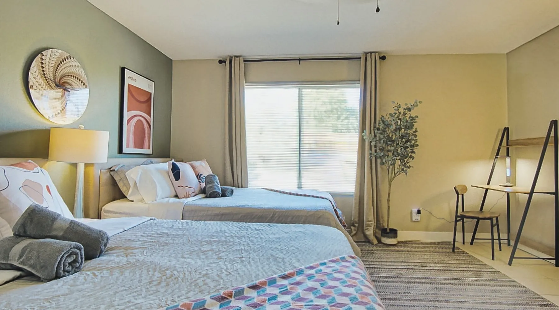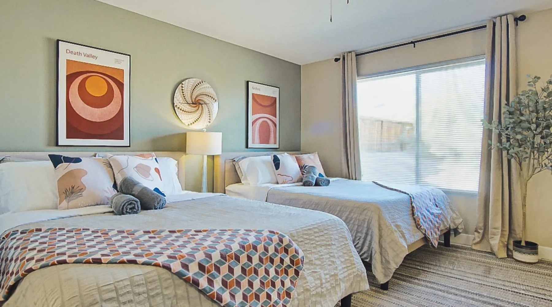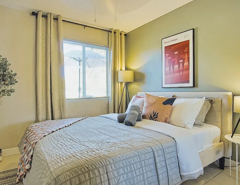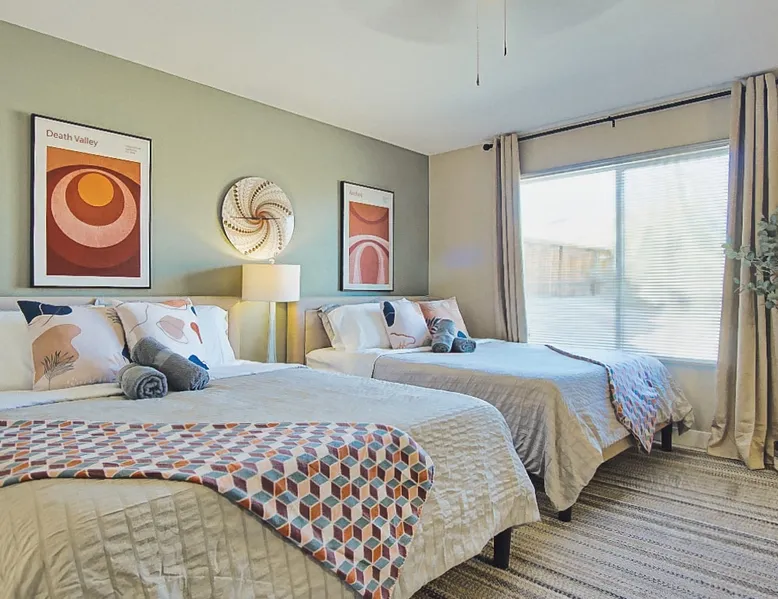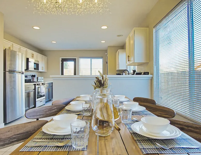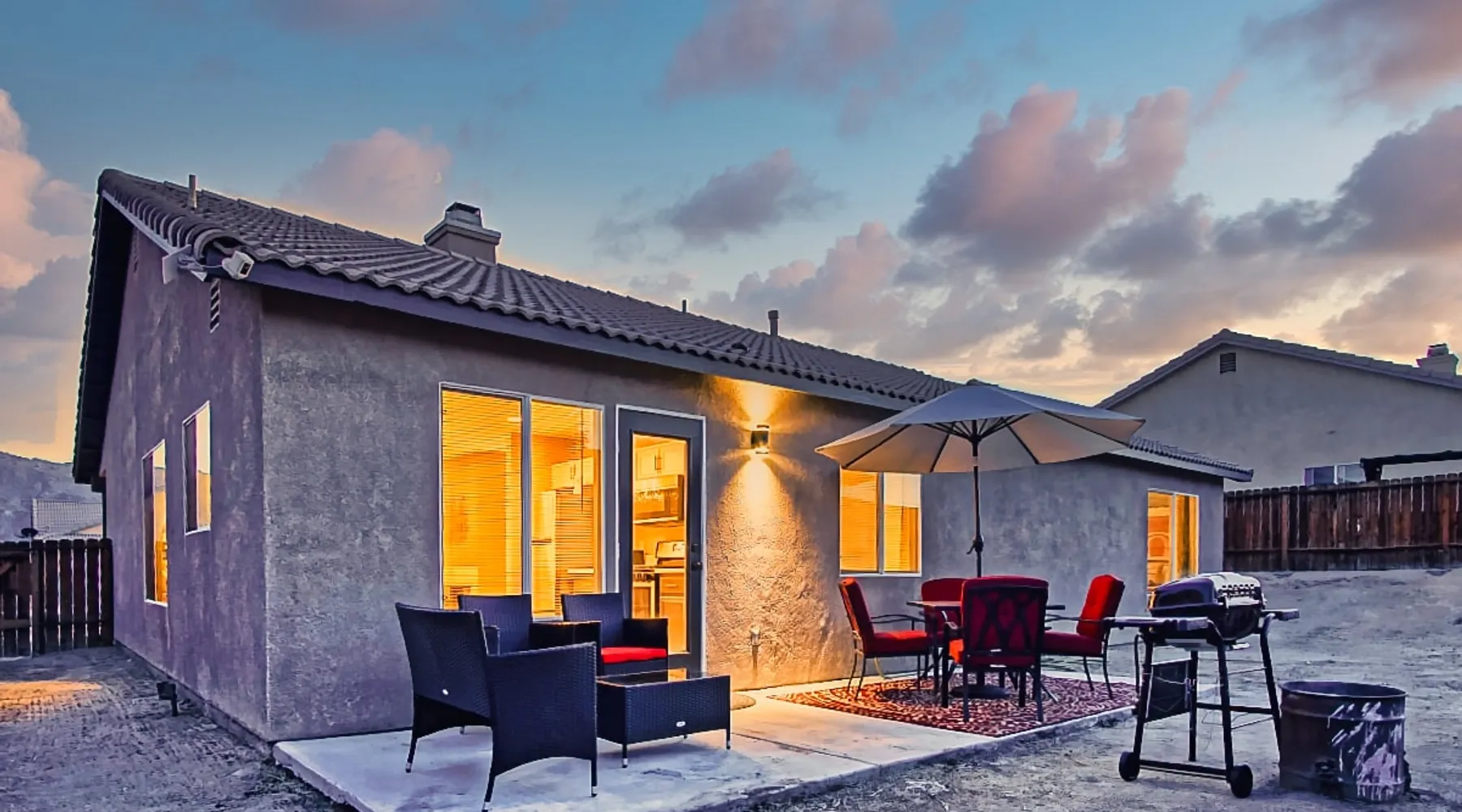 Nightsky Nest offers both tranquility and convenience making it the perfect place to call home as you embark on your exciting California High Desert adventure and memorable time at the world-famous Joshua Tree National Park! Situated in a quiet pedestrian friendly neighborhood and ideally located equidistant from two Park entrances, this 3 bedroom, 2 bathroom, single level property, can accommodate you and yours with ease whether indoors or out The space DESERT & MOUNTAIN VISTAS | STYLISH & SERENE | 1,314 SQ FT Desert adventurers and stargazers, welcome to Nightsky Nest! This updated home is perfectly situated to access all the best that the California High Desert has to offer. Equally located between both the West and North entrances of Joshua Tree National Park, visitors are only 15 minutes from the other worldly location. Convenient to shopping, dining and attractions, Nightsky Nest is an idyllic escape. Impeccably decorated, offering a fully fenced backyard for evenings to privately enjoy the starlit skies, and unparalleled location conveniences to all needed amenities make this the getaway you have been waiting for. Guests will wake up to views of the mountain ranges bordering Joshua Tree National Park and can enjoy their morning cup of coffee on the quaint front porch. Get prepared for the day by fueling up with a meal you can prepare in the fully equipped kitchen that opens up to both the dining and living areas. After exploring the great outdoors or browsing the eclectic local boutiques and shops, settle in for the evening for that chance to unwind. Whether you are having take-out from one of the local restaurants or preparing a special dish prepared with ingredients from stores just around the corner, there are endless options to close out your day at Nightsky Nest. Catch up on your favorite shows or have a movie on a large flat-screen Roku smart television in the living room or the large guest bedroom. For those needing a digital free evening, a suite of board games and a thoughtful collection of books are available to read. Should the fresh, open air beckon you once more, the home extends the living experience outside. Easily dine al fresco with direct access from the kitchen to the grill. Enjoy an outdoor meal while watching the colors of the sunset light the sky at the adjoining patio dining and seating areas. A firepit circled by comfortable chairs, coupled with two large hammocks just steps away, make a picturesque scene for quiet hours of stargazing deep into the night. Turn in for that restful night of sleep in any one of the three bedrooms, including one with its own ensuite bathroom and furnished with two queen size beds and television. The home also offers high-speed internet, two workstations, guest access to laundry, and a standard 110v outlet for Level 1 EV charging. Placed between all the best of the High Desert, Twentynine Palms is a city that carries the honor as the official Gateway to the new Mojave Trails National Monument. From the breathtaking trails of Joshua Tree National Park to the vibrant arts culture that epitomizes the creative vibrancy of the region, there is something for everyone. With a drive to Palm Springs and the Coachella Valley less than an hour away, the attractions and experiences are endless. Your next adventure awaits you here at Nightsky Nest! Guest access Nightsky Nest will be exclusive to you and your guests during your stay. This property provides secure, keyless entry with an August Smart Lock; so, no keys to lose or to return! You can lock and unlock the door by using a personal entry code issued to you for the duration of your stay. Other things to note Our home is located in a quiet residential neighborhood in the tranquil city of Twentynine Palms. Please be respectful of our community and neighbors. Parties, events, or large gatherings are strictly prohibited. In addition, excessive noise at any time is never allowed. Quiet hours are in place every day between 10 p.m. and 8 a.m and must be abided at all times. Local code enforcement by the city is allowed to come to property and can respond to any complaints made by local residents 24 hours a day. The sleeping arrangements at our home can accommodate up to 8 guests with 2 queen beds in the large guest bedroom with ensuite bathroom and a queen bed in each of the other 2 guest bedrooms. We welcome responsible and responsive guests over the age of 21. Any and all persons staying or visiting the property must be 18 years of age or older unless accompanied by a parent or a legal guardian. A copy of the guest's government issued ID must be shared with the host upon a confirmed reservation. This is for safety and security purposes and is strictly required in order to stay at our home. Pets allowed with restrictions and additional fees (please see house rules). If a guest cancels a reservation, all eligible refunds will be governed by the cancellation policy agreed upon at time of booking. No refunds outside of the cancellation policy will be possible unless a mandatory evacuation is ordered for the area. Thus, it is highly recommended that all guests purchase trip cancellation/interruption insurance. In the event that a guest cannot make a trip due to a family emergency, illness, bad weather, flight/rental car cancellation, job loss, COVID-19 ban/restriction, etc., the guest should seek reimbursement through their travel insurance. Mother Nature’s creatures both great and small also reside in the area in which our home is situated. Understanding how disconcerting it may be for our guests to find these critters in our home, please know that we hold a high standard for cleanliness and take all efforts to try to keep Mother Nature's creatures at bay. We subscribe to regularly scheduled pest control services so our guests can have an enjoyable stay. Despite measures we have taken to keep the home free of such events, it is not uncommon to have a stray visitor come into the house through 