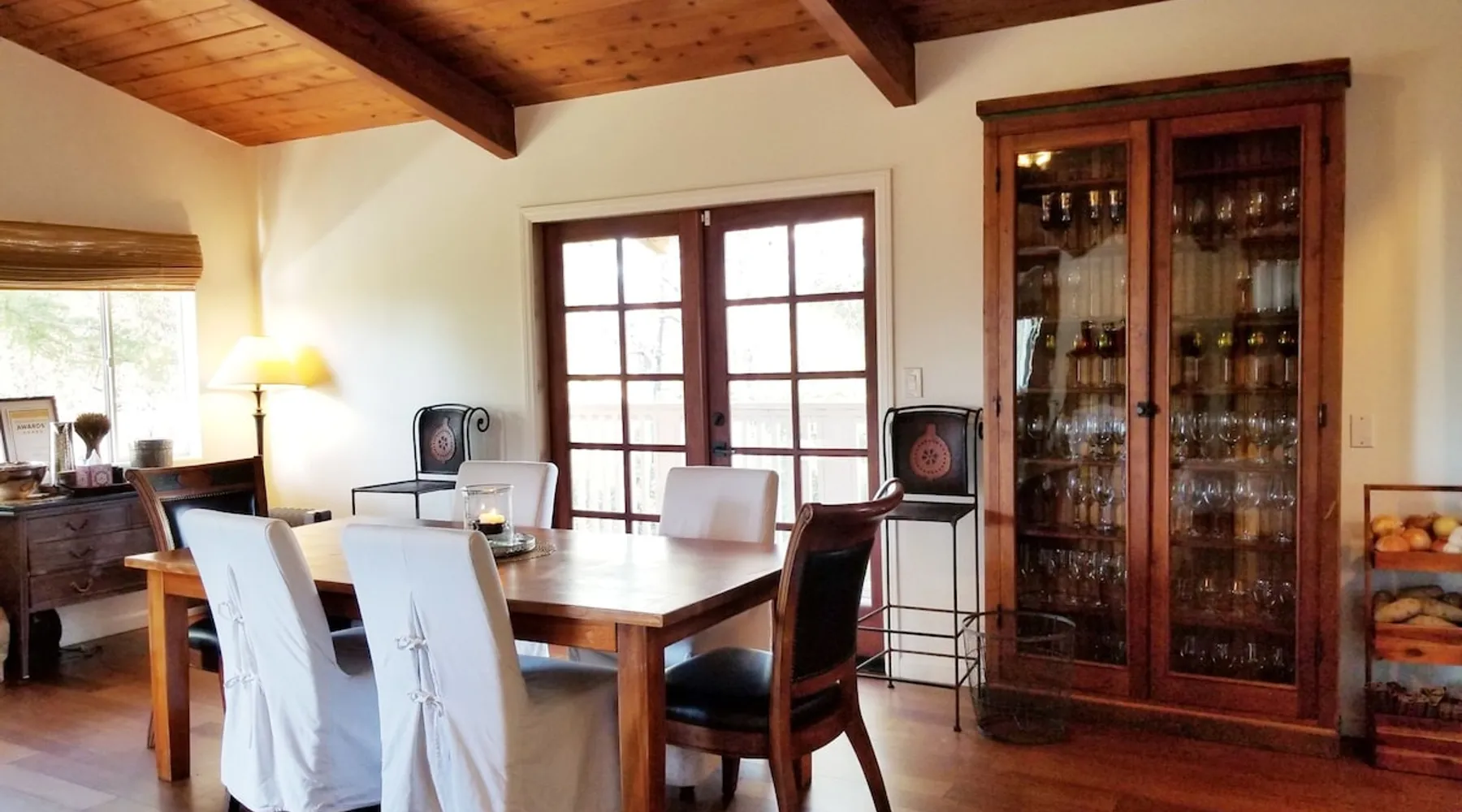 The Meadow House at Sacred Mountain is located in the historic town ofJulian, CA. It includes one 3 bedroom, 2 bathroom home for 8-12 individuals to enjoy. The Meadow House includes a full kitchen with all essentials. 365 degree views of lush unspoiled nature can be enjoyed from every point of our countryside abode. Relax by the fire, observe Julian's wildlife, or experience unparalleled stargazing from your private balconies. On-site horseback riding available upon request. The space The Meadow House includes 1 King bed, 4 full beds, and 2 sleeper sofas in living room. * Please note that all major holidays require a 3 night minimum stay. * Vacation rental only, please inquire directly for events.