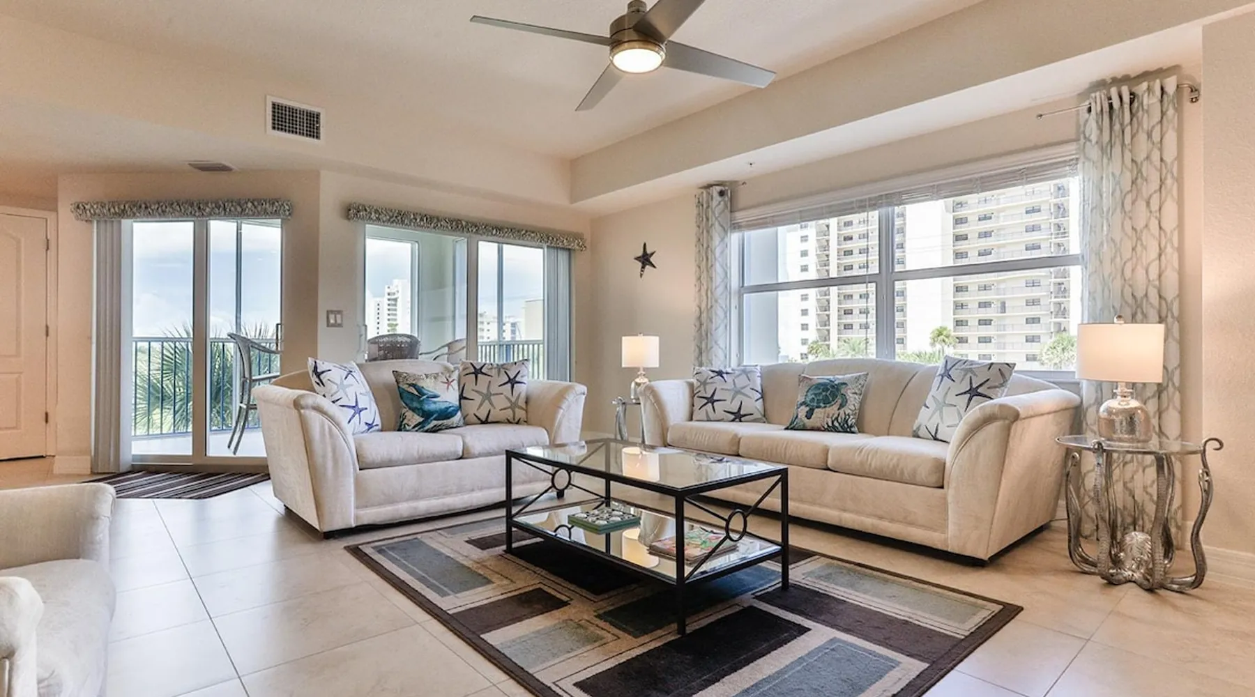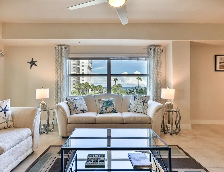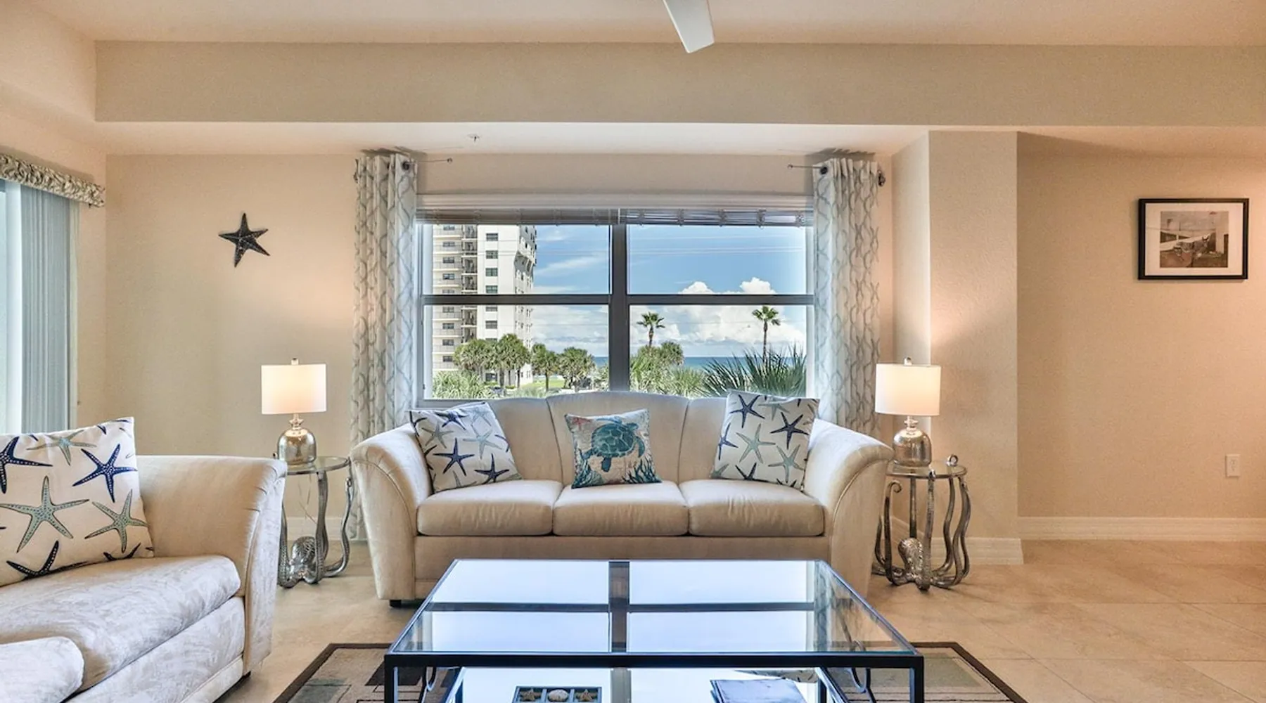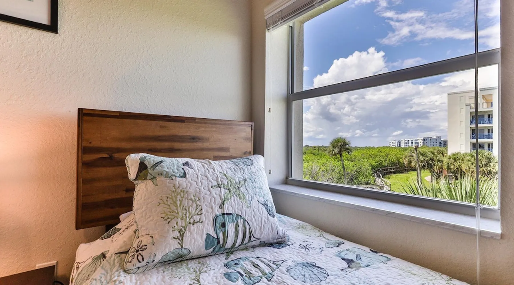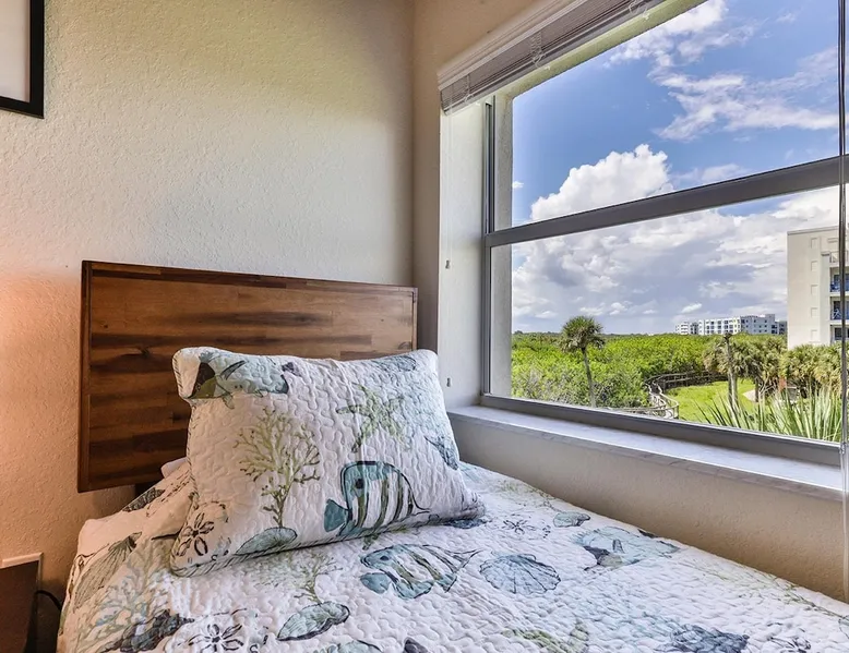 Oceanwalk 19-307 The space Immaculate ocean view condo located in one of NSB's most prominent complexes! From the moment you enter this coastal-cottage inspired retreat you will be captivated by the spacious, bright inviting feel and coveted ocean view! In the living room find a comfortable couch, love seat and chair which offer ample amount of space for you and your guests to relax. Just off the living room is a private balcony, where you can take in the ocean breeze and spectacular sunrise views. After a long day unwind in the master bedroom offering a a king size bed, smart TV, large ensuite bath with dual vanities, a jetted tub and separate shower, large walk in closet with custom closet shelves and a private balcony that overlooks the nature preserve and offers amazing sunsets! Catch a glimpse of the ocean or estuary from every room! The 2nd bedroom has a queen size bed with TV and the 3rd bedroom sleeps 2 with 2 single beds both with large dressers and closets for extra storage. Full-size laundry room that’s equipped with a washer and dryer for your convenience. Gourmet kitchen is equipped to accommodate your culinary needs along all with brand new kitchen ware to include a nespresso and drip coffee maker for your morning wind. Kitchen is coated with cherry wood cabinets, stainless steel appliances, and granite counter tops with breakfast bar that seats 4. An inviting dining area offers a dining table with sit-down ocean views for 4. The windows surrounding the condo allow for uniform lighting throughout. The home is equipped with cable TV, Hi Speed Internet and beach towels to make your vacation getaway an unforgettable one. Don't miss this rare opportunity to take in the breathtaking sunrises from the Atlantic Ocean and sunsets over the New Smyrna Beach Estuary or just relax while admiring the best of both worlds. Condo is located on the quiet south end of Oceanwalk with easy walking distance to the beach across the street. Welcome to Ocean walk, a gated community with resort-style amenities, including 2 heated swimming pools, 2 clubhouses, fitness center, tennis courts, basketball & shuffleboard courts, a sauna, Gas BBQ area by pools and more! Nature trails along the estuary - Entrance to the Nature Trail is located behind building 10. A theater room is located at Rec Center 2 which can be reserved for guests and offers a large screen and stadium seating for 10. Ocean Walk boasts a secluded yet convenient location in New Smyrna Beach. The complex has its own deeded beach access directly to the No Drive Beach, which is about a 5 minute walk from the unit. Close to Canaveral National Sea Shore, shopping and restaurants. In addition to exciting nearby shops, restaurants, and nature centers, NSB is less than 2hrs away from Orlando. Taking a day trip to Disney World, Universal Studios, or any of the other top attractions is convenient when you vacation in Oceanwalk.