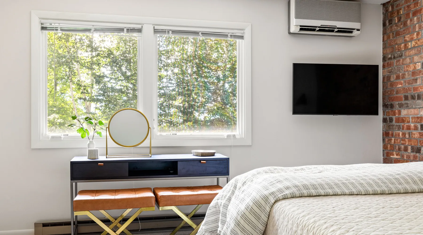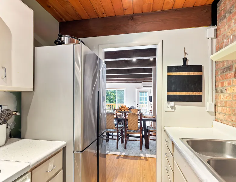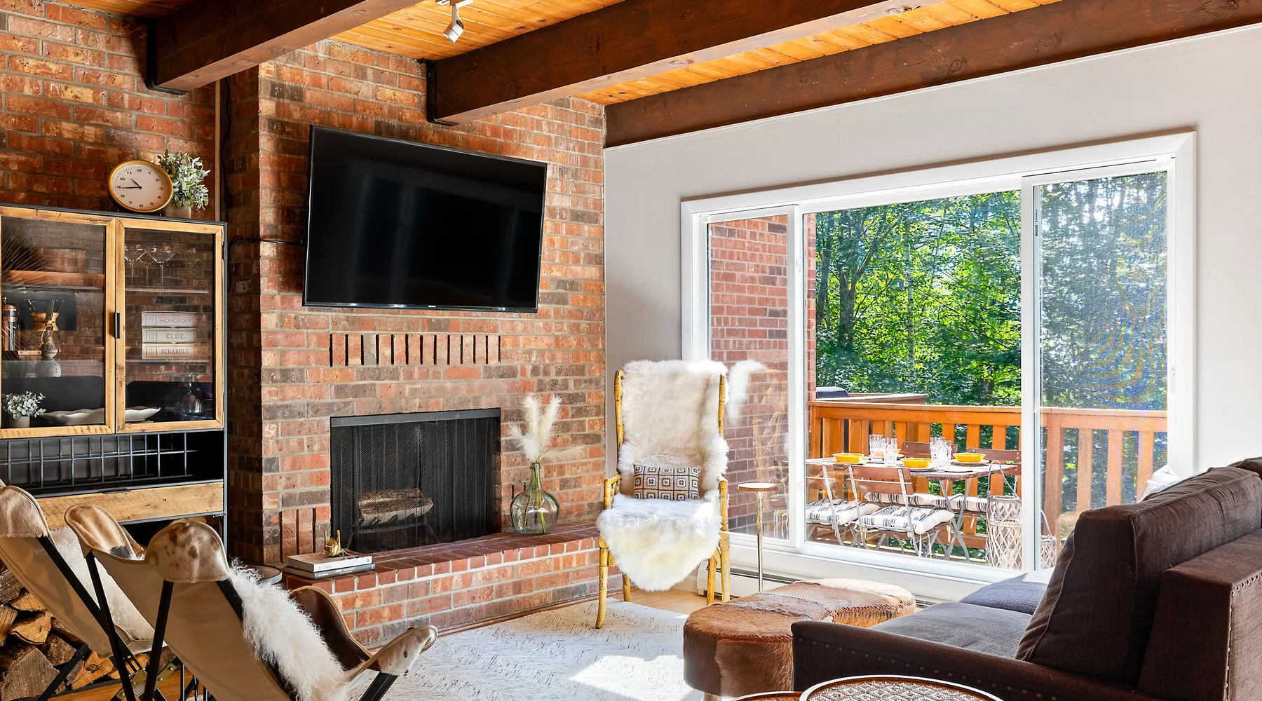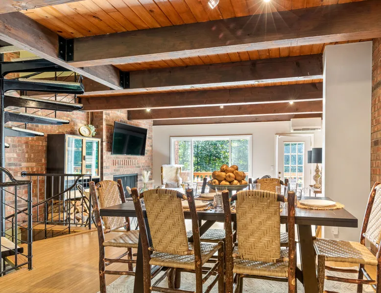 Warm, cozy and perfect for relaxing after a day in the mountains, this stylish condo in Stowe Vermont lives up to its name—The Hot Toddy. With a spacious, open floor plan and cozy fireplace, this 3 bedroom/3 bath sleeps 8 (3 king bedrooms and a sleeper sofa). Less than a mile up the hill from the infamous Alchemist brewery and less than 5 miles from Stowe Mountain Resort, this is a prime location nestled among the trees yet centrally located to enjoy all that Stowe has to offer. THE SPACE This spacious condo is fully stocked and ready for vacay mode. With hotel-quality bedding and linens, it will not disappoint. Enjoy the complimentary coffee and tea bar and all the premium essentials. Walking in you'll find a convenient mudroom with benches, shelves and cubbies to stash all of your gear. The main floor has an open layout with a newly remodeled half bath, elegant dining for six, a sunken living room, fireplace and large windows and a door out to the back deck. The fireplace create the ideal cozy setting for game night or for watching your favorite movie after a long, active day outdoors. The galley kitchen is clean and well stocked for cooking. Before you head to the mountain, enjoy a cup of coffee from your choice of the Smeg drip coffee maker, the french press or the pour over (coffee and tea included). The wide spiral staircase will take you to the upper level with a stately king bedroom equipped with a Smart TV, mini split AC unit, ceiling fan, writing desk, closet and luggage rack. Down the hall you'll find a cozy, stylish King bedroom and a full bath between the two rooms to share. Venture down the spiral staircase to the lower level where you'll find the third King bedroom with beamed ceilings and its own full bath. During the summer months you'll have use of the kayak as well as the beautiful condo community pool (open approximately mid-July to mid-September) tucked away in the majestic Vermont forest. Best of all, it's just a short walk down the hill to kick back at the The Alchemist Brewery. For the summer: There is a mini split AC unit in the living room and upstairs primary king only. One remote (located in living room) operate both AC units. Ceiling fans in both upstairs bedrooms. There is no central air AC. Note: Community pool opening for each season depends on the condo association and is subject to change. Please reach out to us to confirm before booking. OUR PROMISE Our mission is to provide you with a unique vacation that provides a consistent, fine-hotel experience – Every Stay. Every Time. Access to your professionally cleaned, sanitized home is convenient. Property has on-site devices for your security – these may include security alarms, noise decibel monitoring (which do not record voices), and exterior motion sensors or cameras at each entrance. We follow the Vermont Short-Term Rental Safety and Health Regulations for guest safety. PLEASE NOTE: By booking this property, you are agreeing to: - The House Rules; - That all eligible refunds are subject to a 6% cancellation fee to cover the credit card processing fees; AND - You are giving permission to SafelyStay,Inc., to verify your identity and check criminal databases to confirm your reservation. Complete terms regarding Safely's guest verification can be found on their website. You will receive an email to complete your screening.