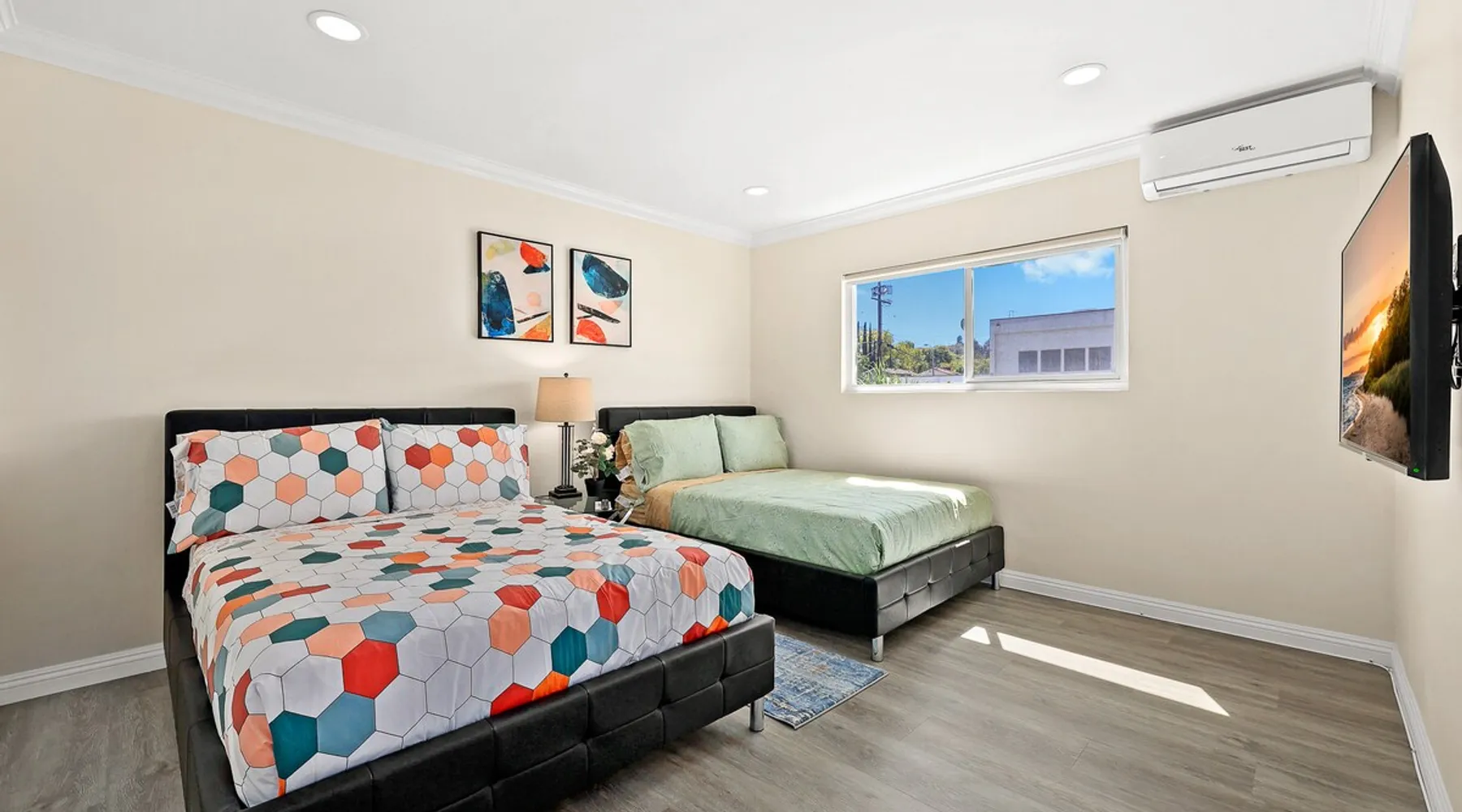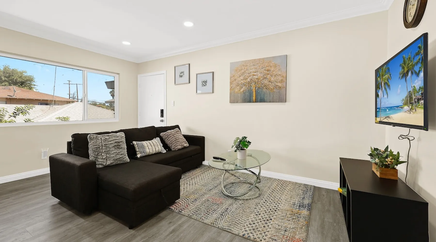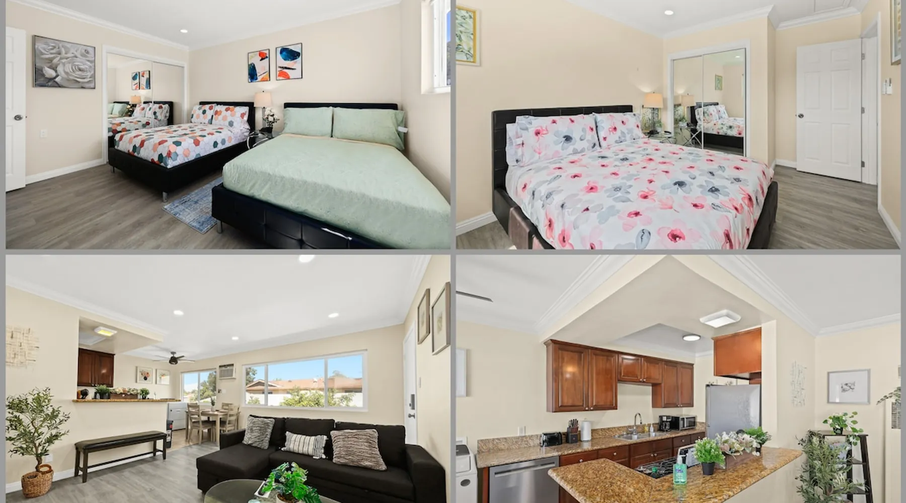 Look no further than this stunning 2BR 1Bath home and experience the friendly ambiance of the quaint Alhambra neighborhood. This fantastic, well-connected home is close to the I-10, allowing you to reach 99 Ranch Market, California State University, Pasadena, Downtown Los Angeles, and much more in less than 10 minutes. ✔ 2 Comfortable Bedrooms (3 Queen Beds + Sofa Bed) ✔ Open Design Living ✔ Fully Equipped Kitchen ✔ 3 Smart TVs ✔ High-Speed Wi-Fi ✔ Washer/Dryer ✔ Free Parking Learn more below! The space Let's start our tour in the spacious, bright, contemporary open design living area, which combines the relaxing living room, fully equipped kitchen, and inviting dining area. Move through the hallway to discover two highly comfortable bedrooms designed to offer all the rest after a day of experiencing Los Angeles, Pasadena, and Alhambra! Sun shines through large windows over the entire space, and together with tastefully picked details and bright laminate floors, create a unique ambiance that will stay with you long after you leave. ★ LIVING ROOM ★ Spend a slow, relaxing afternoon sitting on a comfy sofa, watching your favorite movie, or playing board games with your friends and family. ✔ Comfortable L-Shaped Sofa with Pillows ✔ Smart TV ✔ Stylish Glass Coffee Table ✔ Seating Bench ★ KITCHEN & DINING ★ The kitchen is decorated in bright tones and offers plenty of working areas with spacious granite countertops and state-of-the-art cooking amenities. Grab some fresh ingredients and prepare delicious homemade meals for the whole group. ✔ Microwave ✔ Stove ✔ Oven ✔ Toaster ✔ Coffee Maker ✔ Refrigerator/Freezer ✔ Dishwasher ✔ Sink - Hot & Cold Water ✔ Trays ✔ Glasses ✔ Silverware ✔ Pots & Pans The dining table is conveniently nestled between the living room and kitchen, allowing you to serve and enjoy those tasty meals without missing a moment of fun! ✔ Dining Table with Seating for 4 ★ SLEEPING ARRANGEMENTS - 2 BEDROOMS ★ These are the most relaxing areas of the home. Here you will find the comfort needed to rest and relax after a fabulous day exploring nearby cities and their exciting attractions. Get those precious hours of sleep; tomorrow is a new day! ♛ Bedroom 1: Queen-Size Bed ♛ Bedroom 2: Two Queen-Size Beds ♛ Living Room: One Sofa Bed Both bedrooms offer a similar set of amenities: ✔ Premium Pillows, Linens, and Sheets ✔ Smart TVs ✔ Full-Size Mirror Closets with Hangers and Shelves ✔ Night Stands with Reading Lamps ★ BATHROOMS ★ We have taken special care to design, furnish and stock the inviting full bathroom with all essentials, so you don't have to worry about packing or buying your own. ✔ Bathtub with a Shower ✔ Vanity ✔ Mirror ✔ Toilet ✔ Towels ✔ Hair Dryer ✔ Essential Toiletries Bring your loved ones to this gorgeous home in the fantastic Alhambra neighborhood. We know there's no place like home, but this gem will come at a close second. Guest access The unit is exclusively yours, without interruption during your stay, so relax, unwind, and make yourself at home. Other than the already mentioned amenities, our home is also equipped with: ✔ High-Speed Wi-Fi ✔ Self Check-In (Keypad) ✔ Eufy Door Camera ✔ Air Conditioning ✔ Heating ✔ Washer/Dryer ✔ Iron/ Board ✔ Free Parking Other things to note ★ ADDITIONAL ACCOMMODATION ★ Traveling in a larger group, or your preferred dates are already taken? You'll be happy to know that we offer additional accommodation in the city. Please browse our host profile for the complete list of gorgeous listings. ★ COVID-19 SANITIZATION ★ Heath, safety, and well-being of our guests are of utmost importance. For this reason, we use a thorough cleaning process after each check-out. ★ NO PETS ALLOWED ★ We love those little (and not so little) furry bundles of joy. Sadly, our studio is not suitable to accommodate them. ★ NO SMOKING INSIDE ★ Please refrain from smoking inside the home! Any smoking evidence will result in a fee for odor removal and furniture cleaning. ★ NO PARTIES/EVENTS ★ We kindly ask you to treat our home as your own to preserve its pristine condition for future guests and your return visits. Thank you very much for your understanding.