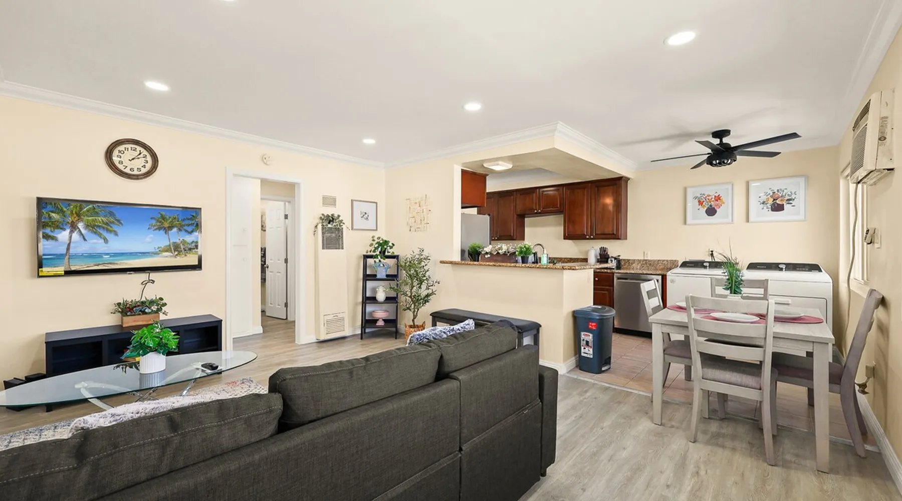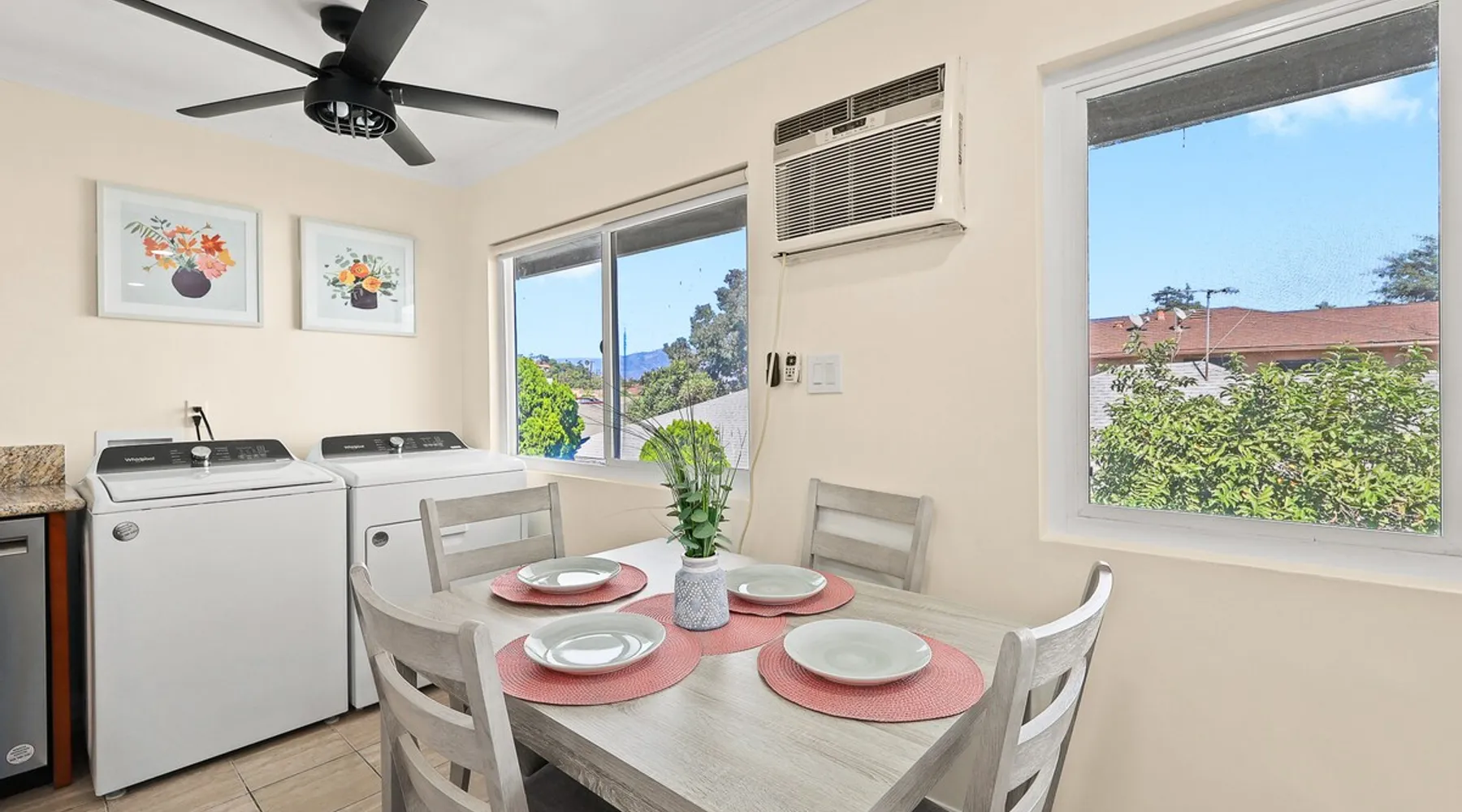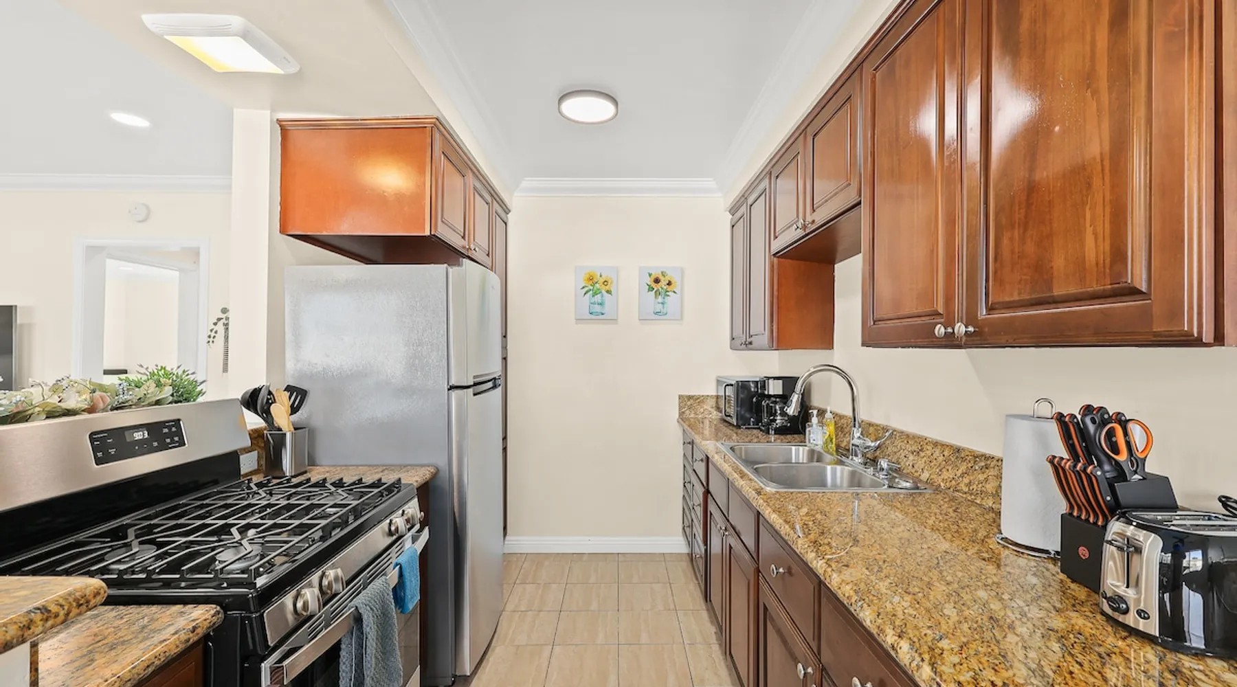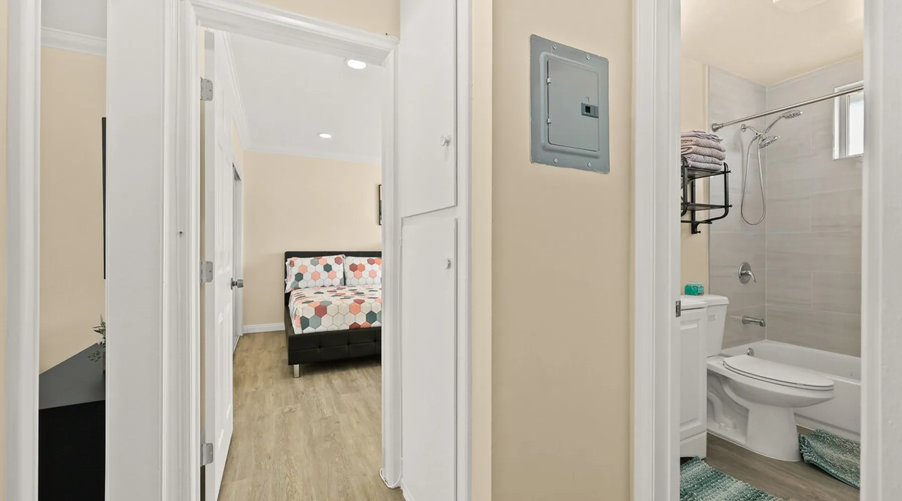 Look no further than this stunning 2BR 1Bath home and experience the friendly ambiance of the quaint Alhambra neighborhood. This fantastic, well-connected home is close to the I-10, allowing you to reach 99 Ranch Market, California State University, Pasadena, Downtown Los Angeles, and much more in less than 10 minutes. ✔ 2 Comfortable Bedrooms (3 Queen Beds + Sofa Bed) ✔ Open Design Living ✔ Fully Equipped Kitchen ✔ 3 Smart TVs ✔ High-Speed Wi-Fi ✔ Washer/Dryer ✔ Free Parking Learn more below! The space Let's start our tour in the spacious, bright, contemporary open design living area, which combines the relaxing living room, fully equipped kitchen, and inviting dining area. Move through the hallway to discover two highly comfortable bedrooms designed to offer all the rest after a day of experiencing Los Angeles, Pasadena, and Alhambra! Sun shines through large windows over the entire space, and together with tastefully picked details and bright laminate floors, create a unique ambiance that will stay with you long after you leave. ★ LIVING ROOM ★ Spend a slow, relaxing afternoon sitting on a comfy sofa, watching your favorite movie, or playing board games with your friends and family. ✔ Comfortable L-Shaped Sofa with Pillows ✔ Smart TV ✔ Stylish Glass Coffee Table ✔ Seating Bench ★ KITCHEN & DINING ★ The kitchen is decorated in bright tones and offers plenty of working areas with spacious granite countertops and state-of-the-art cooking amenities. Grab some fresh ingredients and prepare delicious homemade meals for the whole group. ✔ Microwave ✔ Stove ✔ Oven ✔ Toaster ✔ Coffee Maker ✔ Refrigerator/Freezer ✔ Dishwasher ✔ Sink - Hot & Cold Water ✔ Trays ✔ Glasses ✔ Silverware ✔ Pots & Pans The dining table is conveniently nestled between the living room and kitchen, allowing you to serve and enjoy those tasty meals without missing a moment of fun! ✔ Dining Table with Seating for 4 ★ SLEEPING ARRANGEMENTS - 2 BEDROOMS ★ These are the most relaxing areas of the home. Here you will find the comfort needed to rest and relax after a fabulous day exploring nearby cities and their exciting attractions. Get those precious hours of sleep; tomorrow is a new day! ♛ Bedroom 1: Queen-Size Bed ♛ Bedroom 2: Two Queen-Size Beds ♛ Living Room: One Sofa Bed Both bedrooms offer a similar set of amenities: ✔ Premium Pillows, Linens, and Sheets ✔ Smart TVs ✔ Full-Size Mirror Closets with Hangers and Shelves ✔ Night Stands with Reading Lamps ★ BATHROOMS ★ We have taken special care to design, furnish and stock the inviting full bathroom with all essentials, so you don't have to worry about packing or buying your own. ✔ Bathtub with a Shower ✔ Vanity ✔ Mirror ✔ Toilet ✔ Towels ✔ Hair Dryer ✔ Essential Toiletries Bring your loved ones to this gorgeous home in the fantastic Alhambra neighborhood. We know there's no place like home, but this gem will come at a close second. Guest access The unit is exclusively yours, without interruption during your stay, so relax, unwind, and make yourself at home. Other than the already mentioned amenities, our home is also equipped with: ✔ High-Speed Wi-Fi ✔ Self Check-In (Keypad) ✔ Eufy Door Camera ✔ Air Conditioning ✔ Heating ✔ Washer/Dryer ✔ Iron/ Board ✔ Free Parking Other things to note ★ ADDITIONAL ACCOMMODATION ★ Traveling in a larger group, or your preferred dates are already taken? You'll be happy to know that we offer additional accommodation in the city. Please browse our host profile for the complete list of gorgeous listings. ★ COVID-19 SANITIZATION ★ Heath, safety, and well-being of our guests are of utmost importance. For this reason, we use a thorough cleaning process after each check-out. ★ NO PETS ALLOWED ★ We love those little (and not so little) furry bundles of joy. Sadly, our studio is not suitable to accommodate them. ★ NO SMOKING INSIDE ★ Please refrain from smoking inside the home! Any smoking evidence will result in a fee for odor removal and furniture cleaning. ★ NO PARTIES/EVENTS ★ We kindly ask you to treat our home as your own to preserve its pristine condition for future guests and your return visits. Thank you very much for your understanding.