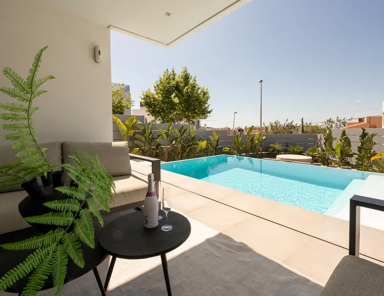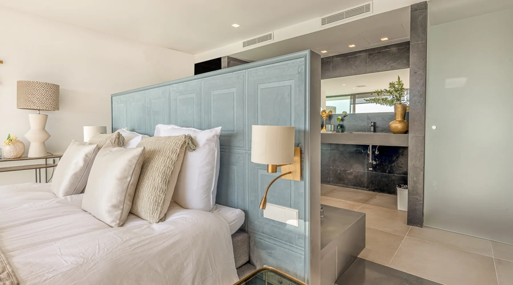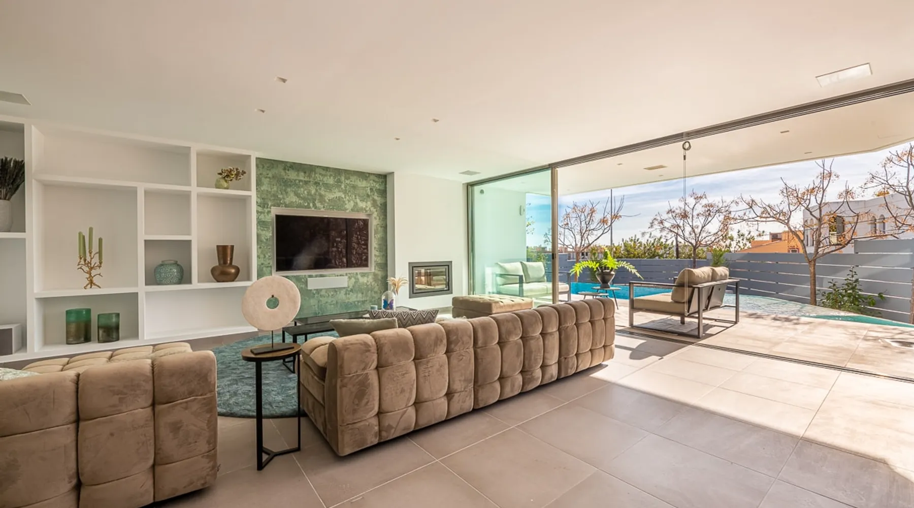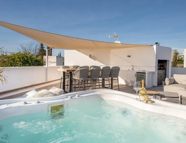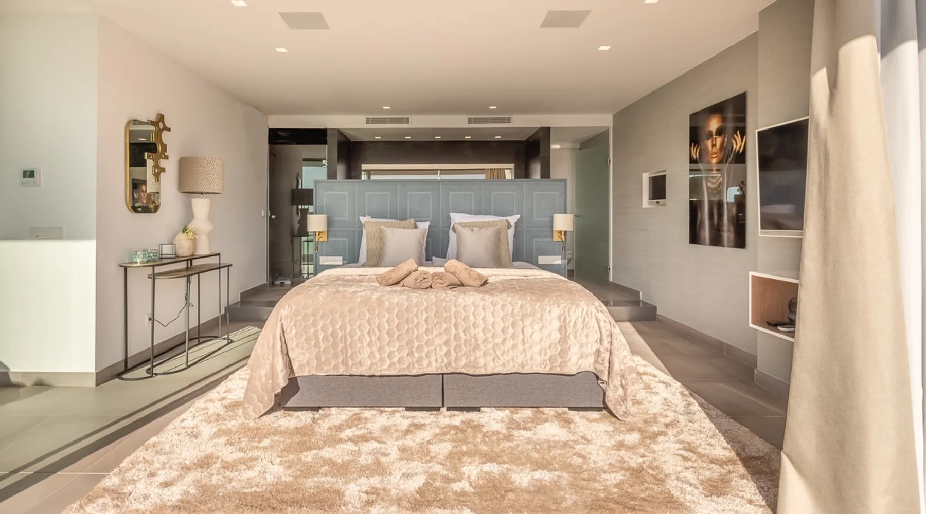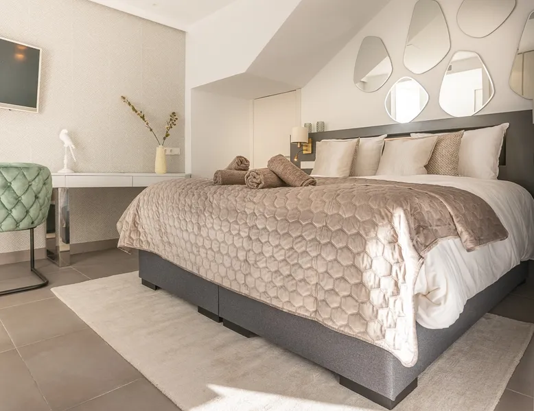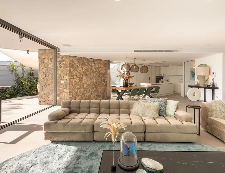 Besides the ideal location, luxury and high quality there are two other aspects that stand out about the villa. Spread over three floors, innovation and minimalism define the residence. The open living room is on the lowest level. It results into the dining room and the kitchen in high-gloss white. The kitchen area facilitates a cooking island, high-end builtin appliances and is completely handle-less; for a sleek finish. The living room is surrounded by sliding doors, allowing plenty of natural light to enter. The floating staircase leads to the higher floors. The first floor has three suites, all with a bathroom en-suite. The master bedroom has a private terrace with stunning views of the bay of Talamanca and the island of Formentera. The fourth bedroom can be found on the basement floor as well as the private gym. The residence also facilitates several terraces on different levels. The swimming pool is located near the living room and is surrounded by a terrace too. The top floor Besides the ideal consists of a spacious roof terrace where you can dine. At only 400 meters distance from Talamanca Bay, stands this luxury villa in Ses-Torres. From this small-scale urbanization, you can walk to the beach as well as to the idyllic village of Jesús. Here you will find all kinds of amenities, such as several supermarkets, restaurants and banks. You can also reach Ibiza-town in no time. The center is less than two kilometers from the villa. Composition: 4x bedroom, 4x bathroom, 4x WC Amenities: iron & ironing board, bed linen & towels, washing machine, dishwasher, cable tv, terrace, satellite tv, air conditioning, garden, elevator, no smoking rooms/facilities, no pets allowed, smoke detectors, heating, no parties, first aid kit Registration details Spain – National registration number ESFCTU00000703600039800000000000000000000000ETV2404E0
