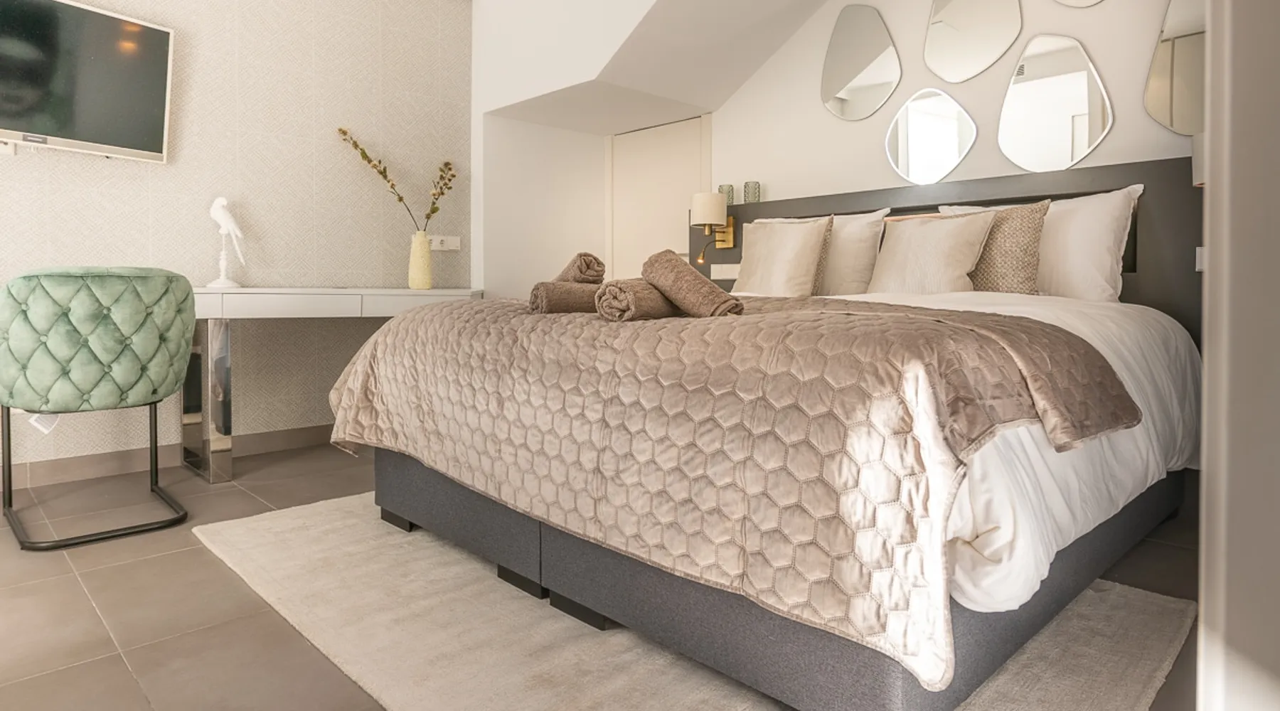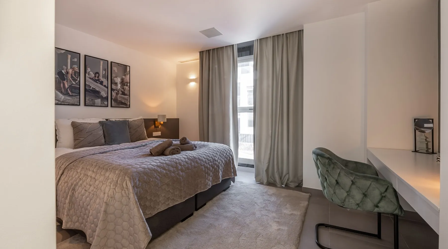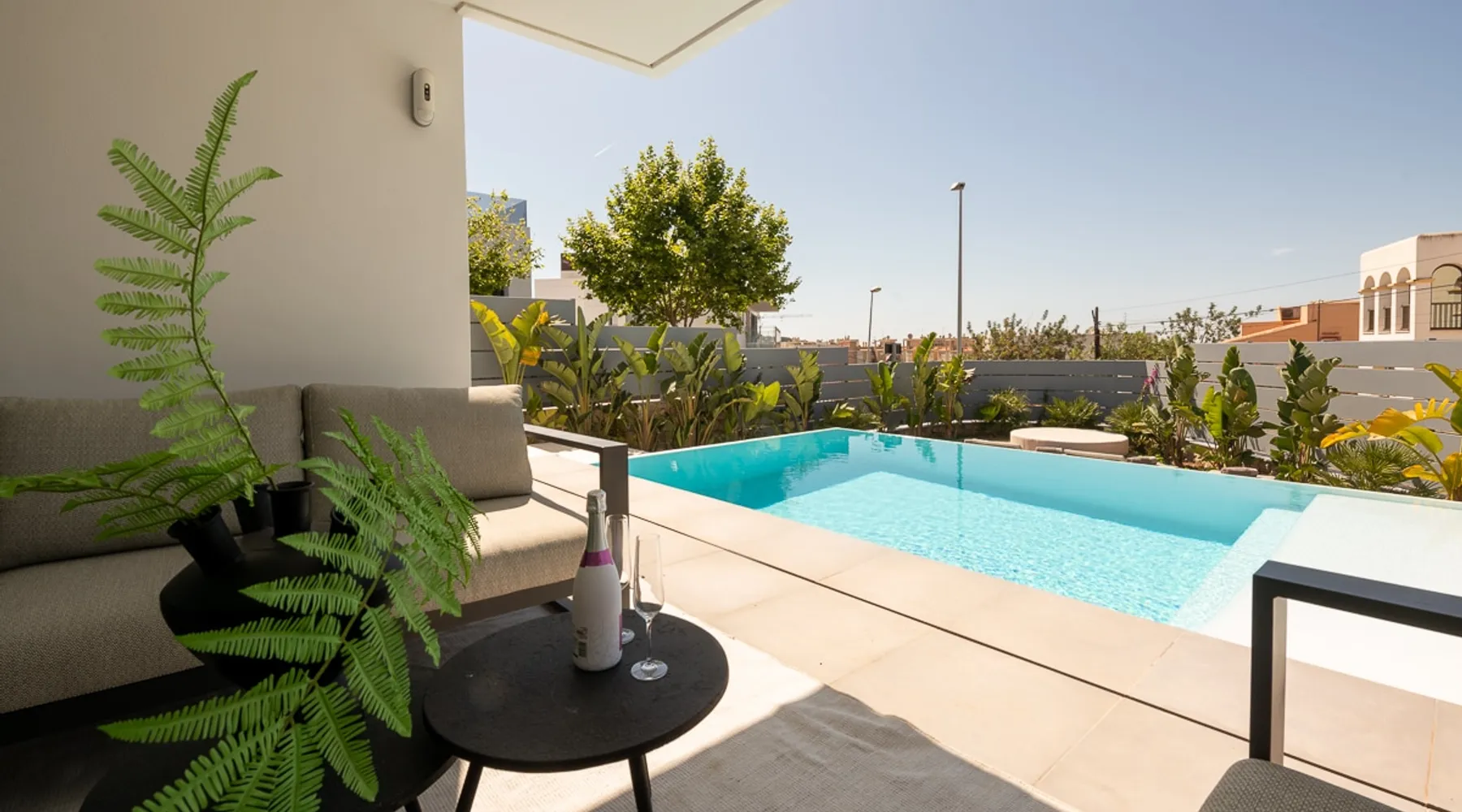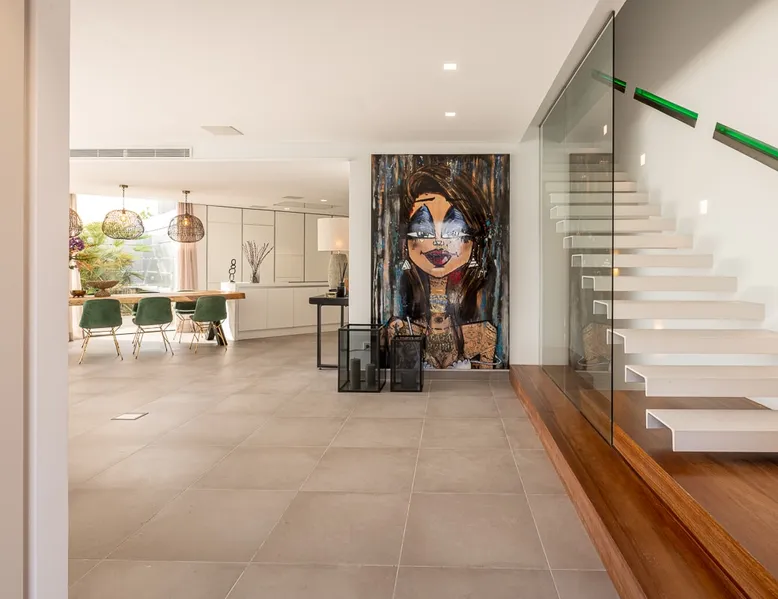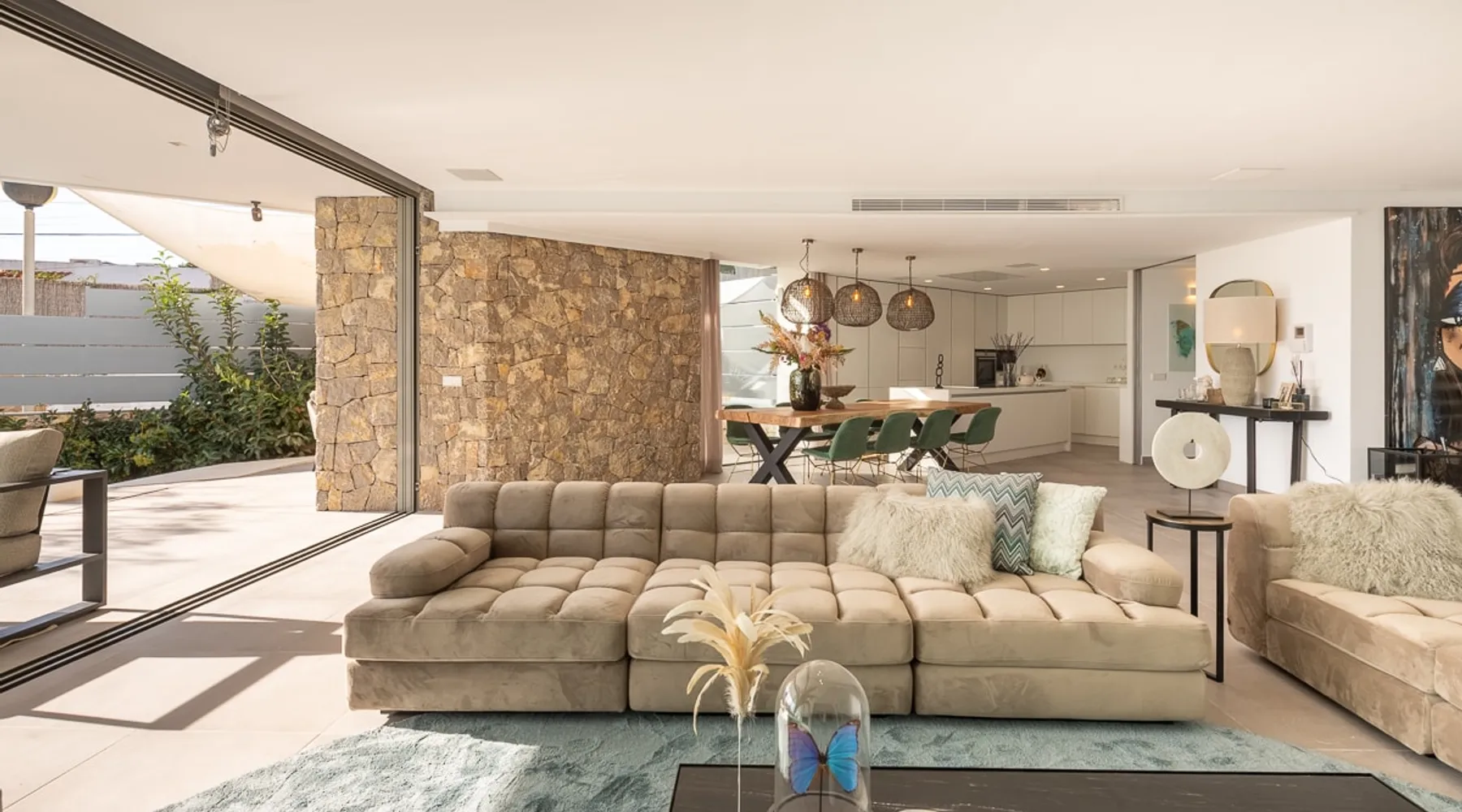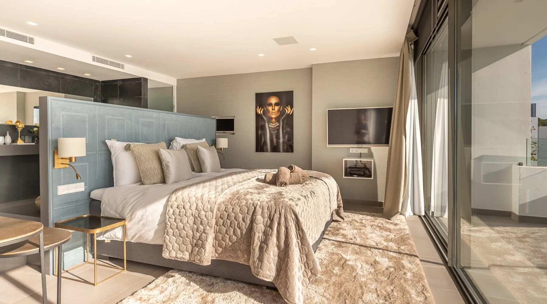 Besides the ideal location, luxury and high quality there are two other aspects that stand out about the villa. Spread over three floors, innovation and minimalism define the residence. The open living room is on the lowest level. It results into the dining room and the kitchen in high-gloss white. The kitchen area facilitates a cooking island, high-end builtin appliances and is completely handle-less; for a sleek finish. The living room is surrounded by sliding doors, allowing plenty of natural light to enter. The floating staircase leads to the higher floors. The first floor has three suites, all with a bathroom en-suite. The master bedroom has a private terrace with stunning views of the bay of Talamanca and the island of Formentera. The fourth bedroom can be found on the basement floor as well as the private gym. The residence also facilitates several terraces on different levels. The swimming pool is located near the living room and is surrounded by a terrace too. The top floor Besides the ideal consists of a spacious roof terrace where you can dine. At only 400 meters distance from Talamanca Bay, stands this luxury villa in Ses-Torres. From this small-scale urbanization, you can walk to the beach as well as to the idyllic village of Jesús. Here you will find all kinds of amenities, such as several supermarkets, restaurants and banks. You can also reach Ibiza-town in no time. The center is less than two kilometers from the villa. Composition: 4x bedroom, 4x bathroom, 4x WC Amenities: iron & ironing board, bed linen & towels, washing machine, dishwasher, cable tv, terrace, satellite tv, air conditioning, garden, elevator, no smoking rooms/facilities, no pets allowed, smoke detectors, heating, no parties, first aid kit Registration details Spain – National registration number ESFCTU00000703600039800000000000000000000000ETV2404E0