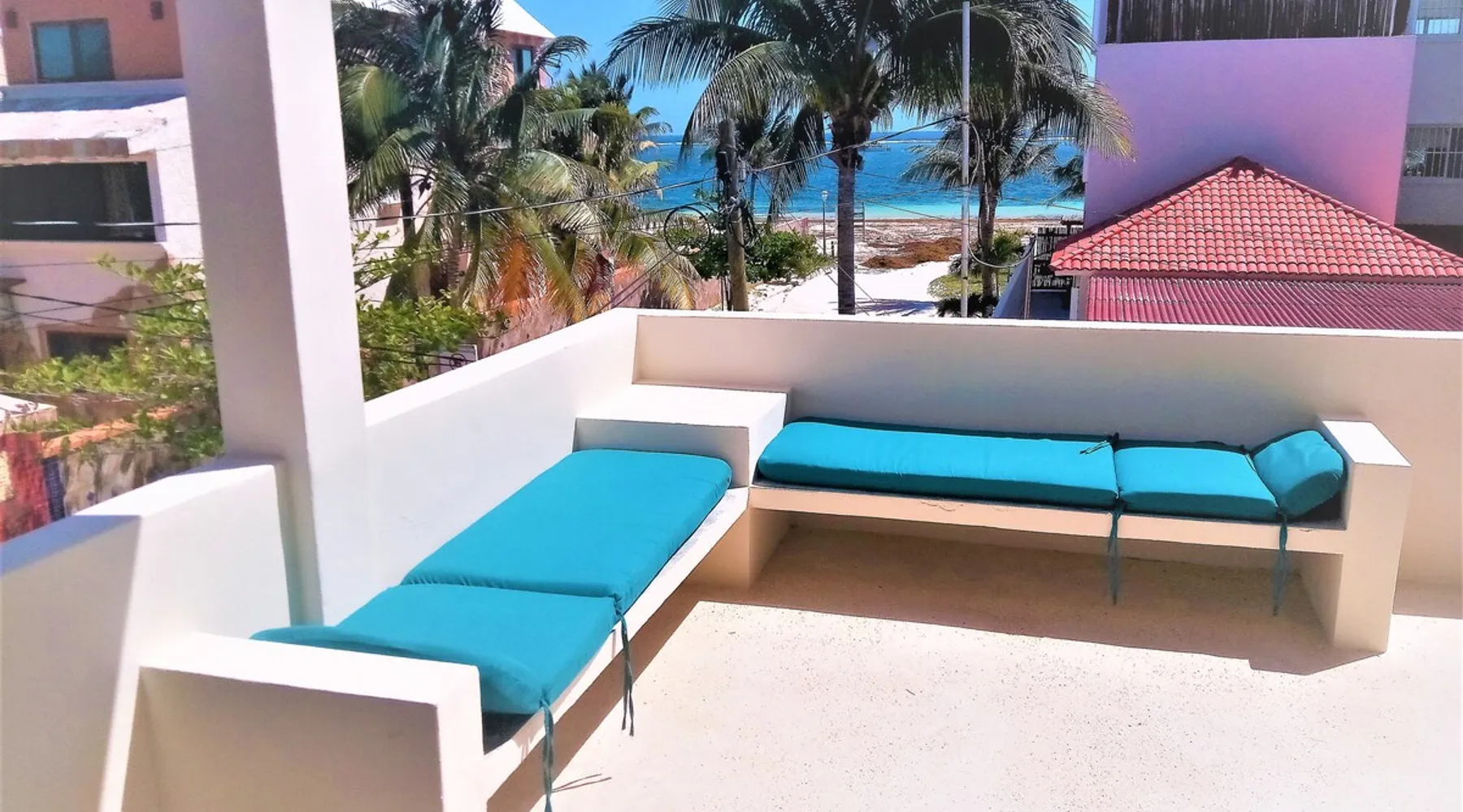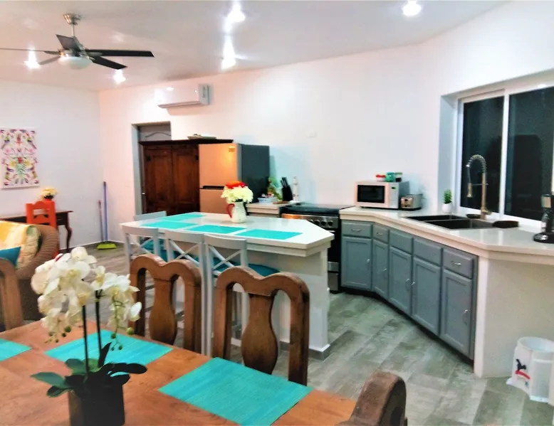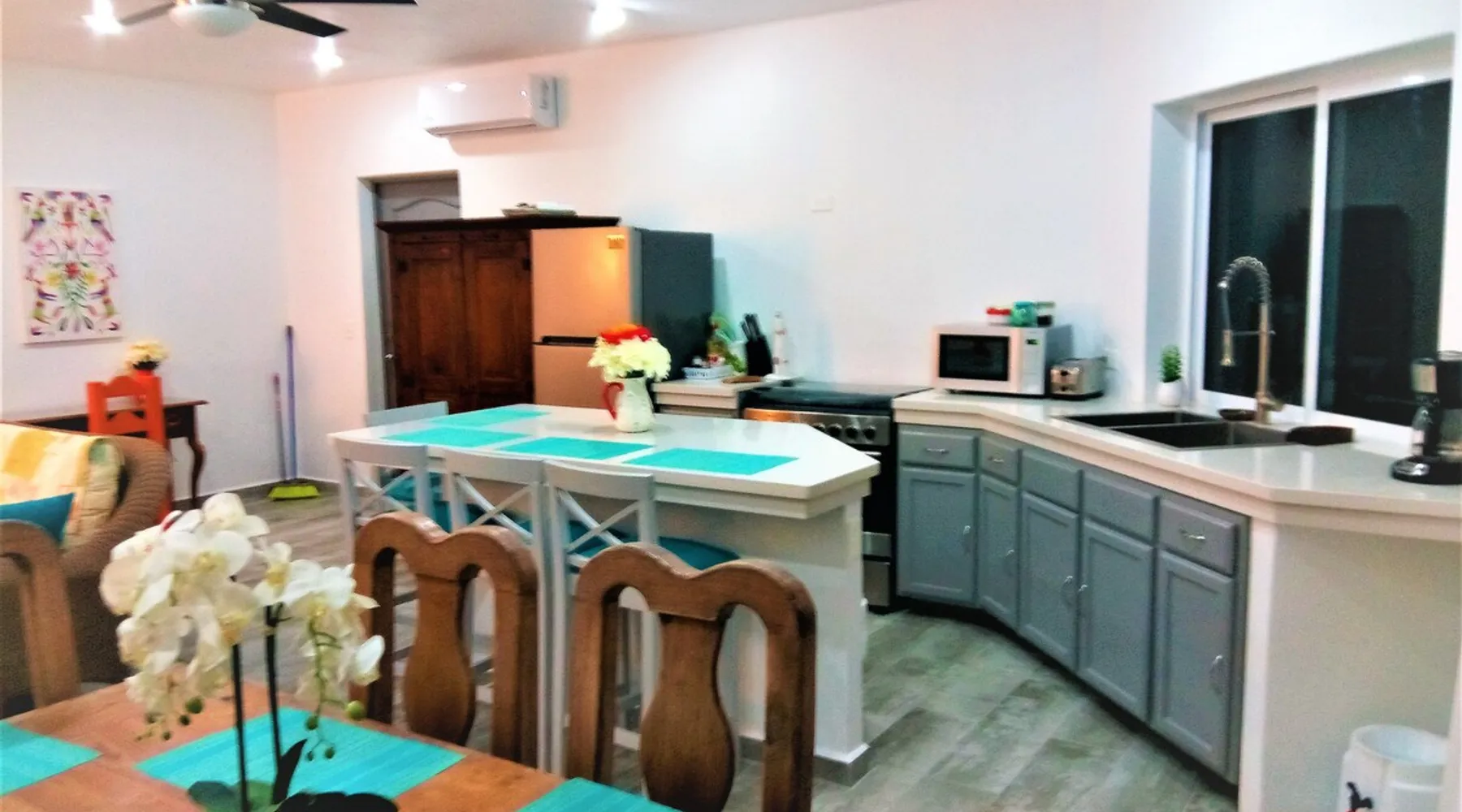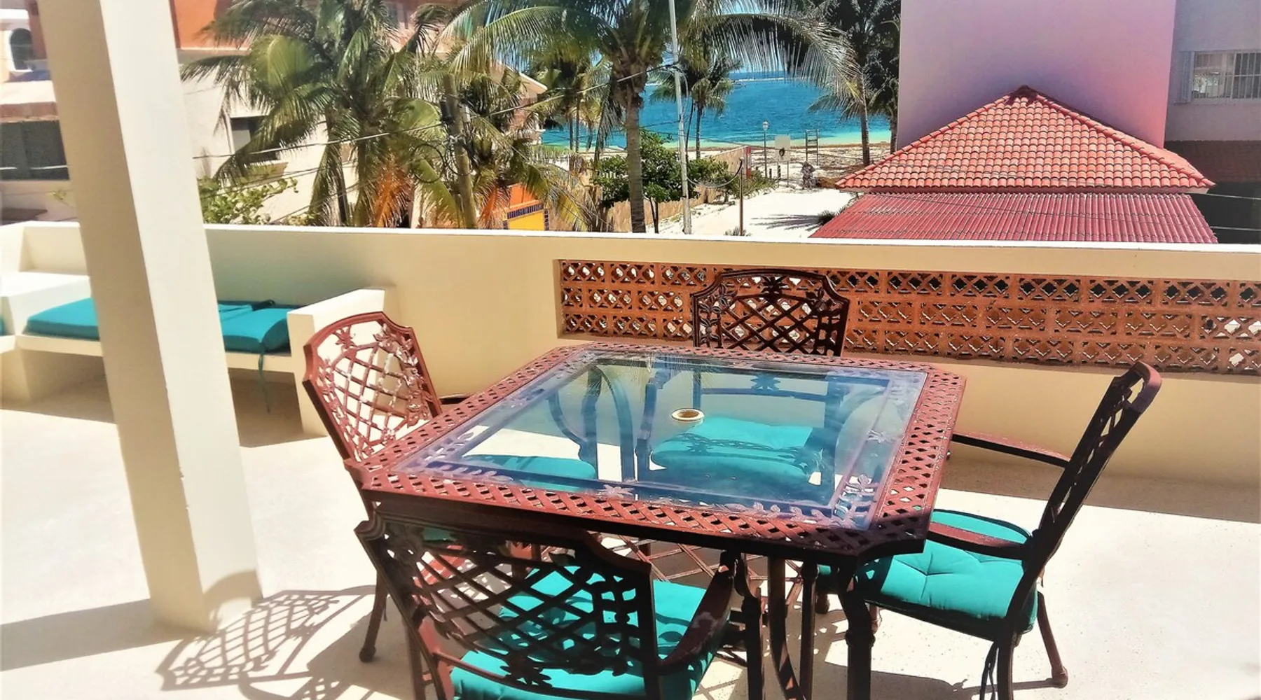 Centrally located in the heart of the village, 100 ft to the beach, and 5 min. stroll down the beach to town. Each condo has a large family size wrap-around patios with gorgeous views of the white sand beaches and turquoise blue ocean. Setting is a private courtyard with swimming pool, plus we have all the toys-toys-toys! The property has 6 rental condos, available in 1 or 2 bedroom or Guest Suite. Please contact owner for availability and pricing of individual units. The space The condo is on the 2rd floor, approximately 900 sq ft of living space with ocean/beach views. Large private patios surround the condo for your outdoor enjoyment. The condo has an open bright airy design and is tastefully decorated. -Kitchen/Dining/family area is a modern open design with center-island and granite counter tops. It is well equipped with full size refrigerator, microwave, stove/oven and all the necessary small appliances with separate dining area for 4-6. -The family area has couch seating with a flat screen TV, Streamer Box and Wireless Internet . It opens up (double sliding glass doors) to beach/ocean patio decks. Patios decks are fully furnished with lounge seating and table/chairs for outdoor enjoyment. -The bedrooms (2), have 1 king and 2 single beds, each with en-suite bathrooms, walk-in showers, and ample storage space for your personal items. -Ceiling fans (5) are installed in all rooms, kitchen, family, bedrooms and bathrooms. -A/C (3 mini-split) is available throughout the condo (Kitchen/dining/family and both bedrooms). Guest access Guests have exclusive use of condo and patio. Shared common areas includes swimming pool and courtyard. Other things to note Street parking is readily available. Saturday afternoon and Sunday might be challenging (due to local family beach day) but very do able. Included (no additional charge): -Beach chairs/umbrellas/towels -Bikes -Kayaks -Paddle Boards -BBQ