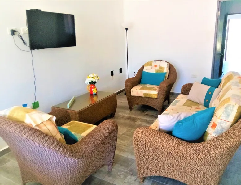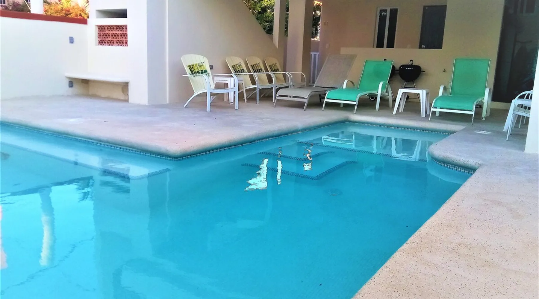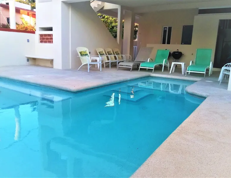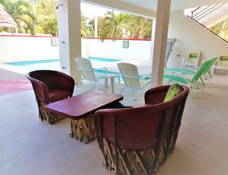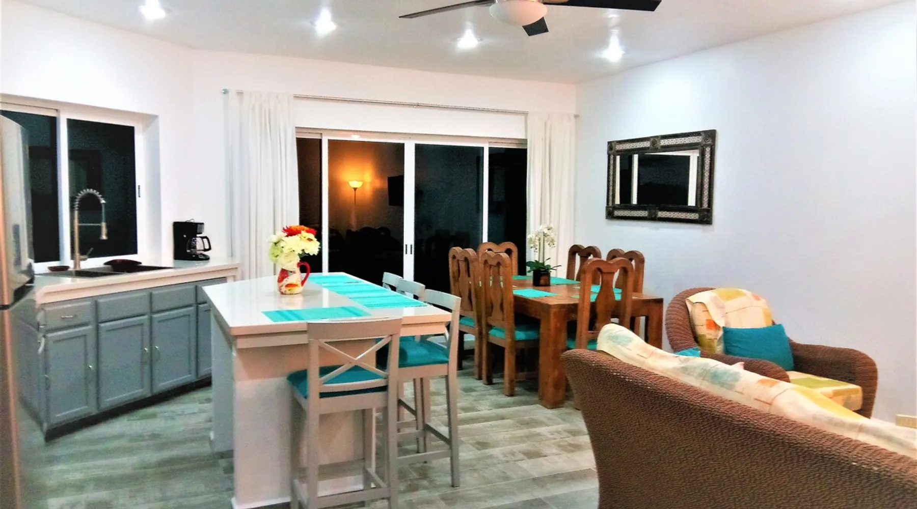Centrally located in the heart of the village, 100 ft to the beach, and 5 min. stroll down the beach to town. Each condo has a large family size wrap-around patios with gorgeous views of the white sand beaches and turquoise blue ocean. Setting is a private courtyard with swimming pool, plus we have all the toys-toys-toys! The property has 6 rental condos, available in 1 or 2 bedroom or Guest Suite. Please contact owner for availability and pricing of individual units. The space The condo is on the 2rd floor, approximately 900 sq ft of living space with ocean/beach views. Large private patios surround the condo for your outdoor enjoyment. The condo has an open bright airy design and is tastefully decorated. -Kitchen/Dining/family area is a modern open design with center-island and granite counter tops. It is well equipped with full size refrigerator, microwave, stove/oven and all the necessary small appliances with separate dining area for 4-6. -The family area has couch seating with a flat screen TV, Streamer Box and Wireless Internet . It opens up (double sliding glass doors) to beach/ocean patio decks. Patios decks are fully furnished with lounge seating and table/chairs for outdoor enjoyment. -The bedrooms (2), have 1 king and 2 single beds, each with en-suite bathrooms, walk-in showers, and ample storage space for your personal items. -Ceiling fans (5) are installed in all rooms, kitchen, family, bedrooms and bathrooms. -A/C (3 mini-split) is available throughout the condo (Kitchen/dining/family and both bedrooms). Guest access Guests have exclusive use of condo and patio. Shared common areas includes swimming pool and courtyard. Other things to note Street parking is readily available. Saturday afternoon and Sunday might be challenging (due to local family beach day) but very do able. Included (no additional charge): -Beach chairs/umbrellas/towels -Bikes -Kayaks -Paddle Boards -BBQ