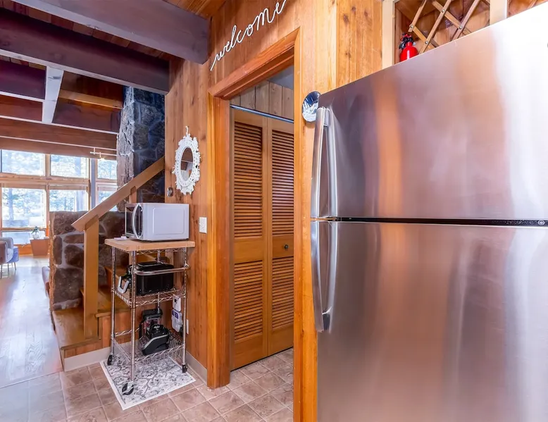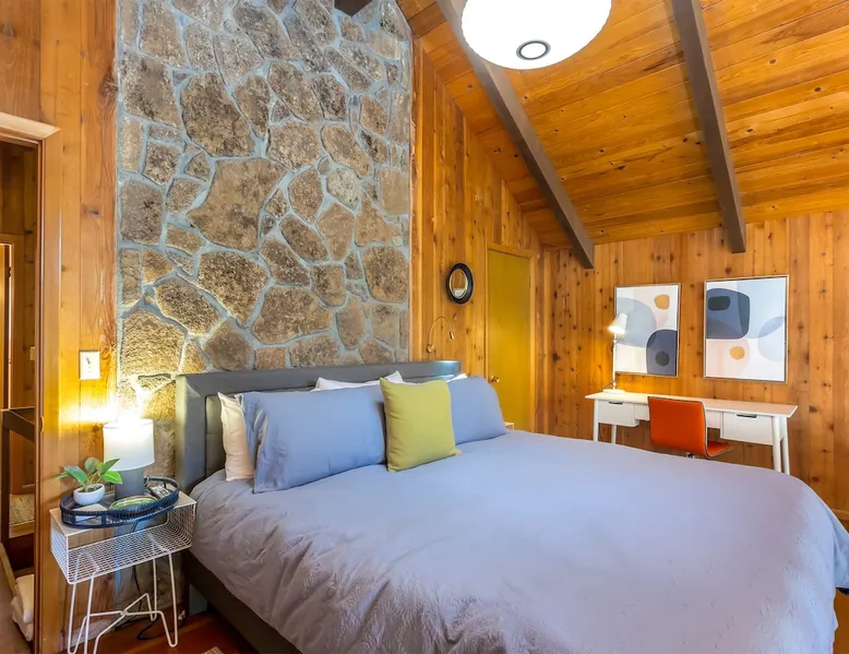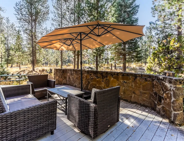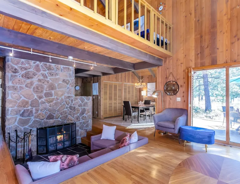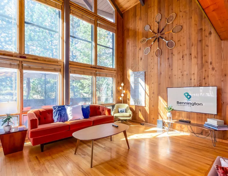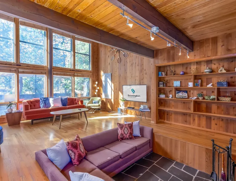 Retro-style home with unique sunken seating area, large sleeping loft, well-stocked kitchen and more! The space You'll enjoy the retro furnishings in this very unique Sunriver Home. The living room has a sunken seating area to enjoy the wood fireplace, plus TV with cable. The adjacent dining room has seating for 6 and is just outside of the fully-stocked kitchen. On the main level you'll find a bedroom with queen bed and cable TV plus a full bathroom with shower over tub. Head upstairs to find a large loft area with king-sized bed and workstation overlooking the living room. There's also a bedroom with two twin beds, TV with Firestick (for streaming your favorite shows) plus a bathroom with walk-in shower. Head outside to access the gas bbq, private hot tub, dart board, cornhole and horseshoes. Dogs allowed, 2 max, fees apply Family Reunion? Book this home together with our other home on this lane Deschutes 8 Other things to note AGE RESTRICTIONS: Guests must be 23 years or older to rent Bennington homes and the person reserving must occupy the home the whole reservation.