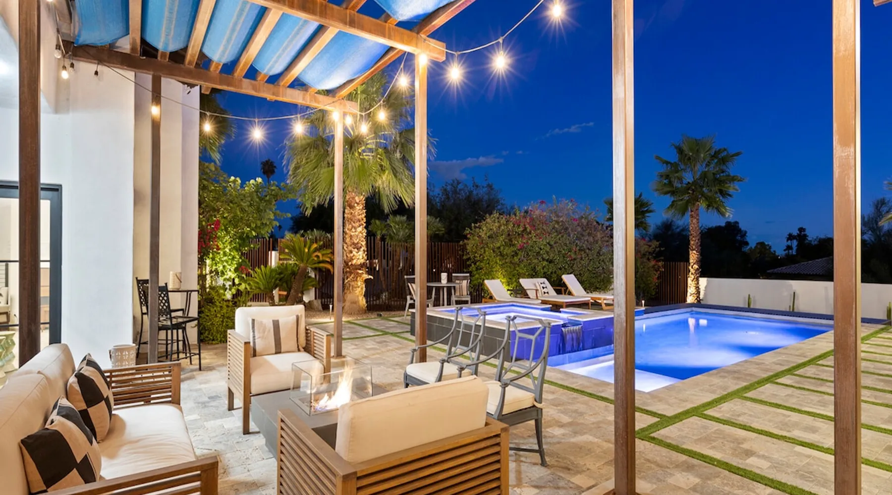 Stunning, luxurious & perfect location, don't do this home justice. This one of a kind retreat is everything you want and more! Free Pool Heat and Free Spa! The space Welcome to Las Casitas, a phenomenal addition to the Hotel Homes Luxury collection in the most exclusive neighborhood in all of Arizona - Paradise Valley! Located within minutes of the most amazing places in Arizona: the world-famous Sanctuary Resort Spa, world-class golf at Mountain Shadows Resort, culinary excellence at El Chorro, and the incredible Camelback Mountain hiking trails. Our property offers the perfect blend of luxury and convenience. Enjoy superior amenities include concierge service, heated pool, hot tub, outdoor barbecue, outdoor expansive patio, fully stocked kitchen, dining areas, living room, multiple separated guest suites outback and more! This epic beauty will let your group unwind and relax in the best neighborhood in Paradise Valley. Minutes to Biltmore shopping, restaurants, excursions and more! Highlights! - Kid friendly with alarms on doors to pool, kid dishes, crib and highchair. - High Speed Internet - Ideal “work-cation spot” - Smart TV’s with access to all your favorite Apps - Directly between Biltmore and Old Town Scottsdale - Main house and three casitas - Safe and quiet high-end neighborhood - Heated pool available all winter (no added fees) Guest Occupancy: Max 12 You are about to book with Hotel Home Stays, the best of luxury home vacation experiences. Our team prides themselves on ensuring our guests experience PEACE for the soul. Our hotel standards ensure the highest level of care throughout your stay. While our luxury designed homes ensure the comforts you just can’t live without. (wink, wink) PROTECTION – With mattress encasements, pillow protectors, hypoallergenic bedding options and COVID cleanliness standards, we go the extra mile in every home. EFFORTLESS – No guess work, we text and email the check-in details. No looking for keys, the door code allows 24-hour access. Electronic guest books provided prior to and during your stay. AMMENITIES – Arrive to Starbucks coffee, a phenomenally outfitted kitchen that includes coffee bar, mixology bar, kids plates, cups, etc. Along with the necessities, like Insta-Pot and blender. CLEAN – Our housekeepers are fantastic. But we never leave anything to chance, so our managers check the home before you arrive to ensure all the details were handled. EXCELLENCE – Throughout your stay, you will have ongoing communication from our amazing team who can provide local insights, take care of special requests, and handle any issues that arise during your stay swiftly. The Space Choose between 4 luxurious bedrooms and a private living room space for sleeping. Drop your items off and go straight to the incredible backyard! Swim in the gorgeous pool. Grill for your group and have dinner outside under the covered patio. Layout on one of the chaise lounges to get your perfect tan. You won't even want to go back inside! (The pool can be heated during the cooler months at an additional charge to cover the natural gas cost per day). If you would like it heated, please see details below. Please be aware there are no stairs in this home, but there are multiple steps. As the living room is sunk-in and the kitchen has steps in and out of it. BEDROOMS Master Bedroom King Bed with en-suite bathroom and gorgeous modern glass shower Walk-in closet. Tons of space! Private living room and TV King Guest Bedroom King Bed with reach-in closet, Smart TV & en-suite bathroom 1st Casita Twin over full-size bunk bed and living space with Smart TV Extra twin under the bunk bed King bedroom with Smart TV Private kitchenette Private bathroom with glass shower 2nd Casita King bedroom with Smart TV Private en-suite bathroom with glass shower 3rd Casita Pool and game room with living space with large Smart TV Bean-bag chairs open up into beds, great for kids to sleep! High-top tables and chairs serve as work-space Total sleeping options: 4 Kings, 2 Twins, 1 Full, 1 Twin air mattress, 1 Full Futon Couch, and a crib. Parking: There are 2 garages with room for 4 standard size cars. There is room for an additional 2 cars in the driveway. Enjoy Complimentary Concierge Service Elevate your vacation rental experience with our exclusive complimentary concierge service. Our bookings include a complimentary concierge who can recommend transportation, book spa services, recommend a private chef, book the unpacking of groceries delivered by InstaCarat, recommend babysitters and so much more. LOCATION! LOCATION! LOCATION! You are minutes from top Scottsdale attractions, such as The Biltmore Shopping Complex, Old Town Scottsdale, McDowell Preserve hiking, Odysea Aquarium, Talking Stick Casino & Ballpark, Art Museums, Robust Nightlife, tons of Golf Course's, and so much more! Essentials such as coffee shops, acclaimed restaurants, grocery stores, and so forth are minutes away. 6 mins: Biltmore Shopping 6 mins: Phoenix Mountain Preserve 7 mins: Camelback Mountain 7 mins: Coming Soon! The Grove $300M Development 8 mins: Biltmore Golf Club 8 mins: The Henry - Scottsdale Brunch Staple 10 mins: Phoenician Golf Club 12 mins: Downtown Phoenix 12 mins: Uptown Phoenix 14 mins: Fashion Square Mall 15 mins: Arizona Canal 15 mins: Phoenix Sky Harbor International Airport 16 mins: The Pavilions at Talking Stick 17 mins: Old Town Scottsdale 18 mins: Chase Field 18 mins: Salt River Fields - Home of AZ Diamondbacks & Co Rockies during Spring Training 18 mins: Scottsdale Stadium - Home of SF Giants during Spring Training 19 mins: Footprint Center - Home of PHX Suns & Host of several events 19 mins: Papago Golf Club 19 mins: Talking Stick Golf Club 19 mins: Topgolf 20 mins: Butterfly Wonderland 20 mins: OdySea Aquarium 20 mins: Phoenix Zoo 20 mins: Starfire Golf Club 20 mins: Talking Stick Resort & Casino 22 mins: Desert Ridge Marketplace 23 mins: Kierland Commons 24 mins: Grayhawk Golf Club 25 mi