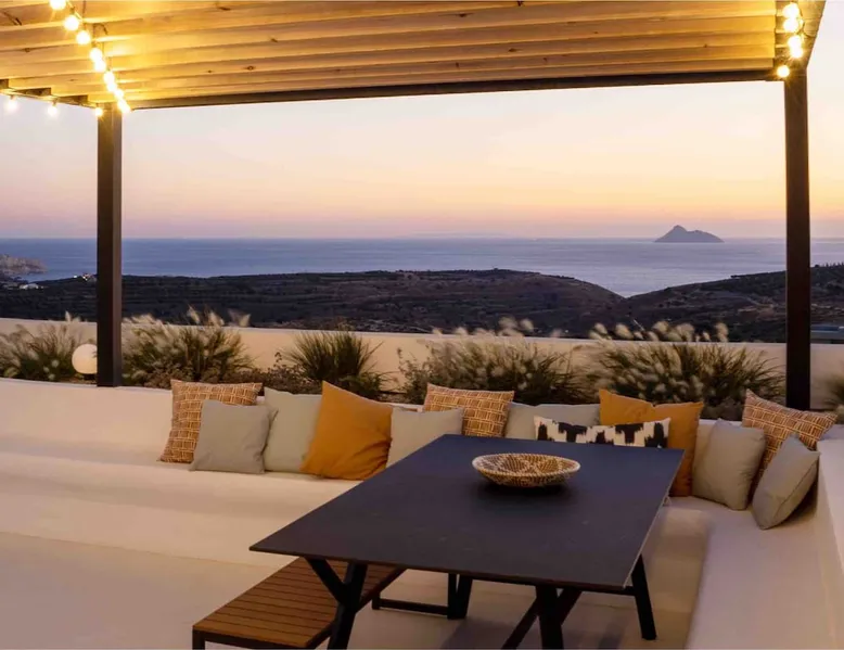 The sun shines overhead, the distant sea glimmers and a relaxed holiday awaits! Located on a hill near the ocean, Villa Nepenthe has a very nice view. You'll start the day looking at the sea, the valley and the mountains. Standing on the balcony, you feel a breeze and hear crickets in the olive groves. In the evening, there are amazing sunsets from the lounge on the rooftop. The villa's interior complements the classic Greek style with tasteful design, positive energy and stress-free elegance. The space Nepenthe is a modest but luxurious villa, with 'beach house' character. The traditional Greek building style is infused with classy design, modern minimalism and attention to comfort. There's WiFi everywhere and airco in all rooms. Each bedroom has a private ensuite bathroom and access to the balcony. The living and kitchen have panoramic folding doors. When opened, the transition between indoors and outdoors fades into one large space with lots of light. The rooftop patio is one of the best spots in the house. Enveloped by a herbal garden, there's lots of room to relax in the lounge and enjoy the view over the valley with its olive trees, the distant mountains and the ocean. The timeless, unspoilt nature of the environment and its breathtaking beauty, have a calming effect and evoke inner peace. ★ LIVING • Seamless indoor-outdoor space • Wireless broadband internet • Closed wood-burning fireplace • 2 wireless Bose bluetooth speakers • Books and games ★ BED & BATH • 1 king-size bed + 2 single beds • 2 full bathrooms with showers • Airconditioning in every room • Washer and dryer ★ KITCHEN & DINING • Fully equipped kitchen with appliances • Oven, microwave, American fridge • Filter coffee maker • French press coffee maker • Instant coffee (also decaf option) • Indoor dining at kitchen island • Outdoor dining on terrace or rooftop • Outdoor kitchen with a gas BBQ ★ INTERNET & TV • WiFi access on every floor • 2 Outdoor wifi access points • Samsung 55 inch smart TV • Netflix and Disney accounts • PlayStation 4 • Airplay with access to other services (bring your own passwords) ★ OUTDOORS • Pool of 10 meters, great to swim laps • Outdoor shower by the pool • Flowers & tropical plants • Terrace, dining table, pergola & sun chairs • Free parking space(s) on driveway • Rooftop patio with lounge & dining area • Open view of the ocean, valley & mountains • Stone garden with mediterranean plants • Outdoor fireplace on ethanol fuel • Nearby: shops, beaches, bars & restaurants Guest access ★ CHECK-IN We offer a flexible check-in, your host will meet you at the villa when you arrive. After that, you'll have the entire place and all areas to yourself. Other things to note ★ WIFI SPEEDS Our satellite wifi is the fastest available for the region and we have a good coverage. However, as we are in a rural and remote area, the speed may be slower than you are used to. ★ INCLUSION We're committed to providing a welcoming space for travellers of all age, culture, ethnicity, lifestyle, orientation, identity and background. ★ PRIVACY We're located in a secluded area. We have close neighbours, but most of our outdoor space is private due to fencing and foliage. Our indoors has full privacy: the bathrooms have frosted windows and there are curtains and shutters at every window. ★ GUIDEBOOK & MANUAL We have a Guidebook and a House Manual, containing tips and information about the area and the villa. These are handy to plan your trip. We will send you a link right after you book. ★ QUESTIONS? Send us a message! ★ Follow us on IG: villanepenthe Registration Details 1628935