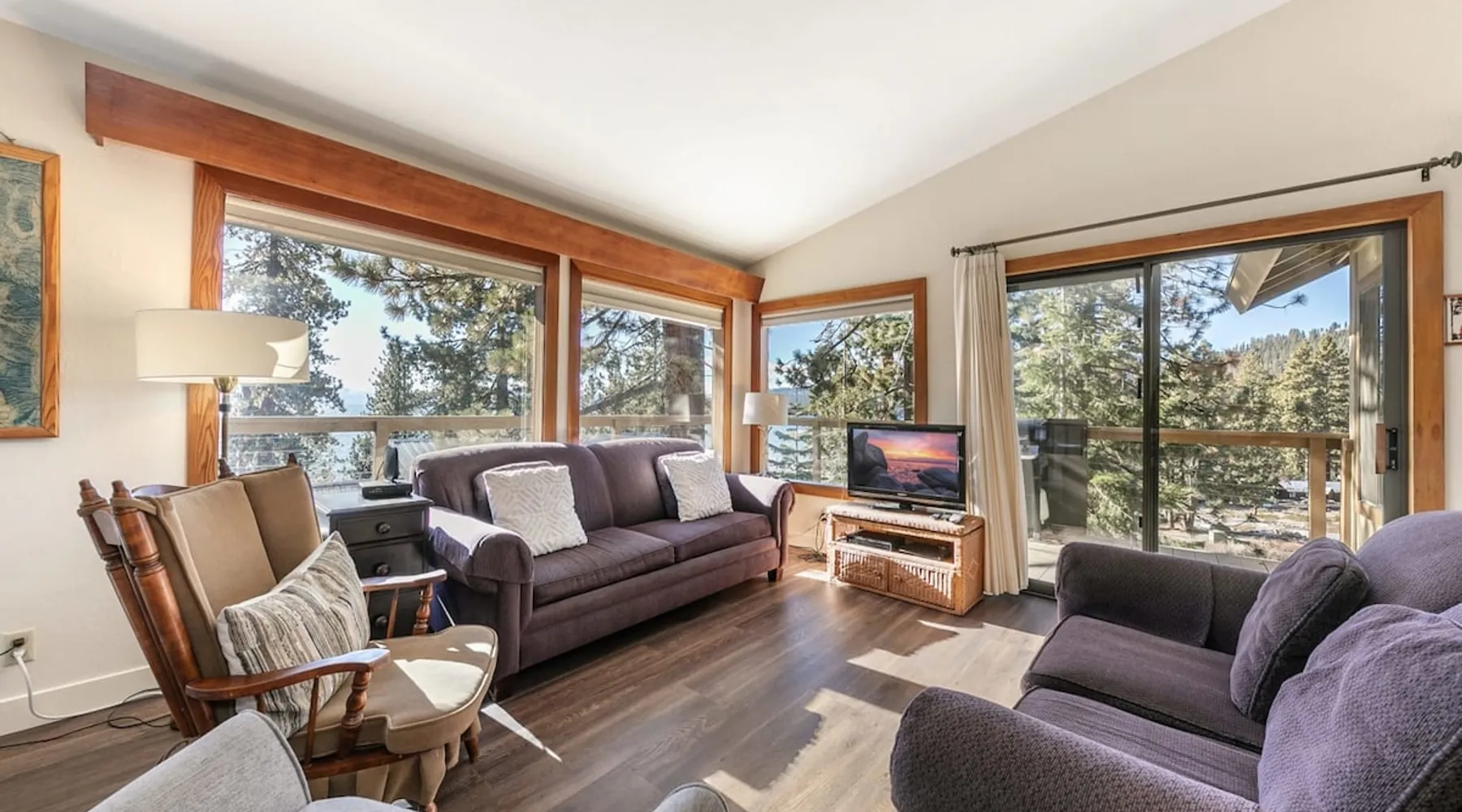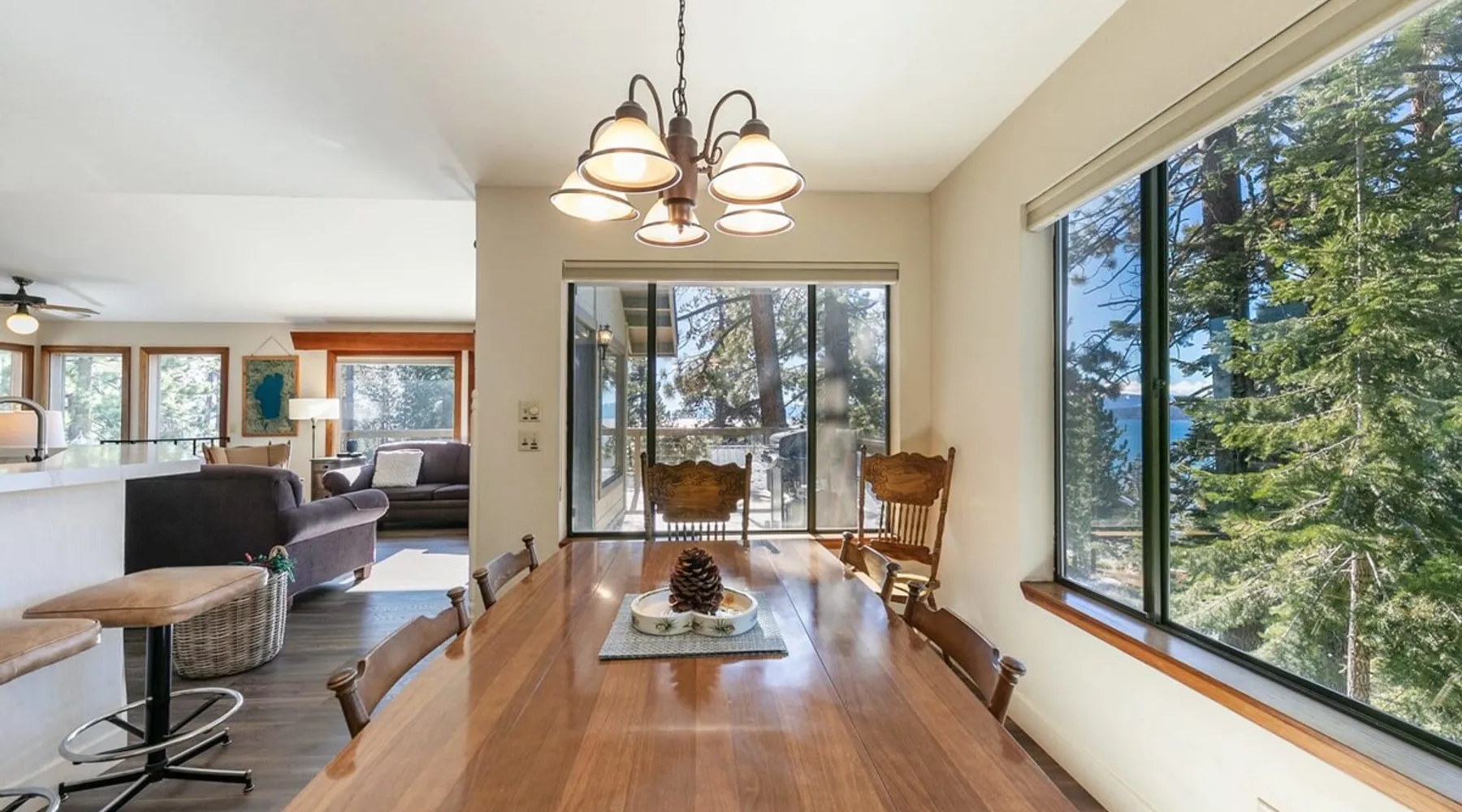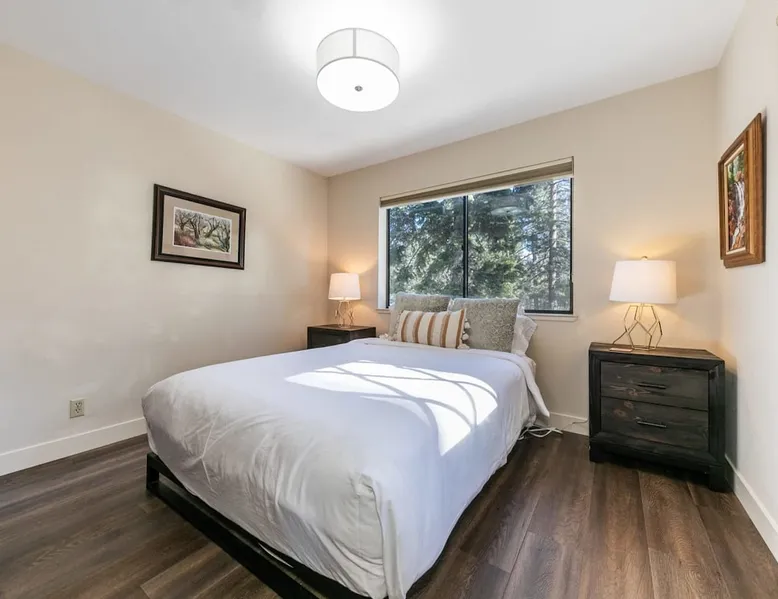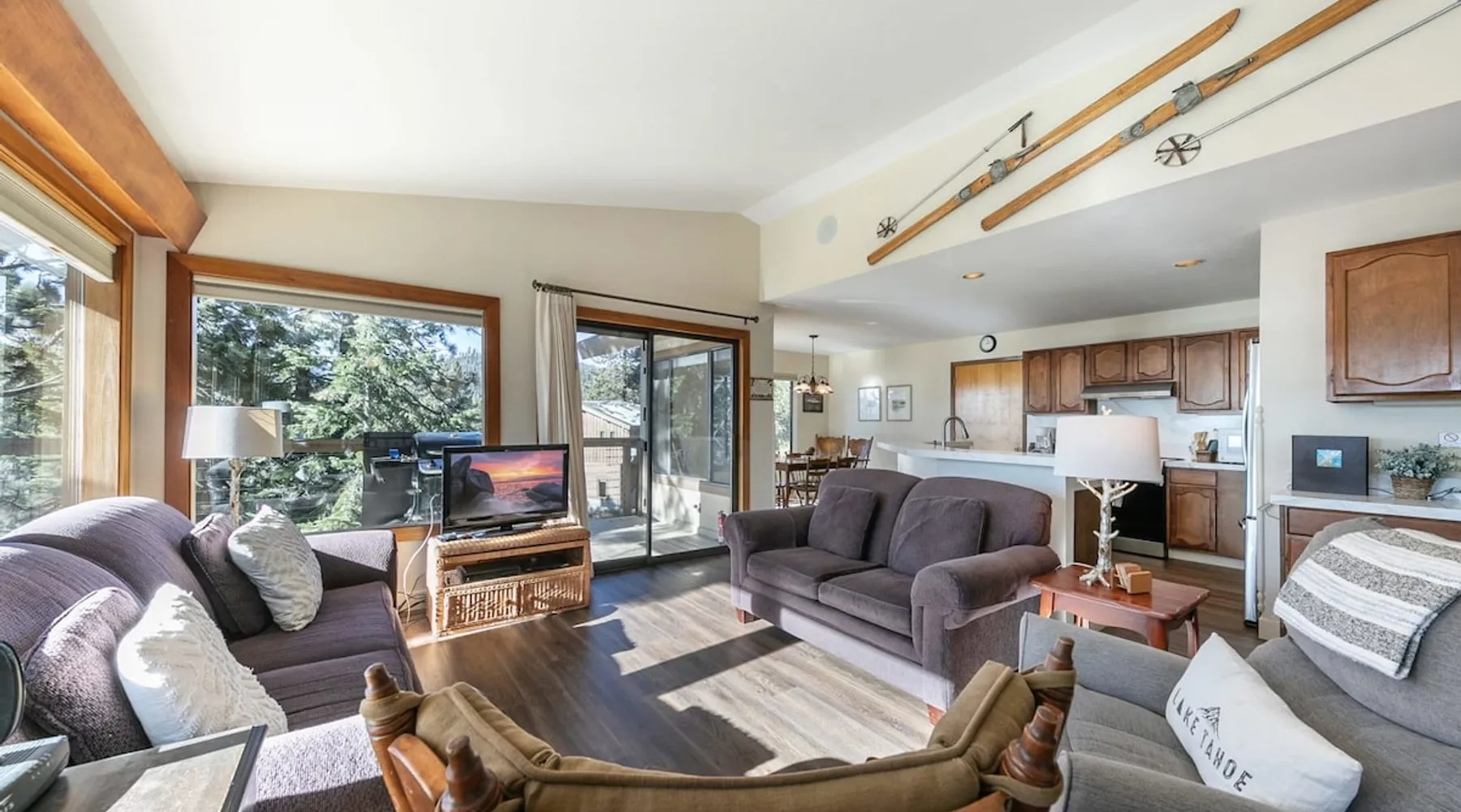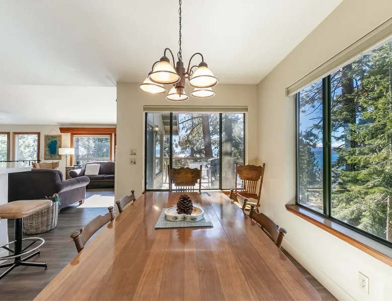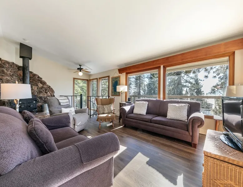This cozy and comfortable 3 bedroom, 2 bathroom home is conveniently located close to all the best summer and winter Lake Tahoe amenities. It features a bright open living/dining area with a lake view, large kitchen and wood burning stove. It is an easy 10 minute walk to a great beach and marina, and only a short drive to 5 major ski resorts. It is conveniently located 2 minutes from Kings Beach, 10 minutes from Tahoe City and 10 minutes from the Nevada state line (Crystal Bay). The space The Tahoe Vista Retreat is bright, open and rustic to provide a true Tahoe experience with comfort and convenience. This cozy house is perfect for the whole group to relax together listening to music, cooking, and enjoying a fire- all with a west facing lake view for great sunsets. The 3 bedrooms and 2 full bathrooms provide enough room for a small family or couples getaway. The kitchen is fully equipped and you’ll find everything you’ll need for home cooked meals. We also have a flat screen TV with ROKU, cable, and high speed internet. All of this with a location that can’t be beat! During the summer, you won't find a better location for the price. The house it is less than a 10-minute walk to Moon Dunes Beach, which is one of the nicest beaches in North Lake Tahoe- by 10 am you usually can’t find a parking space! You are also an easy walk or 5 minute drive to North Tahoe Marina that has great swimming, water sports rentals and picnic and BBQ areas. In the other direction a 3 minute drive takes you to the town of Kings Beach where you will find grocery stores, restaurants, bars, shopping, great beaches and watersport rentals. Just past Kings Beach is the Nevada state line with casinos and concert venues. The cabin is also only about a 5 minute walk to the nearest public transportation stop. In the winter months the house is centrally located to all the best ski resorts in Lake Tahoe. You are 15 minutes from Northstar, 20 minutes to Diamond Peak, 25 minutes to Mt. Rose, 25 minutes from Alpine Meadows, 30 minutes from Palisades Tahoe and 10 minutes from the Tahoe Nordic Cross Country Center. If you are just looking for a beautiful walk in the snow or some sledding North Tahoe Regional Park is only a few miles away. Don’t miss out on the best launching pad for Lake Tahoe! The Tahoe Vista retreat is the ultimate getaway for enjoying all that Tahoe has to offer. Please note that this house is not safe for small children. The spiral staircase and railing are wide enough for a child to easily slip through and a child gate will not solve the problem. We do not allow children under the age of 6. We offer concierge services! Just let us know what you or your group are interested in and we will happily get you set up for your perfect Tahoe adventure. STR License Number: Permit#: STR22-5821 Max Occupancy: 6 Parking Info: There are two spaces available in the driveway. Guest access As a guest you will have access to the entire house and the parking area. The house has a full kitchen, washer dryer, parking spots, and a barbecue (except in winter). The parking area is flat and can easily fit 2 vehicles. Other things to note If you are renting this home from November through March, please remember that there may be winter driving conditions, and a 4-wheel drive with all-terrain tires or snow chains for your 2-wheel drive tires might be necessary for safe travel. Even if it hasn’t snowed in a few days, side roads can still be icy and have snow on them. Please also be aware of long travel times and pass closures due to winter weather conditions. Please note that grills and outdoor furniture are not available during the months of November to April due to snow. This house is not suitable for the elderly or children under the age of 8. It has a steep spiral staircase and railing that is wide enough for children to slip through. Quiet times 9PM-8AM Charcoal grills are strictly forbidden in this county and will result in a $1,500 citation if used. 4-wheel drive or 2-wheel drive tires with snow chains may be necessary for safe travel to this property, even if it hasn’t snowed in a few days. Please keep in mind that if you plan to ski, you are responsible for verifying the ski resorts' opening and closing dates.