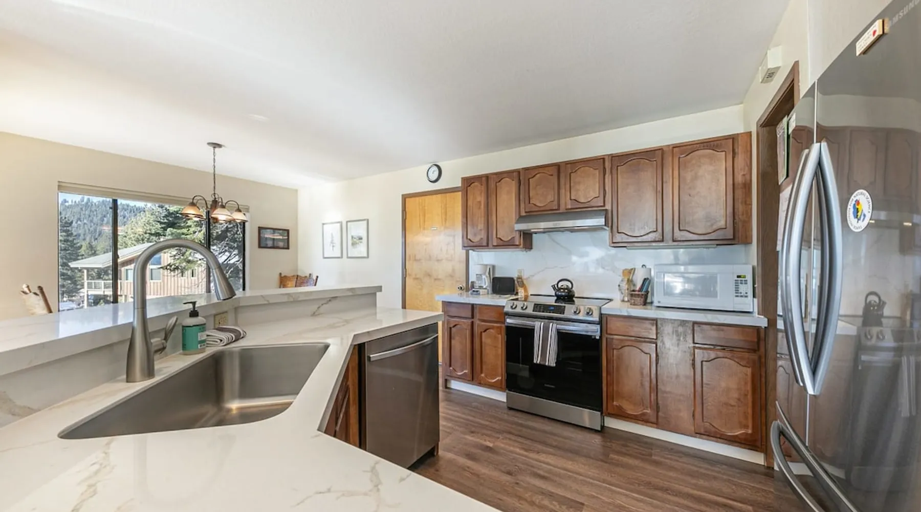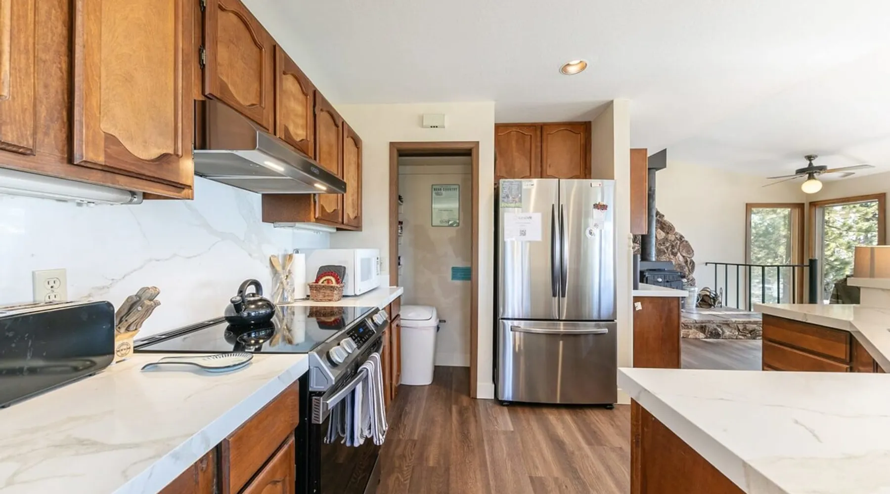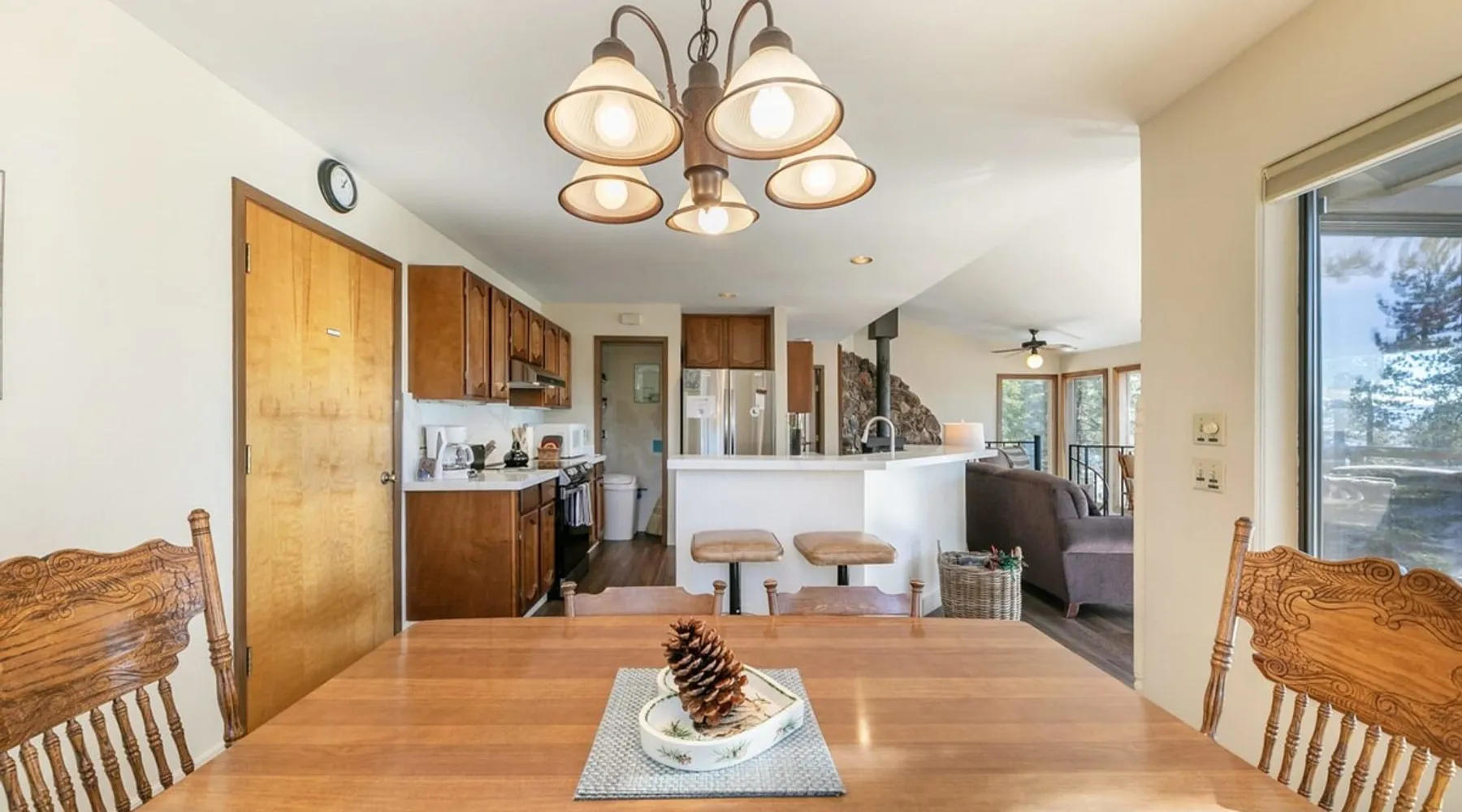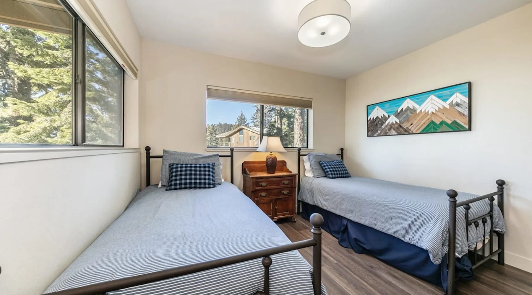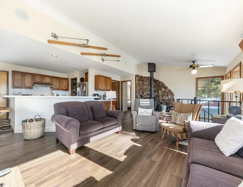 This cozy and comfortable 3 bedroom, 2 bathroom home is conveniently located close to all the best summer and winter Lake Tahoe amenities. It features a bright open living/dining area with a lake view, large kitchen and wood burning stove. It is an easy 10 minute walk to a great beach and marina, and only a short drive to 5 major ski resorts. It is conveniently located 2 minutes from Kings Beach, 10 minutes from Tahoe City and 10 minutes from the Nevada state line (Crystal Bay). The space The Tahoe Vista Retreat is bright, open and rustic to provide a true Tahoe experience with comfort and convenience. This cozy house is perfect for the whole group to relax together listening to music, cooking, and enjoying a fire- all with a west facing lake view for great sunsets. The 3 bedrooms and 2 full bathrooms provide enough room for a small family or couples getaway. The kitchen is fully equipped and you’ll find everything you’ll need for home cooked meals. We also have a flat screen TV with ROKU, cable, and high speed internet. All of this with a location that can’t be beat! During the summer, you won't find a better location for the price. The house it is less than a 10-minute walk to Moon Dunes Beach, which is one of the nicest beaches in North Lake Tahoe- by 10 am you usually can’t find a parking space! You are also an easy walk or 5 minute drive to North Tahoe Marina that has great swimming, water sports rentals and picnic and BBQ areas. In the other direction a 3 minute drive takes you to the town of Kings Beach where you will find grocery stores, restaurants, bars, shopping, great beaches and watersport rentals. Just past Kings Beach is the Nevada state line with casinos and concert venues. The cabin is also only about a 5 minute walk to the nearest public transportation stop. In the winter months the house is centrally located to all the best ski resorts in Lake Tahoe. You are 15 minutes from Northstar, 20 minutes to Diamond Peak, 25 minutes to Mt. Rose, 25 minutes from Alpine Meadows, 30 minutes from Palisades Tahoe and 10 minutes from the Tahoe Nordic Cross Country Center. If you are just looking for a beautiful walk in the snow or some sledding North Tahoe Regional Park is only a few miles away. Don’t miss out on the best launching pad for Lake Tahoe! The Tahoe Vista retreat is the ultimate getaway for enjoying all that Tahoe has to offer. Please note that this house is not safe for small children. The spiral staircase and railing are wide enough for a child to easily slip through and a child gate will not solve the problem. We do not allow children under the age of 6. We offer concierge services! Just let us know what you or your group are interested in and we will happily get you set up for your perfect Tahoe adventure. STR License Number: Permit#: STR22-5821 Max Occupancy: 6 Parking Info: There are two spaces available in the driveway. Guest access As a guest you will have access to the entire house and the parking area. The house has a full kitchen, washer dryer, parking spots, and a barbecue (except in winter). The parking area is flat and can easily fit 2 vehicles. Other things to note If you are renting this home from November through March, please remember that there may be winter driving conditions, and a 4-wheel drive with all-terrain tires or snow chains for your 2-wheel drive tires might be necessary for safe travel. Even if it hasn’t snowed in a few days, side roads can still be icy and have snow on them. Please also be aware of long travel times and pass closures due to winter weather conditions. Please note that grills and outdoor furniture are not available during the months of November to April due to snow. This house is not suitable for the elderly or children under the age of 8. It has a steep spiral staircase and railing that is wide enough for children to slip through. Quiet times 9PM-8AM Charcoal grills are strictly forbidden in this county and will result in a $1,500 citation if used. 4-wheel drive or 2-wheel drive tires with snow chains may be necessary for safe travel to this property, even if it hasn’t snowed in a few days. Please keep in mind that if you plan to ski, you are responsible for verifying the ski resorts' opening and closing dates.