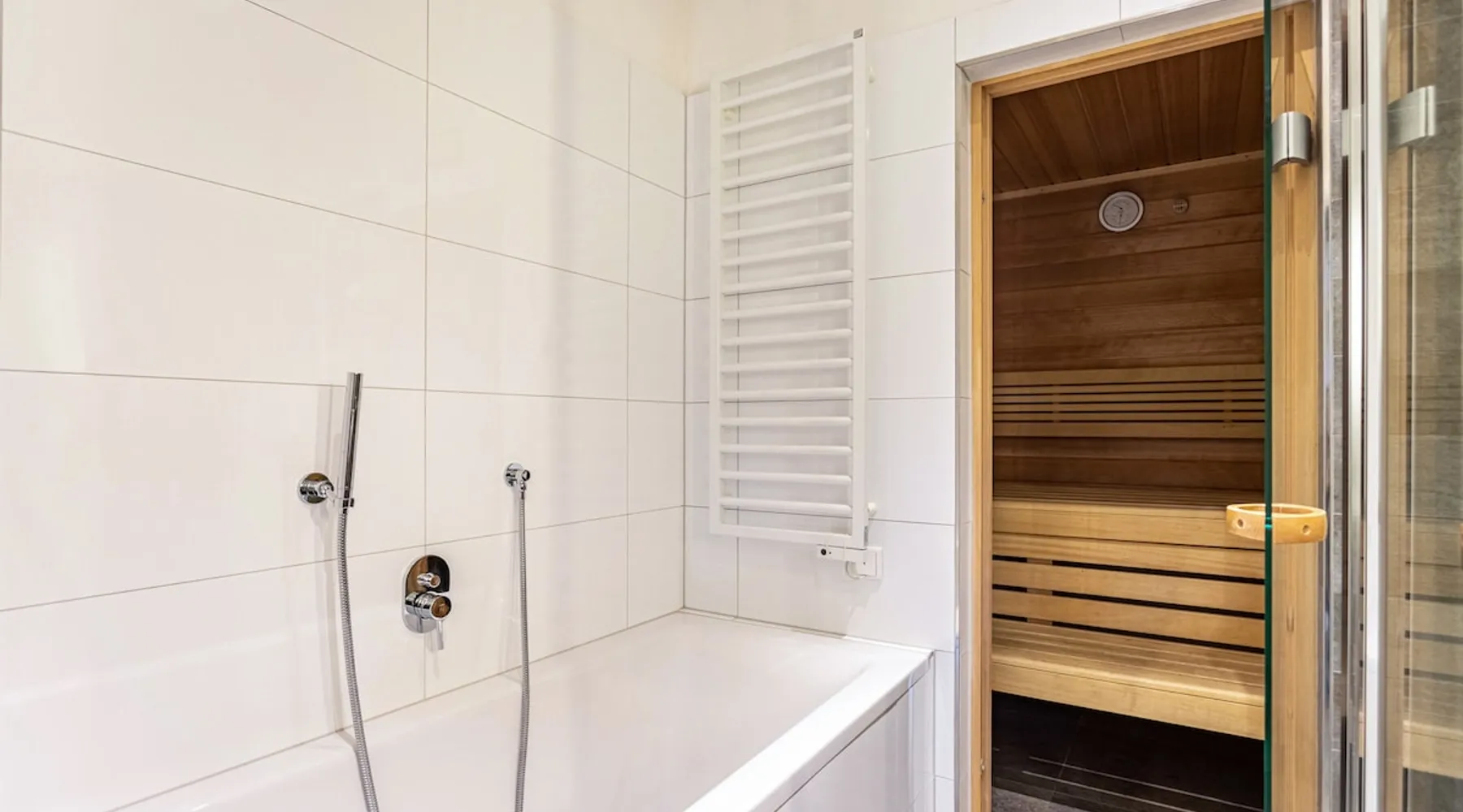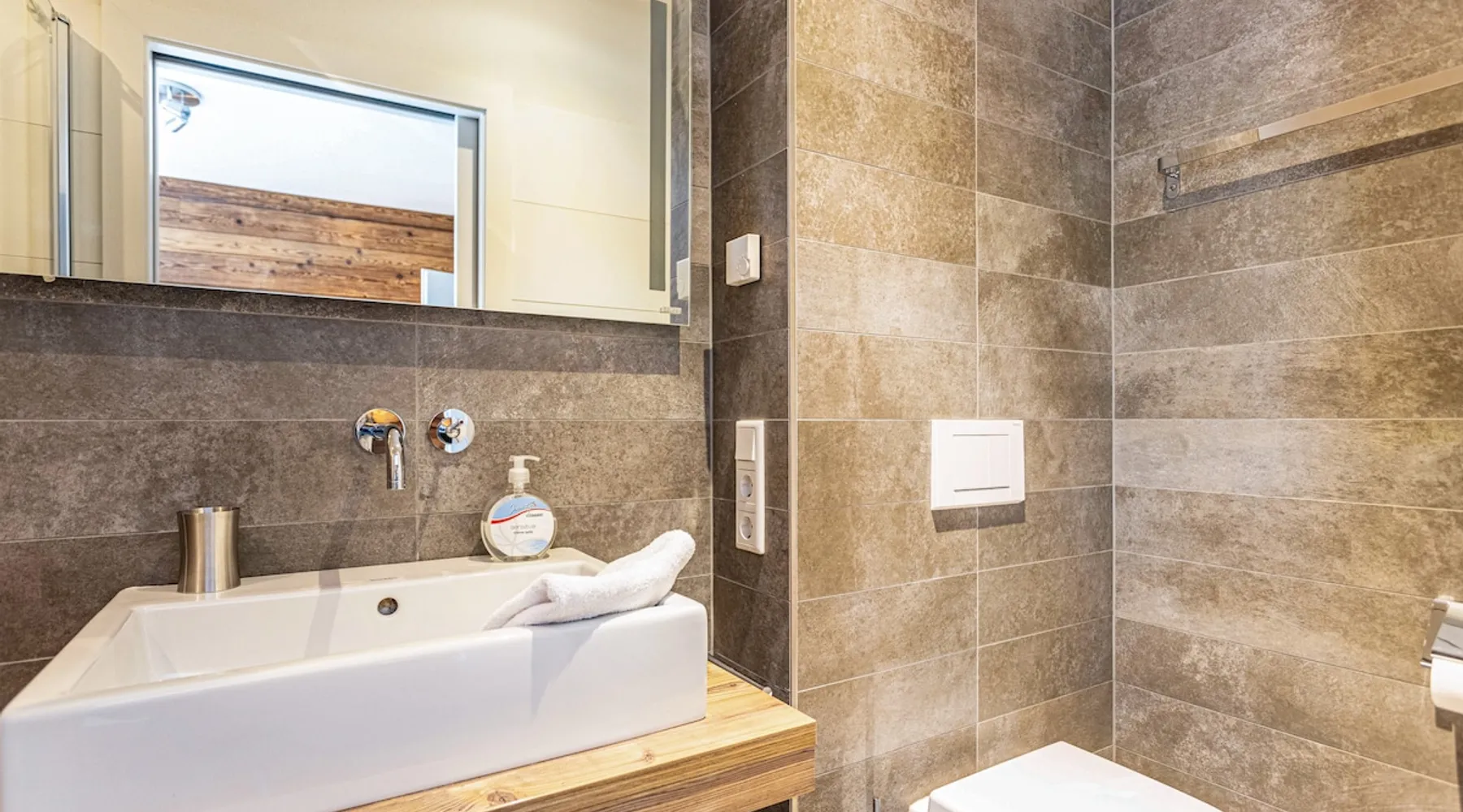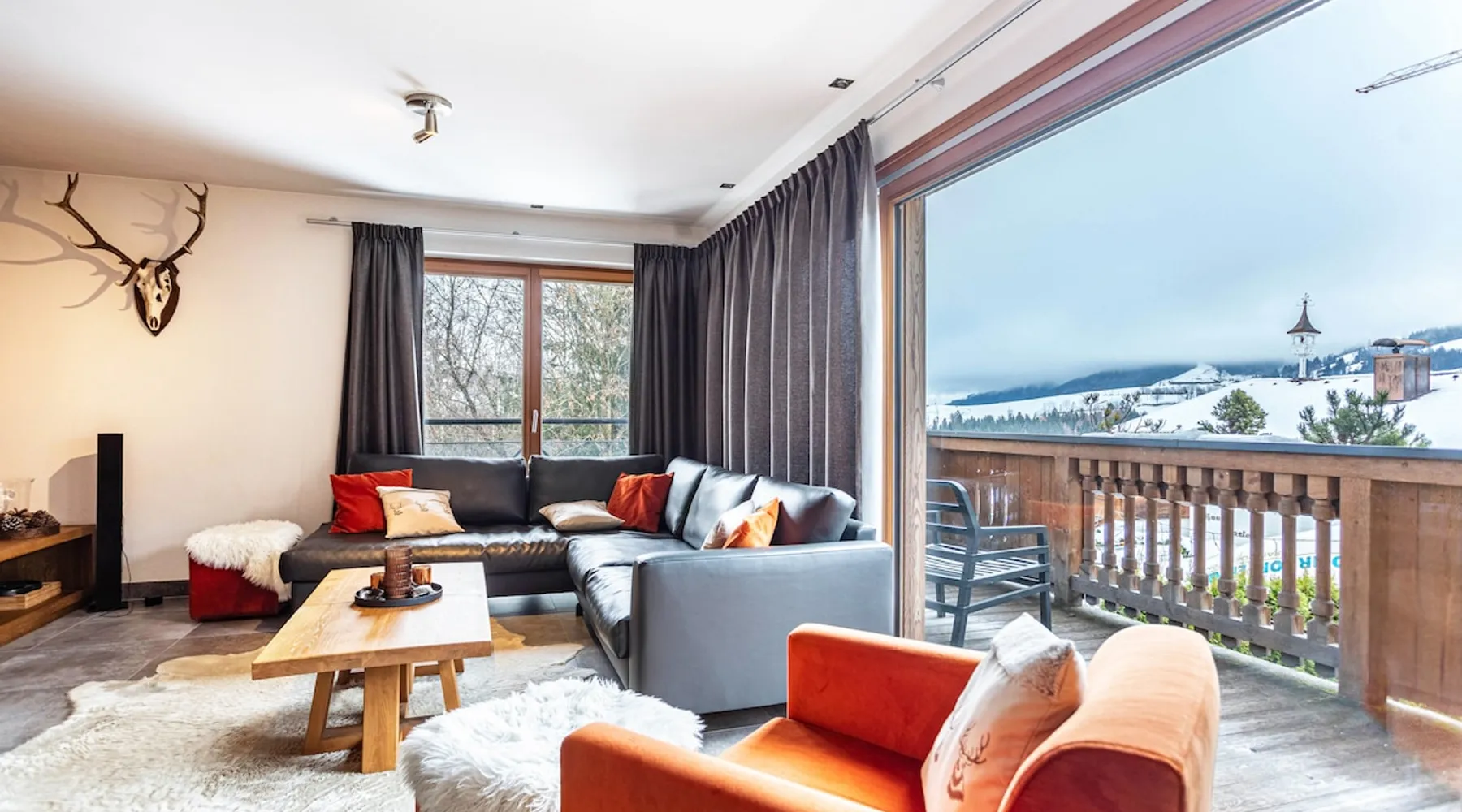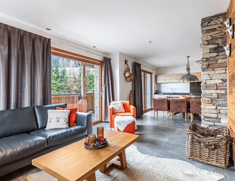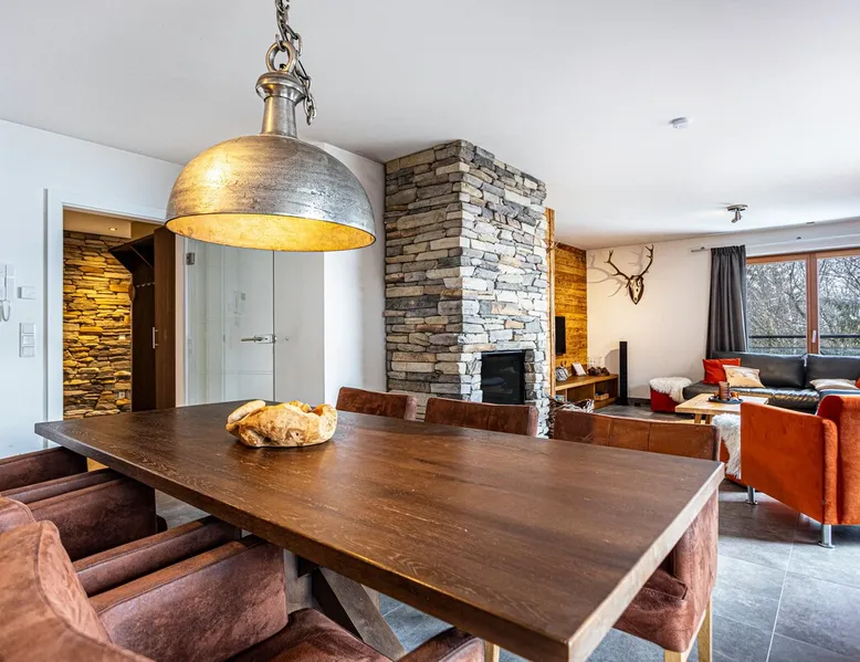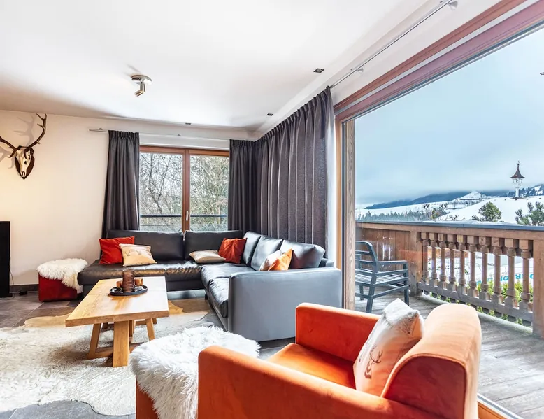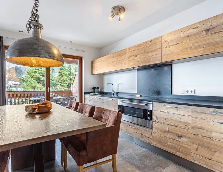 The holiday apartment "Mountain Lodge Leogang - Top4" is located in Leogang and boasts a view of the mountains and direct access to the ski slopes. The 101 m² property consists of a living room, a fully-equipped kitchen with a dishwasher, 3 bedrooms, and 2 bathrooms as well as an additional toilet and can therefore accommodate 6 people. Additional amenities include high-speed Wi-Fi suitable for video calls, heating as well as a TV. Other things to note A washing machine and dryer for communal use are available in the laundry room. Furthermore, a private sauna is available on the property. A baby cot and high chair are also available upon request. The holiday apartment also offers a private balcony where you can relax in the evening. In the surroundings, you can find the Flying Fox, the mountain Asitz, the bicycle and ski rental Mitterer, the Leogang Show Mine, an outdoor pool (2 km away), and Saalfelden with shopping opportunities - approximately a 15-minute drive away (9.6 km). A parking space is available on the property and 1 in a garage. Additional parking spaces are available upon request. Pets are NOT allowed. Smoking inside the apartment is NOT ALLOWED. DO NOT enter the apartment with ski boots. Evening rest between 10 pm and 7 am must be observed. An elevator and ski storage are available in the building. This property has recycling rules, more information is provided on-site. Guests are asked to observe the waste separation. A bread service is available and there is a vending machine in front of the house. Saalfelden Leogang Card is included and firewood for the fireplace is provided free of charge in winter. After booking, please completely fill out the Holidu contact form that will be sent to you by email, including your address. This will help the host to prepare your stay in the best possible way.