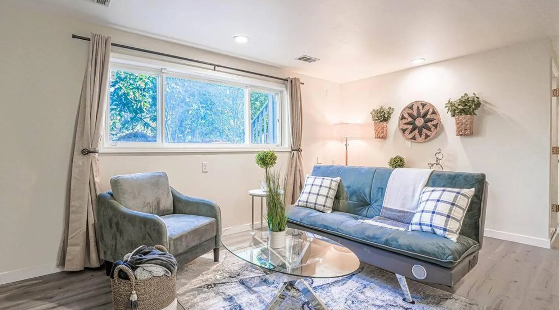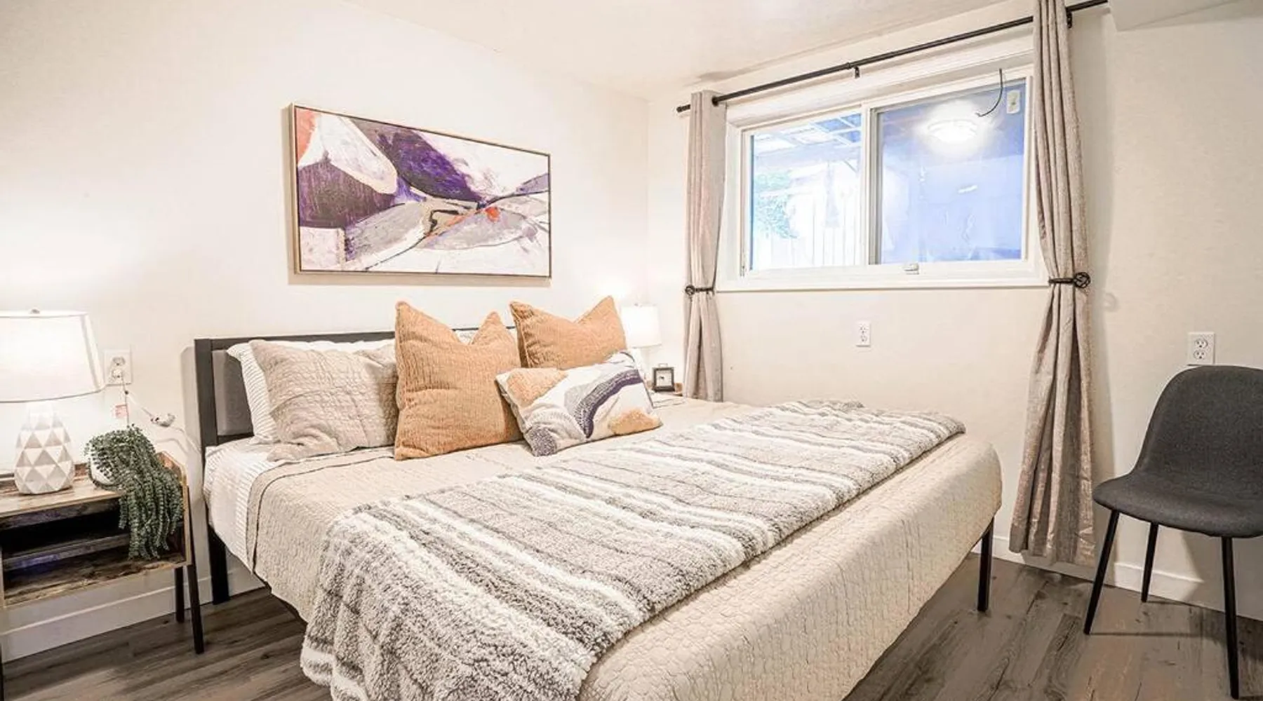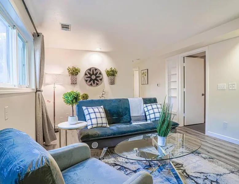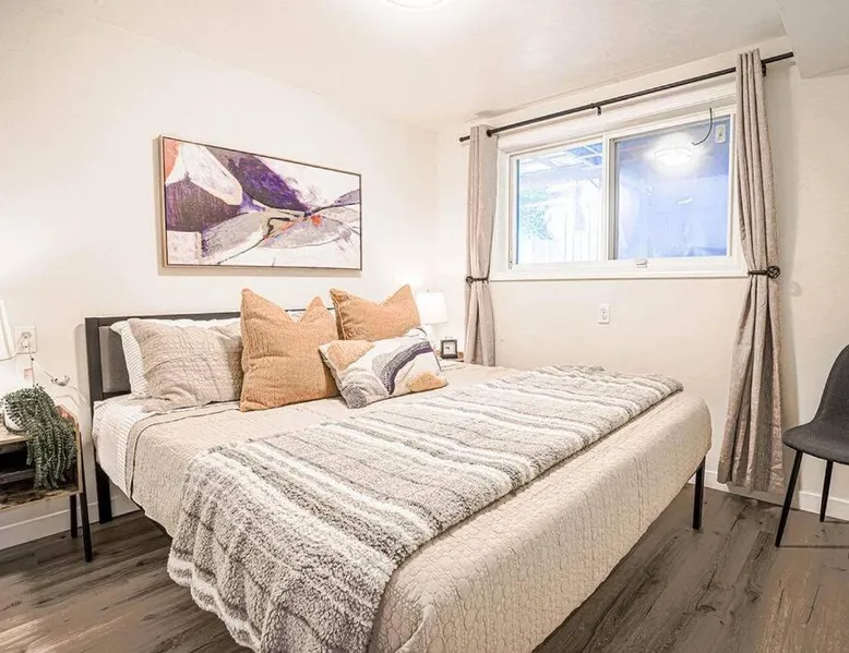 Comfortable Living: Seatac 2BR Lower Unit- 5 min to Airport in SeaTac offers a holiday home with two bedrooms and a living room. The property includes a fully equipped kitchen, air-conditioning, and a washing machine. Modern Amenities: Guests enjoy free WiFi, a garden, and free on-site parking. Additional amenities include a fireplace, tea and coffee maker, hairdryer, refrigerator, microwave, dishwasher, kitchenware, oven, and stovetop. Convenient Location: Located 1.9 mi from Seattle–Tacoma International Airport, the property is close to attractions such as Lumen Field (9.3 mi), Space Needle (11 mi), and Seward Park (6.2 mi). This holiday home's standout feature is the fireplace. This air-conditioned holiday home is consisted of of 1 living room, 2 separate bedrooms and 1 bathroom with a bath. In the well-fitted kitchen, guests will find a stovetop, a refrigerator, a dishwasher and kitchenware. The holiday home offers a washing machine, a tea and coffee maker, tumble dryer, a high chair for children, as well as a TV. The unit offers 3 beds.