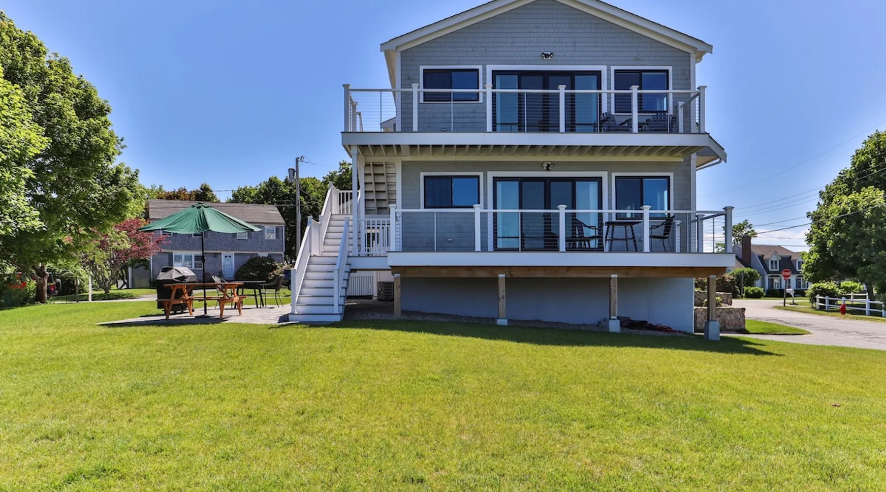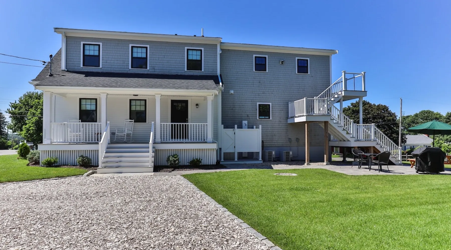 This superbly built 4 bedroom, 4 bathroom home sits on the apex of the Town Neck neighborhood in Sandwich. As soon as you enter the foyer, your eye will be drawn to the details in this lovely home. Shiplap, gleaming hardwoods, open living/ dining /kitchen area with lots of light and ocean views that instantly put you in vacation mode. The space Welcome to 69 Knott Ave – your ultimate summer getaway destination! Nestled in the sought-after Town Neck neighborhood in Sandwich, MA, this charming home offers the perfect blend of comfort, convenience, and coastal living. Step inside and experience the charm of this thoughtfully designed home. With 4 bedrooms and 4 bathrooms, there's plenty of space for everyone, comfortably accommodating up to 8 guests. The main level boasts a stylish open floor plan, featuring shiplap walls and gleaming hardwood floors bathed in natural light. The living, dining, and kitchen areas seamlessly flow together, creating an ideal space for gatherings and relaxation. Take in breathtaking views of the Canal and Cape Cod Bay from the comfort of your living room, a perfect backdrop for creating lasting memories with loved ones. The kitchen has modern appliances and ample counter space for preparing delicious meals. And with a washer and dryer conveniently tucked away, keeping your beachwear fresh and clean is a breeze. The main level boasts two bedrooms, including a master bedroom suite, complete with an ensuite bathroom. The second bedroom offers full over full bunk beds, perfect for the little ones or extra guests. An additional full bathroom on this level ensures everyone has their own space and privacy. Venture upstairs to discover an additional living area, complete with a kitchenette, wet bar, and game table – the ultimate entertainment hub for family fun nights or late-night gatherings. Step out onto the upper-level porch and soak in the picturesque views of the canal and Cape Cod Bay. The upper level also features a second king suite and a queen bedroom, along with another full bathroom and washer and dryer. This layout is perfect for two families or groups of friends, providing ample space and privacy for all. Outside, you're just a short distance away from the iconic Sandwich Boardwalk, as well as a variety of dining and shopping options. Plus, Town Neck Beach is less than half a mile away, so you're never far from sun, sand, and surf. Don't miss out on the opportunity to experience the best that Cape Cod has to offer. Book your stay at 69 Knott Ave today and make unforgettable memories in this coastal paradise! Pet allowed with prior approval Bedroom 1- King with en suite Bedroom 2 - Bunk 2 full beds Bedroom 3- King with en suite Bedroom 4- Queen Guest access whole house including garage Other things to note Sheets and towels are not included and may be brought or rented locally. Look up Dune Tootin linen rentals for pricing.