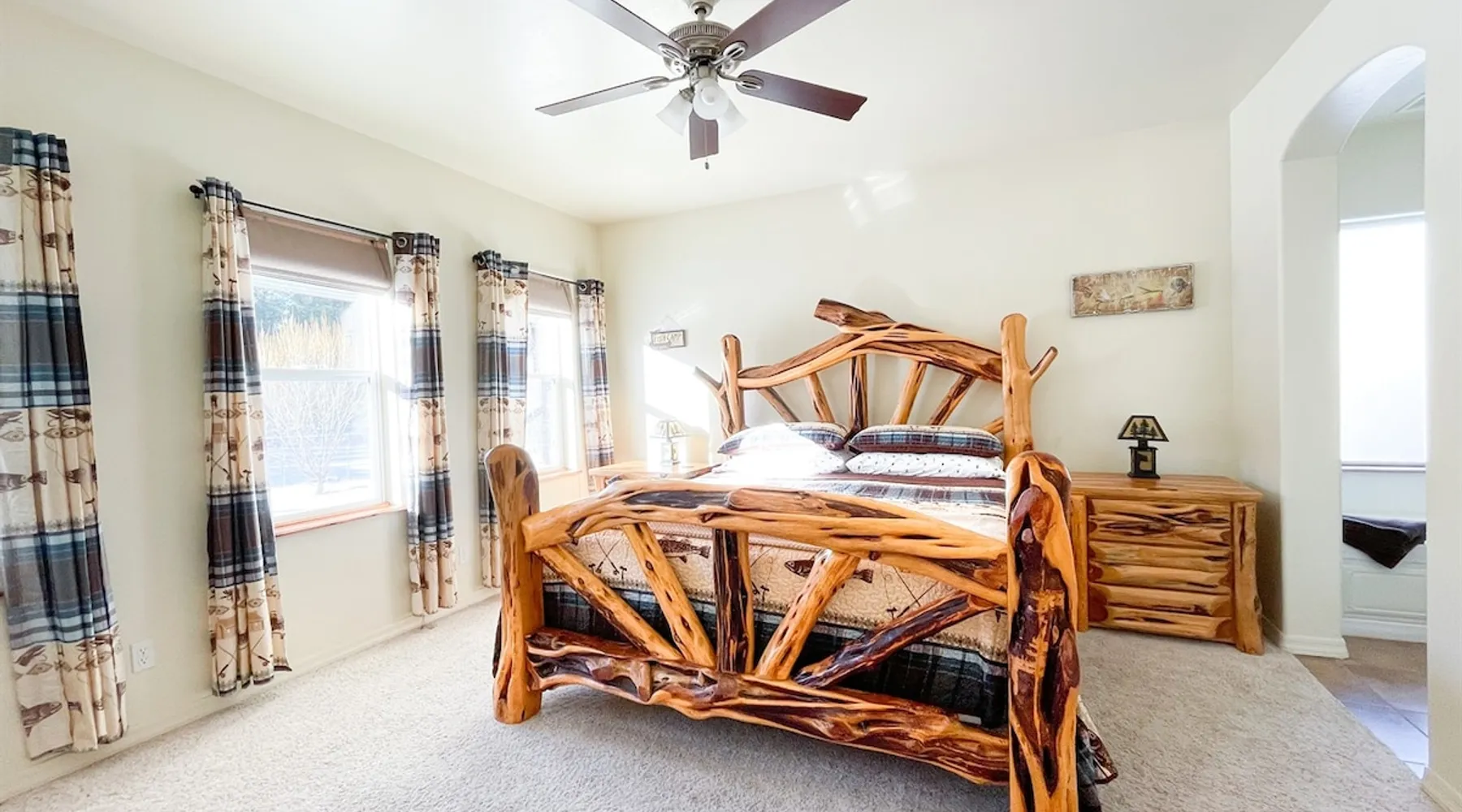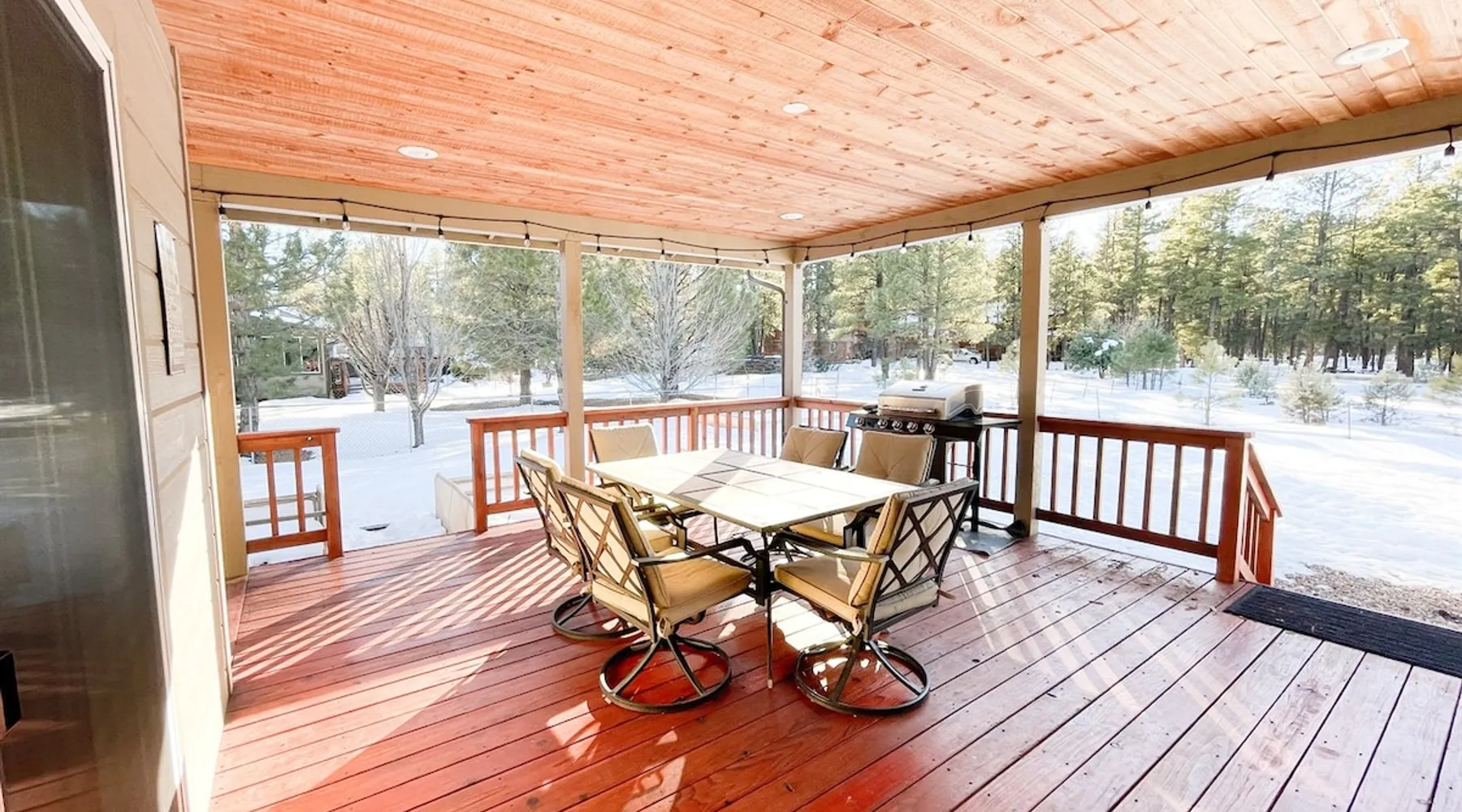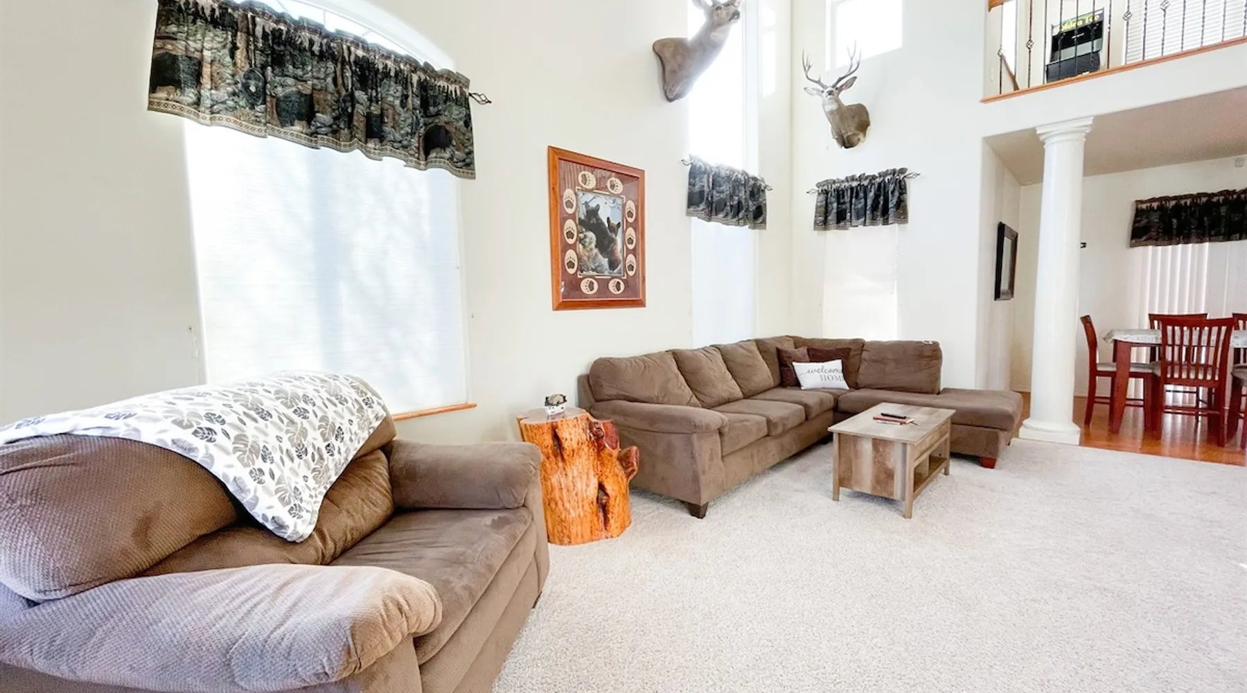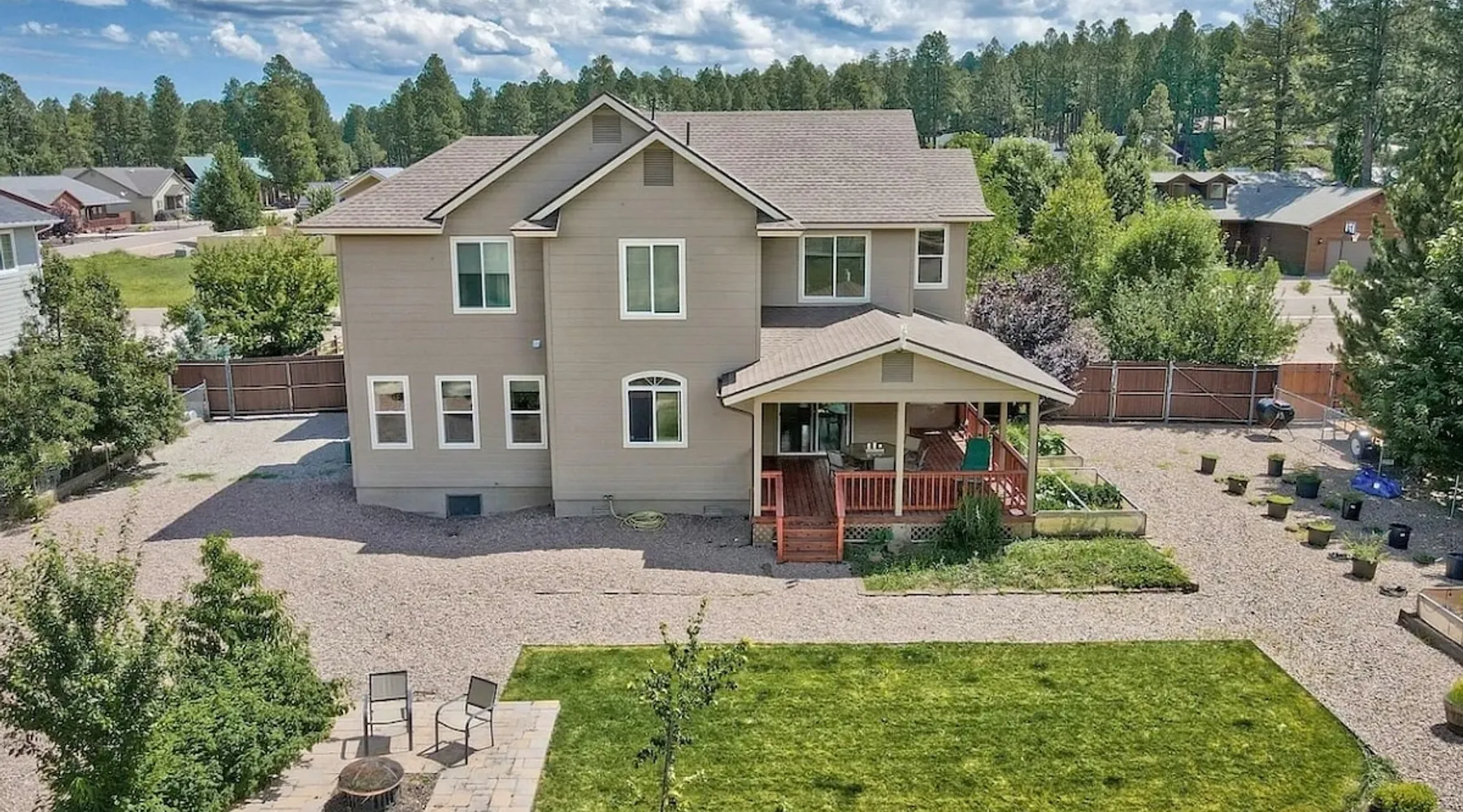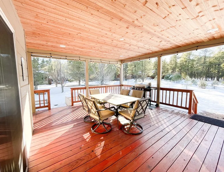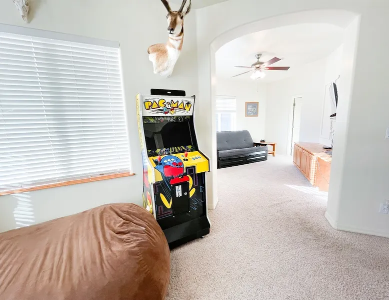 The Lodge is a peaceful mountain getaway just a short walk from Woodland Lake. The main floor includes a spacious living room, master suite with soaking tub and shower, a second bedroom, and a half bath. Upstairs features three bedrooms, a full bath, loft with arcade games, and a cozy den. Outside, enjoy the beautifully landscaped front yard, a large covered back porch, and a fully fenced backyard—ideal for relaxing, gathering, and making lasting memories together. The space The spacious main floor features a cozy living room—perfect for gathering, relaxing, and making memories. You'll find the master bedroom and en suite bath conveniently located on the main level, complete with a soaking tub and separate shower. An additional bedroom and a half bath also sit on the main floor for added comfort. The home has so many places to spread out, relax, and enjoy lots of different activities. The outdoor spaces are no exception! The front yard is beautifully landscaped. The covered back porch is sizable and well-lit and steps down into the big, beautiful backyard that is fully fenced. RESIDENCE STRICTLY PROHIBITS PETS. Bringing pets into the home may result in the loss of your deposit and additional cleaning charges, including professional carpet cleaning and other tasks required by the cleaning staff. Your cooperation in maintaining a pet-free environment is appreciated and required as our Guest. A $500 fee will be added if you bring your pet. ⭑Master Bedroom:⭑ ✔ Located on the main floor for easy access ✔ Features a private ensuite bathroom with a luxurious soaking tub and walk-in shower ✔ Includes a comfortable bed, ceiling fan, and ample storage space ⭑Second Bedroom:⭑ ✔ Also on the main floor, perfect for guests who prefer to avoid stairs ✔ Thoughtfully decorated with a cozy bed and soft linens ✔ Equipped with closet space and relaxing ambiance ⭑Third Bedroom:⭑ ✔ Located upstairs with charming mountain decor ✔ Cozy bed, extra blankets, and pillows provided ✔ Ideal for kids or additional guests ⭑Fourth Bedroom:⭑ ✔ Upstairs bedroom with serene views and warm natural light ✔ Comfortable bedding and plenty of space to unwind ⭑Fifth Bedroom:⭑ ✔ A quiet retreat upstairs, great for rest after a day of exploring ✔ Features a relaxing setup with soft linens and homey touches ⭑Living Room:⭑ ✔ Spacious and inviting, perfect for relaxing with family or friends ✔ Plush seating, large TV, and open flow to the dining and kitchen areas ✔ Ideal for movie nights or morning coffee with scenic views ⭑Kitchen and Dining Area:⭑ ✔ Fully equipped kitchen with everything you need to cook your favorite meals ✔ Includes refrigerator, stove, oven, microwave, coffee maker, toaster, dishwasher, and more ✔ Large dining table for shared meals, games, or planning your day ⭑Bathrooms:⭑ ✔ 3 bathrooms, including a luxurious master bath with soaking tub and shower ✔ Stocked with shampoo, conditioner, body wash, and fresh towels ✔ Includes hair dryer, cleaning products, and thoughtful essentials RESIDENCE STRICTLY PROHIBITS PETS. Bringing pets into the home may result in the loss of your deposit and additional cleaning charges, including professional carpet cleaning and other tasks required by the cleaning staff. Your cooperation in maintaining a pet-free environment is appreciated and required as our Guest. A $500 fee will be added if you bring your pet. “Notice to potential guests with pet allergies: although the property does not allow guests to bring pets, this is not a pet-free home. We bring our pets (dog and cat) with us when we enjoy the property for our personal use. Please plan accordingly.” Guest access Lock Box Other things to note ⭑Outdoor Space:⭑ ✔ Enjoy the beautifully landscaped front yard or unwind on the large, covered back porch ✔ Fully fenced backyard—ideal for gatherings or letting kids play freely ✔ Roast marshmallows under the stars at the fire pit and take in the peaceful mountain surroundings ⭑Additional Amenities:⭑ ✔ Washer & dryer available for guest use ✔ Iron, hangers, extra blankets, and bed linens provided ✔ Loft den includes arcade games and cozy seating for bonus entertainment ⭑Safety and Security:⭑ ✔ Smoke alarm & carbon monoxide alarm ✔ First aid kit & fire extinguisher ✔ Private entrance for added privacy and peace of mind ⭑Entertainment and Connectivity:⭑ ✔ High-speed WiFi throughout the home ✔ TV for movie nights ✔ Mini golf and arcade games in the loft ⭑Heating and Cooling:⭑ ✔ Central heating and air conditioning ✔ Ceiling fans in multiple rooms for added comfort ⭑Parking and Facilities:⭑ ✔ Ample parking space on the property ✔ Private entrance for easy access ⭑Services:⭑ ✔ Self check-in via lockbox for convenience ✔ Long-term stays allowed (28 days or more) Your stay at The Lodge at Woodland Lake promises serene comfort, mountain charm, and an unforgettable experience. Book now and start your Pinetop adventure in style! This property has special local compliance requirements which include a signed rental agreement, ID verification, and a security hold of $1000 (which is not a traditional security deposit, just a pending transaction). As an optional alternative to the security hold, you may opt in to purchase a non-refundable damage waiver provided by a third-party insurance company. The optional damage waiver is $57 for stays up to 10 nights, with an additional $6 per day for stays longer than 10 nights. Damage waiver purchases are optional. To make this process easy for you, we use a secure and very simple, app-free platform called Happy Guest. It is not an app, and you do not have to sign up for an account - it’s a safe and secure website. It also gives you a guest portal with all the info about the home and all of my favorite local spots. Your guest portal includes advertisements with third-party upgrades that you may want to enhance yo