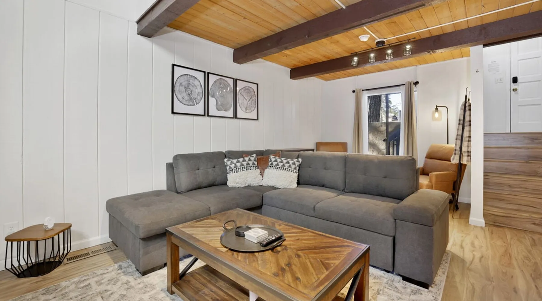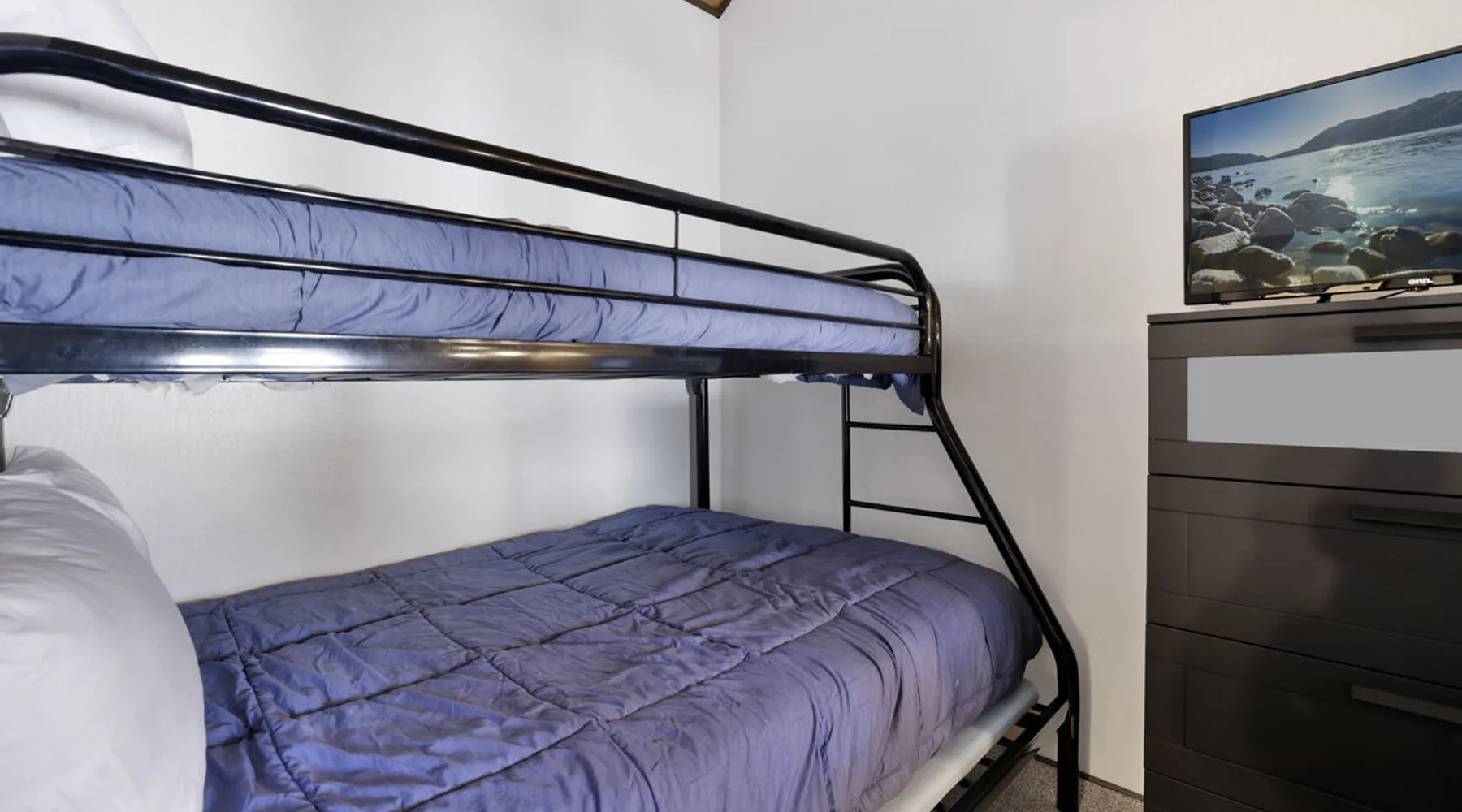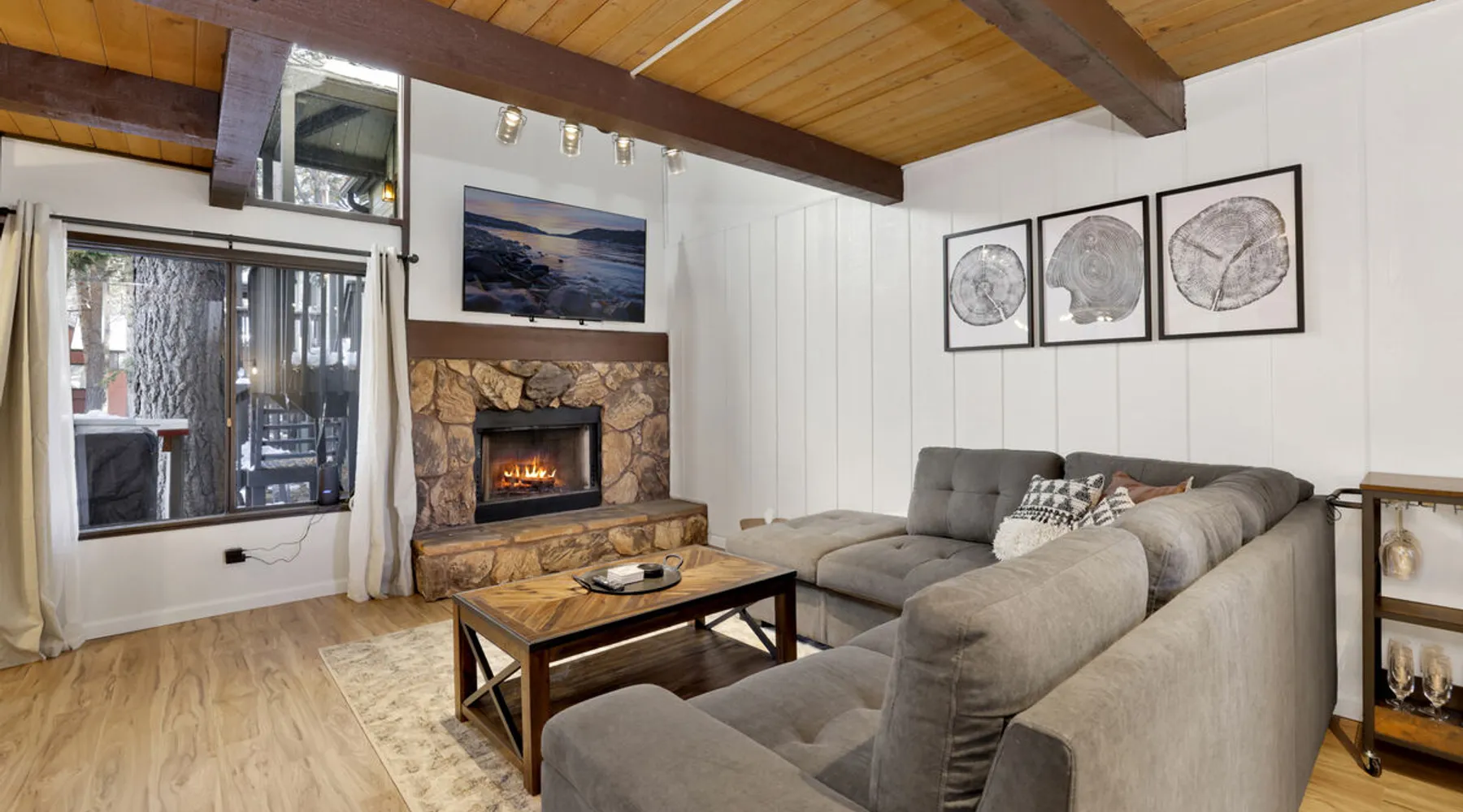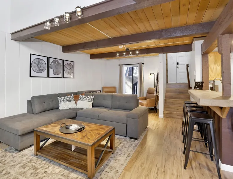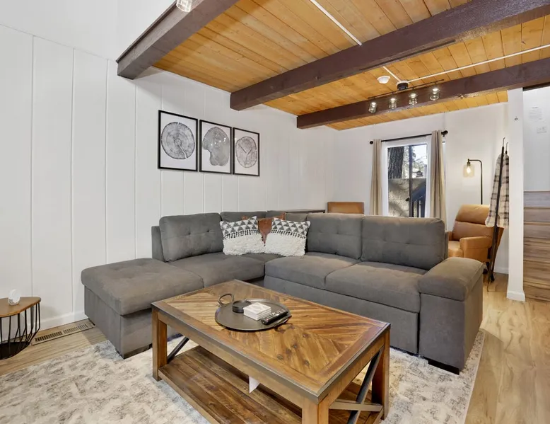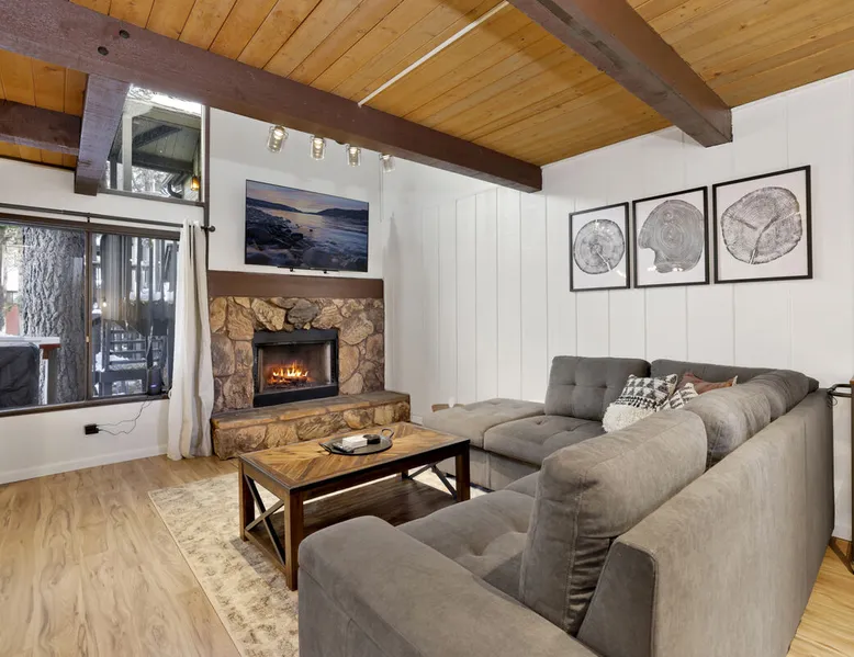 Summit View is the perfect destination for a family vacation or group of friends heading to Big Bear to experience local resort activities and adventure. Freshly renovated from head to toe with your vacation stay in mind our fully furnished townhouse condo offers all that you need to relax and unwind together under the pines as you enjoy local ski and bike park activities as well as hiking, fishing, and boating year round. Come experience this wonderful chalet for your next vacation today! The space Freshly renovated and furnished with your vacation stay in mind our relaxing retreat offers a cozy living room with toasty fireplace, equipped kitchen and dining facilities, plus two spacious sleeping areas and modern bathrooms including Streaming TVs, complimentary WIFI, and big open windows to enjoy the forested views outside. Prepare your home cooked meals and slopeside snacks in the chef's kitchen, complete with cookware, stainless appliances, and a Keurig machine for that coffee pickup in the mornings. Venture outside to enjoy ski slope views from your condo patio as this complex sits right at the base of Snow Summit Resort. Walk down to local dining options or hop in the car and you are within a short ten-minute drive to the grocery store, marina, and Village shops. Come experience your new home away from home in the mountains here at Summit View today! Sleeping Arrangements: Bedroom 1 / Open Loft: King Bed, Streaming TV- Upstairs 2nd Level Bedroom 2: Twin/Full Bunk + Queen Bed, Streaming TV- Upstairs 2nd Level Living Room: Sleeper Sofa- Downstairs Entry Level Bathroom Arrangements: Private Full Bath- Bedroom 1- Upstairs 2nd Level Hallway Full Bath- Upstairs 2nd Level -Sleeps 5 -2 Car Driveway Parking -NO PETS ALLOWED- Fines Imposed for Pets Found on Property -995 Square Feet City Permit #: VRR-2023-1728 Registration Details 2023-1728