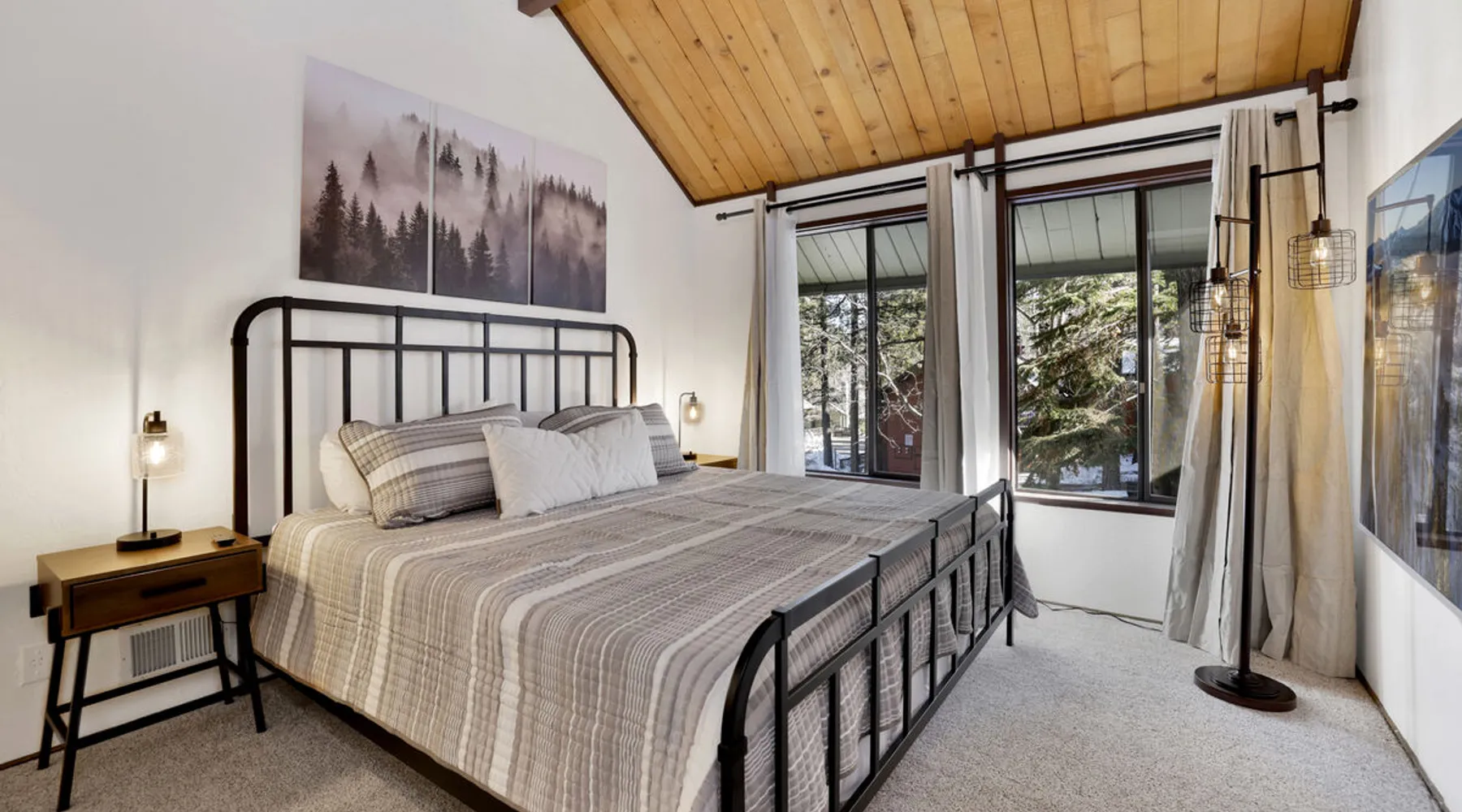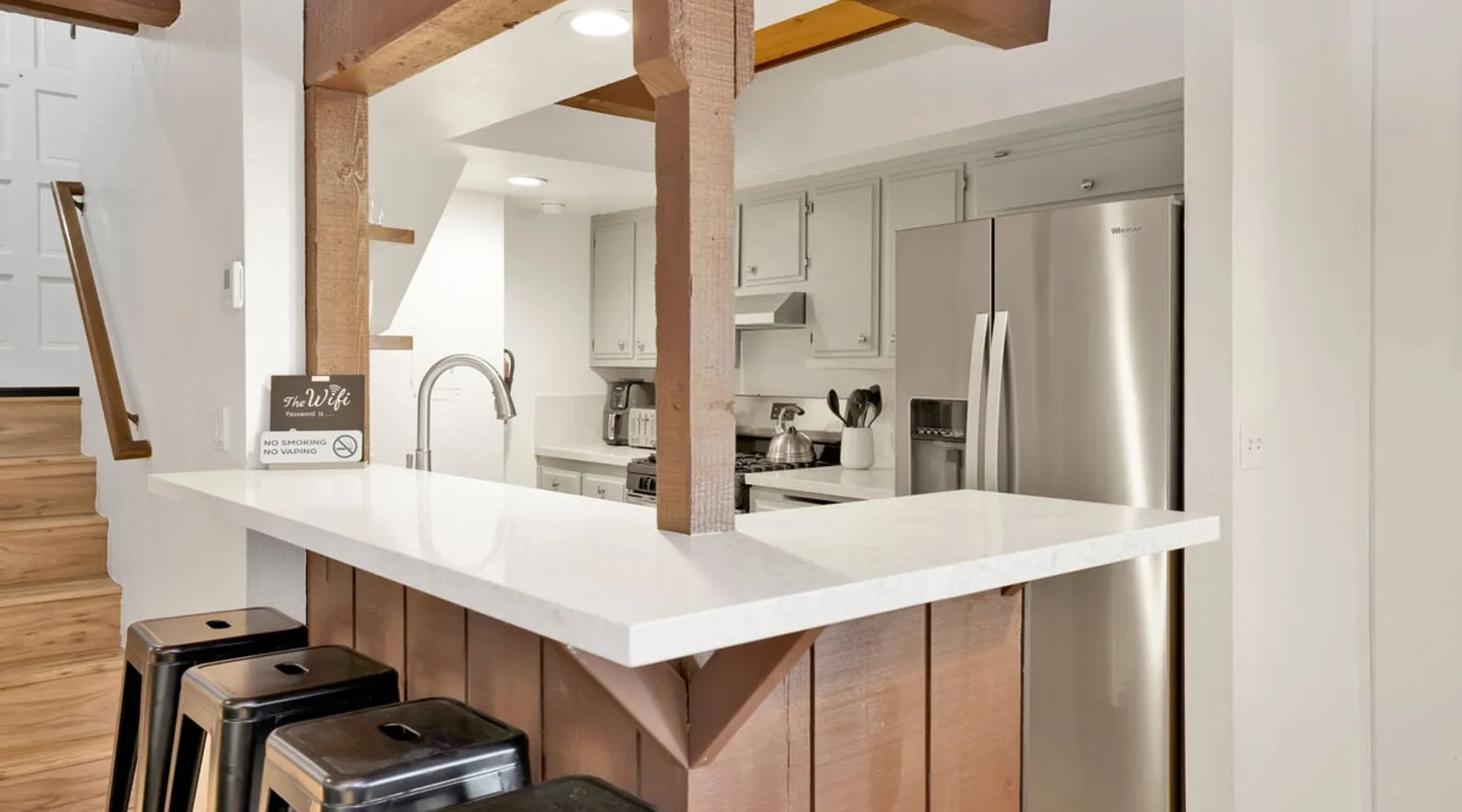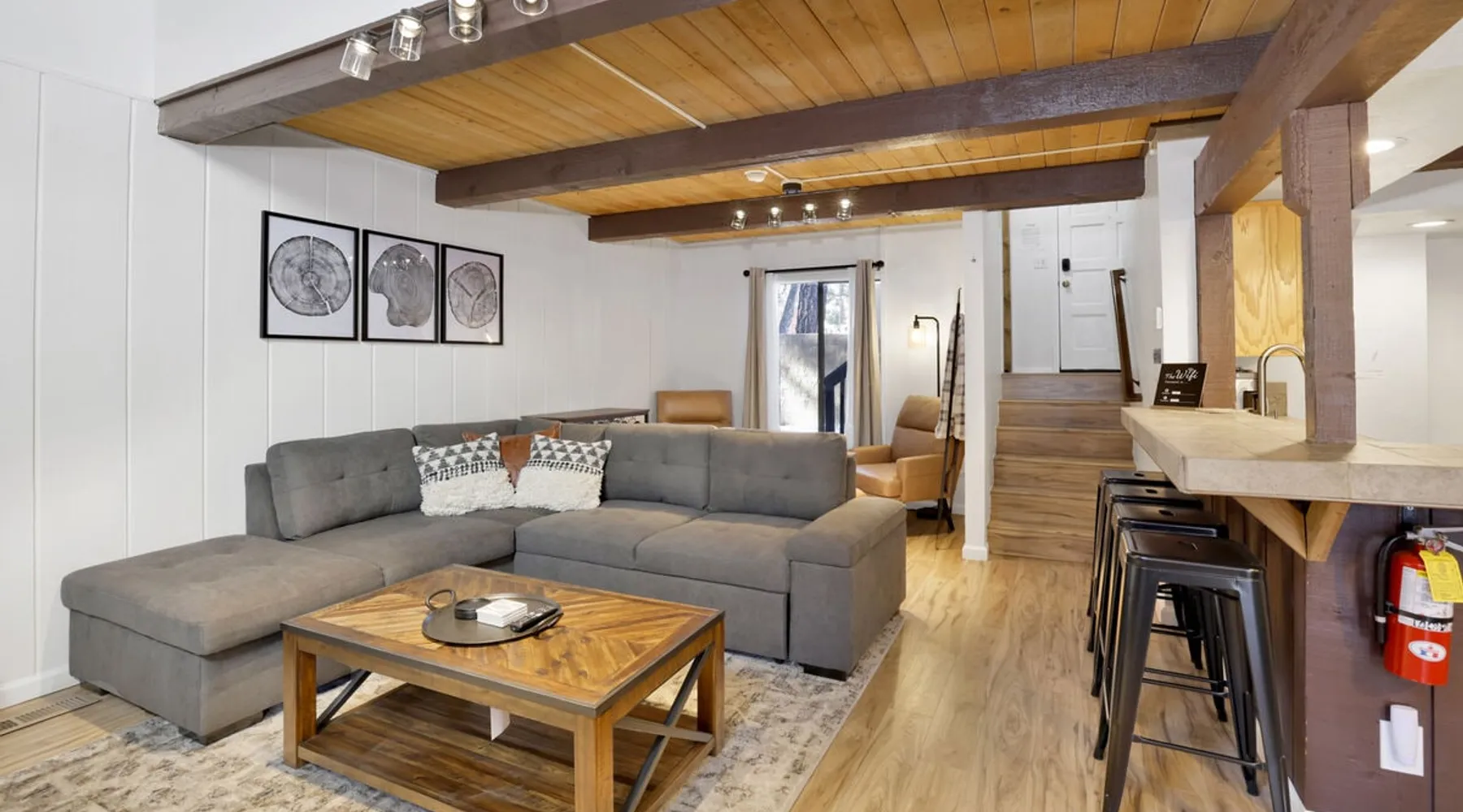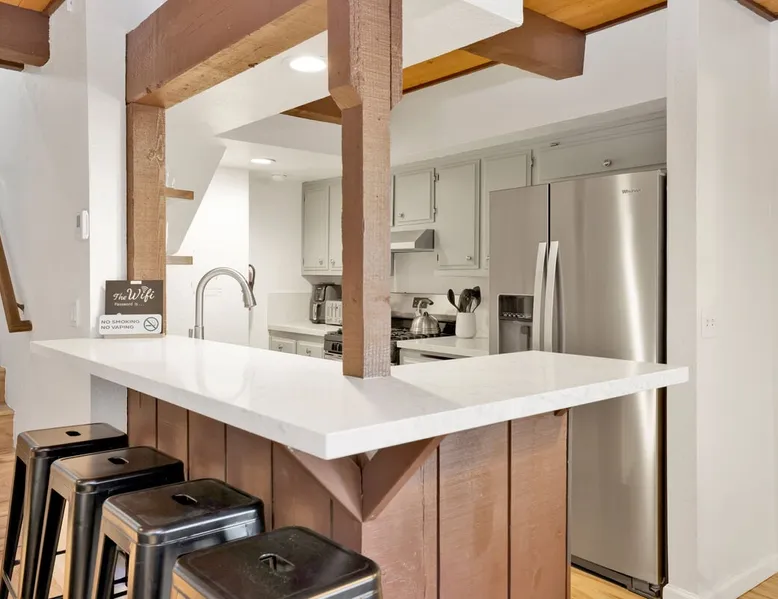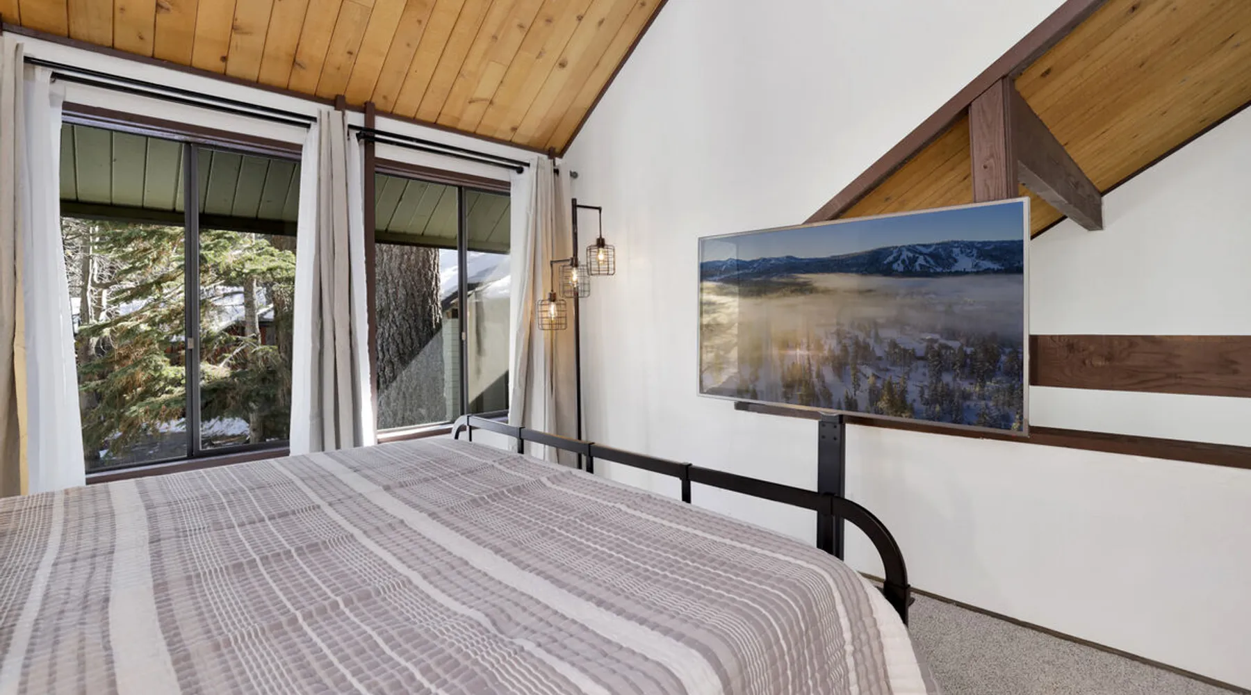 Summit View is the perfect destination for a family vacation or group of friends heading to Big Bear to experience local resort activities and adventure. Freshly renovated from head to toe with your vacation stay in mind our fully furnished townhouse condo offers all that you need to relax and unwind together under the pines as you enjoy local ski and bike park activities as well as hiking, fishing, and boating year round. Come experience this wonderful chalet for your next vacation today! The space Freshly renovated and furnished with your vacation stay in mind our relaxing retreat offers a cozy living room with toasty fireplace, equipped kitchen and dining facilities, plus two spacious sleeping areas and modern bathrooms including Streaming TVs, complimentary WIFI, and big open windows to enjoy the forested views outside. Prepare your home cooked meals and slopeside snacks in the chef's kitchen, complete with cookware, stainless appliances, and a Keurig machine for that coffee pickup in the mornings. Venture outside to enjoy ski slope views from your condo patio as this complex sits right at the base of Snow Summit Resort. Walk down to local dining options or hop in the car and you are within a short ten-minute drive to the grocery store, marina, and Village shops. Come experience your new home away from home in the mountains here at Summit View today! Sleeping Arrangements: Bedroom 1 / Open Loft: King Bed, Streaming TV- Upstairs 2nd Level Bedroom 2: Twin/Full Bunk + Queen Bed, Streaming TV- Upstairs 2nd Level Living Room: Sleeper Sofa- Downstairs Entry Level Bathroom Arrangements: Private Full Bath- Bedroom 1- Upstairs 2nd Level Hallway Full Bath- Upstairs 2nd Level -Sleeps 5 -2 Car Driveway Parking -NO PETS ALLOWED- Fines Imposed for Pets Found on Property -995 Square Feet City Permit #: VRR-2023-1728 Registration Details 2023-1728