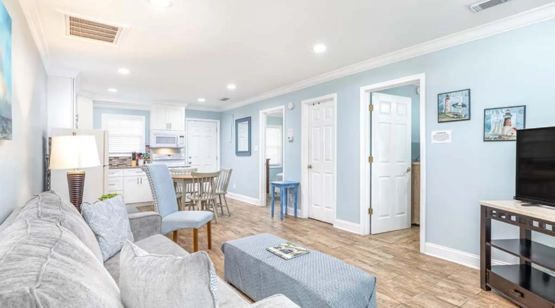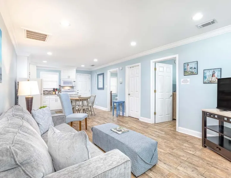 Spacious Accommodations: Dune B in Tybee Island offers a spacious apartment with two bedrooms and a living room. The ground-floor unit features a walk-in shower, air-conditioning, and a fully equipped kitchen with a refrigerator, microwave, oven, stovetop, toaster, and tea and coffee maker. Modern Amenities: Guests enjoy free WiFi, beauty services, and family rooms. The apartment includes a barbecue, TV, and hairdryer, ensuring a comfortable and convenient stay. Prime Location: Tybee Island Beach is a 2-minute walk away, while Savannah/Hilton Head International Airport is 25 mi from the property. Nearby attractions include Savannah Bend Marina (13 mi) and Tidewater Boatworks Marina (14 mi). This spacious apartment comes with 1 living room, 2 separate bedrooms and 1 bathroom with a walk-in shower and a hairdryer. Guests will find a stovetop, a refrigerator, kitchenware and an oven in the well-fitted kitchen. The apartment also includes a barbecue. This apartment has air conditioning, a tea and coffee maker and a TV with cable channels. The unit has 3 beds.