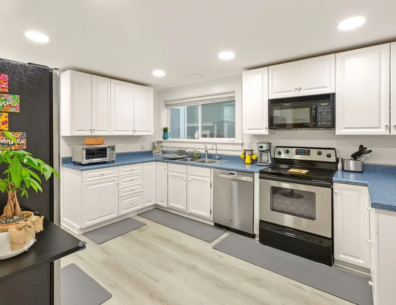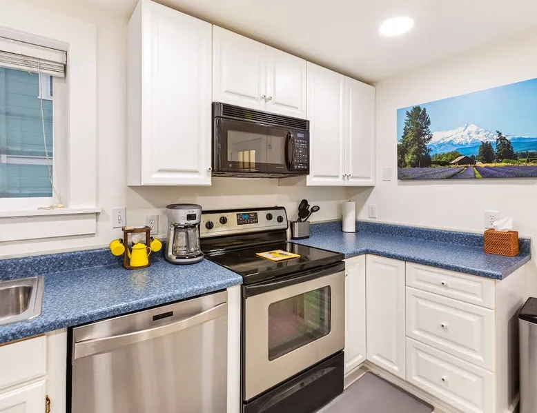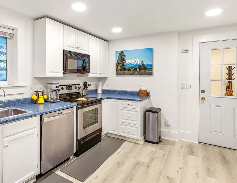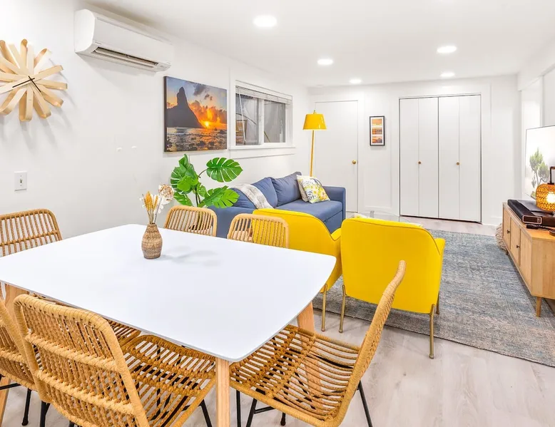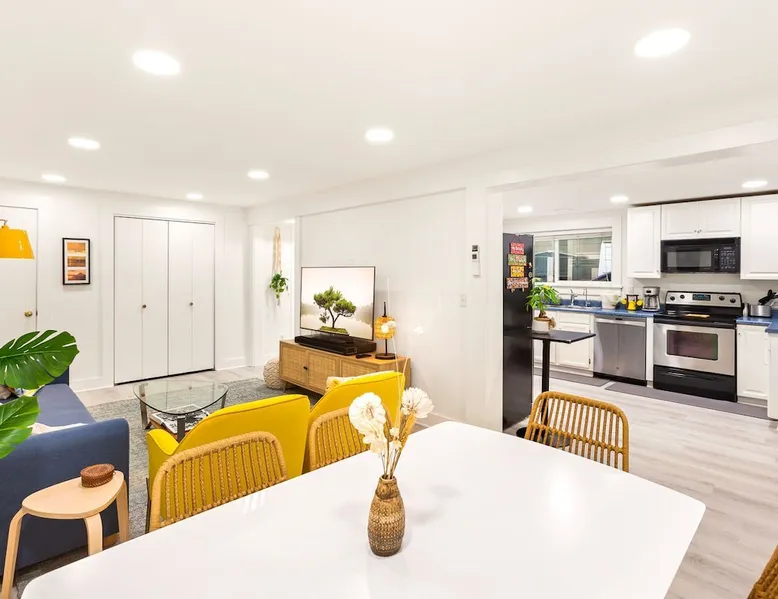 Bright, Peaceful Retreat in Iconic Seattle Neighborhood A bright, peaceful and convenient retreat, located in an iconic neighborhood of Seattle, is waiting to welcome you and your guests for a unique Pacific Northwest vacation experience. ABOUT BRAZILIAN MODERN Newly remodeled and professionally decorated, this spacious (1300 square foot) ground floor retreat showcases the passions of the owners - their original photography and the family's Brazilian heritage - hence the name, Brazilian Modern. Throughout, the owner's original photographs from traveling the world and remembrances of Brazil enhance the décor. Walking into the property, you'll find a comfortable living/dining area, with a full-size sleeper sofa, 55" 4K LG OLED smart TV with access to Netflix, Disney+ and Hulu, a Sonos soundbar, and a dining table with seating for six. If you are planning a working vacation, you'll appreciate the high speed internet connection and the dedicated office space, just as you walk in the front door. The kitchen has a full suite of stainless appliances and plenty of pots, pans and dinnerware, so the chef in your group can wow your guests with a sumptuous meal. For those who crave cooking over a fire, you will find a propane barbeque and outdoor dining area just outside the French doors, in the private, fenced yard. It's the perfect spot for dinner al fresco, your morning coffee or an evening glass of wine. The two bedrooms feature cozy queen beds and the full size bathroom has a tub/shower combination. Linens and towels are provided, as well as full-size washer and dryer, for your convenience. Additionally, the home features off-street parking for up to two vehicles and a Level 2 EV charger, to ensure fast charging for owners of electric vehicles. MORE ABOUT BRAZILIAN MODERN From here, you have quick and easy access to many of the local's favorite haunts - Chittenden Locks, where in season you can watch the salmon swim the ladders; Golden Gardens, the perfect spot for gorgeous sunsets; Greenlake, for swimming, paddling and runs around the lake; plus, the Woodland Park Zoo and many others. Within a short walk, you'll find a variety of restaurants, taverns and pubs - from dives to fine cuisine. Plus great shopping, an elementary school with a playground across the street and numerous other attractions. Fremont, famous for its Bridge Troll, Sunday Market and Fremont Fair & Summer Solstice, and Ballard, the Nordic enclave of Seattle, are just short drives from the property. Dogs are welcome, when registered with us prior to your stay and with our per pet, per night fee. THE ALL AROUND SEATTLE PROMISE All Around Seattle Vacation Rentals is the only full-stack vacation rental management company in the area. We vow to make booking with us simple and exciting. We know that booking a rental property for your vacation can be unfamiliar territory for some, while others know their way around it. Because we know this, we ensure that each of our properties are up to high quality standards. We do our absolute best to provide support to our guests when booking. We are available to assist you every day of the year, if you have any questions or concerns before, during or after your visit to our home. We have onsite property management available 24/7 for anything concerning that may arise. MANAGED: This well managed property needs good guest behavior and adherence to instructions, rules, terms, conditions, and requires online registration, accidental damage protection, and electronic signature before final booking confirmation, or you may cancel before proceeding at that time. Phones open 9am to 7pm every day. For security, there may be outwardly facing security cameras, capable of constant recording depending on staffing. There may be interior decibel meters to report excessive noise. To allow enough time for full cleaning, check-In time is 5pm and Check-Out is 11am. Bookings over 29 days are with Prospera.vip Property Management. Languages English